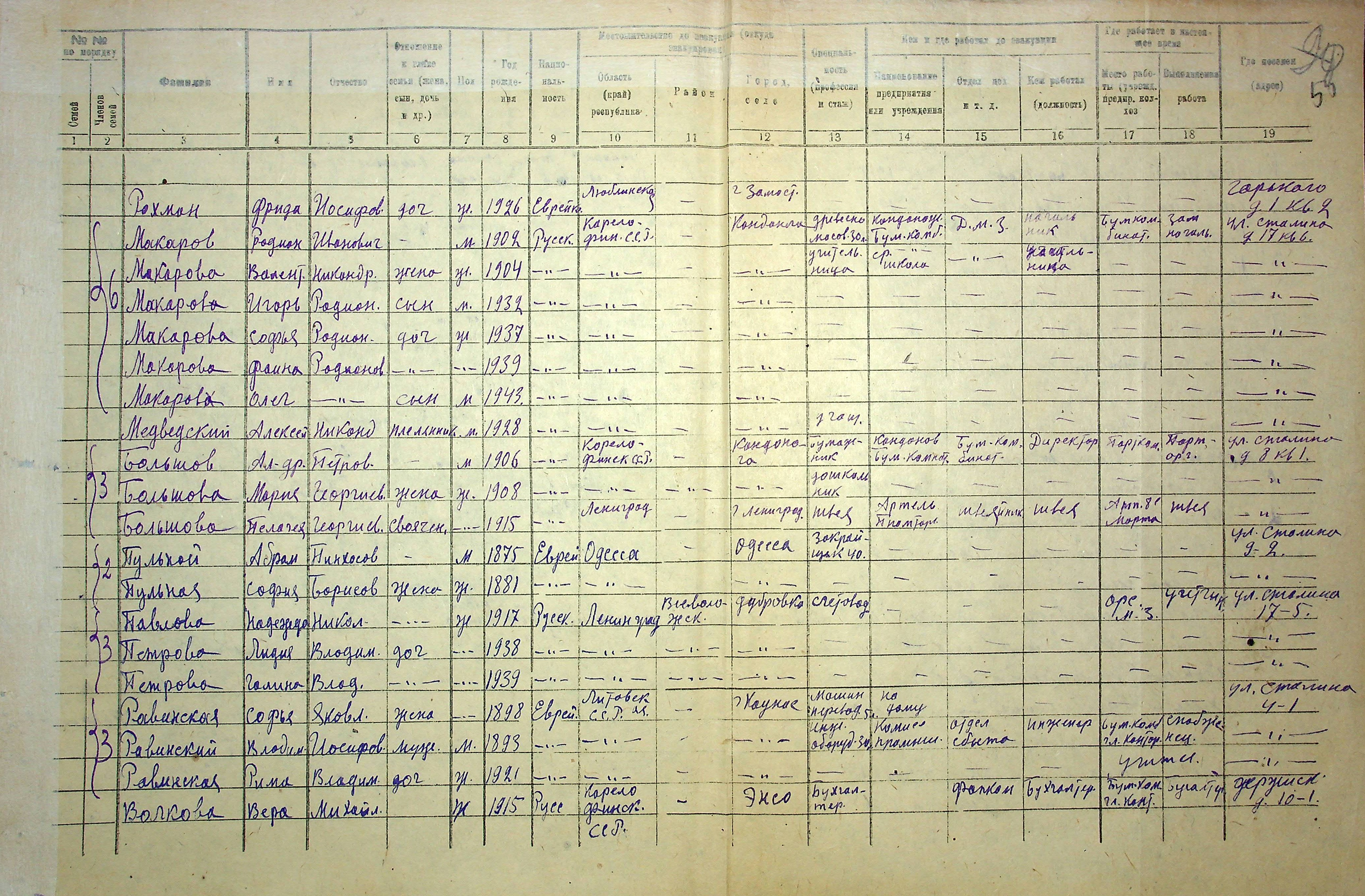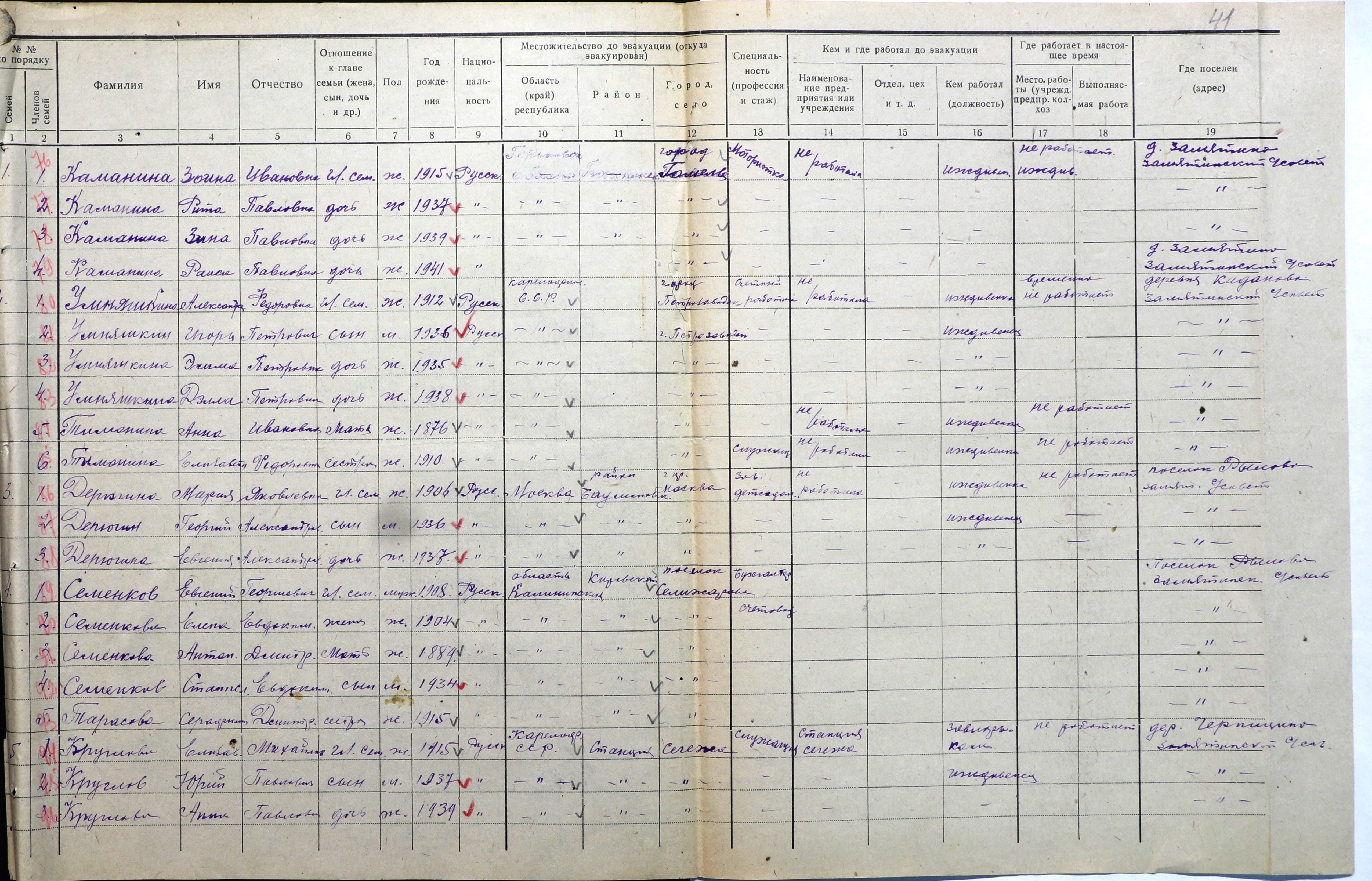 Фрагмент из «Списков эвакуированных, представленных сельсоветами» за 1942 г. Балахнинского района Горьковской области.