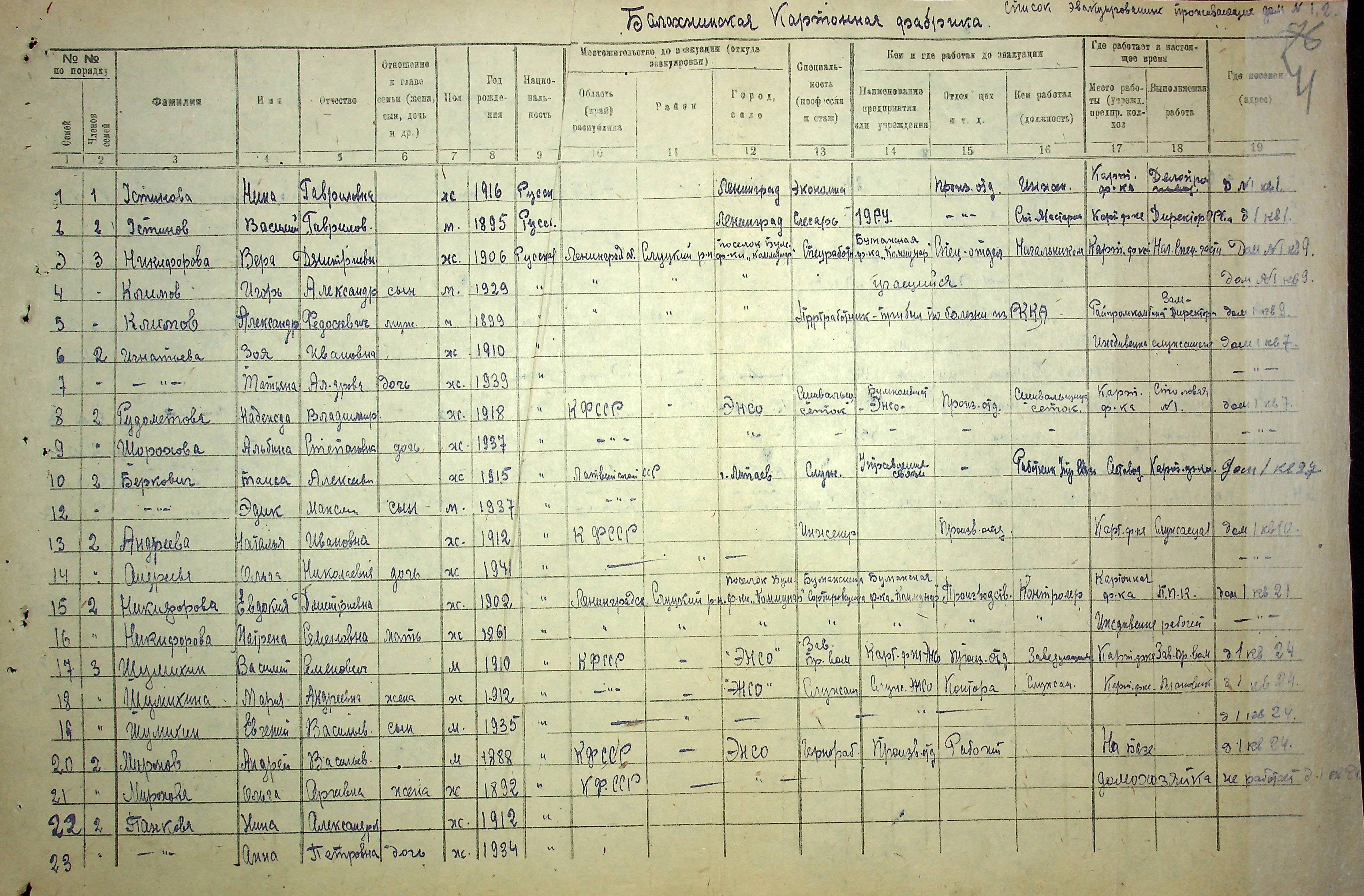Из списка эвакуированных, проживающих в г. Балахне и поселках