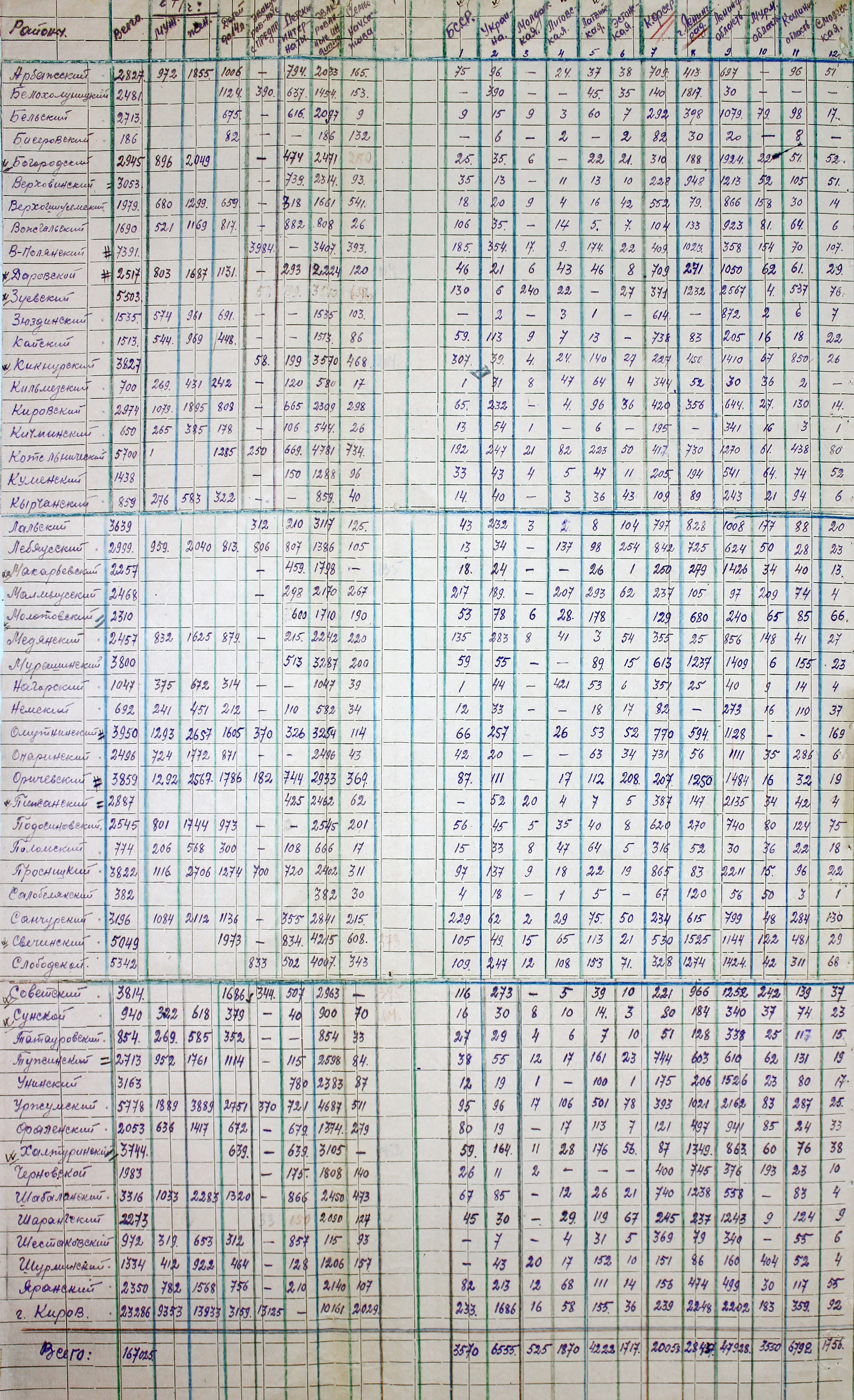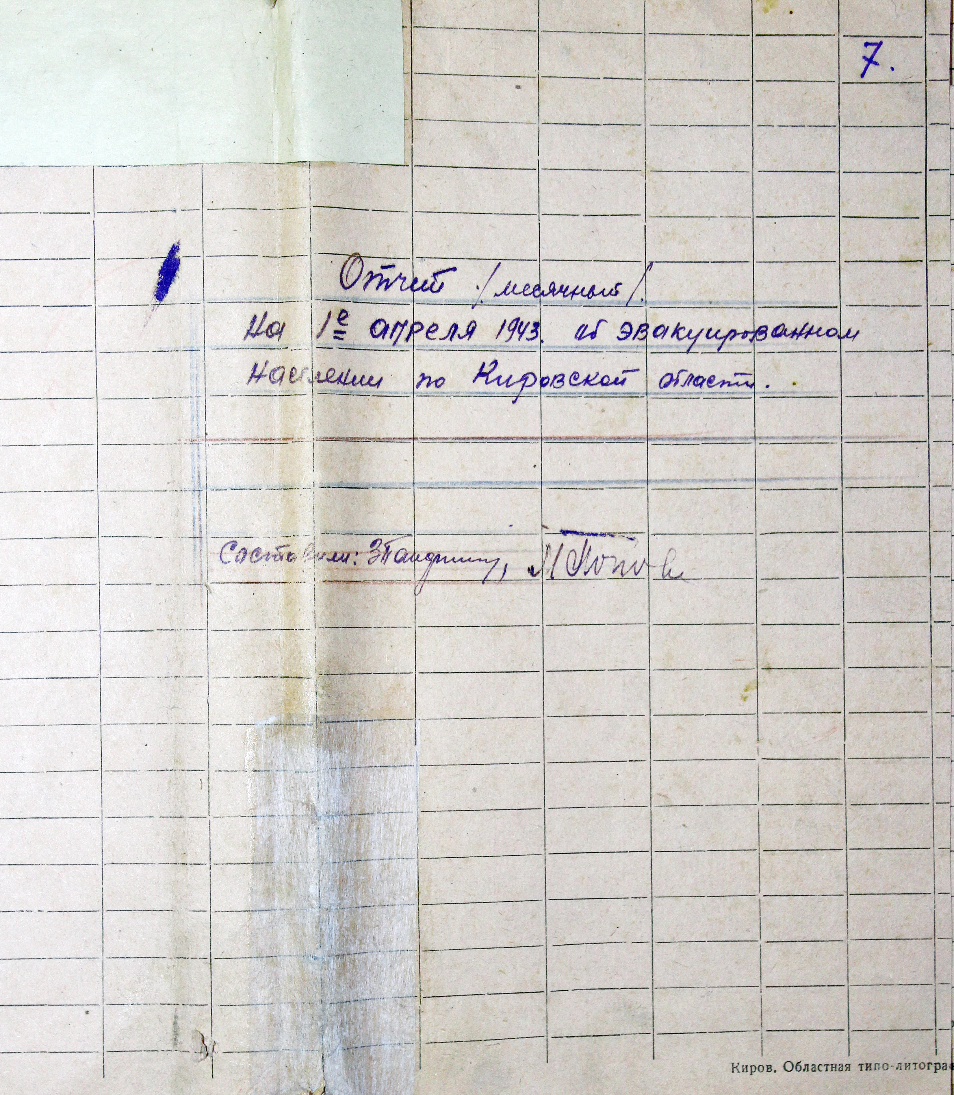 Отчет о количестве эвакуированного населения, в том числе из Карело-Финской ССР, в районы Кировской области на 1 апреля 1943 г. 1943 г.
