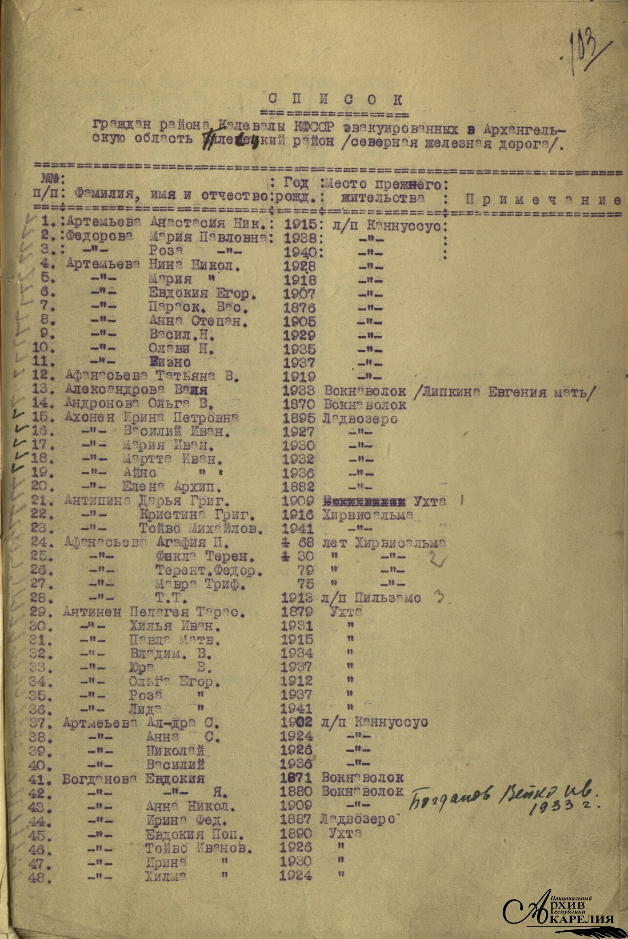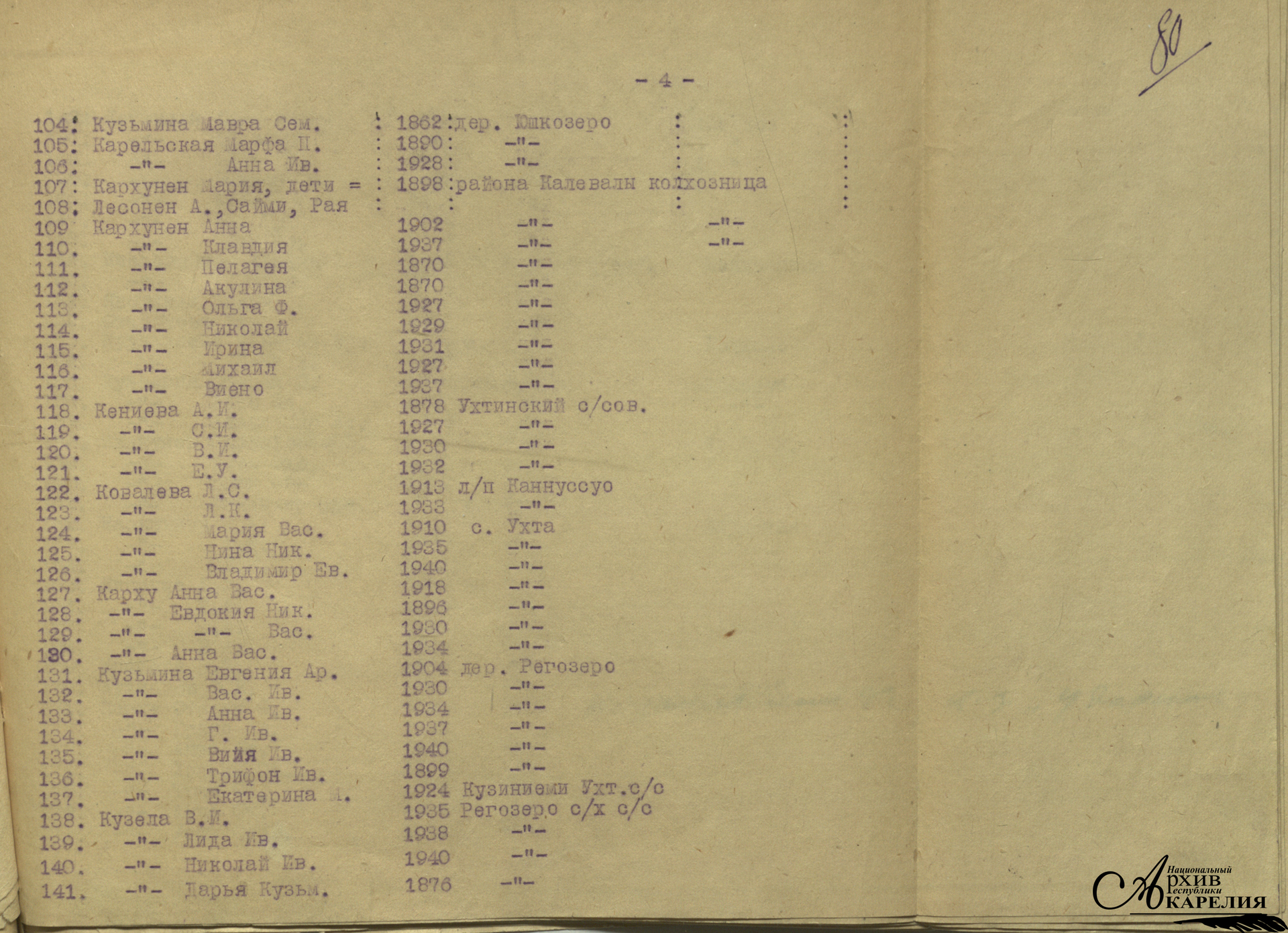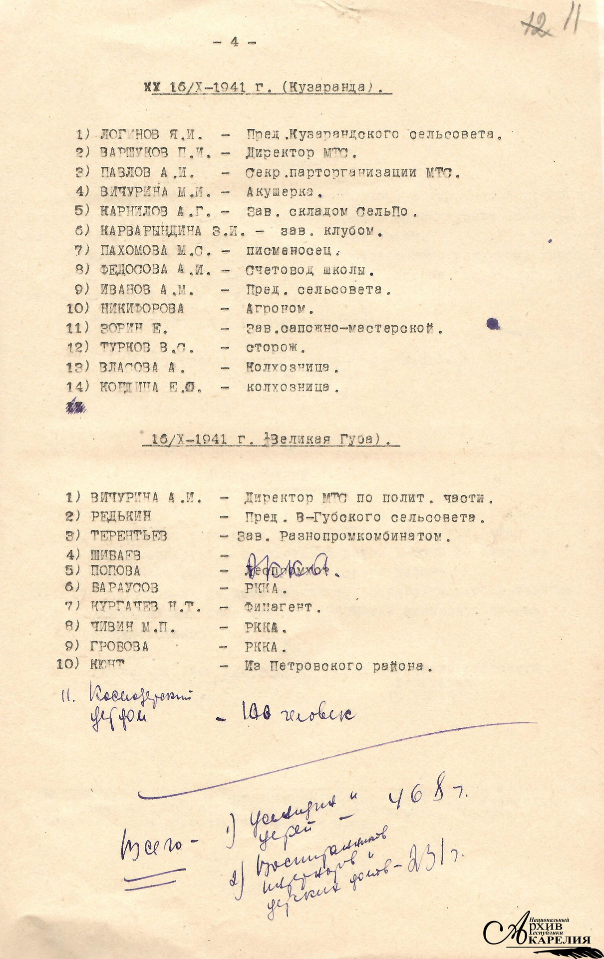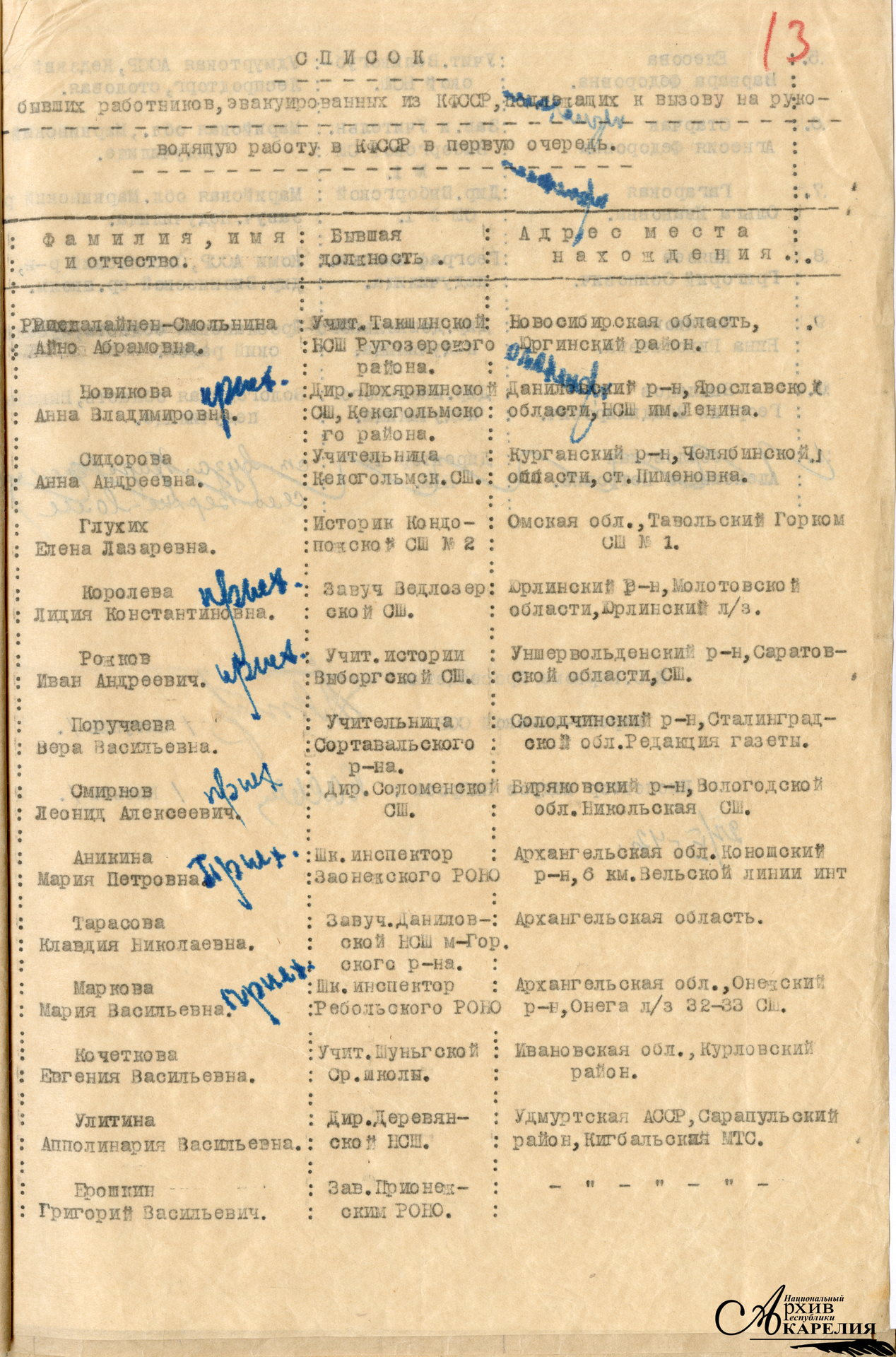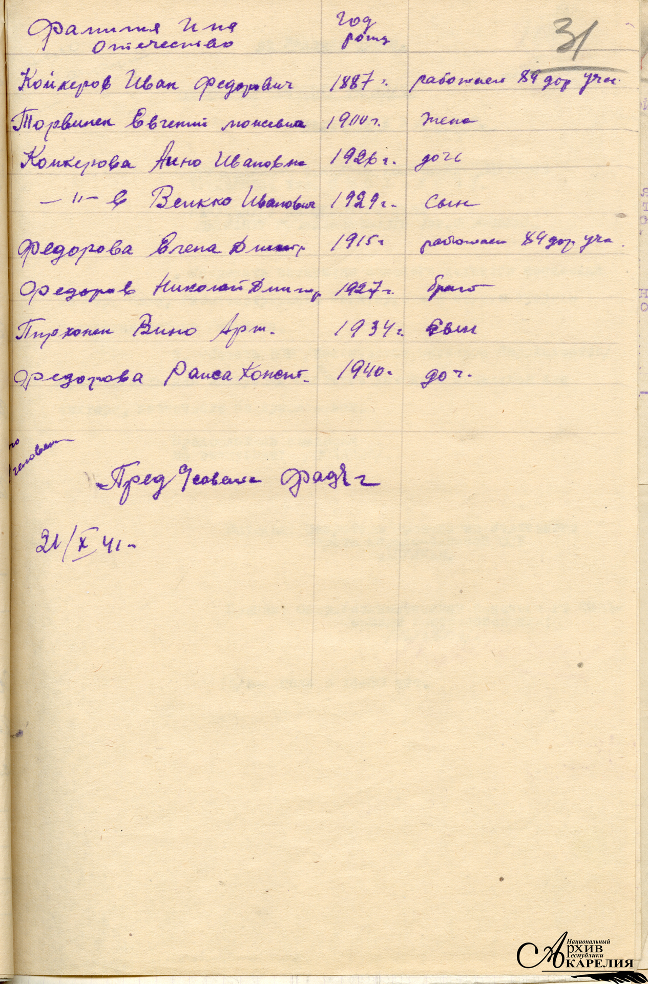 Группа артистов Республиканского финского драматического театра КФССР во время эвакуации в Омскую область (в составе: К. Э. Раутио, Л. И. Теппонен, К. И. Севандер, Е. Я. Севандер, И. Виитанен, И. А. Такала, М. Е. Любовин, Г. Роутту, Л. Салми, С. Ф. Бочарникова и др.). с. Большеречье Омской области.