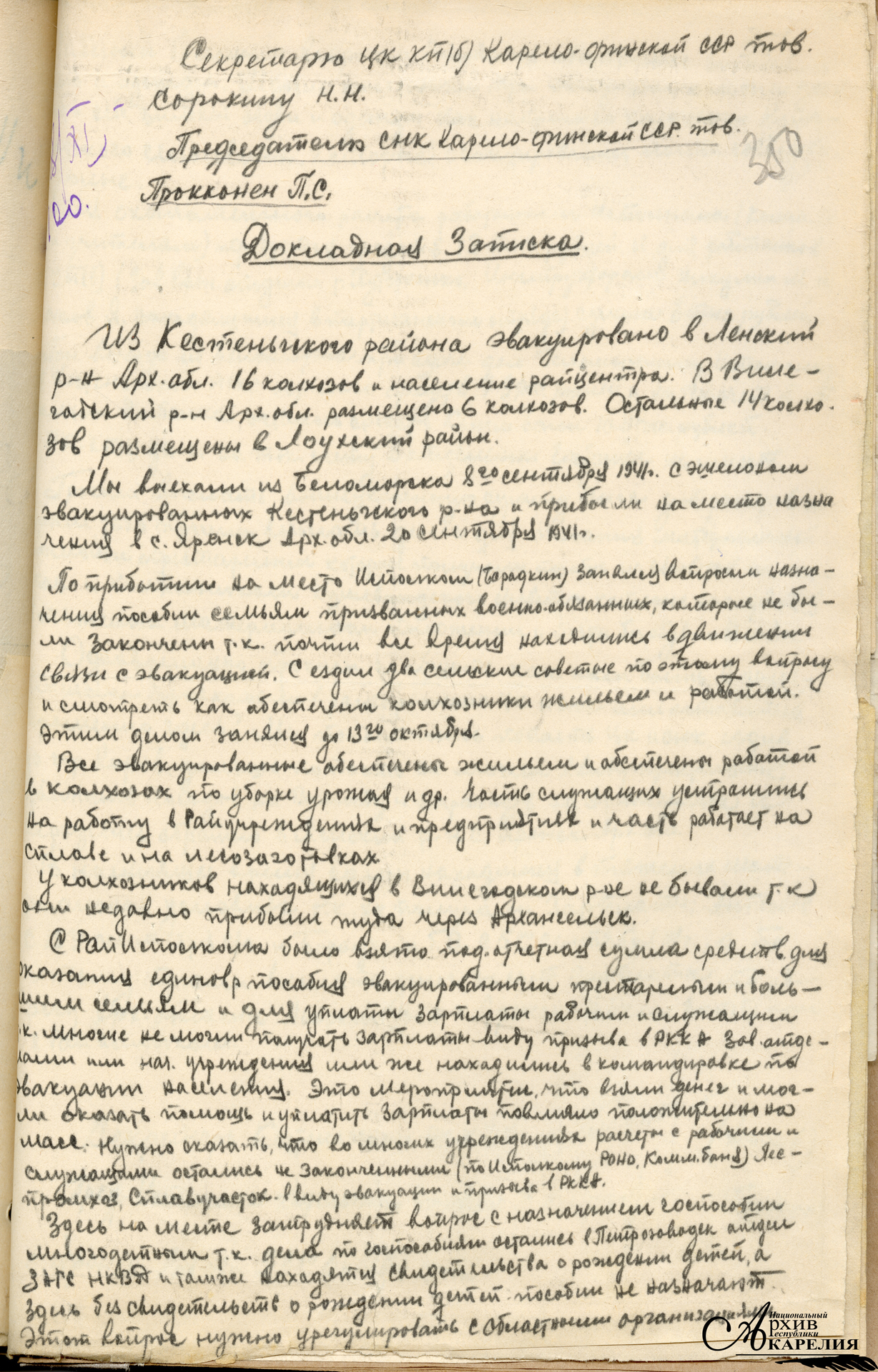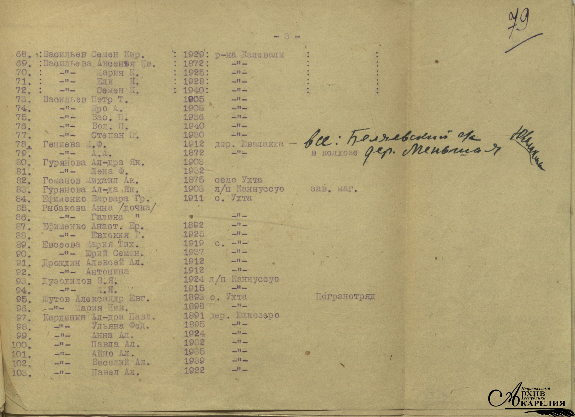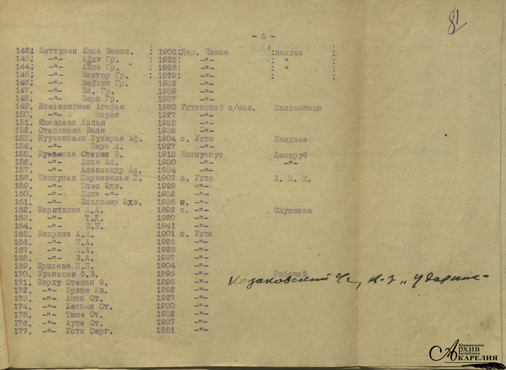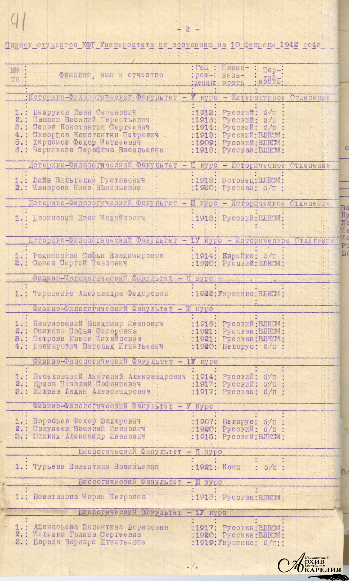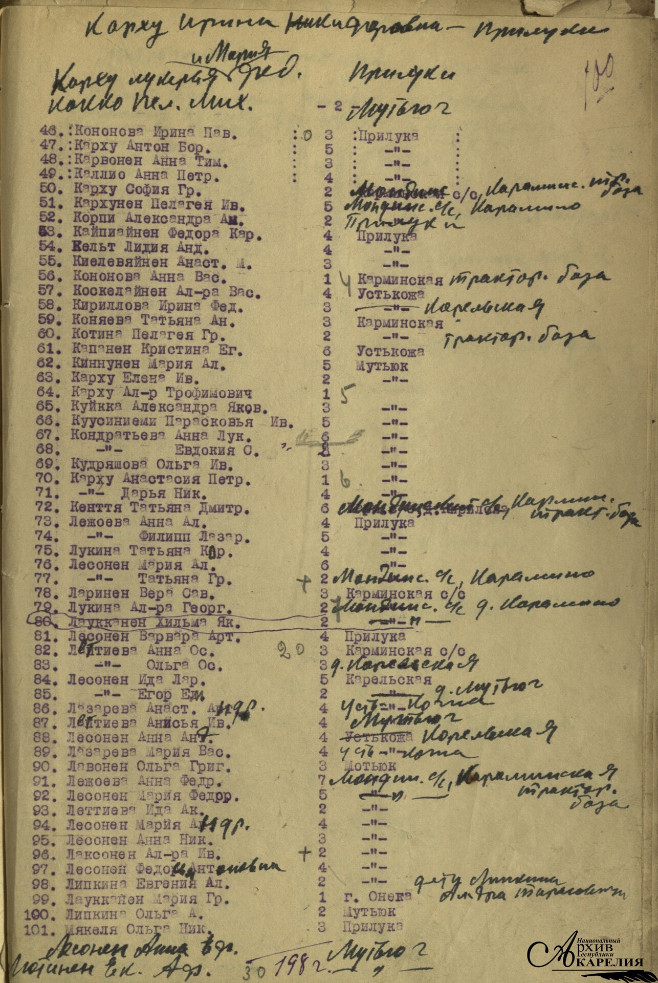 Группа артистов Республиканского финского драматического театра КФССР во время эвакуации в Омскую область (в составе: К. Э. Раутио, Л. И. Теппонен, К. И. Севандер, Е. Я. Севандер, И. Виитанен, И. А. Такала, М. Е. Любовин, Г. Роутту, Л. Салми, С. Ф. Бочарникова и др.). с. Большеречье Омской области.