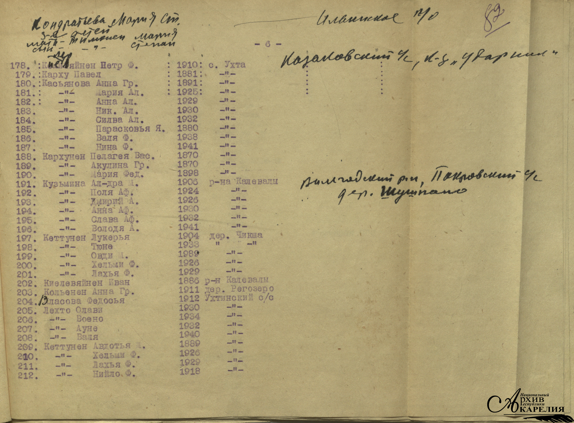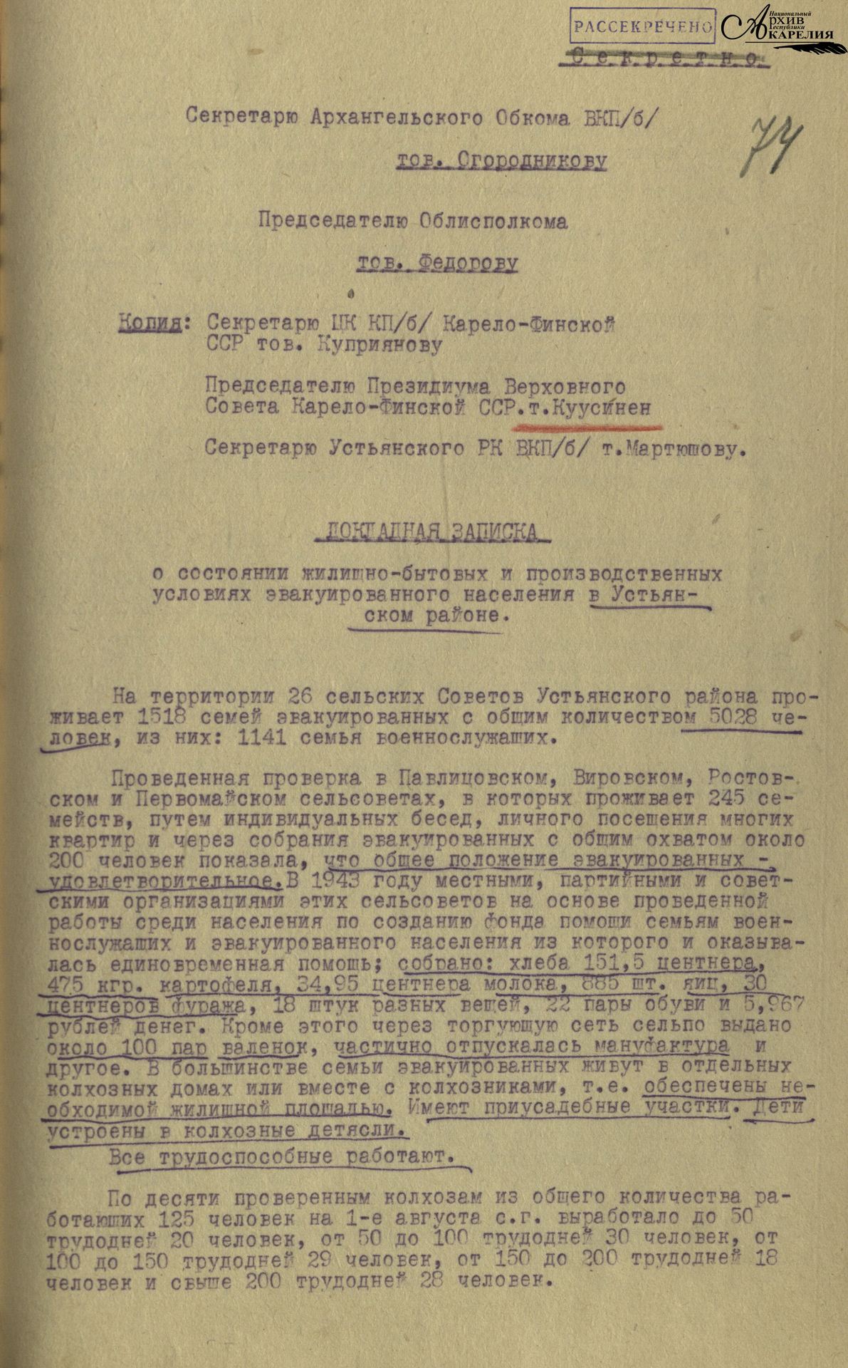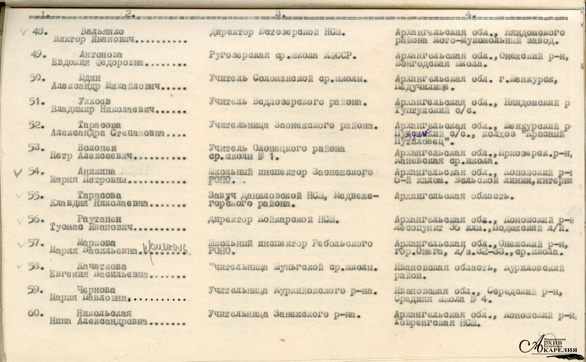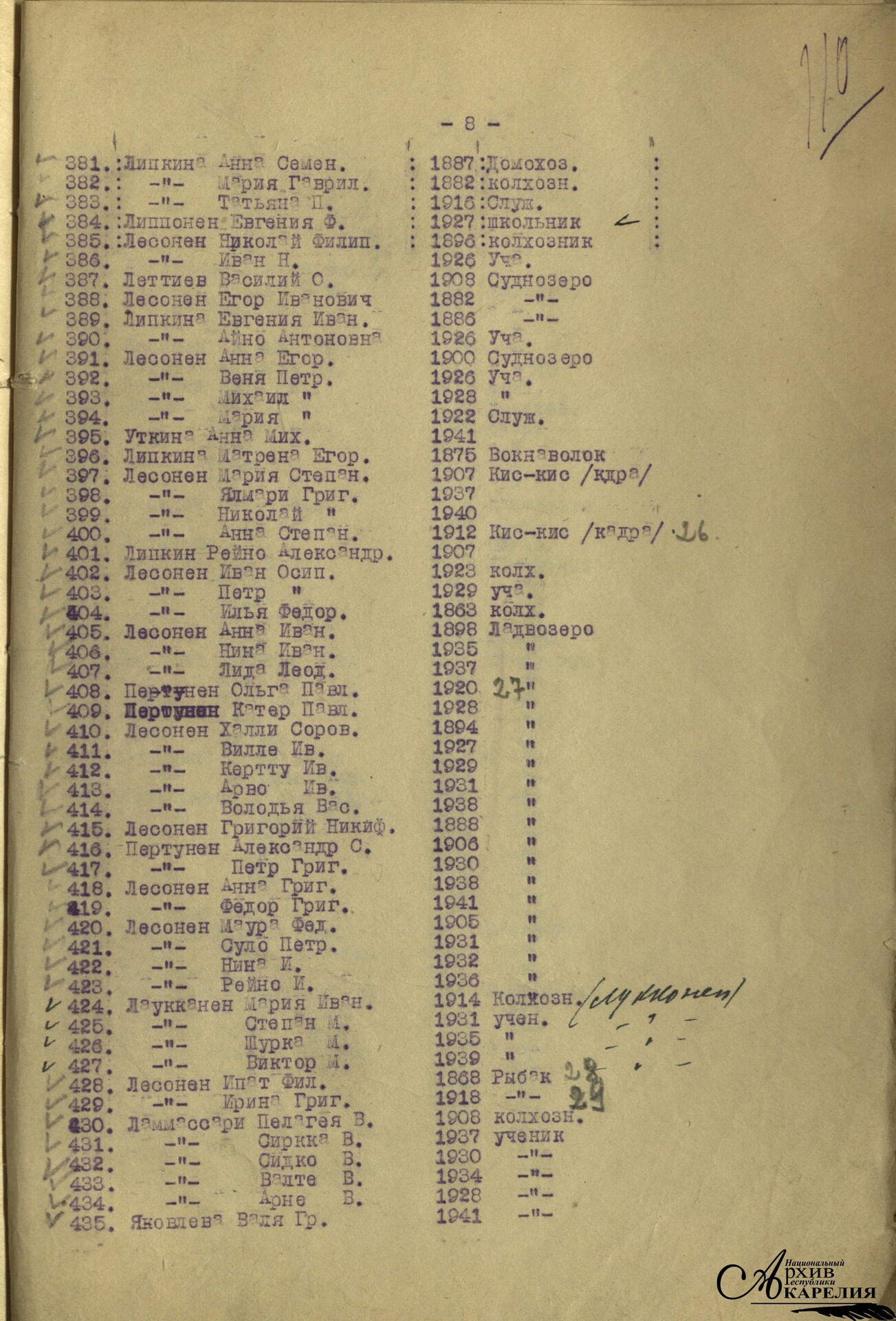 Группа артистов Республиканского финского драматического театра КФССР во время эвакуации в Омскую область (в составе: К. Э. Раутио, Л. И. Теппонен, К. И. Севандер, Е. Я. Севандер, И. Виитанен, И. А. Такала, М. Е. Любовин, Г. Роутту, Л. Салми, С. Ф. Бочарникова и др.). с. Большеречье Омской области.