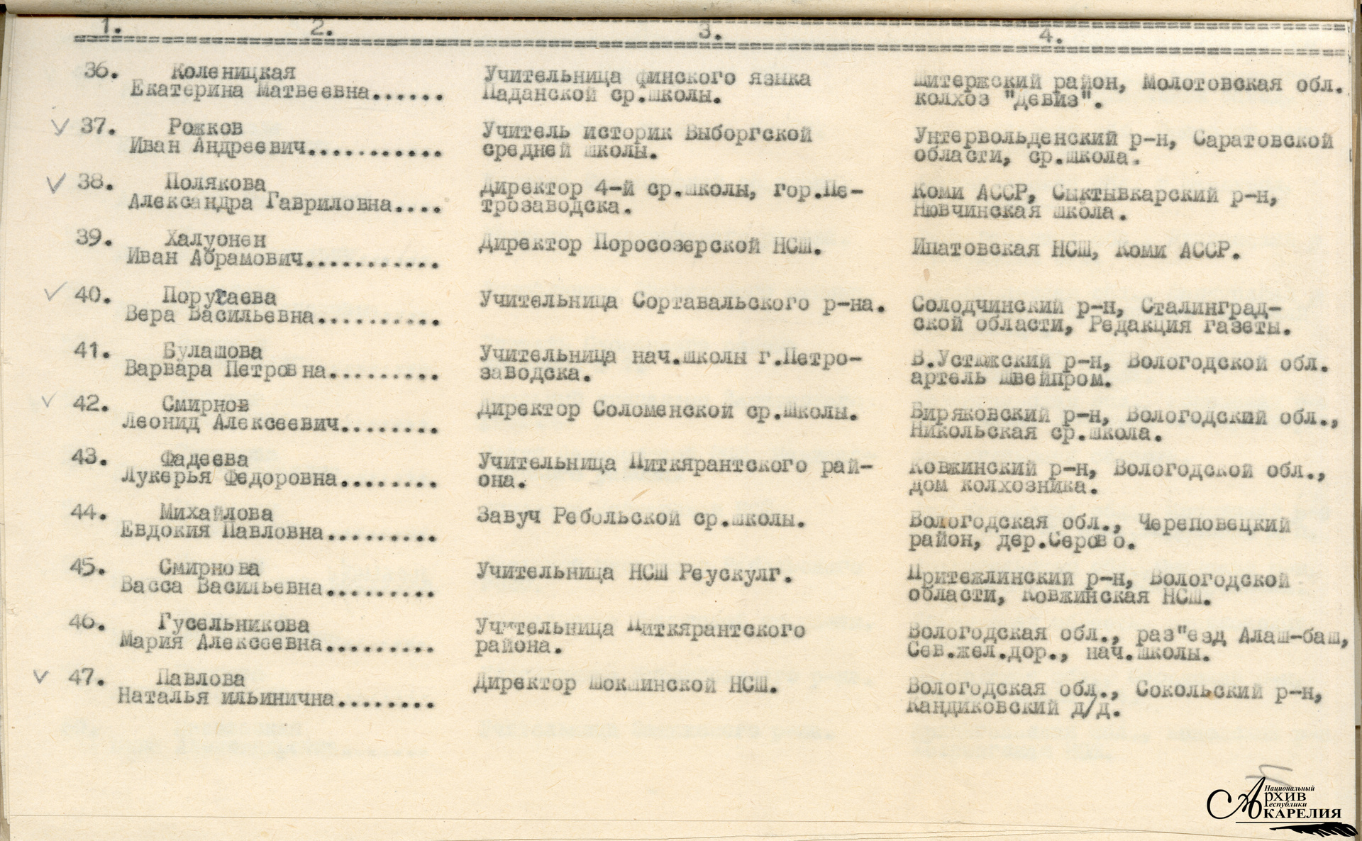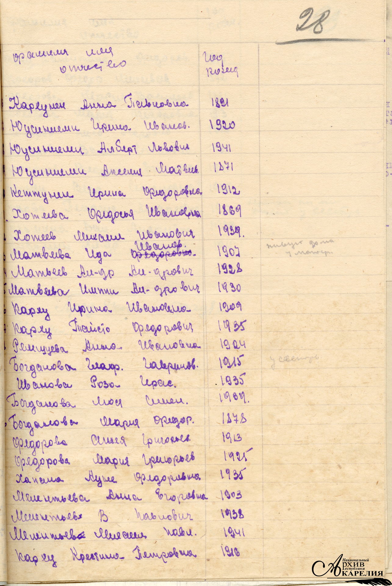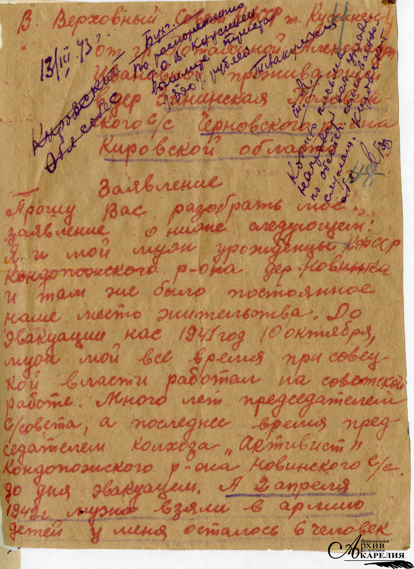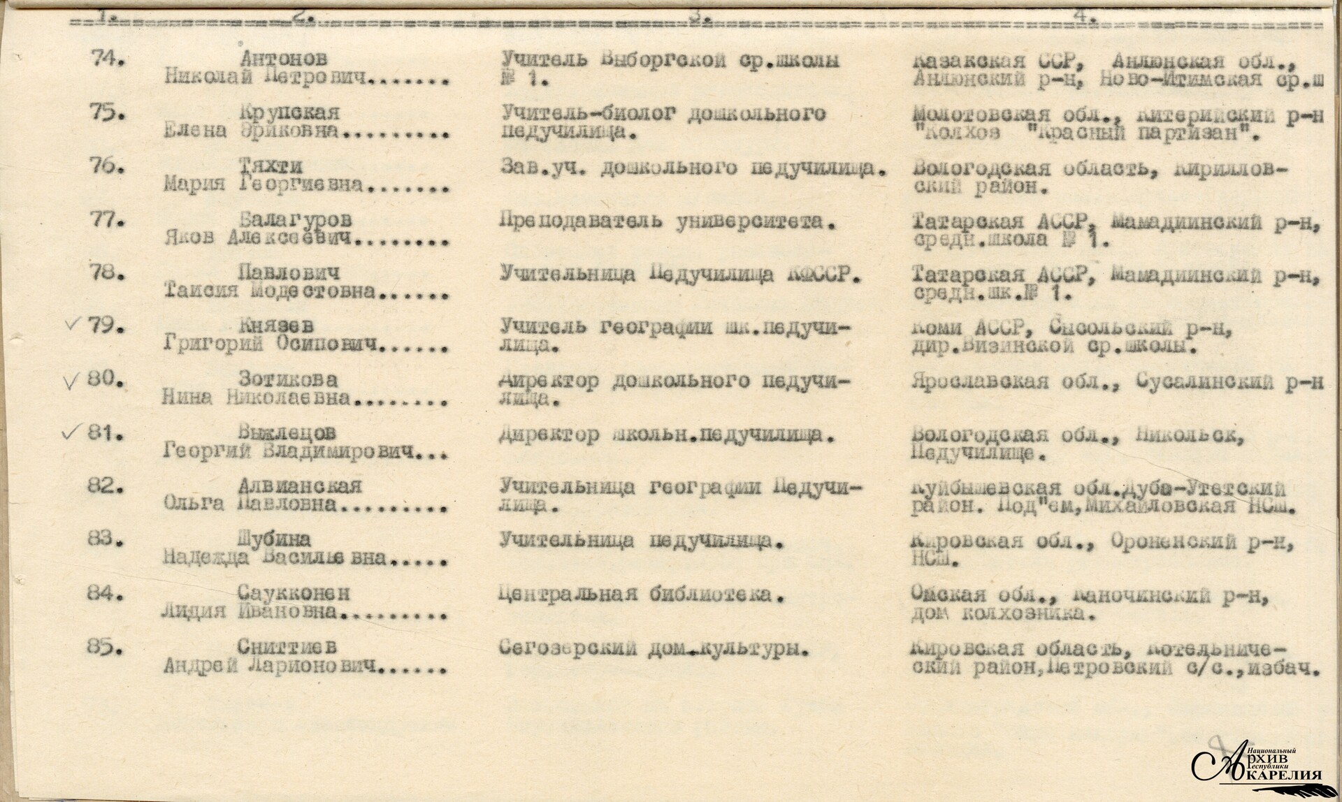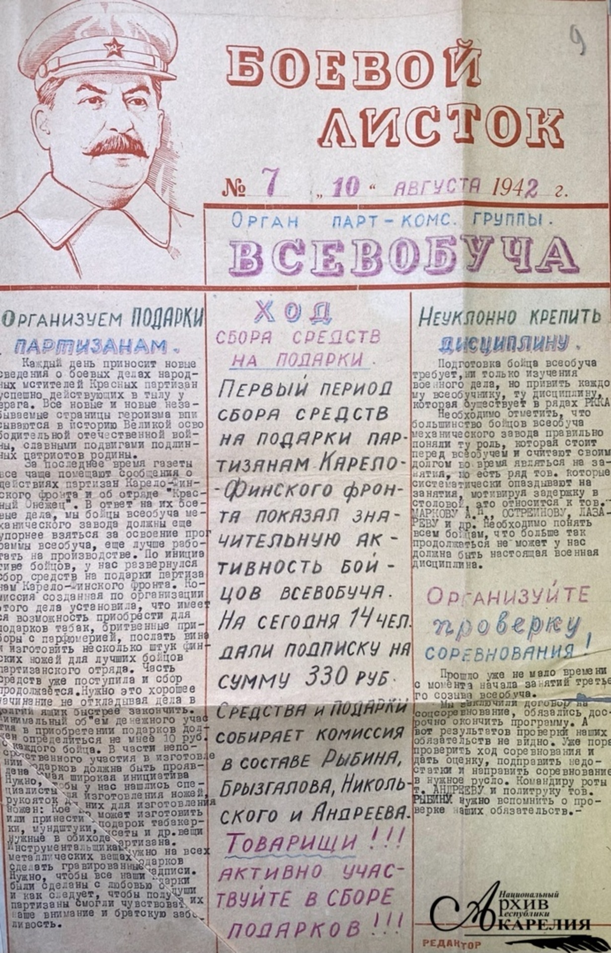 Группа артистов Республиканского финского драматического театра КФССР во время эвакуации в Омскую область (в составе: К. Э. Раутио, Л. И. Теппонен, К. И. Севандер, Е. Я. Севандер, И. Виитанен, И. А. Такала, М. Е. Любовин, Г. Роутту, Л. Салми, С. Ф. Бочарникова и др.). с. Большеречье Омской области.