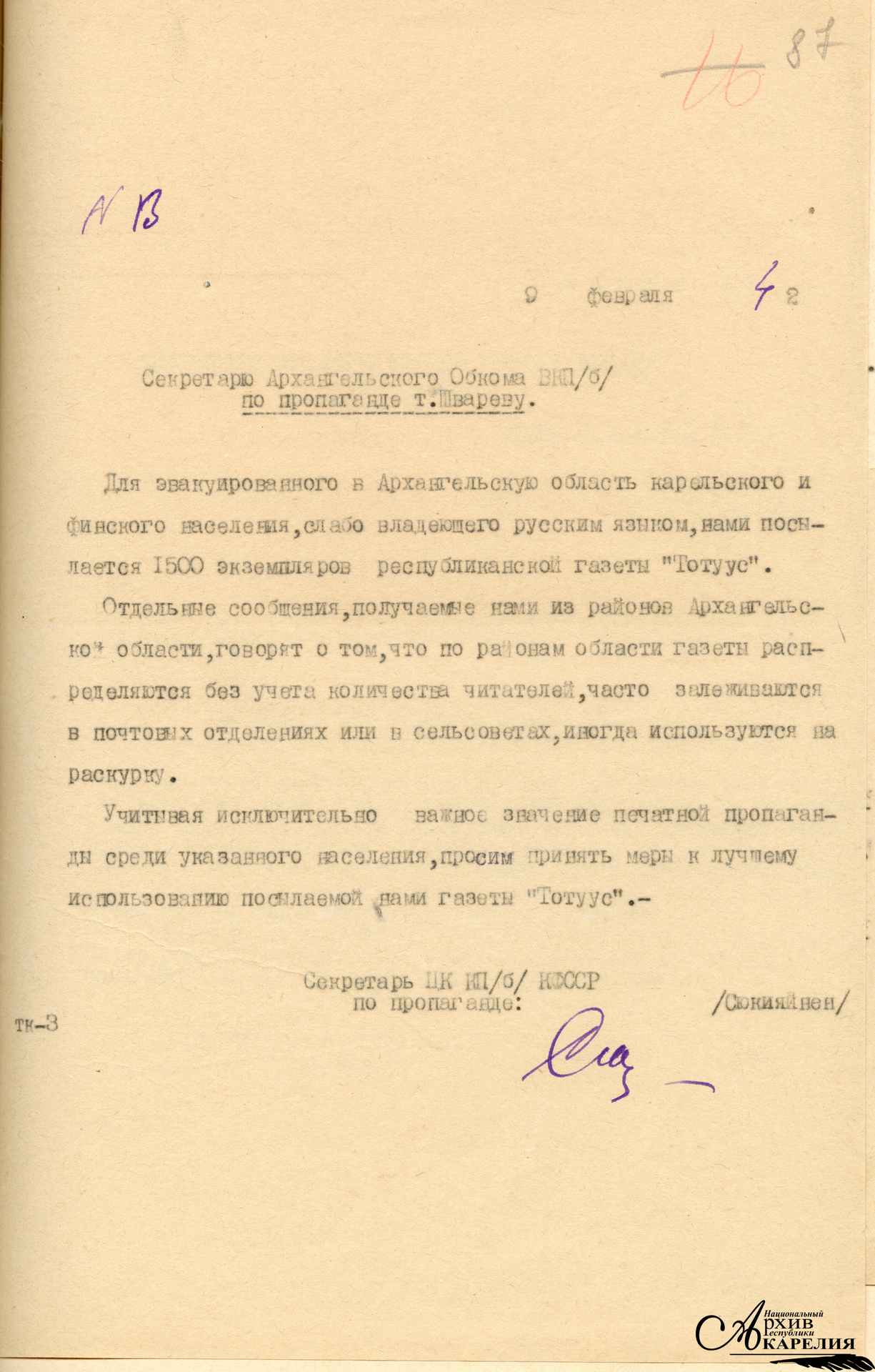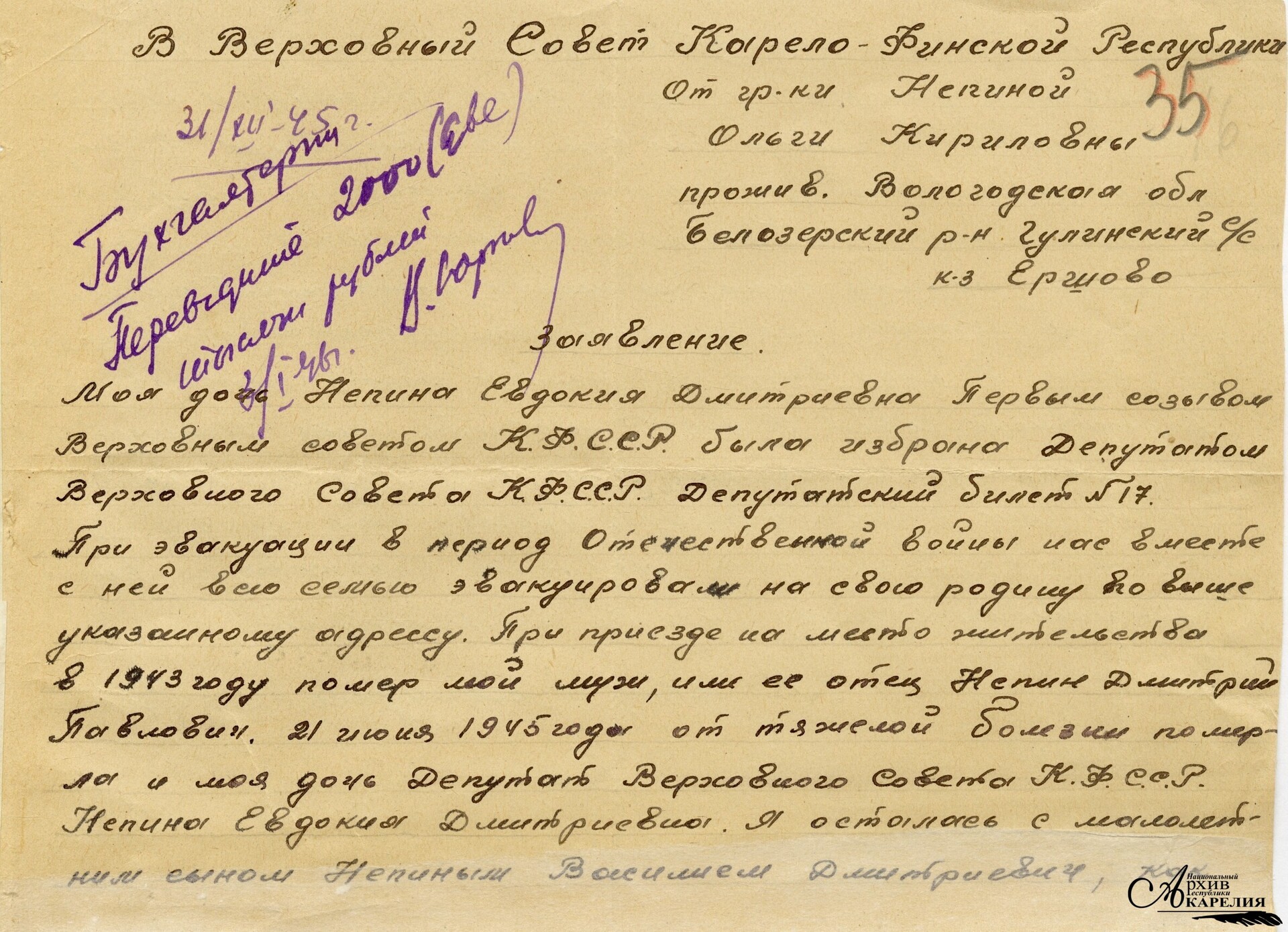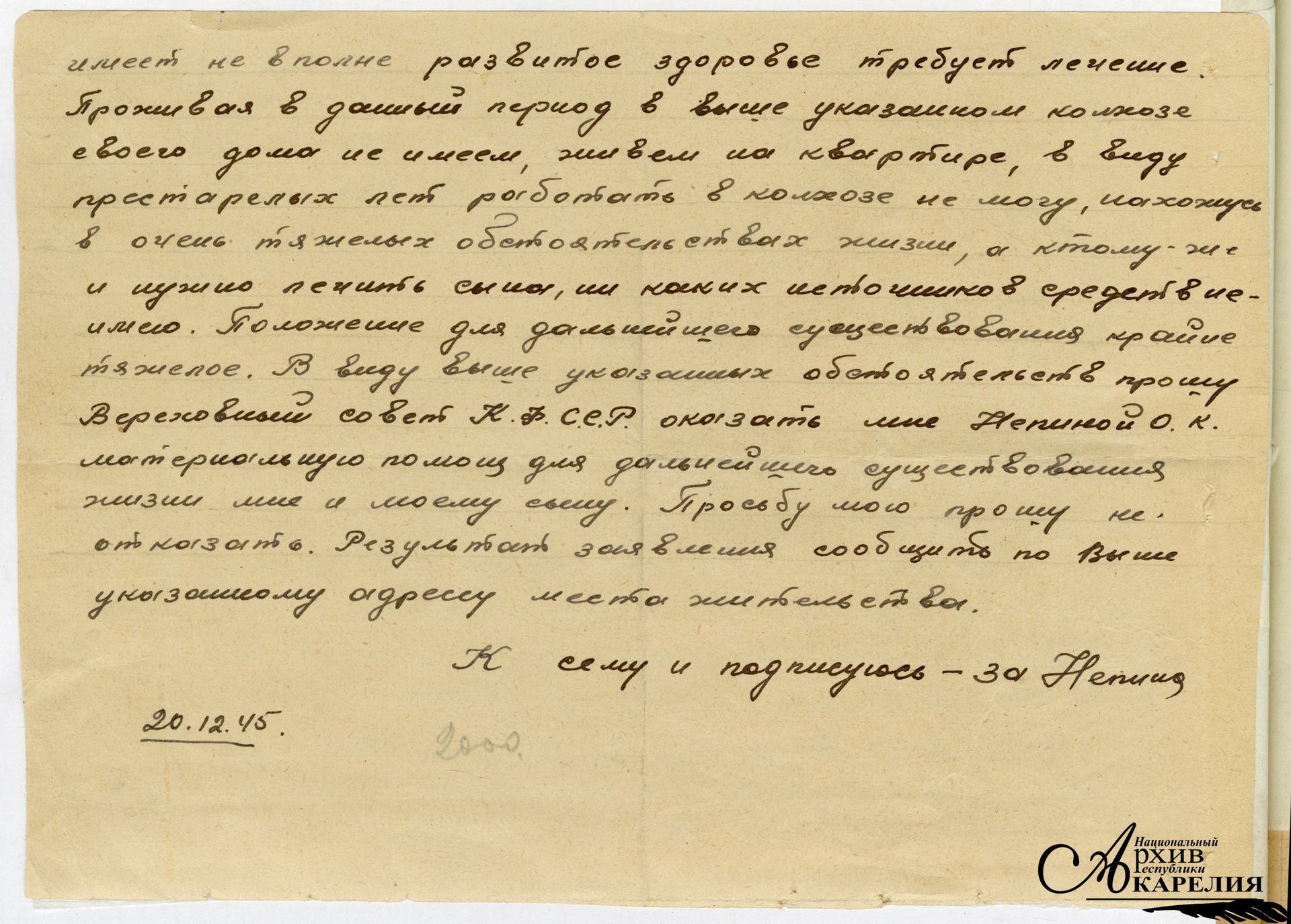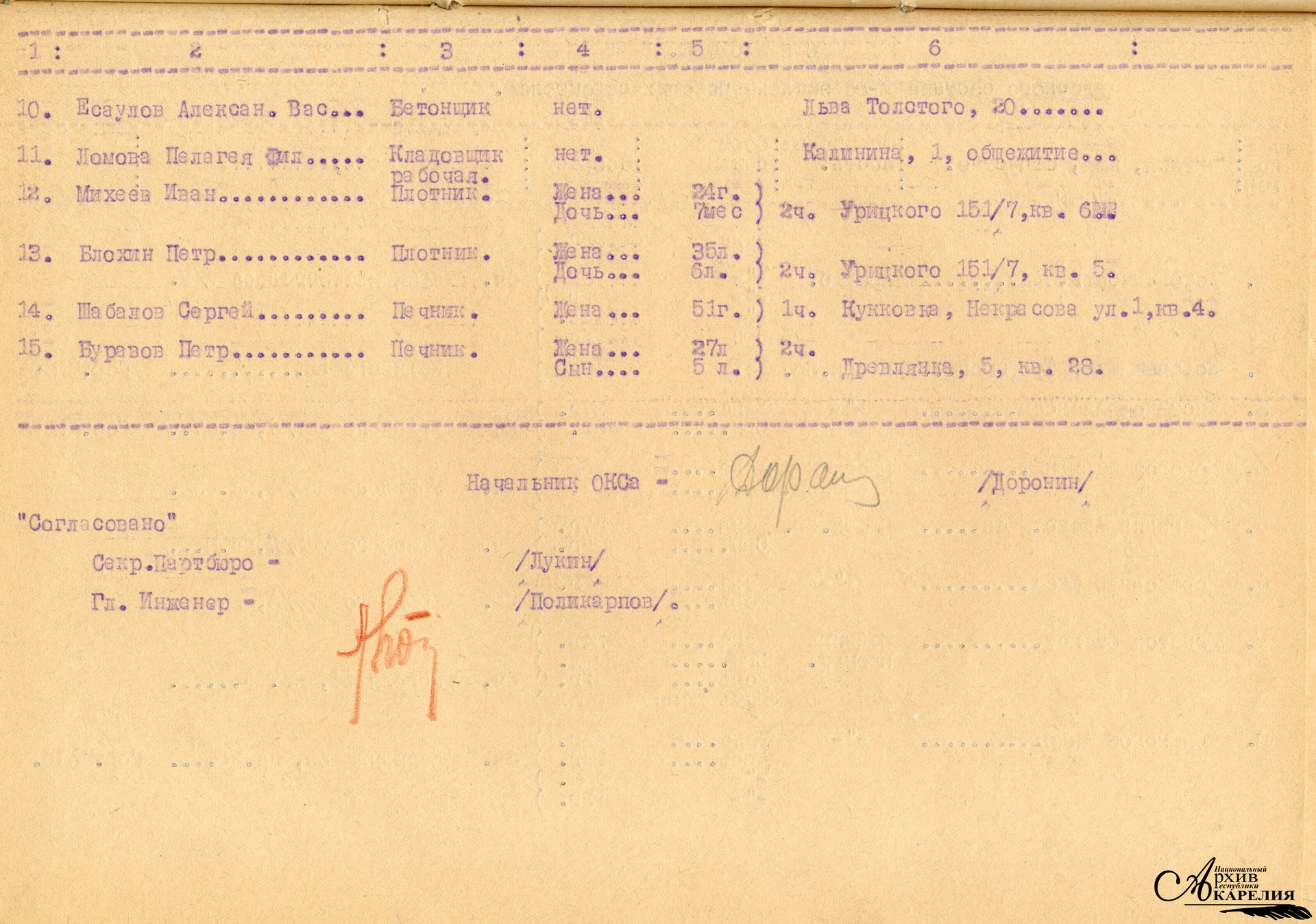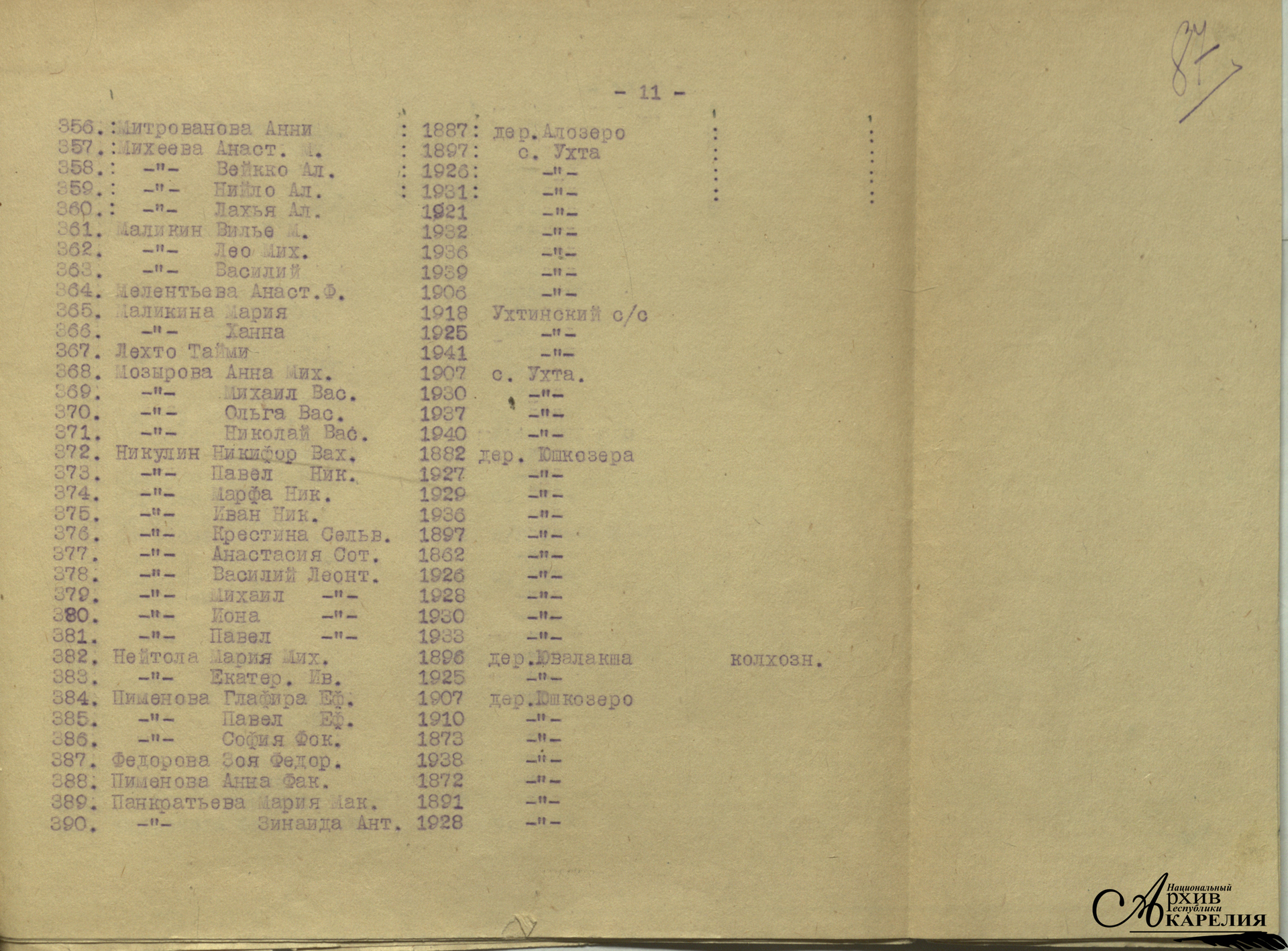 Группа артистов Республиканского финского драматического театра КФССР во время эвакуации в Омскую область (в составе: К. Э. Раутио, Л. И. Теппонен, К. И. Севандер, Е. Я. Севандер, И. Виитанен, И. А. Такала, М. Е. Любовин, Г. Роутту, Л. Салми, С. Ф. Бочарникова и др.). с. Большеречье Омской области.