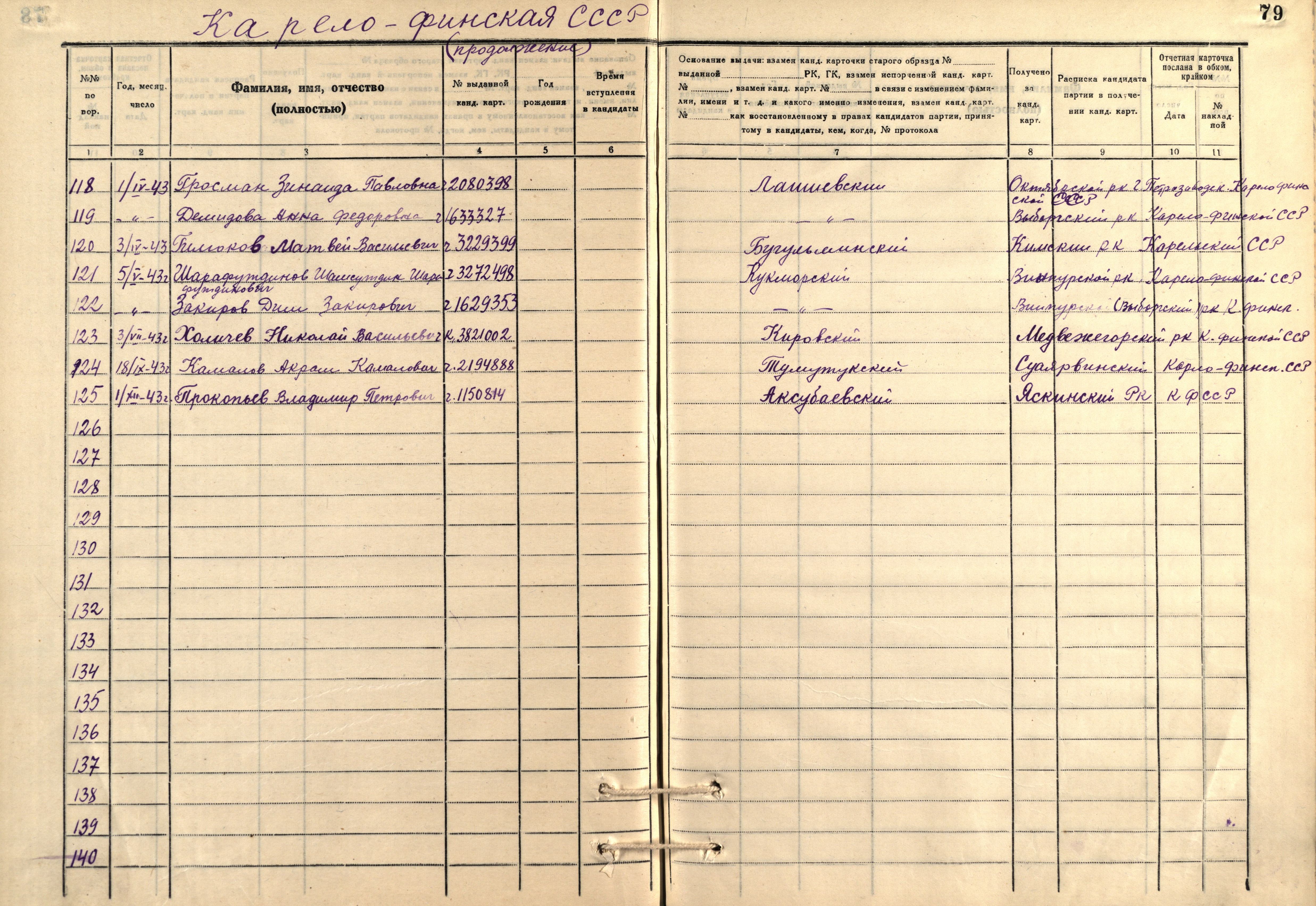 Список эвакуированного населения из Карело-Финской ССР, едущих на постоянное местожительство в Карело-Финскую ССР.