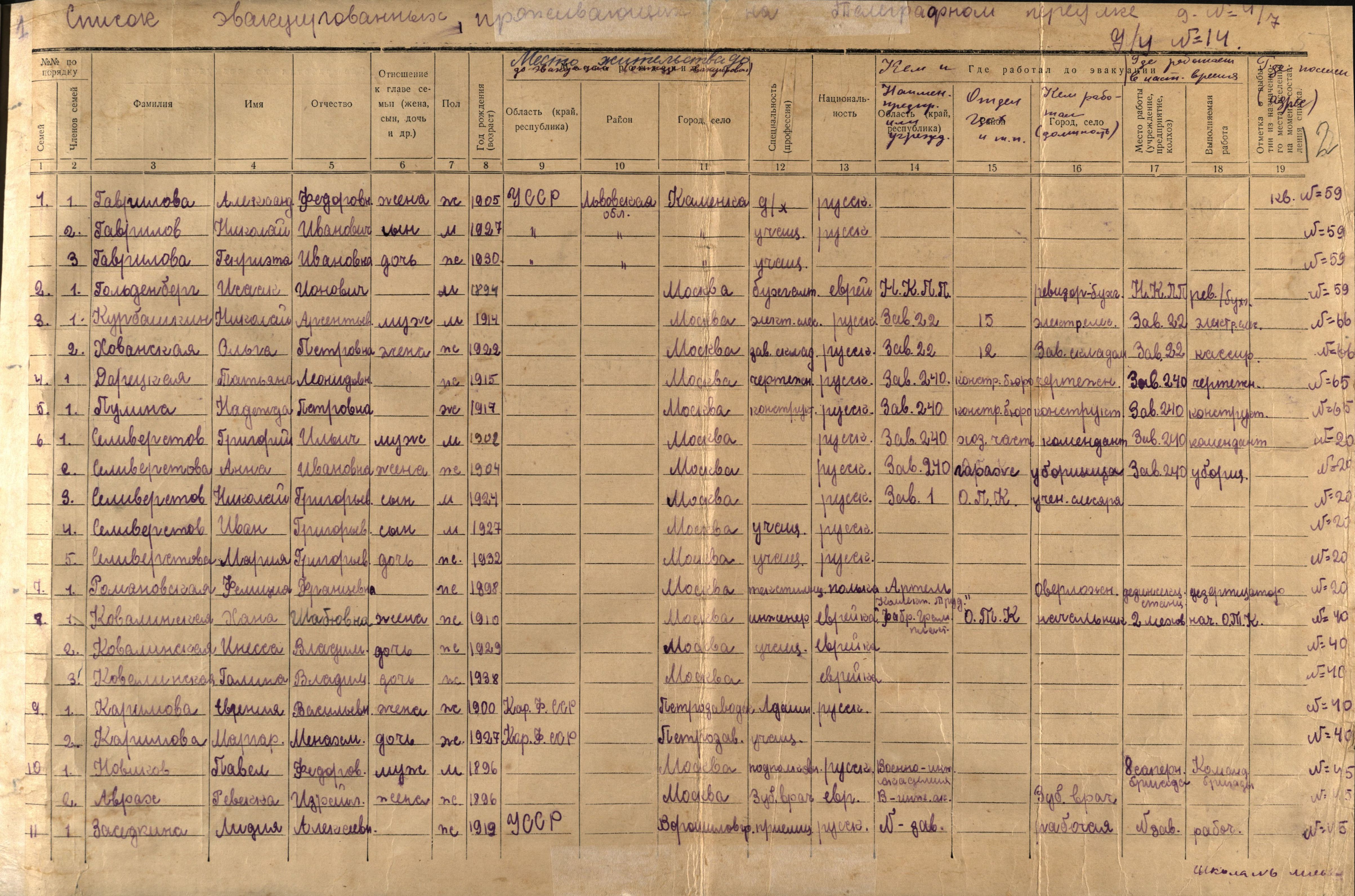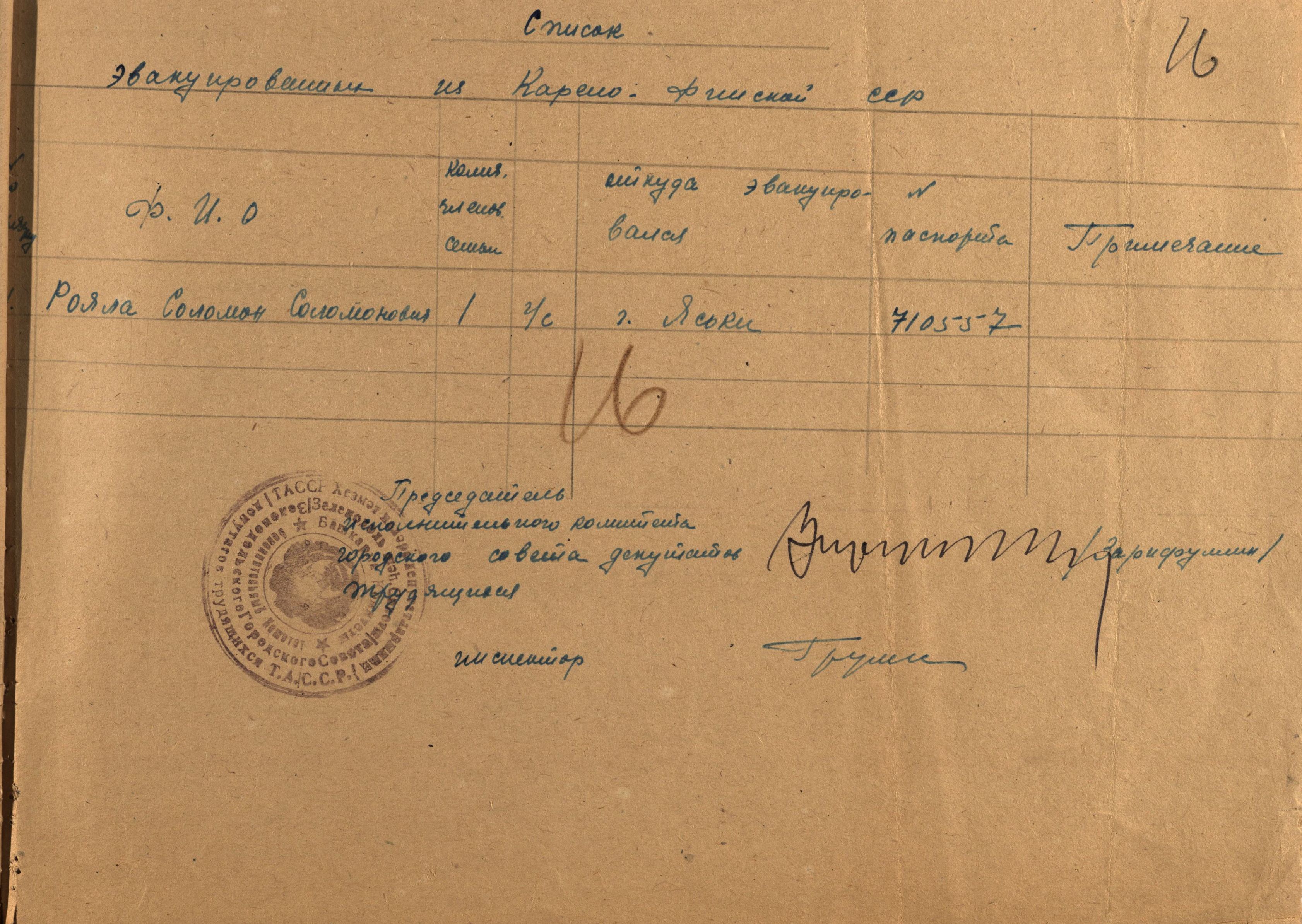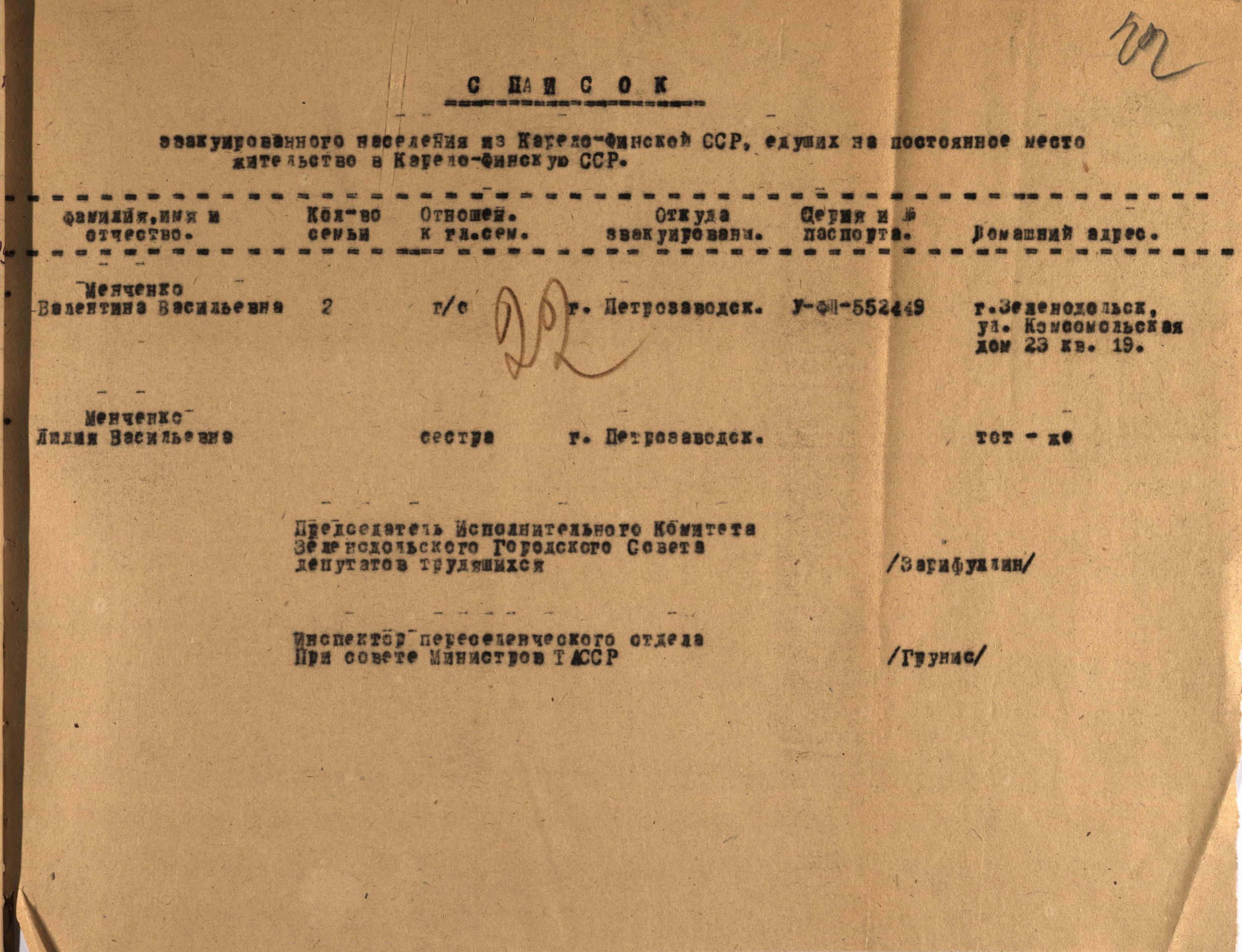 Из списков эвакуированных граждан из Карело-Финской ССР.