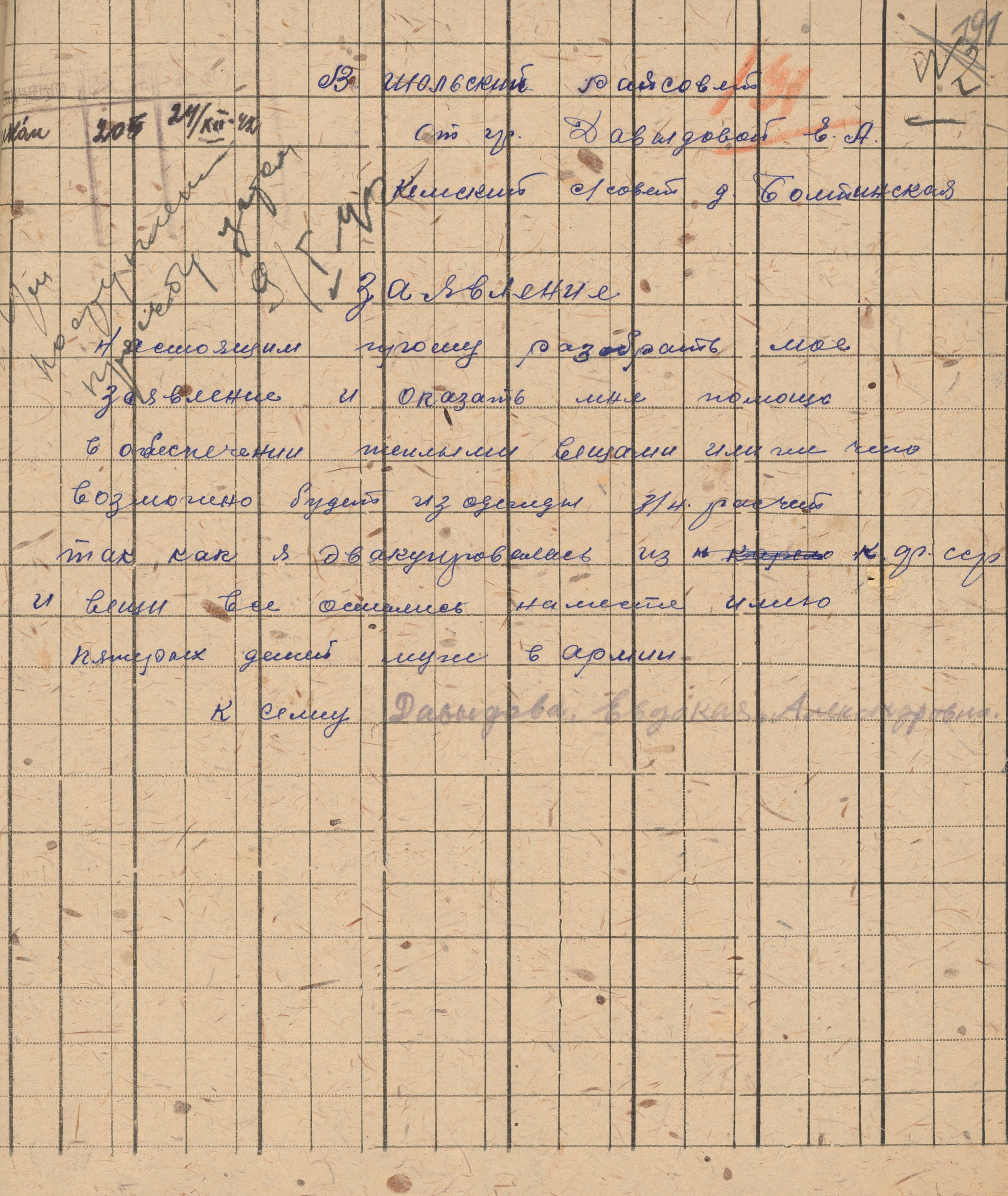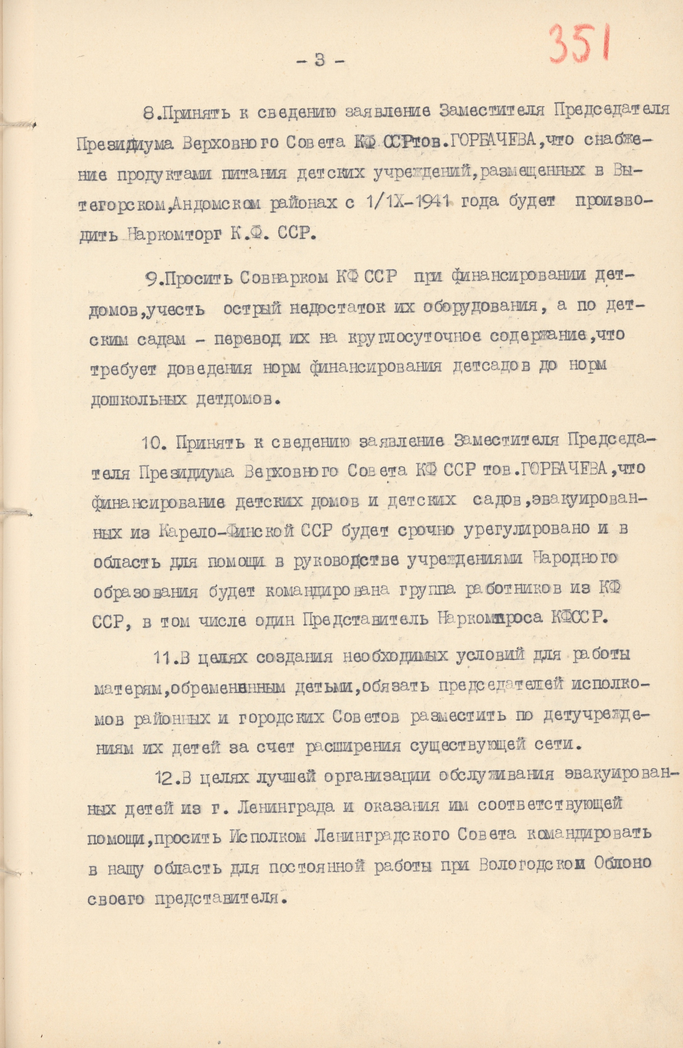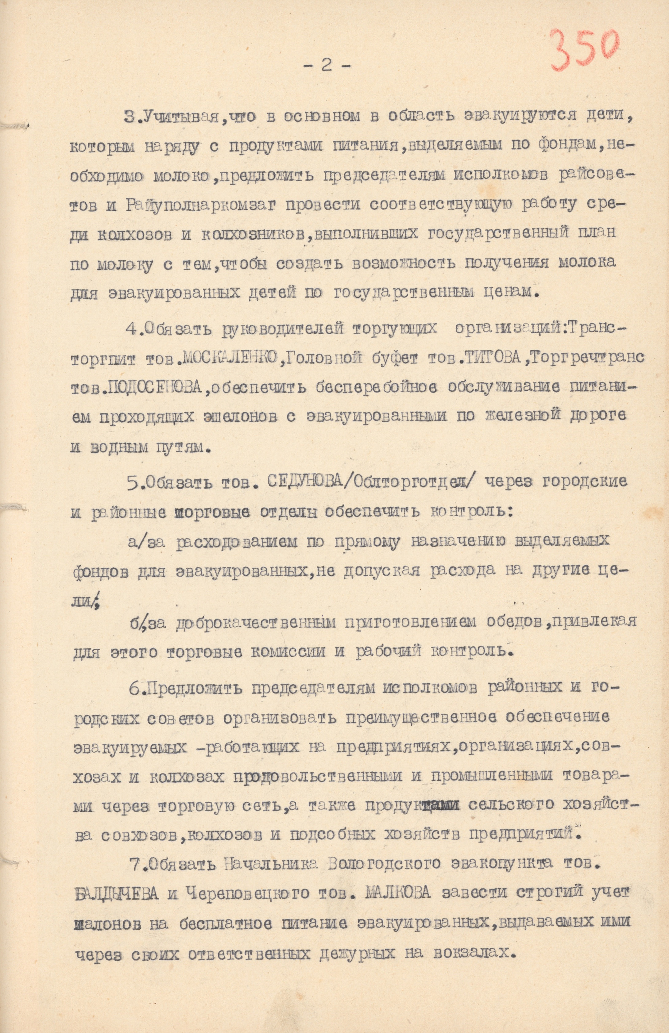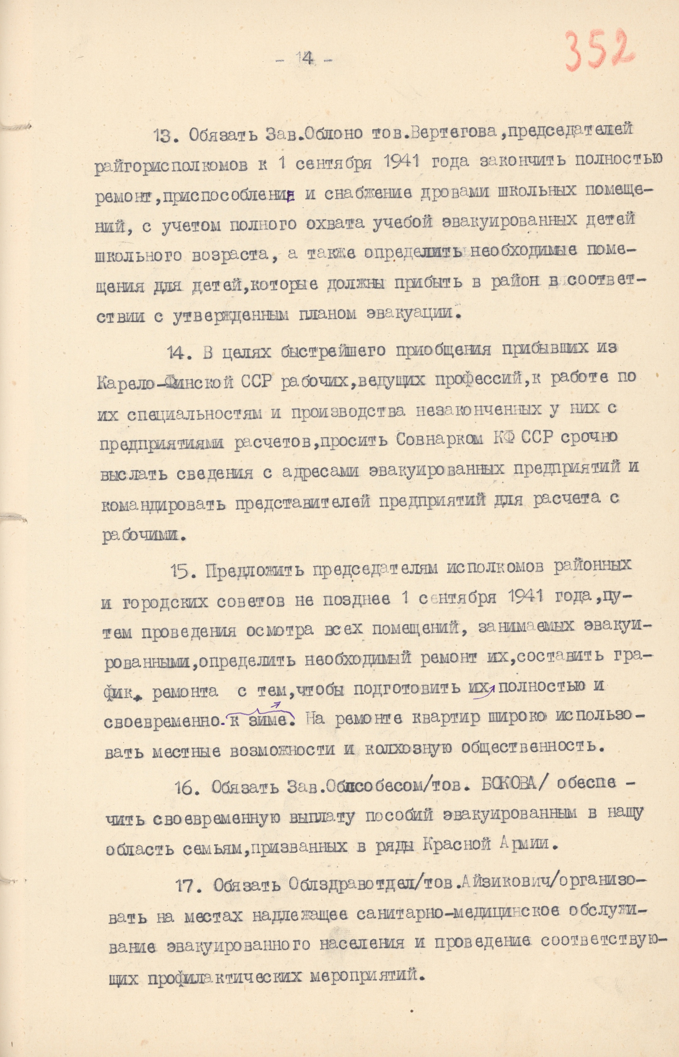 Из протокола № 37 заседания исполкома Чебсарского райсовета депутатов трудящихся Вологодской области о разборе заявлений, эвакуированных из КФССР С. М. Чеснокова и М. А. Туерова об оказании единовременной денежной помощи в связи с призывом в школу ФЗО Молотовской области.