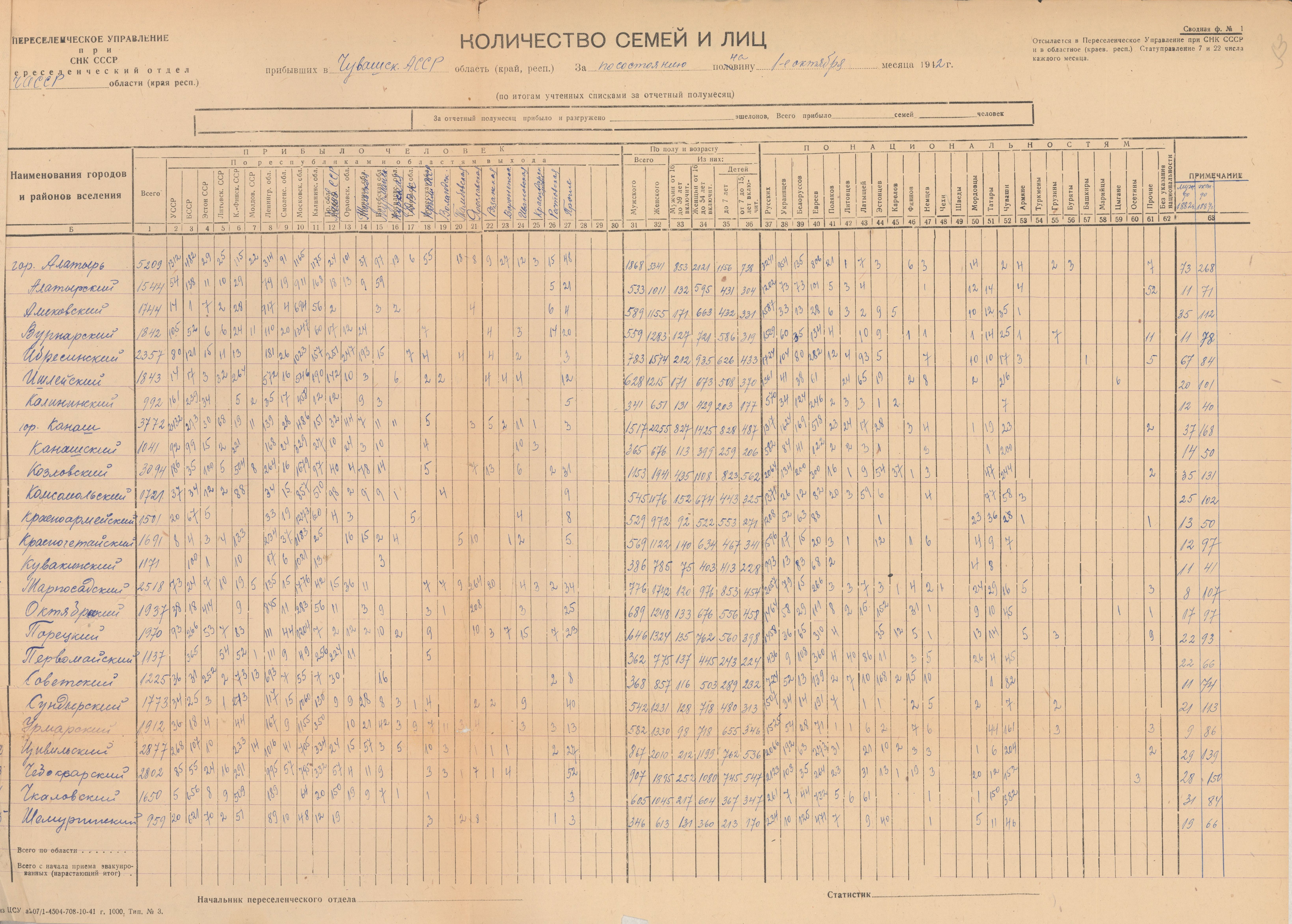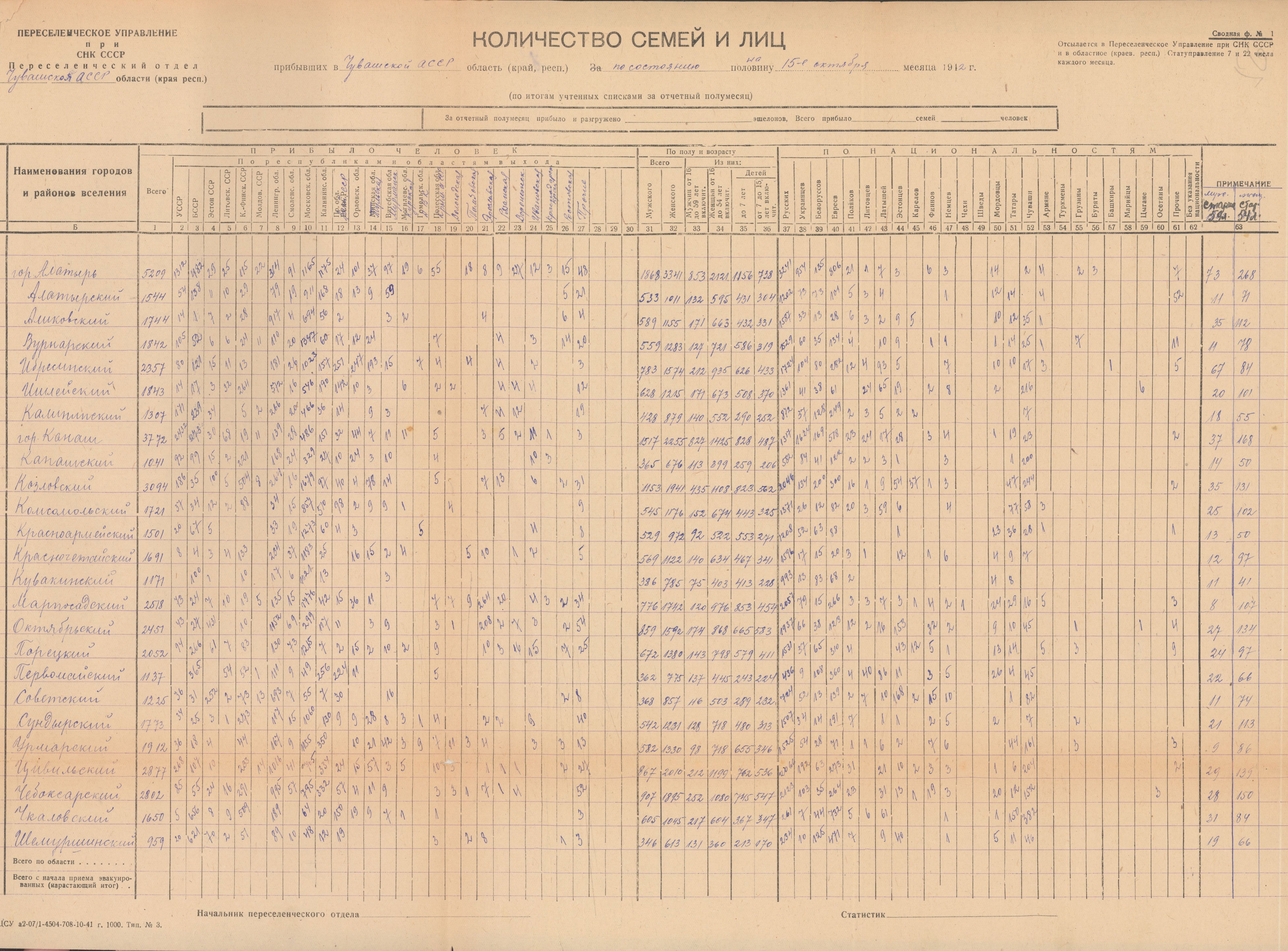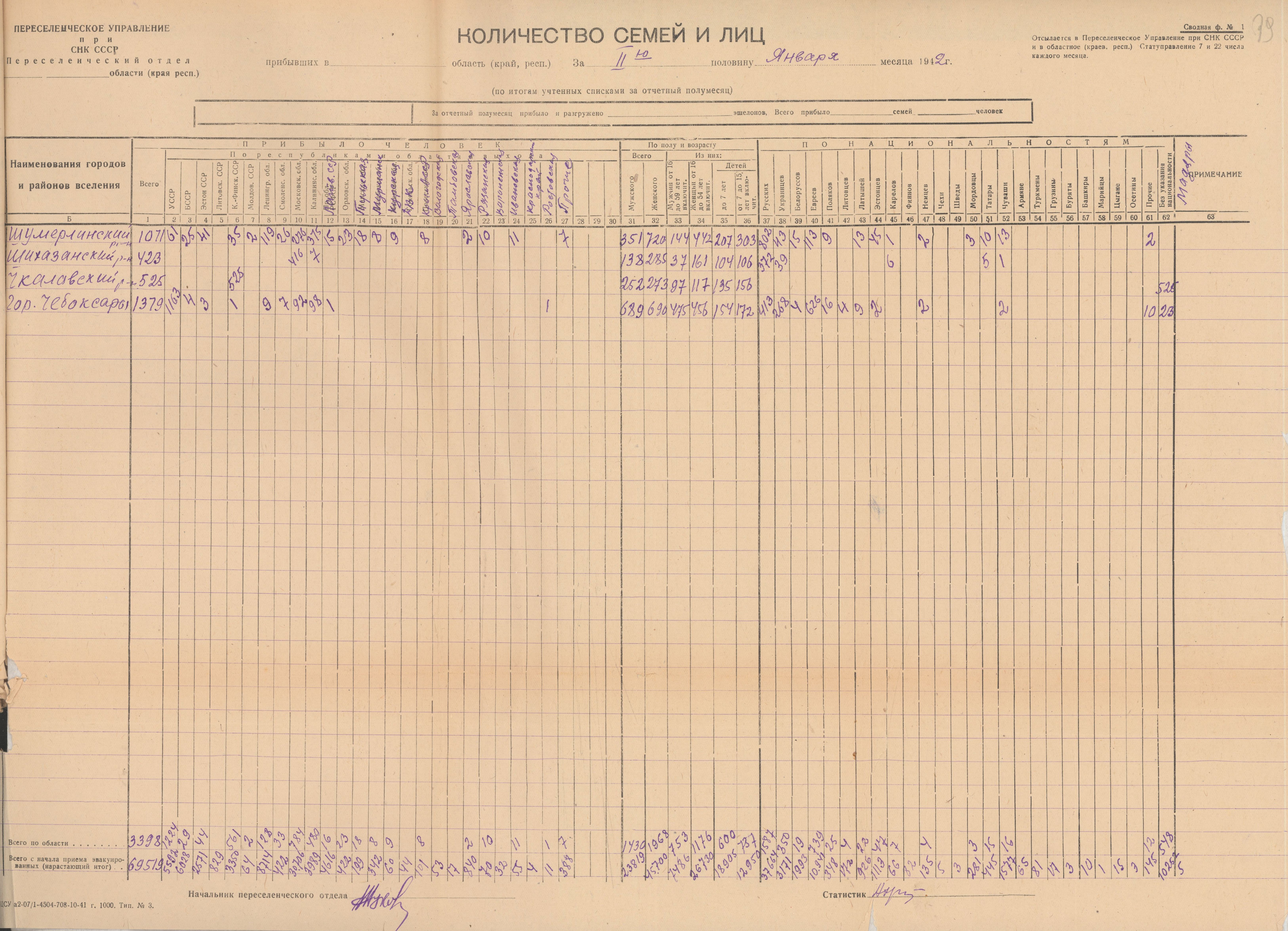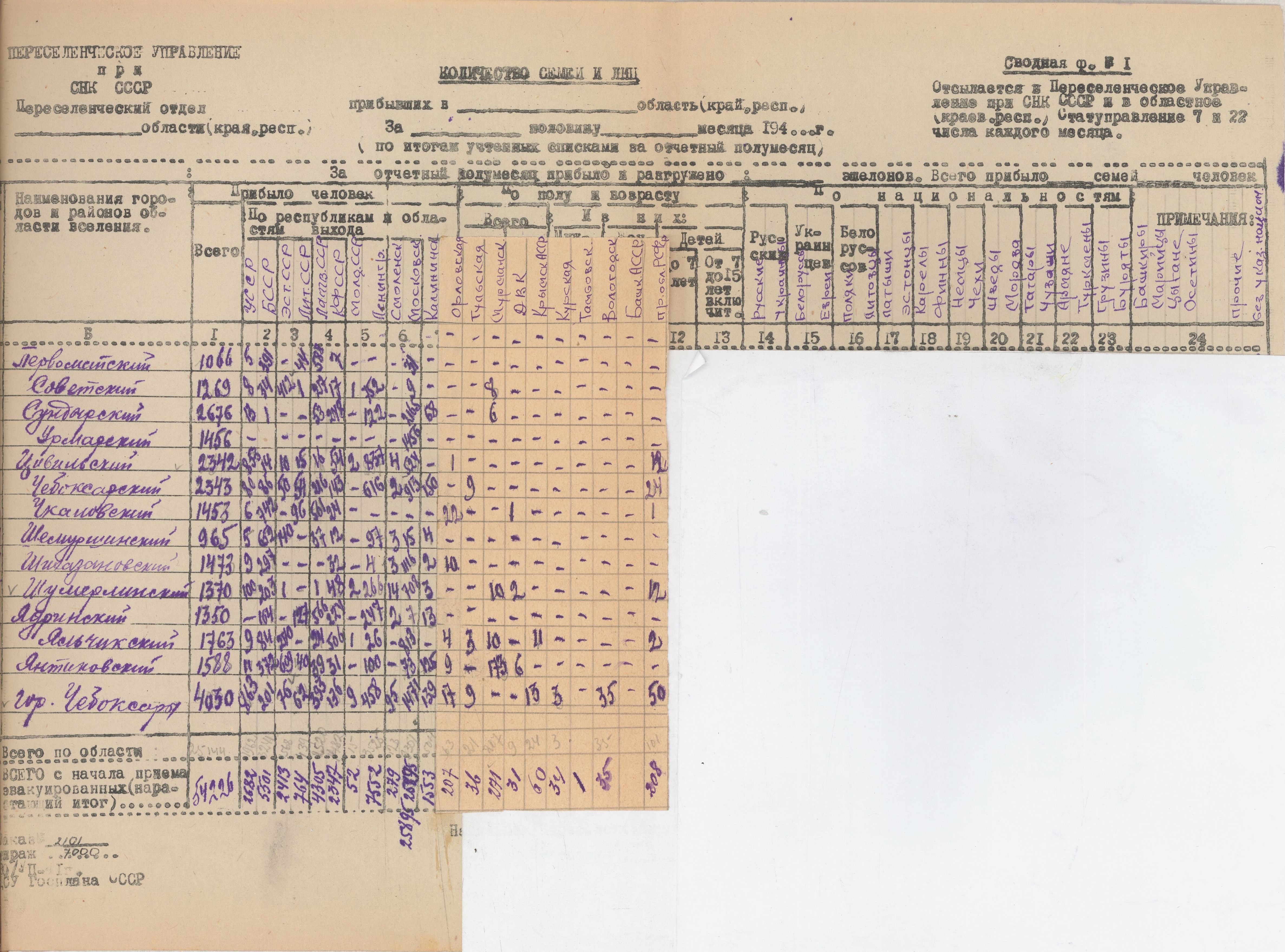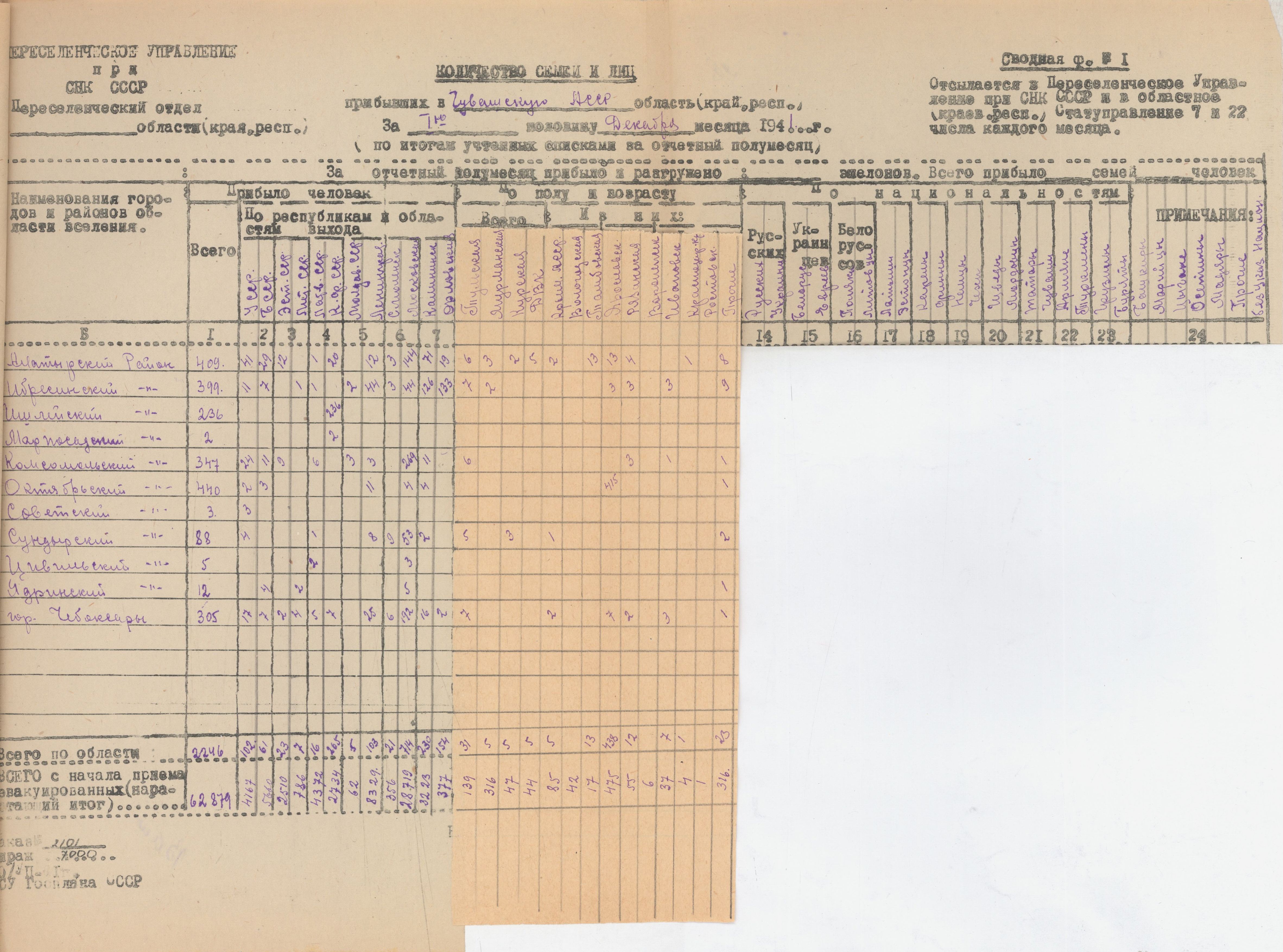 Сведения о количестве семей и лиц эвакуированных в Чувашскую АССР за