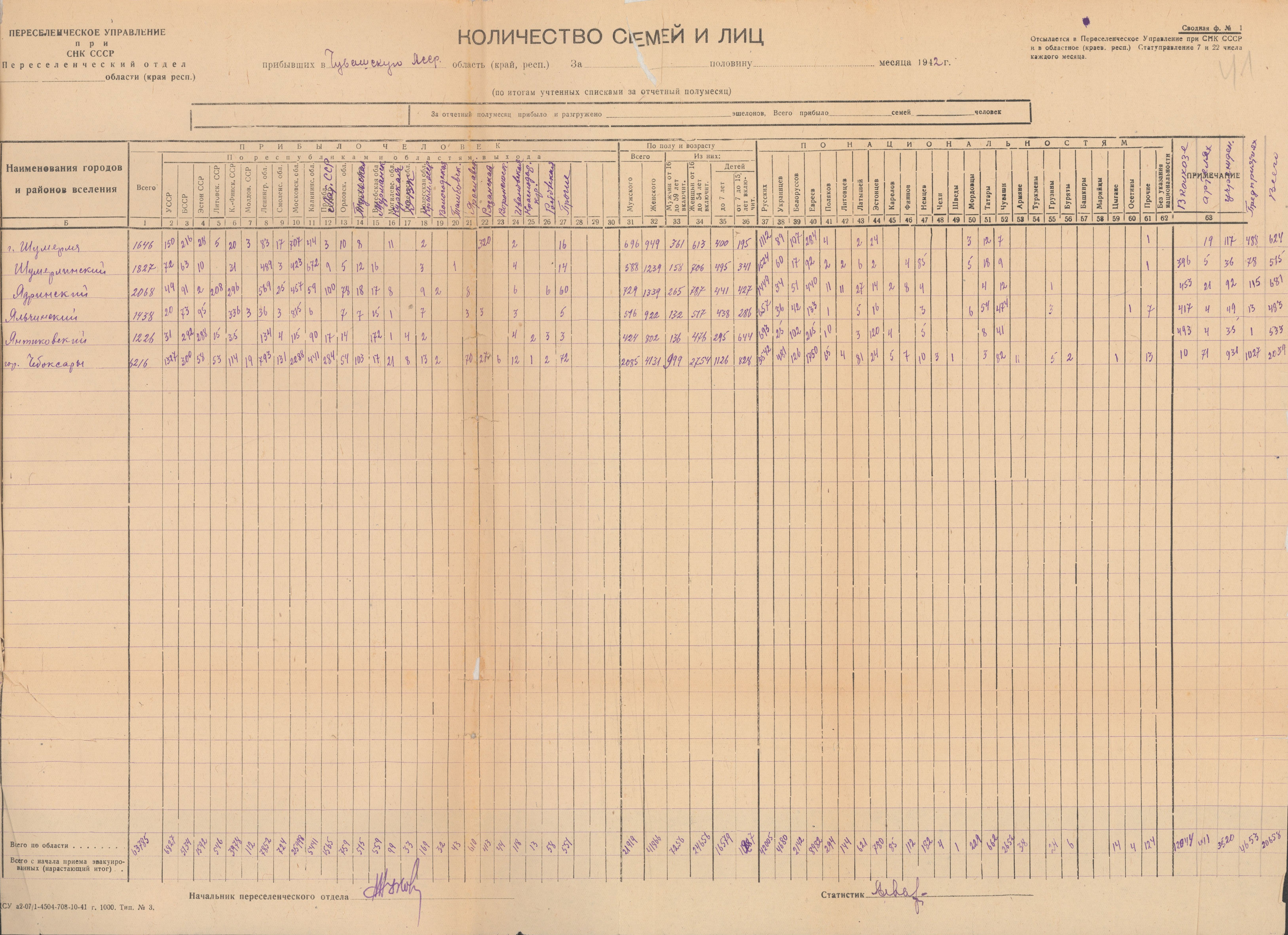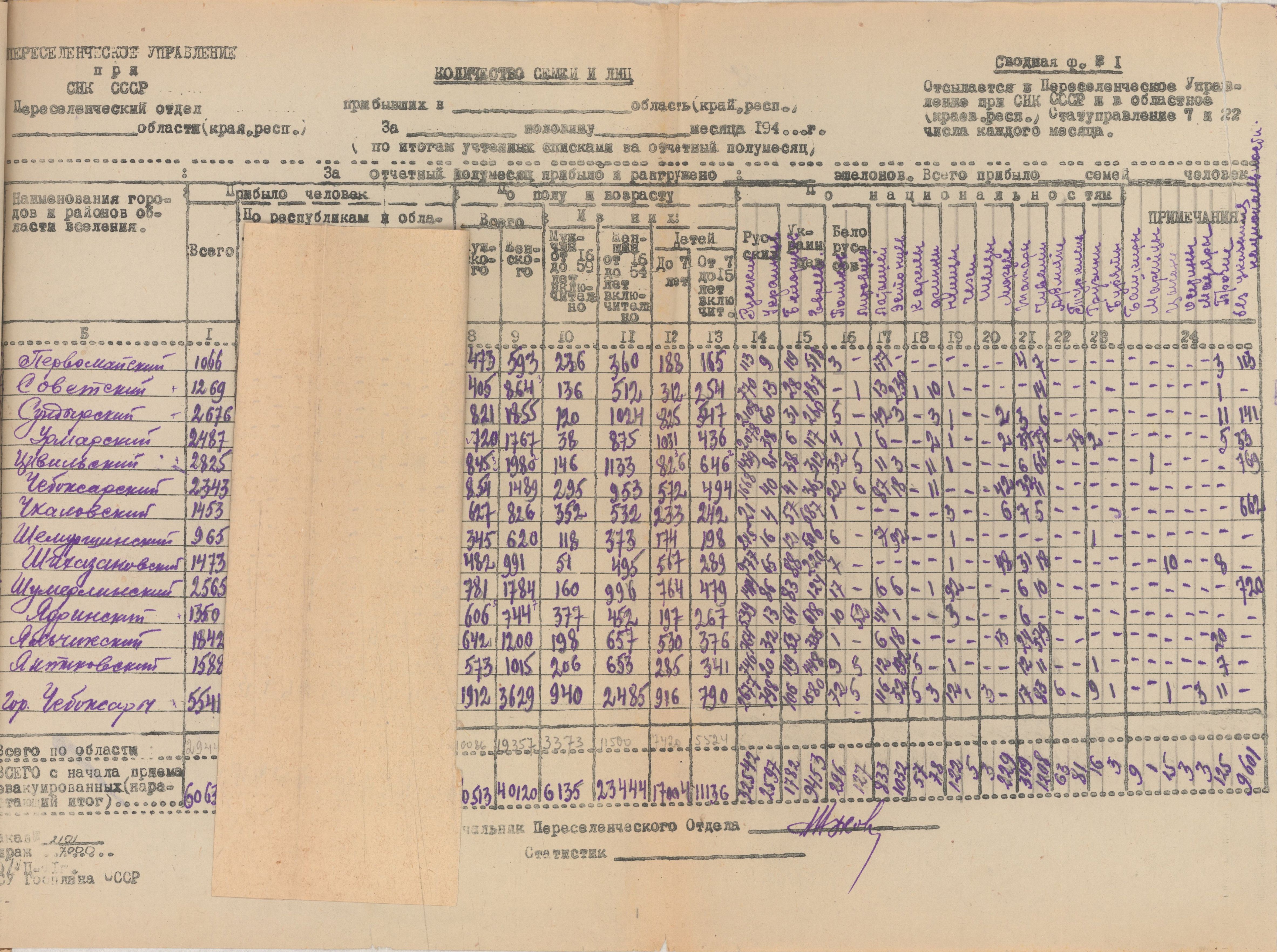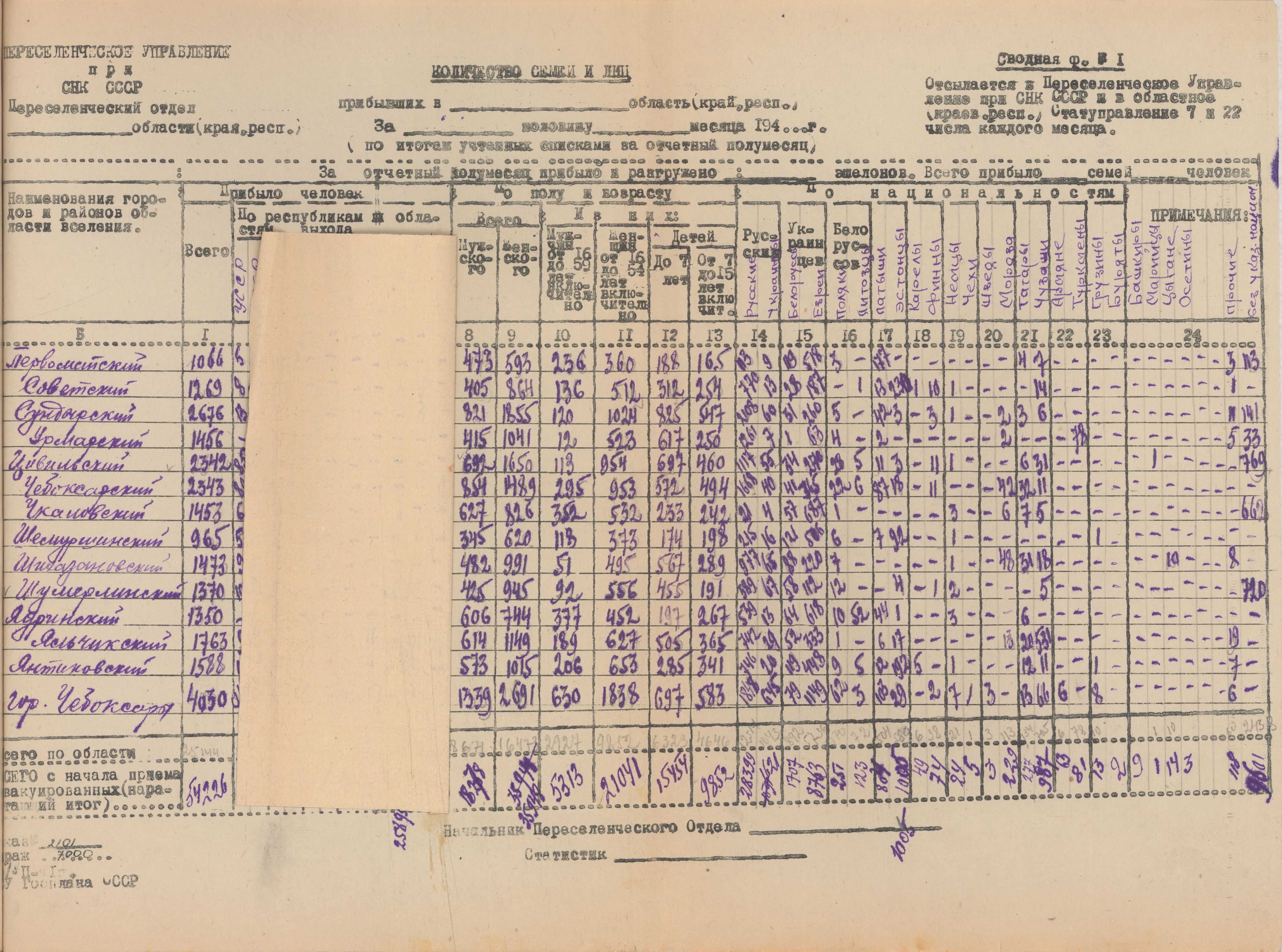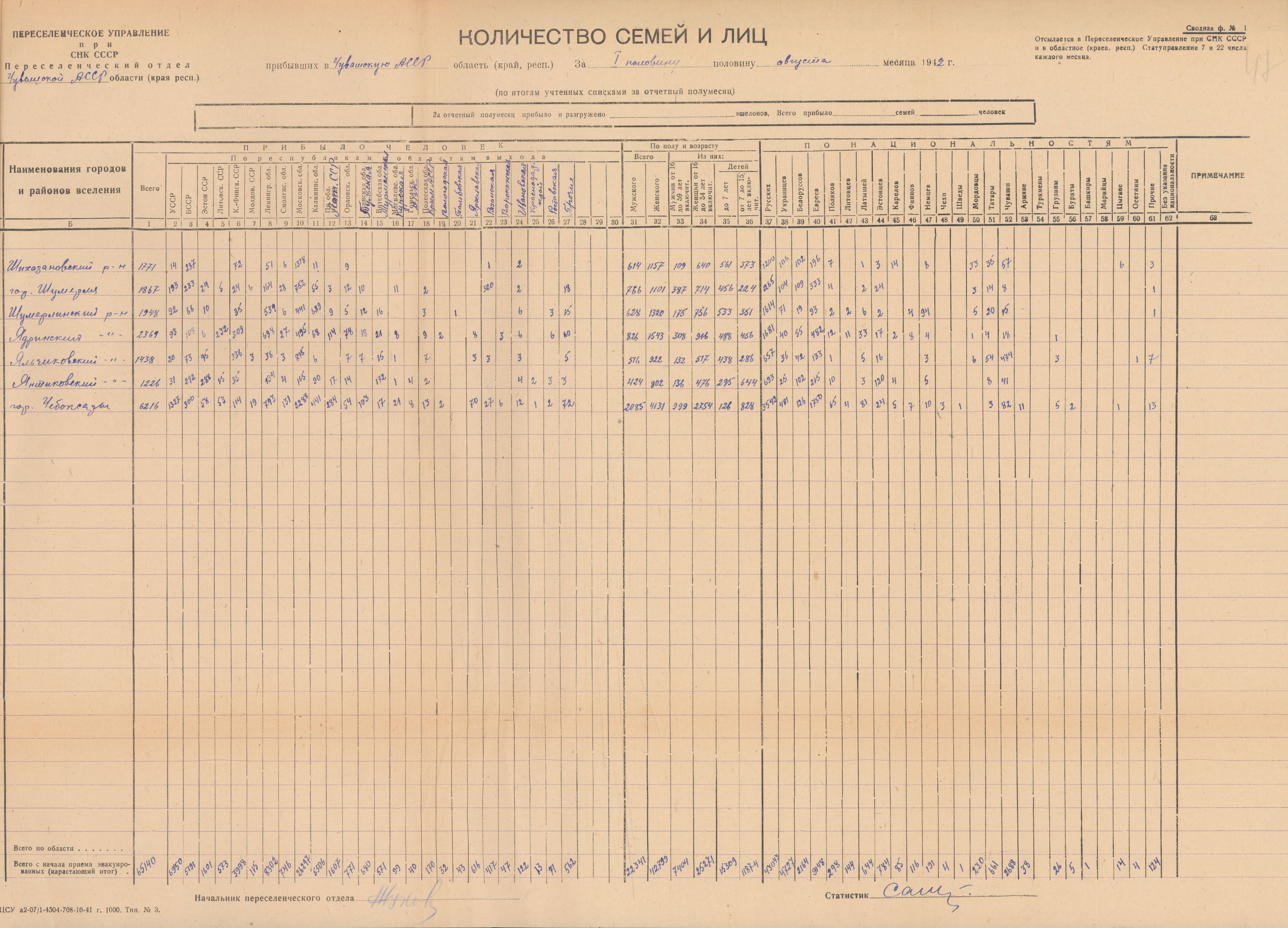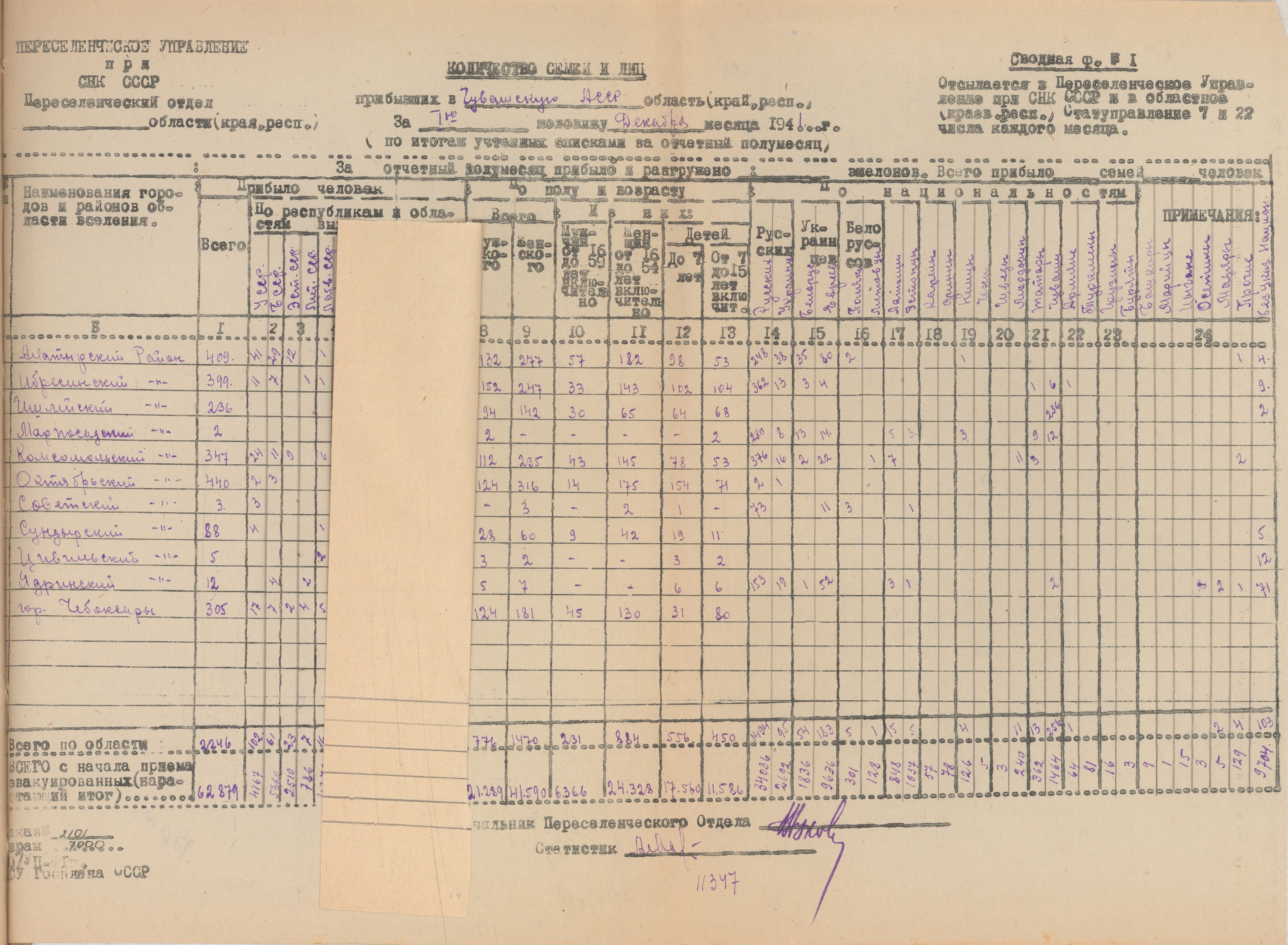 Сведения о количестве семей и лиц эвакуированных в Чувашскую АССР за