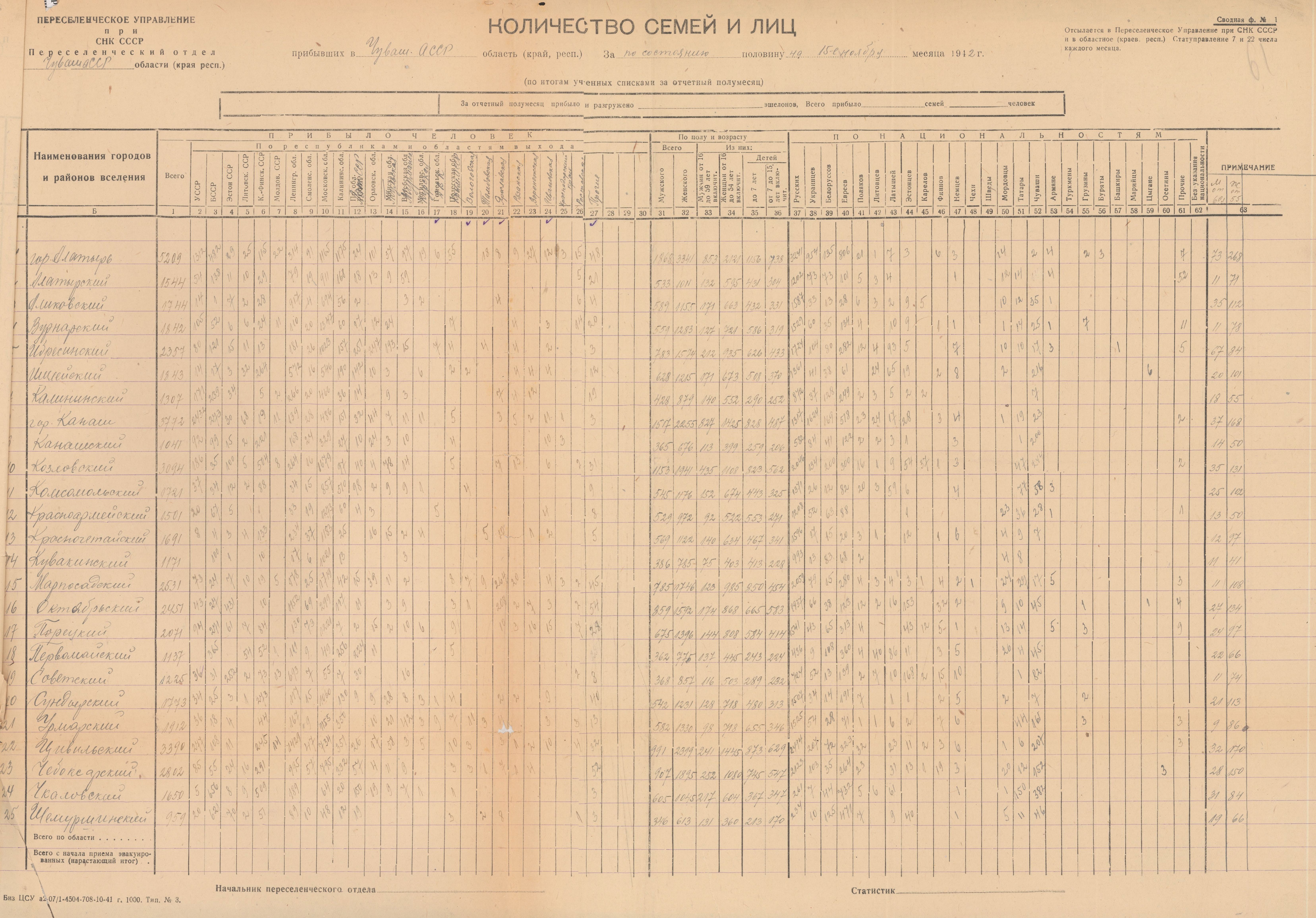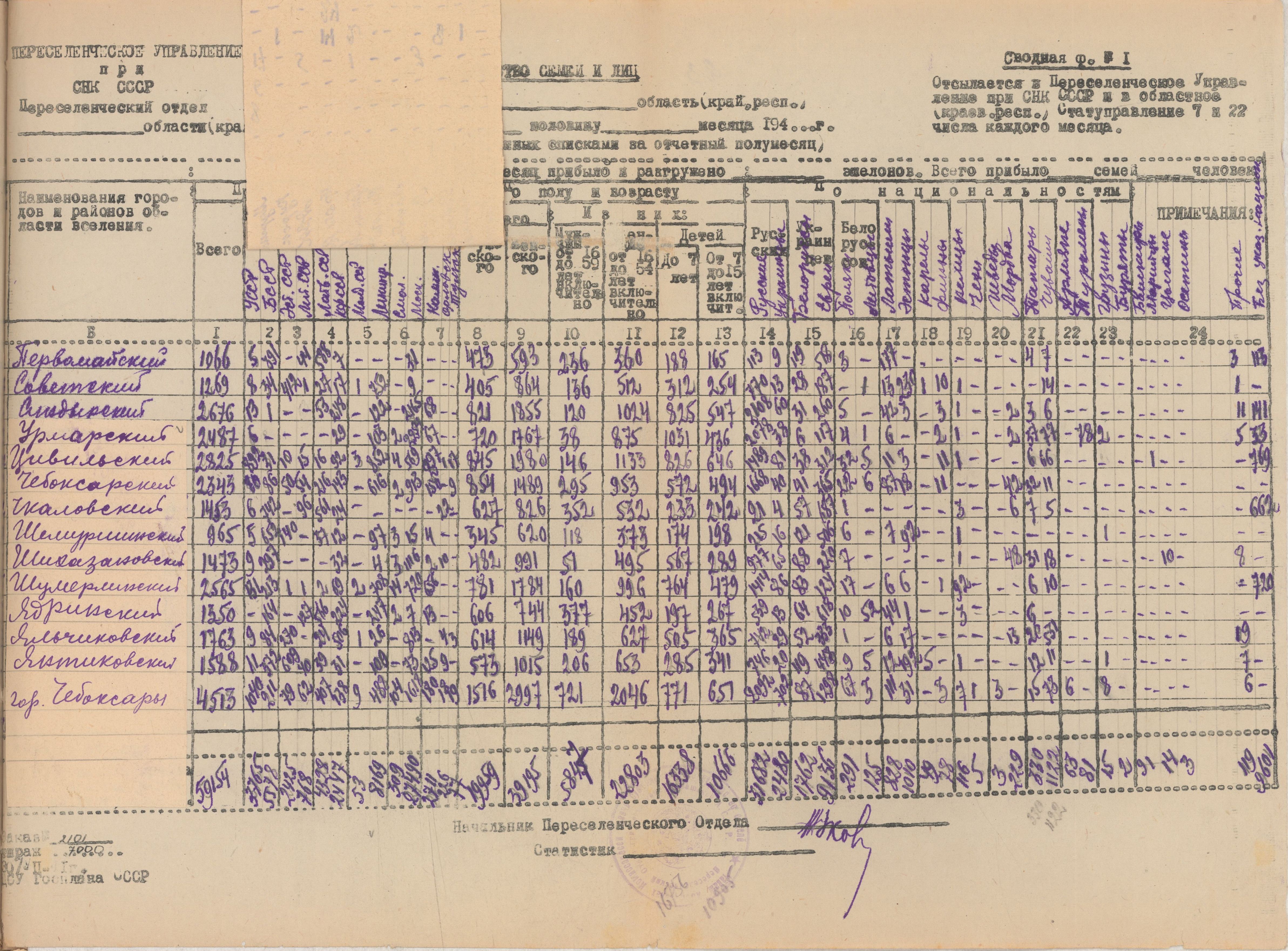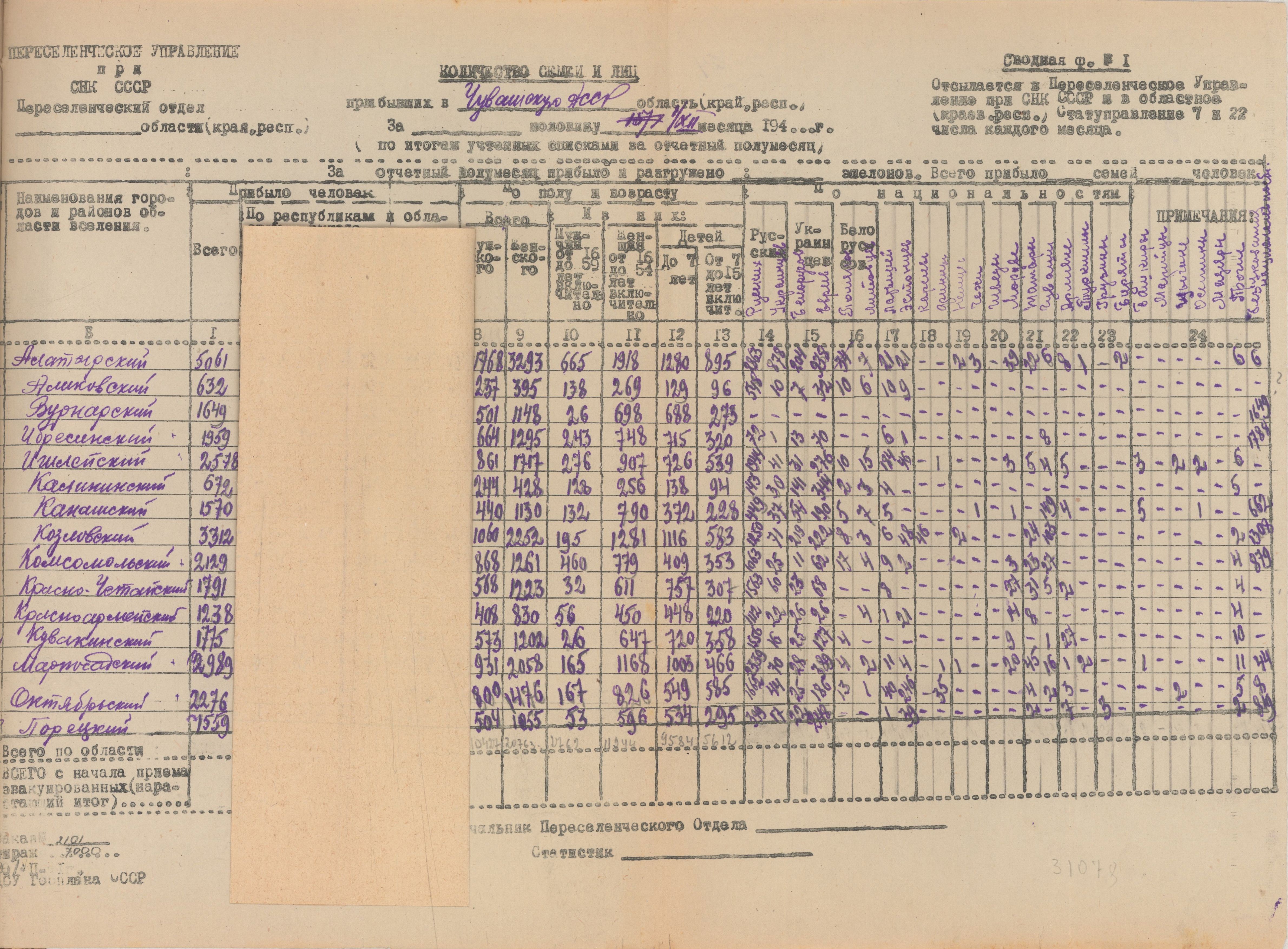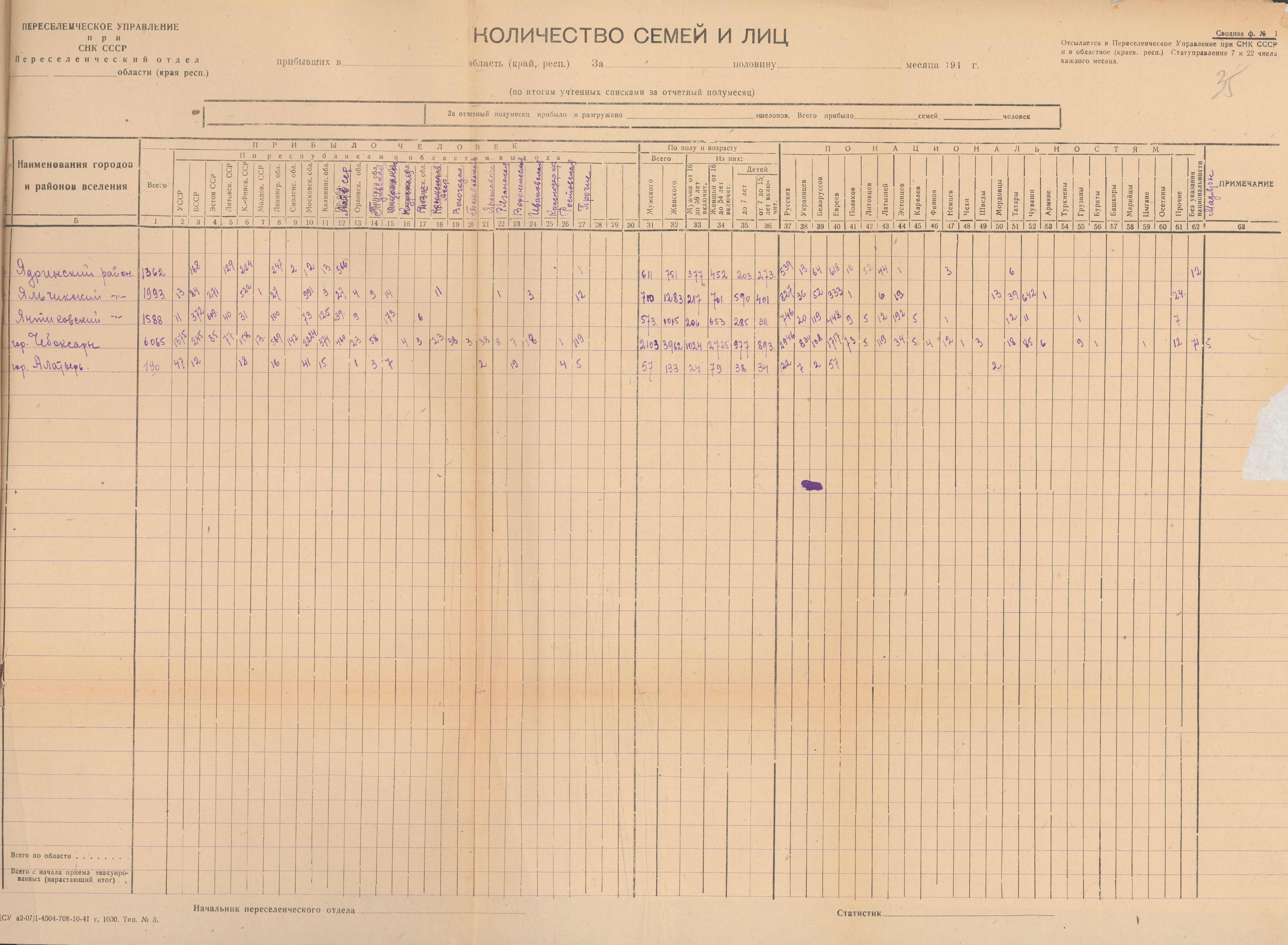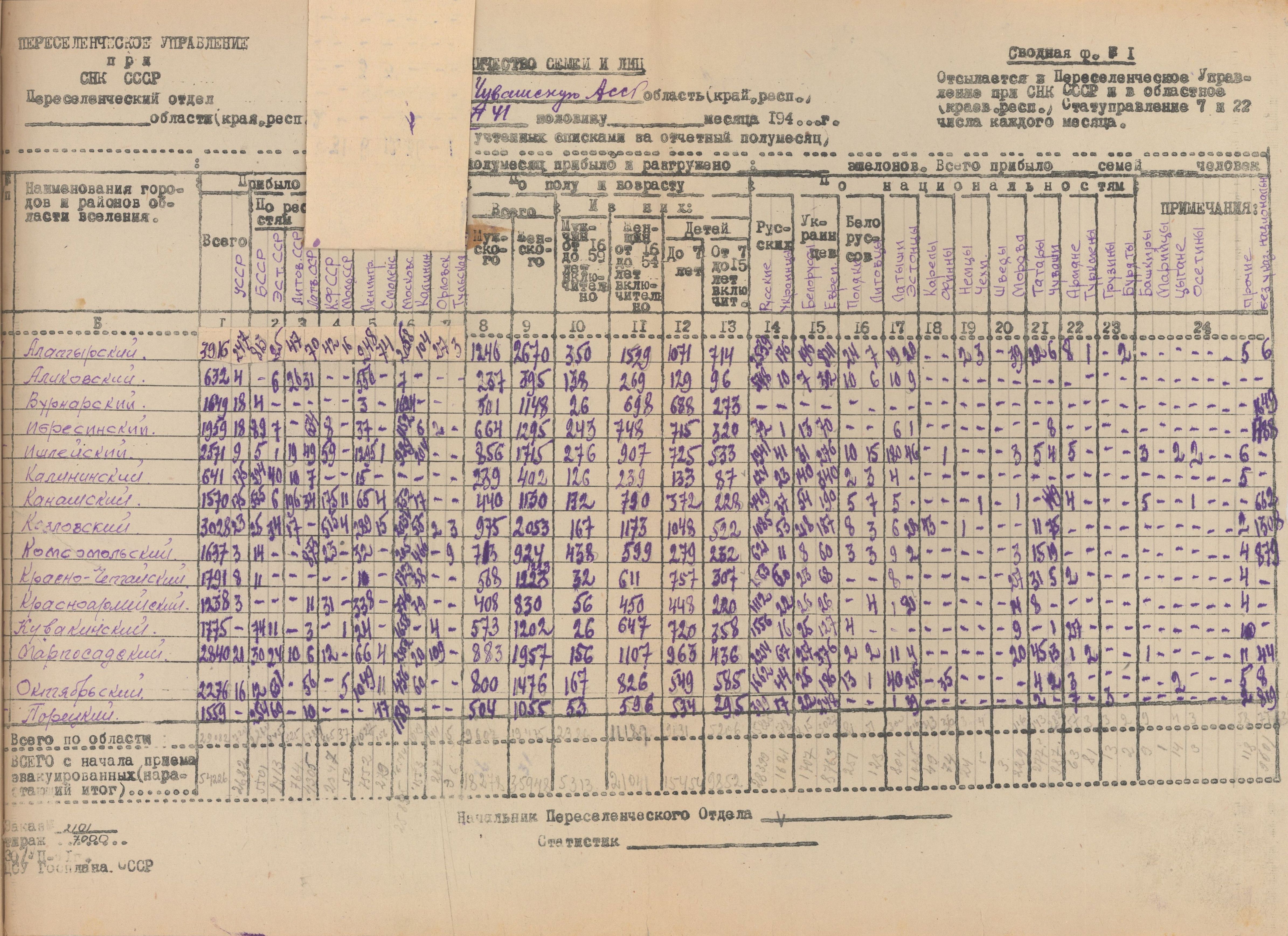 Сведения о количестве семей и лиц эвакуированных в Чувашскую АССР за