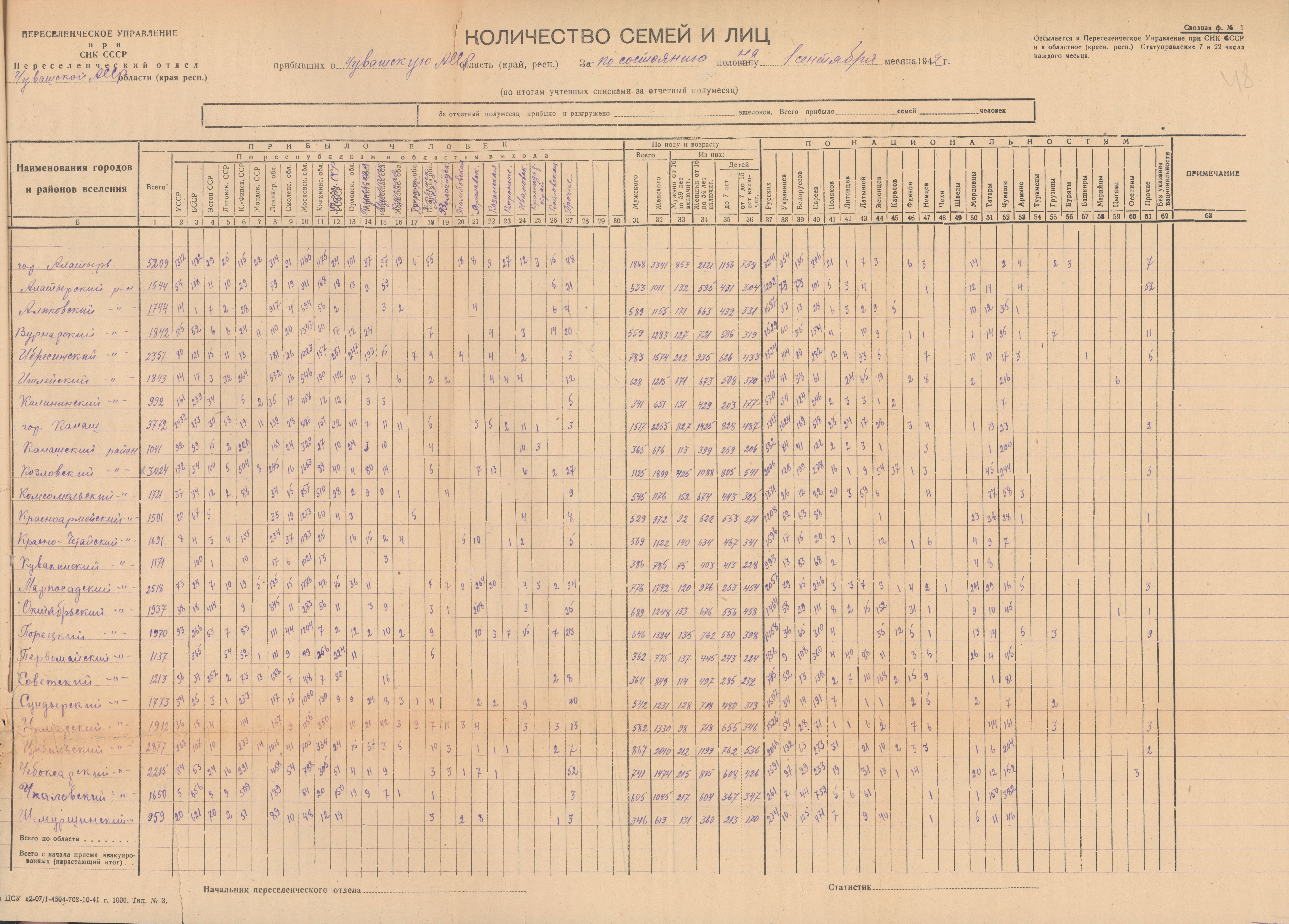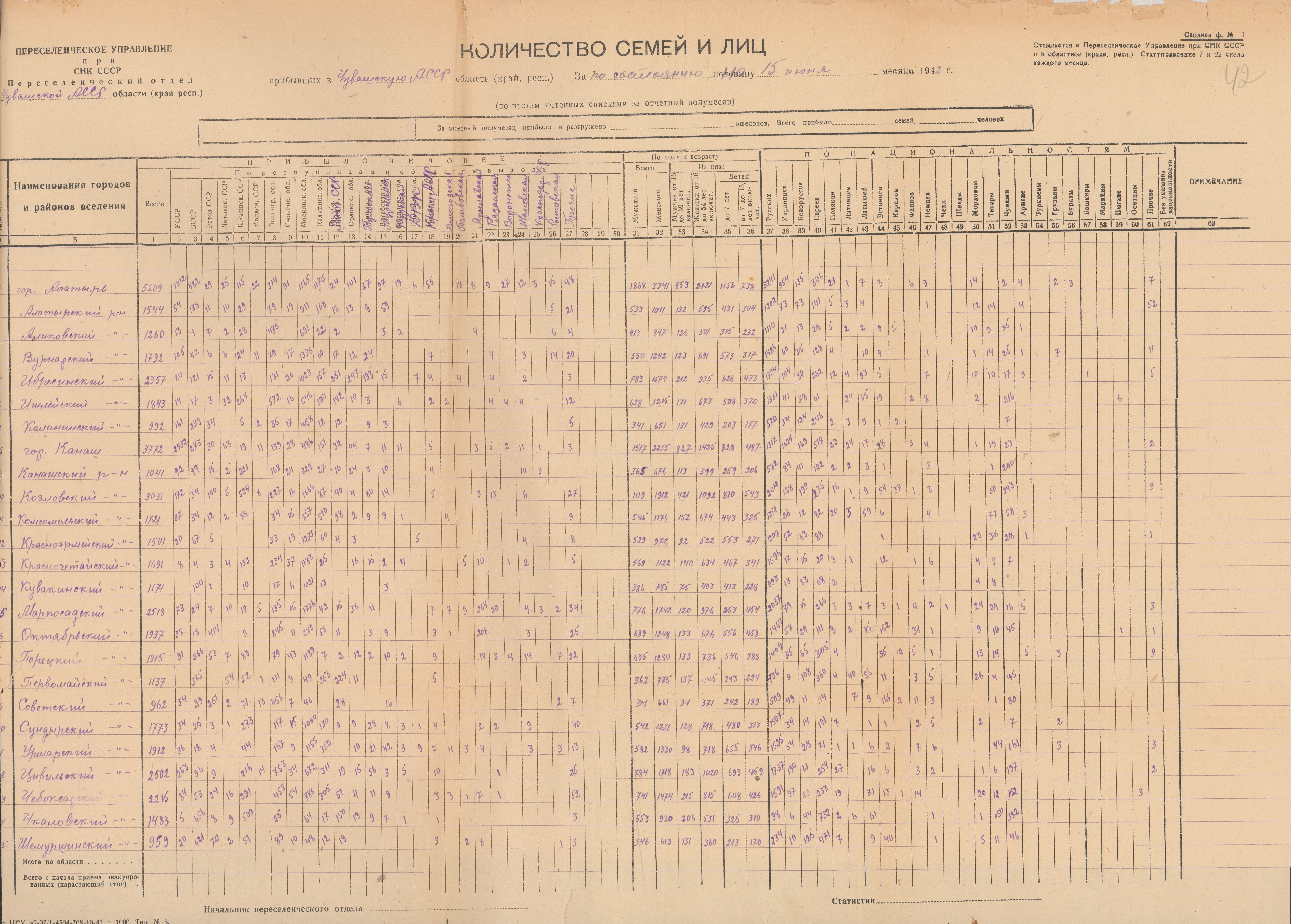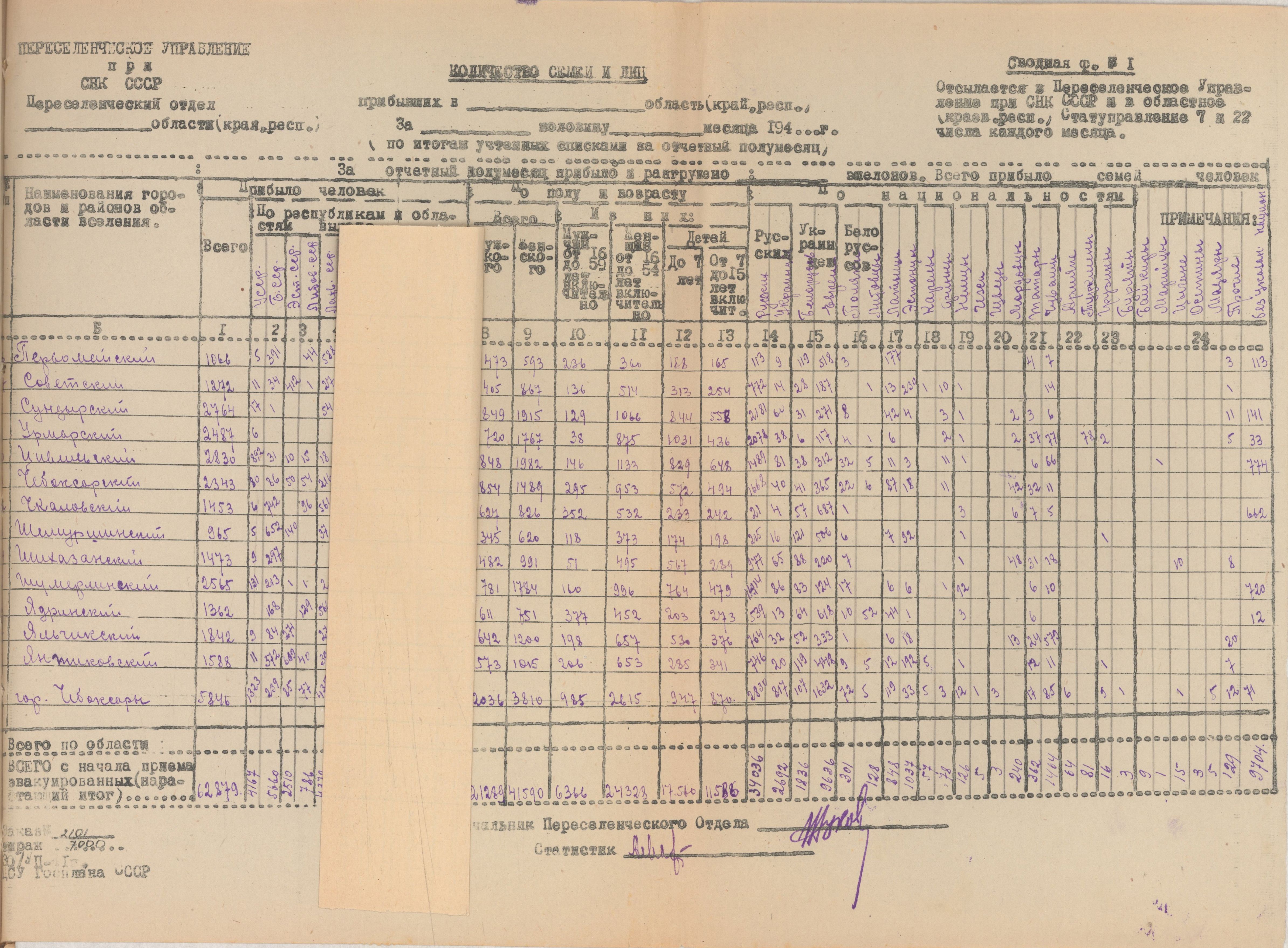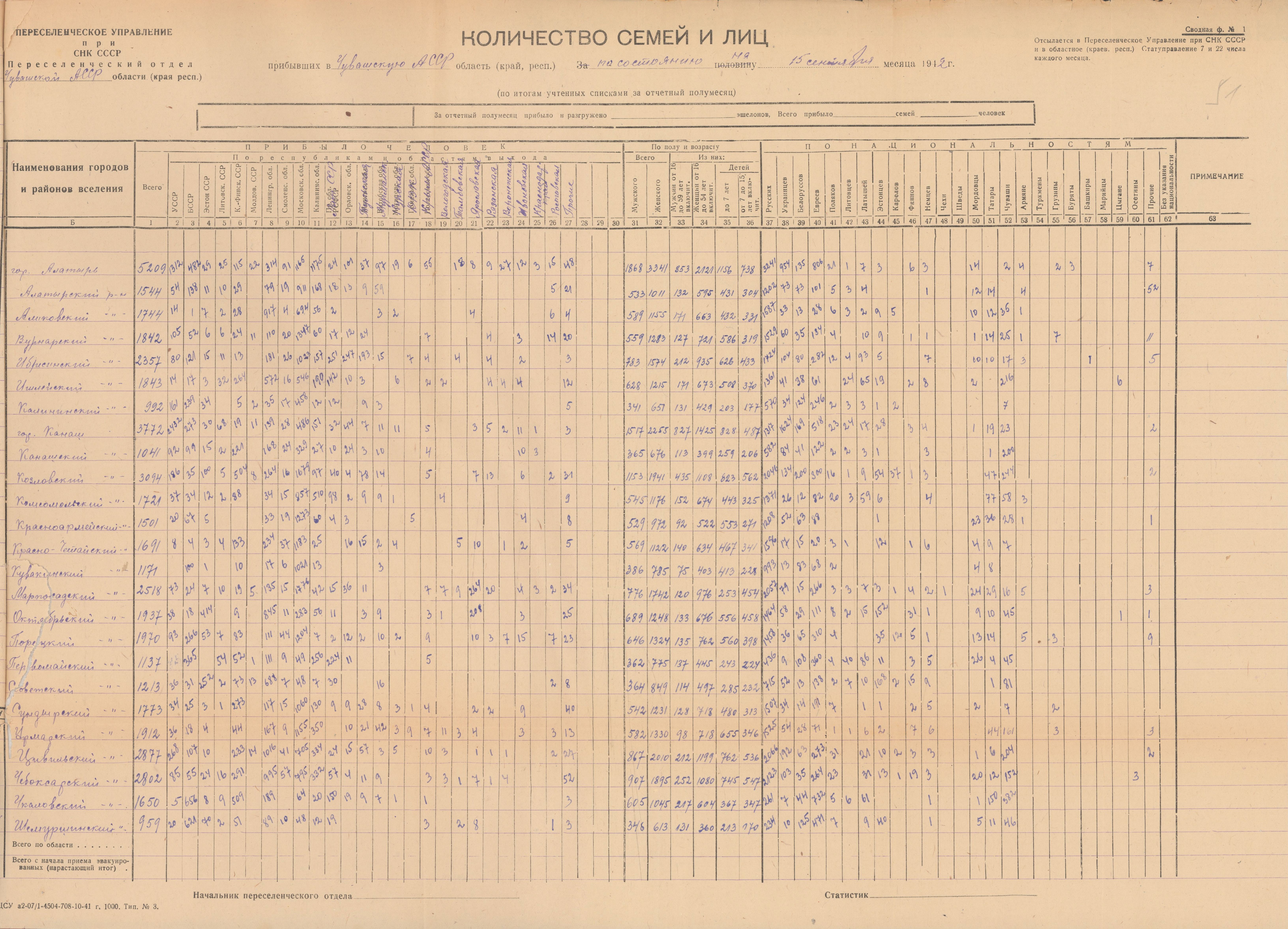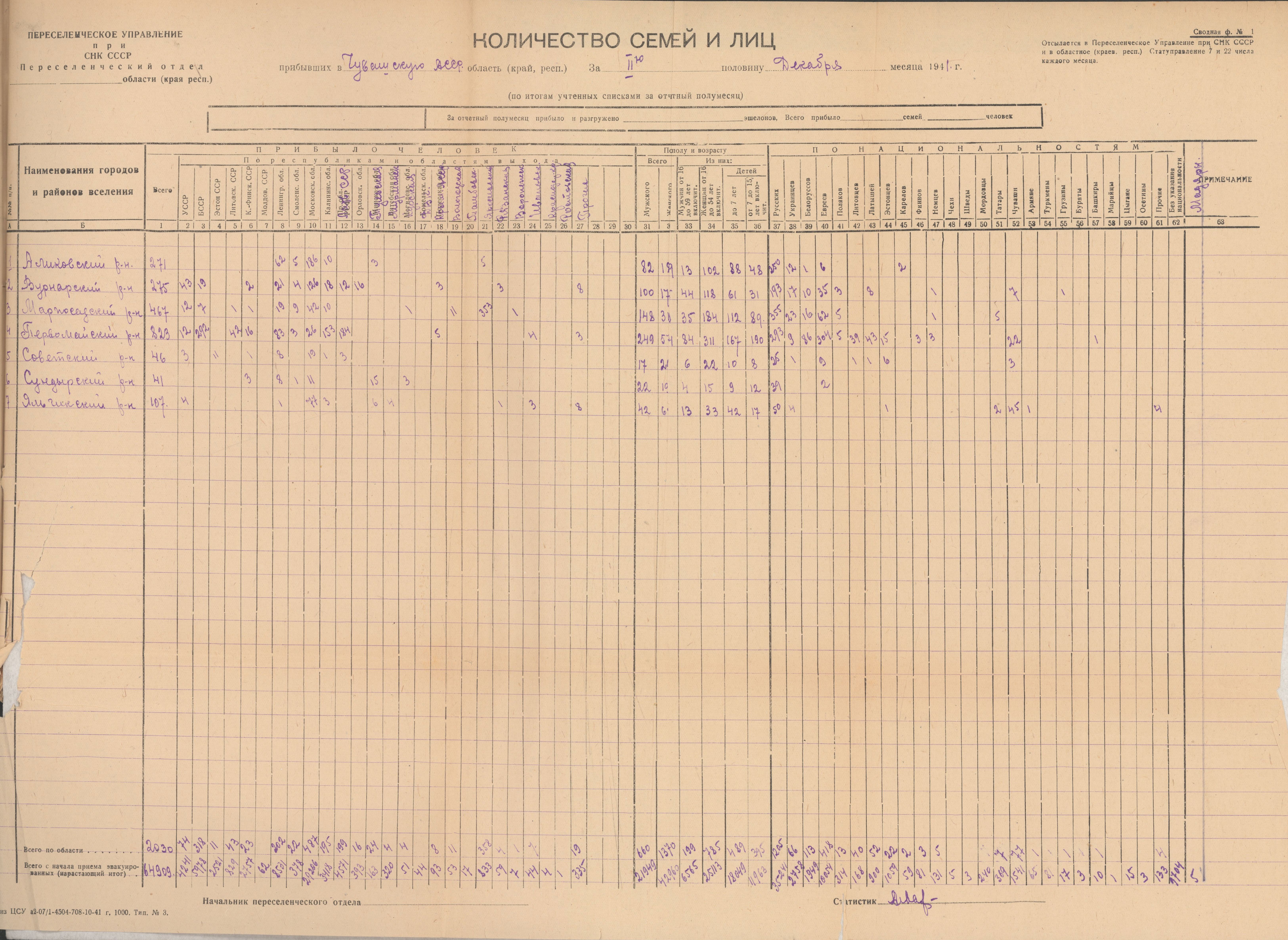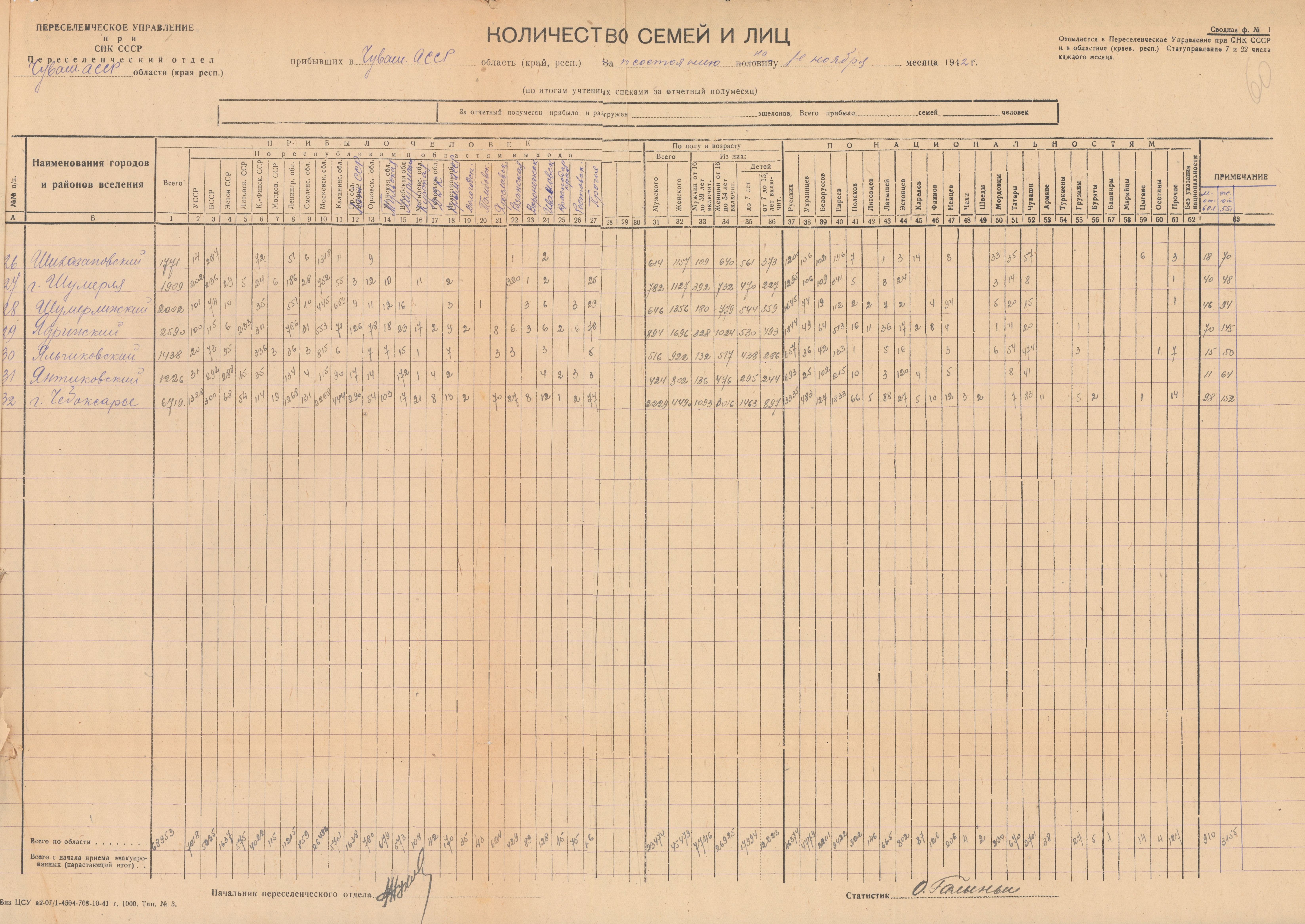 Сведения о количестве семей и лиц эвакуированных в Чувашскую АССР за
