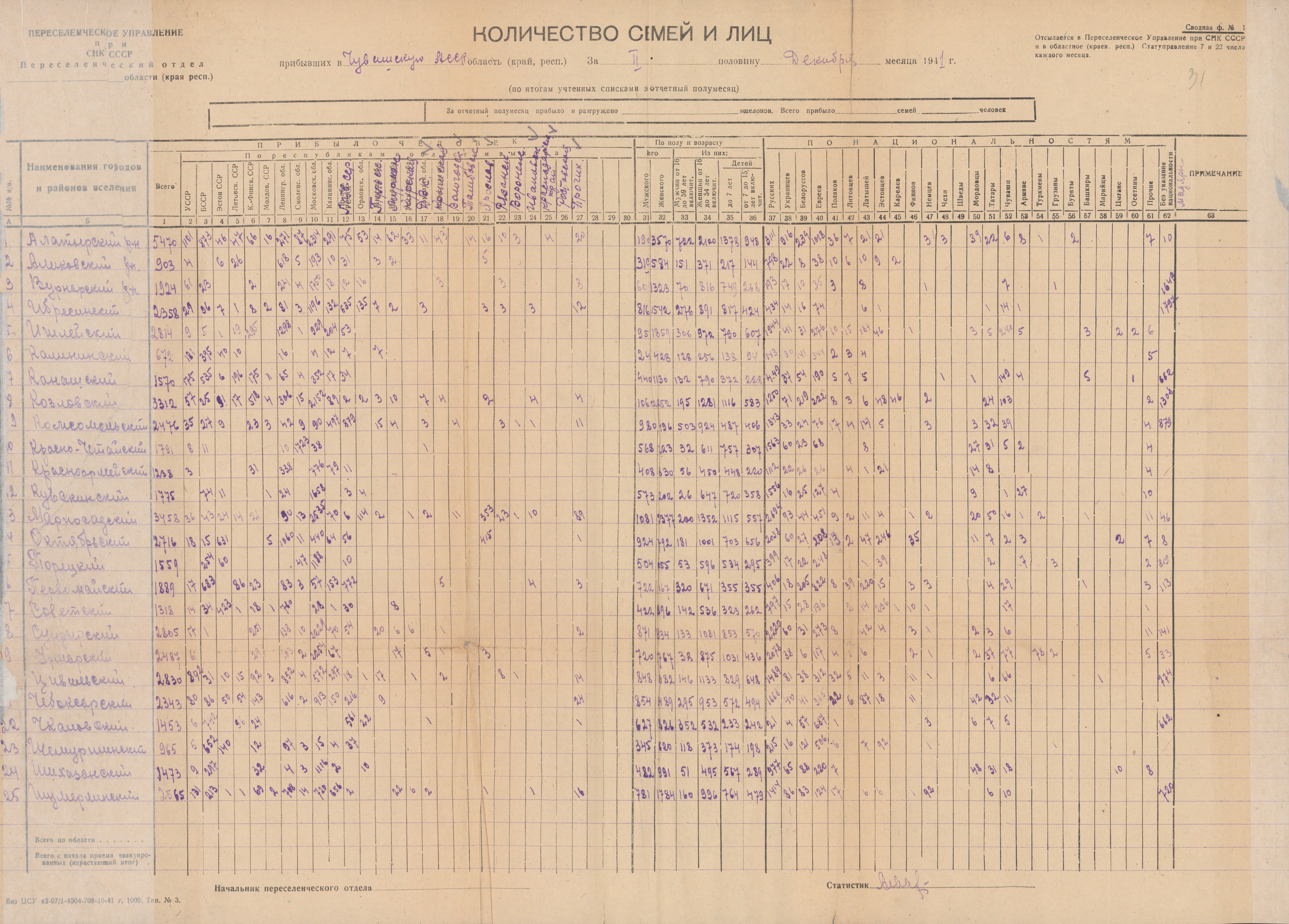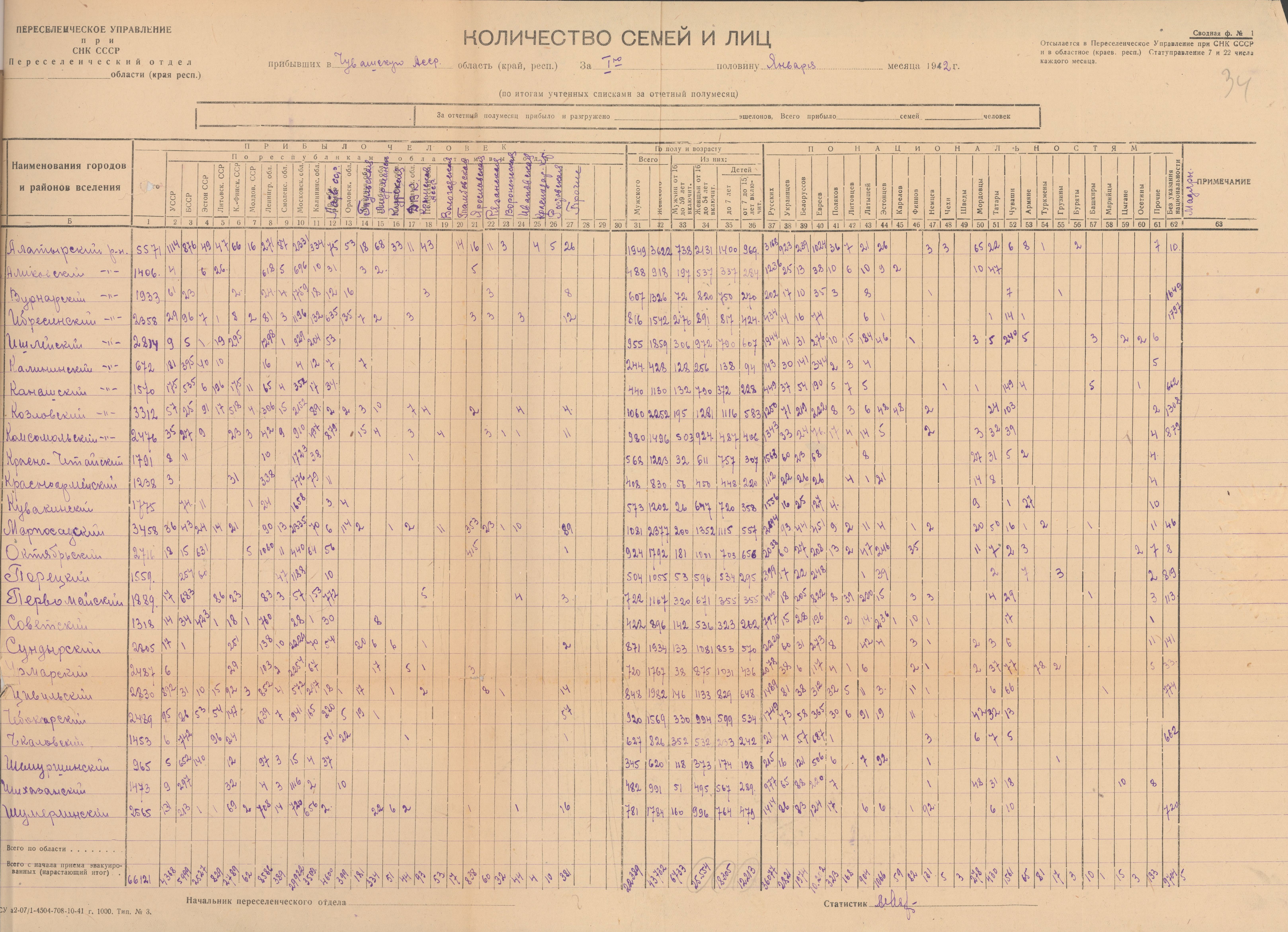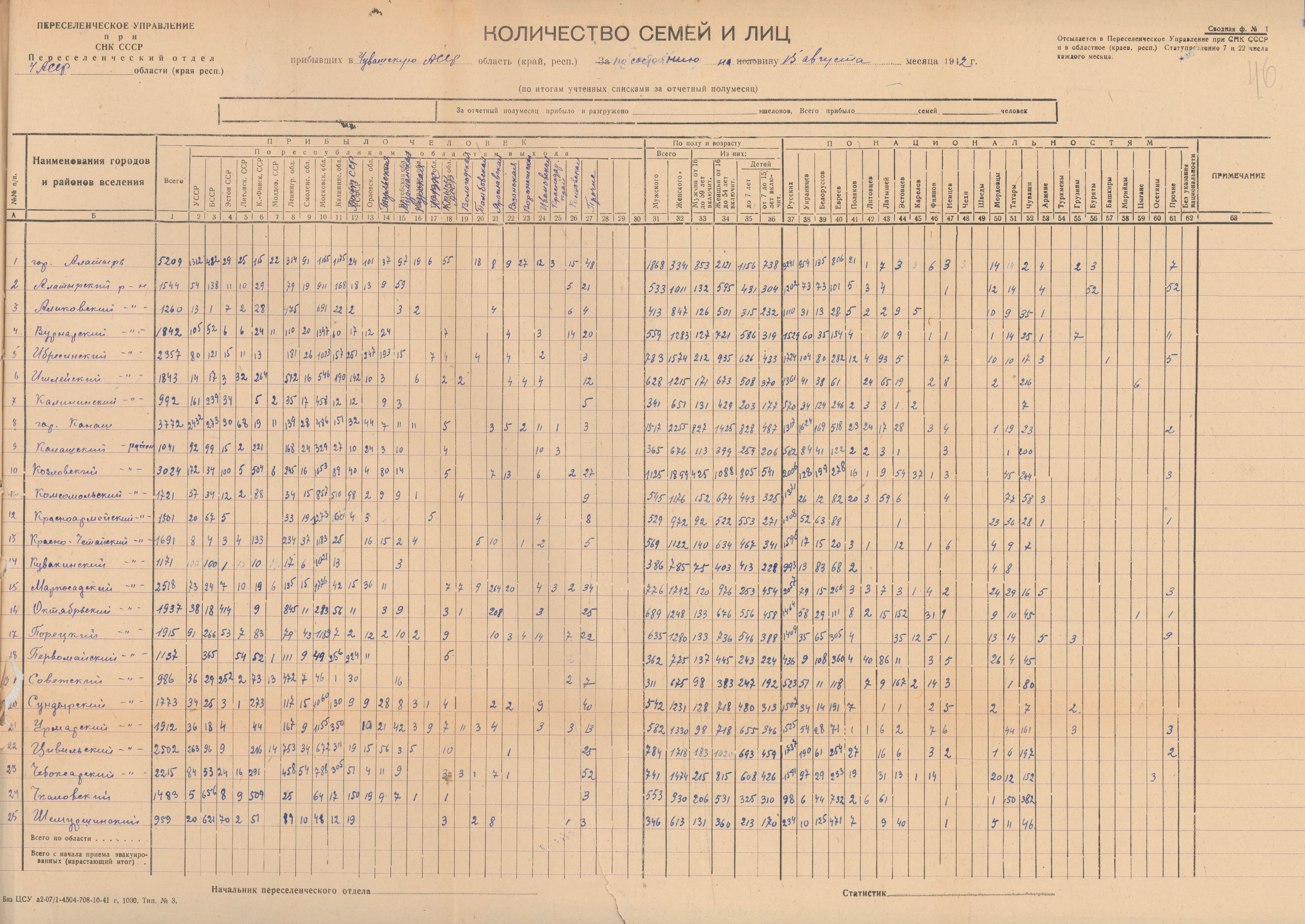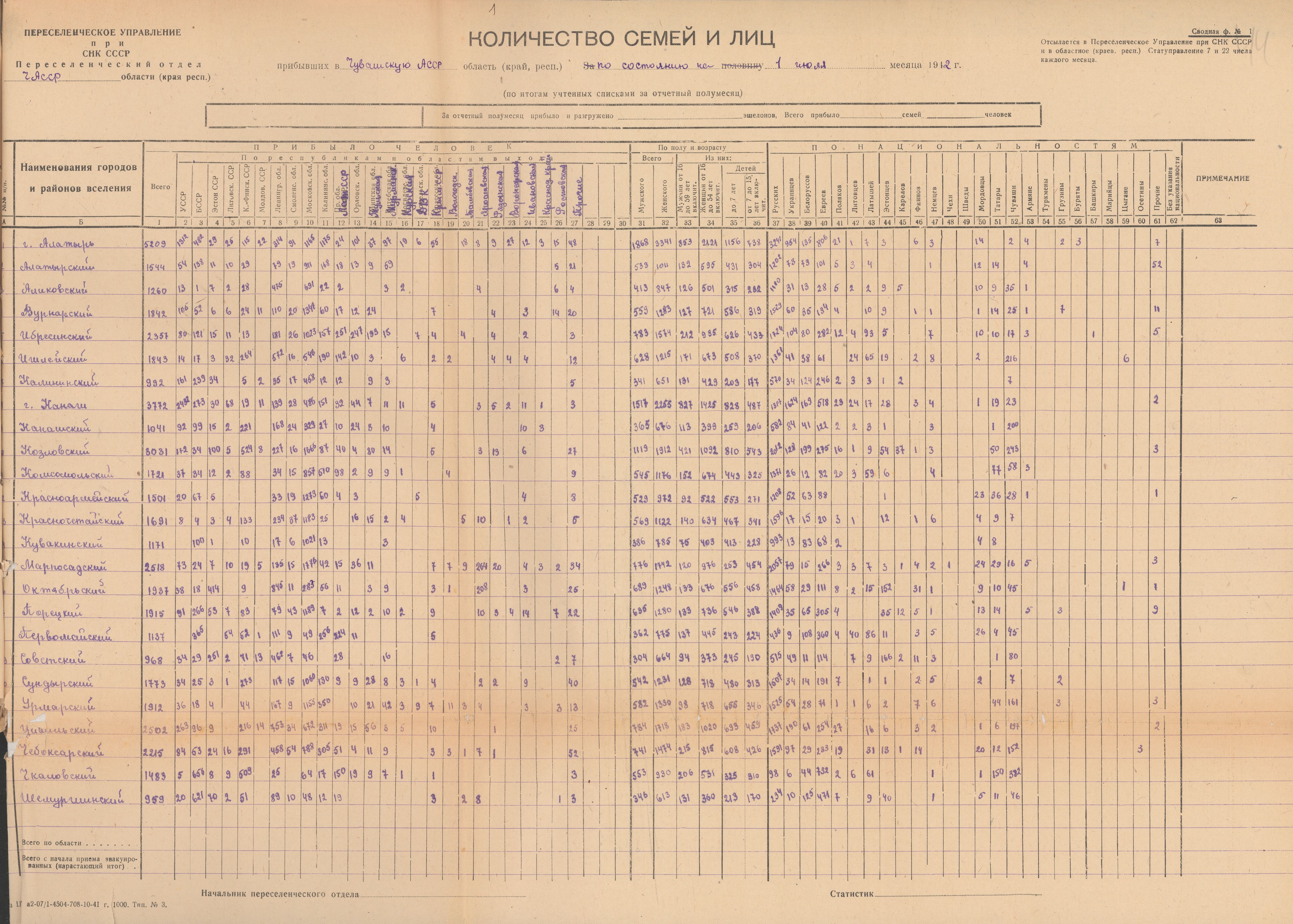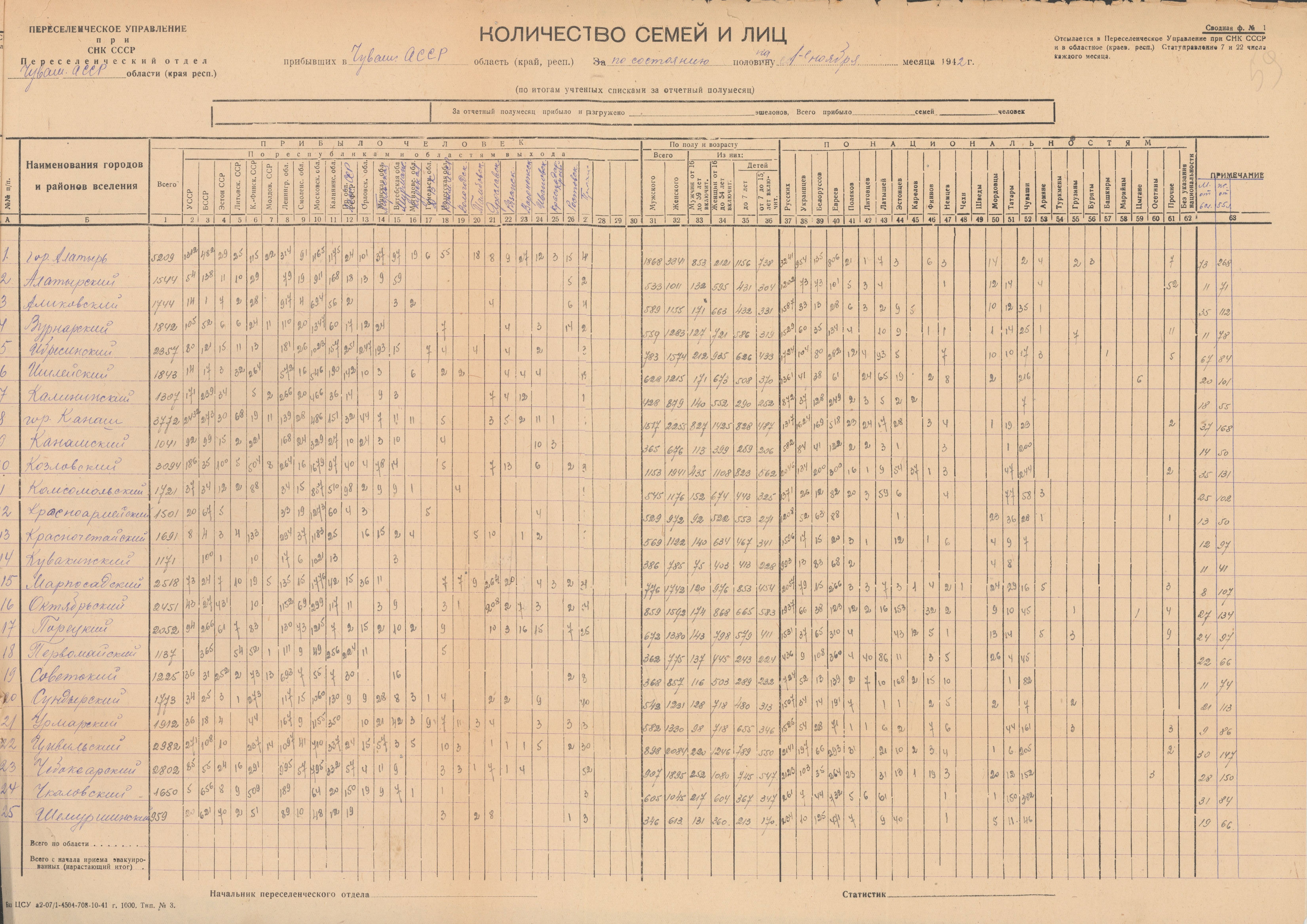 Сведения о количестве семей и лиц эвакуированных в Чувашскую АССР за