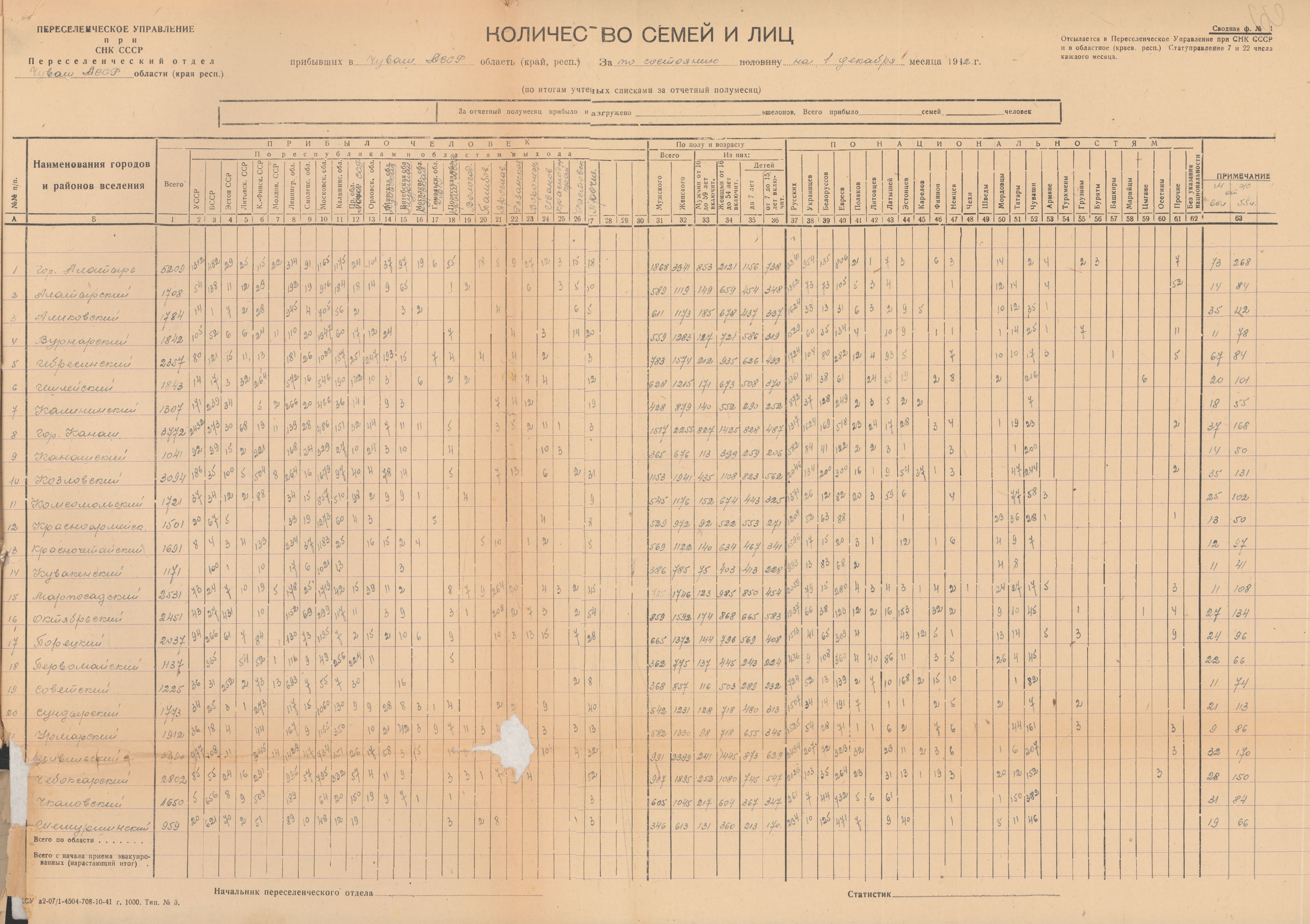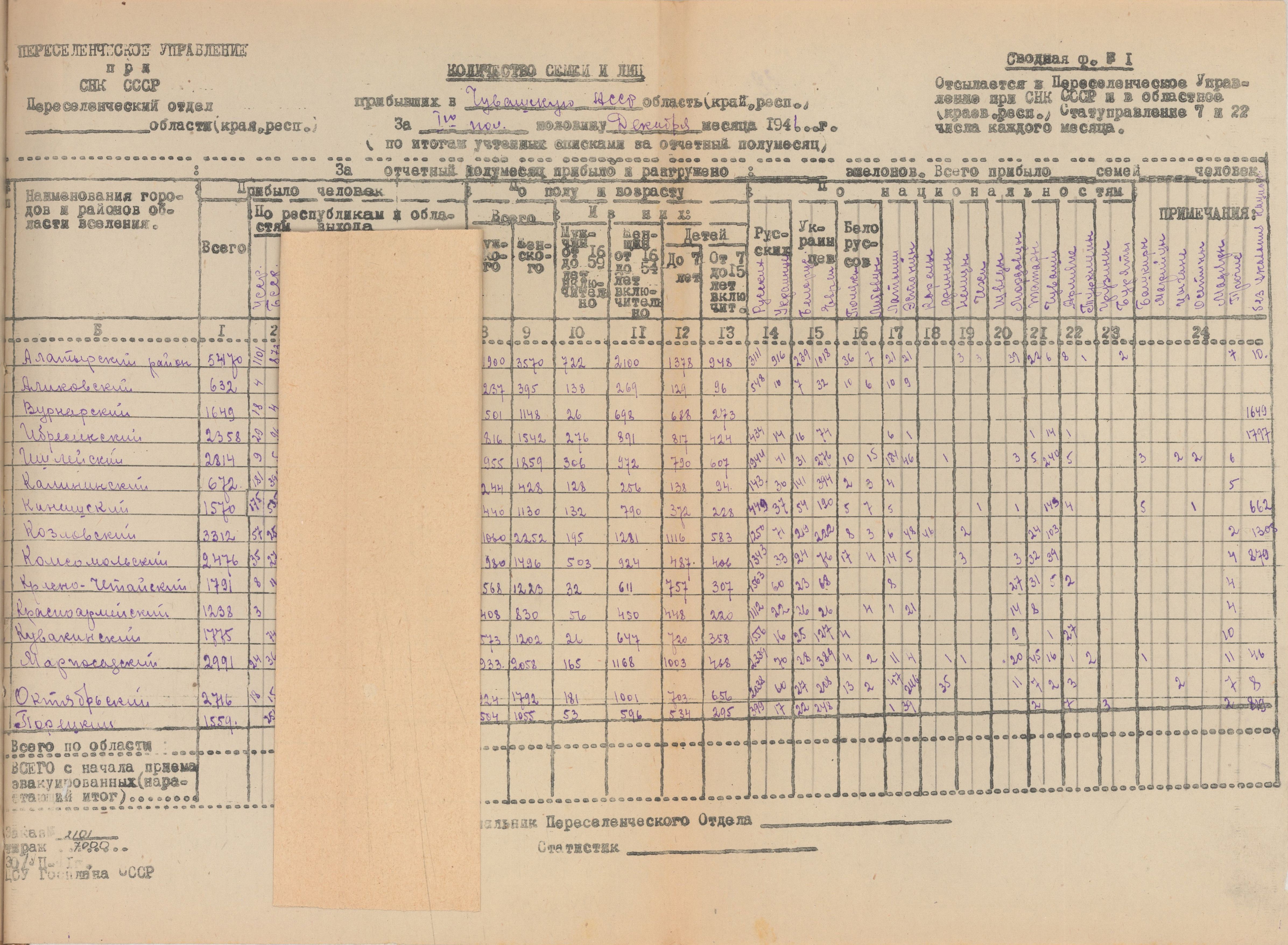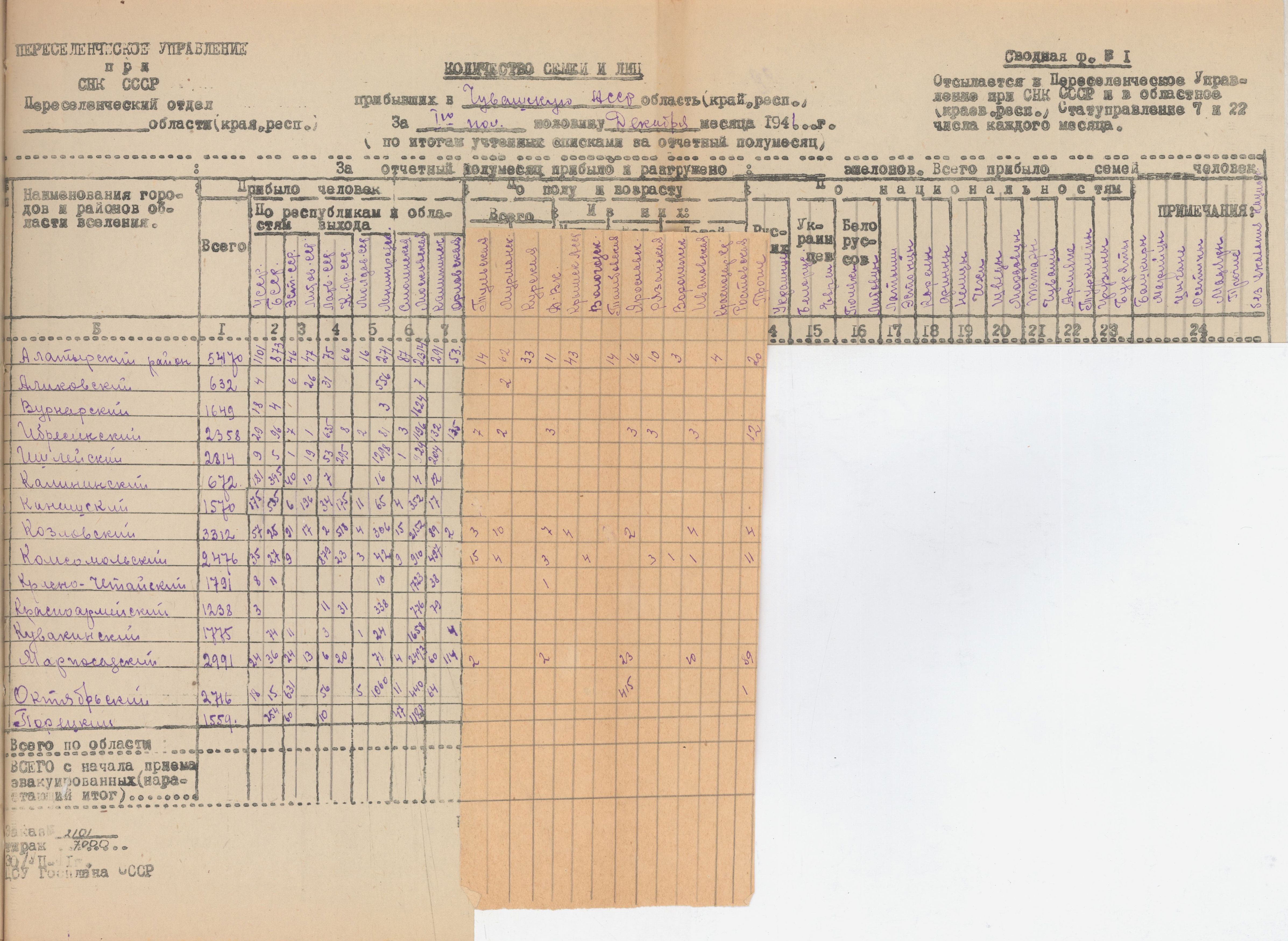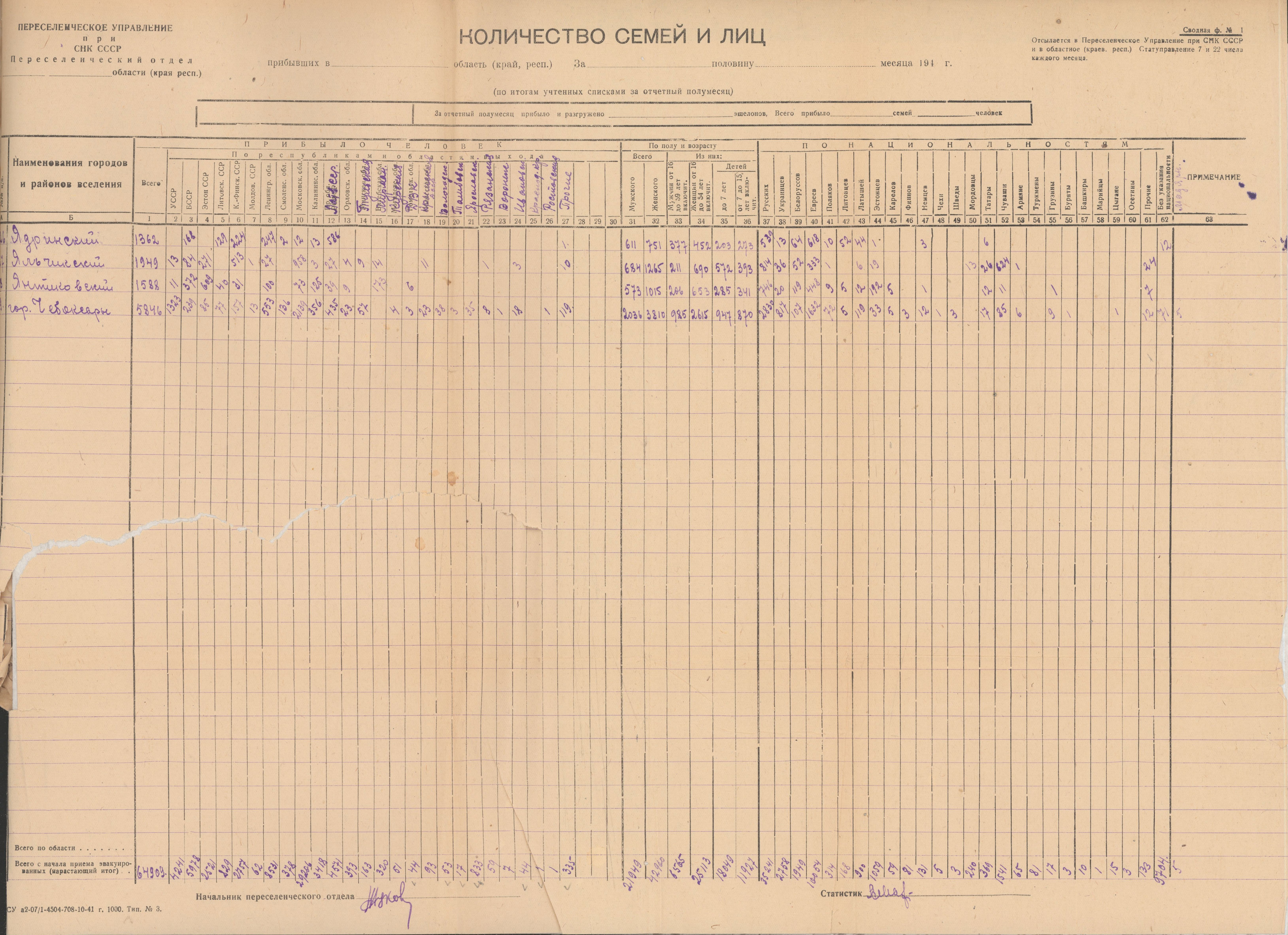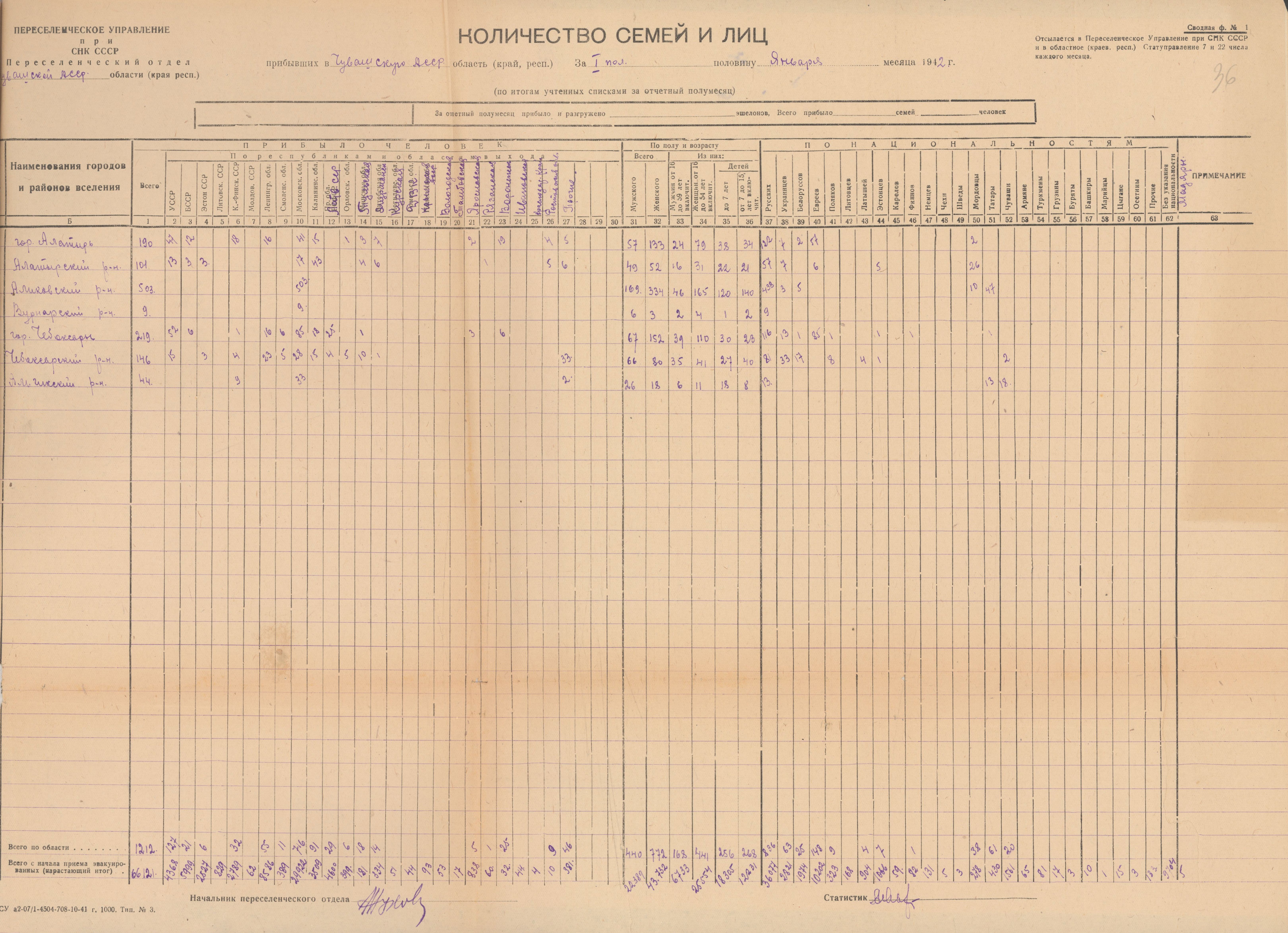 Сведения о количестве семей и лиц эвакуированных в Чувашскую АССР за