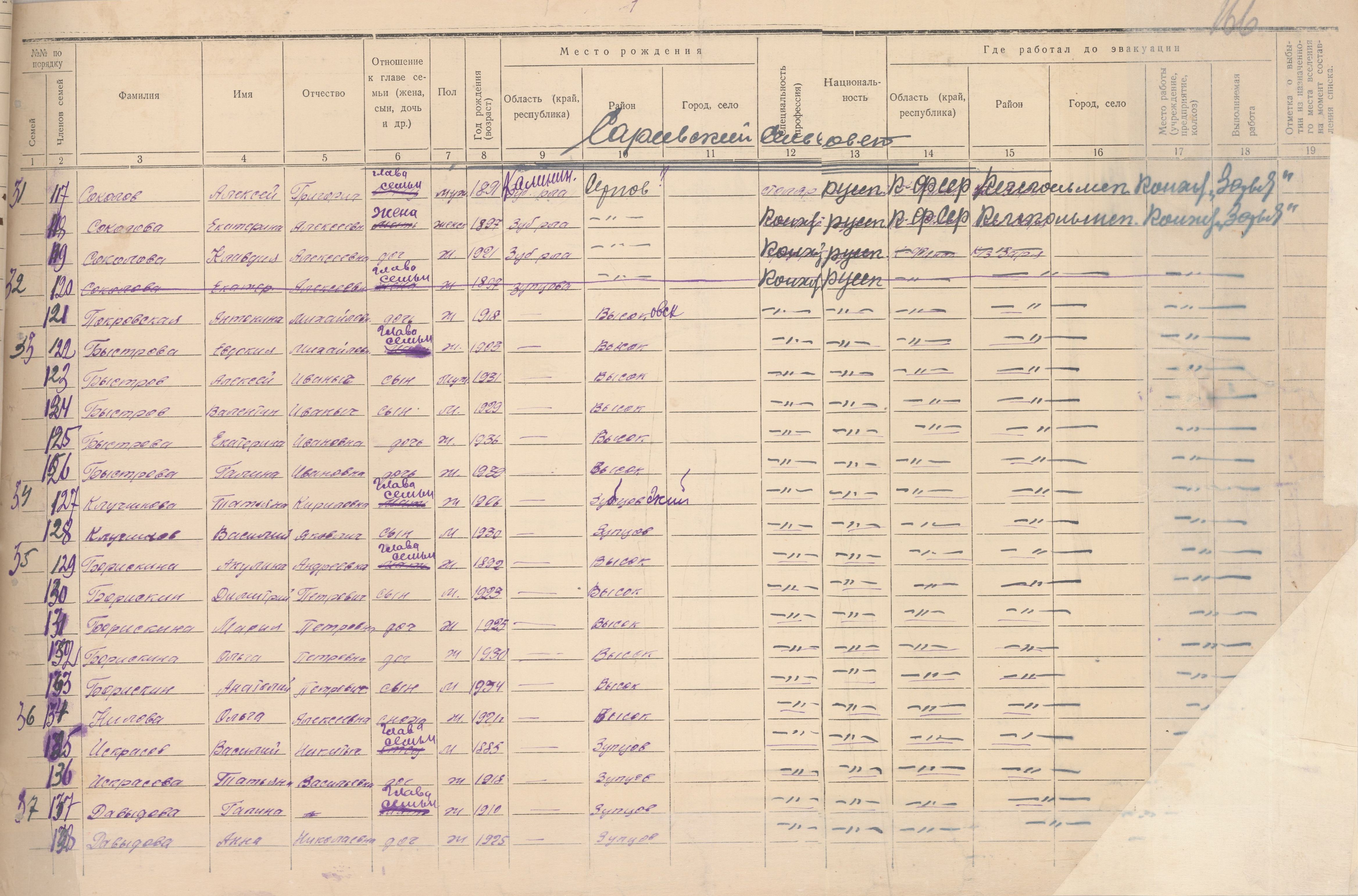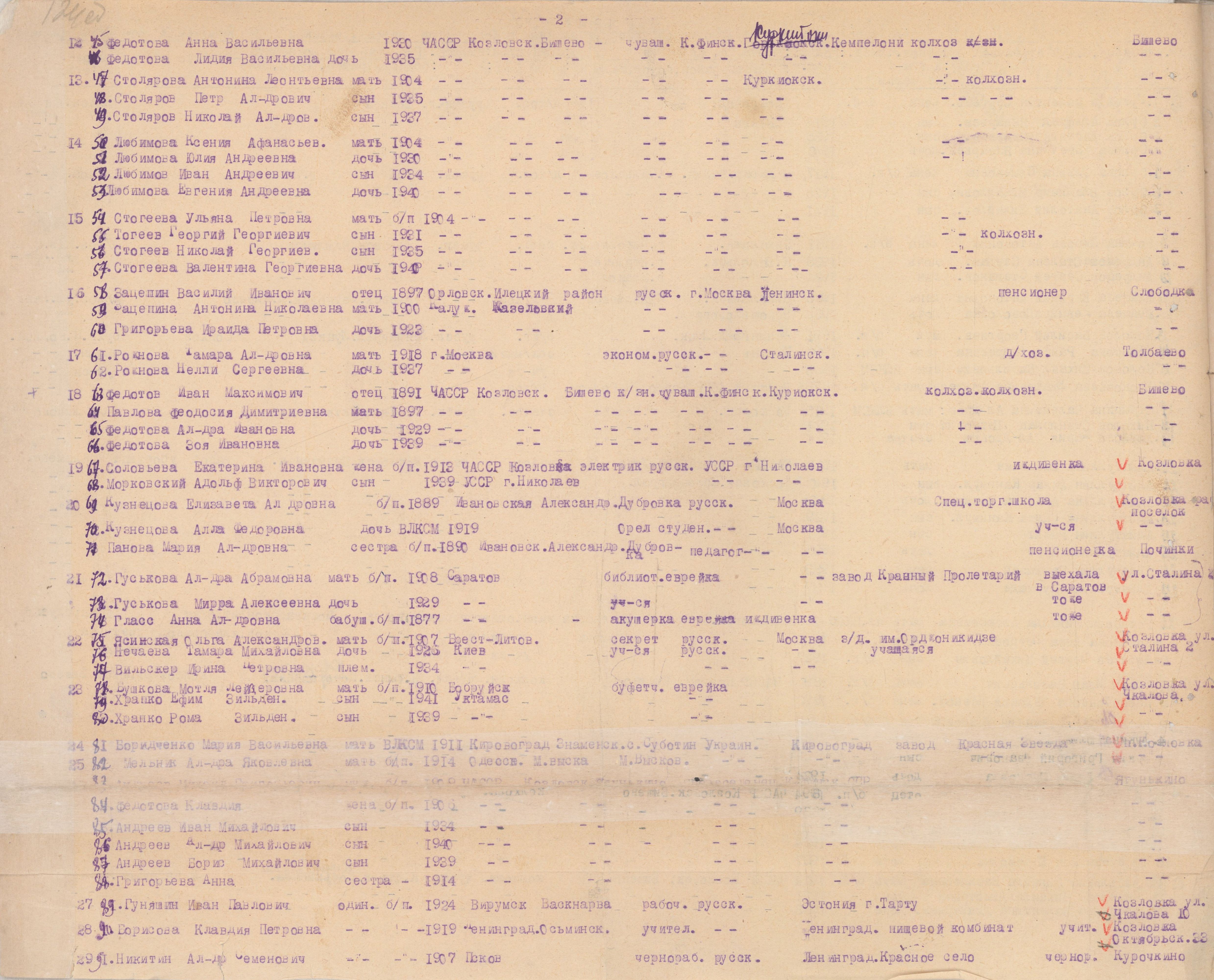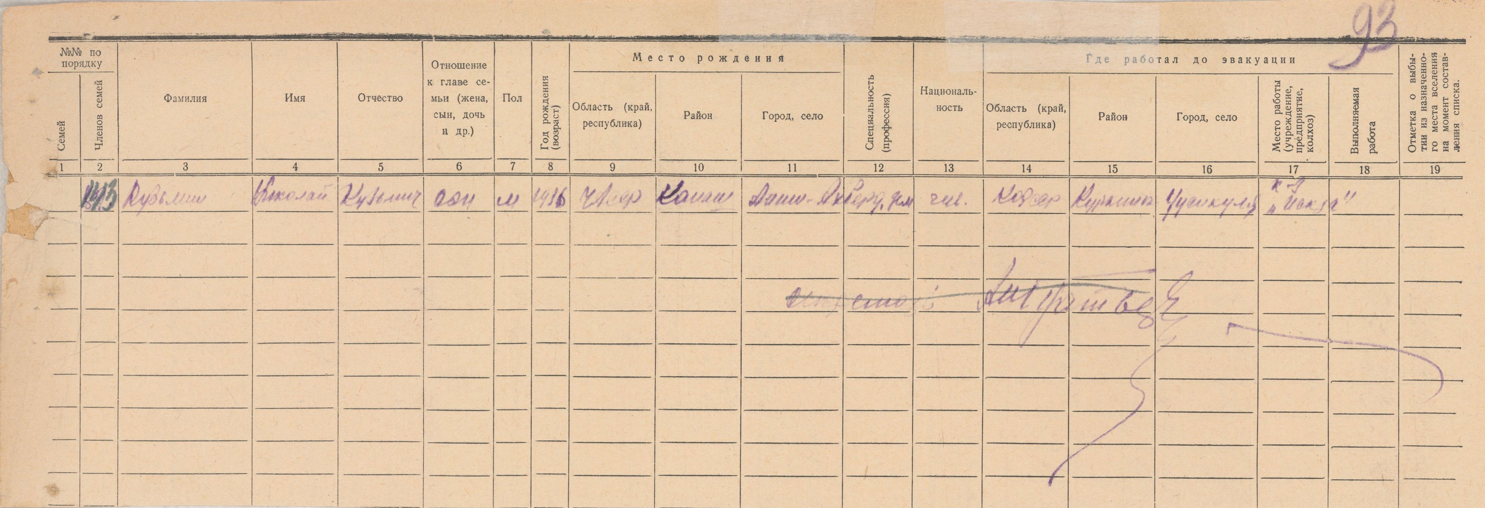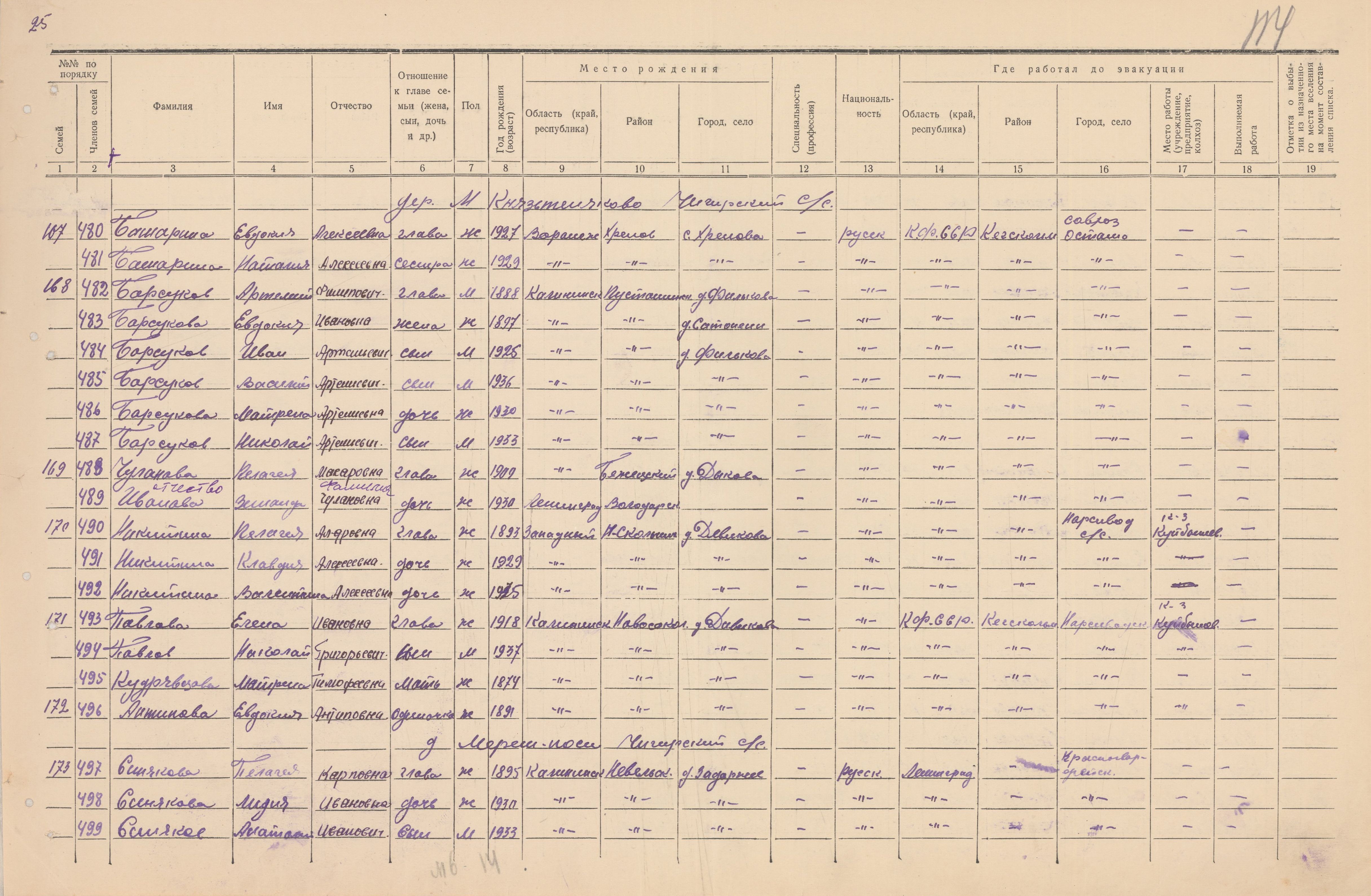 Список эвакуированных граждан в Ядринский район Чувашской АССР из Карело-Финской ССР.