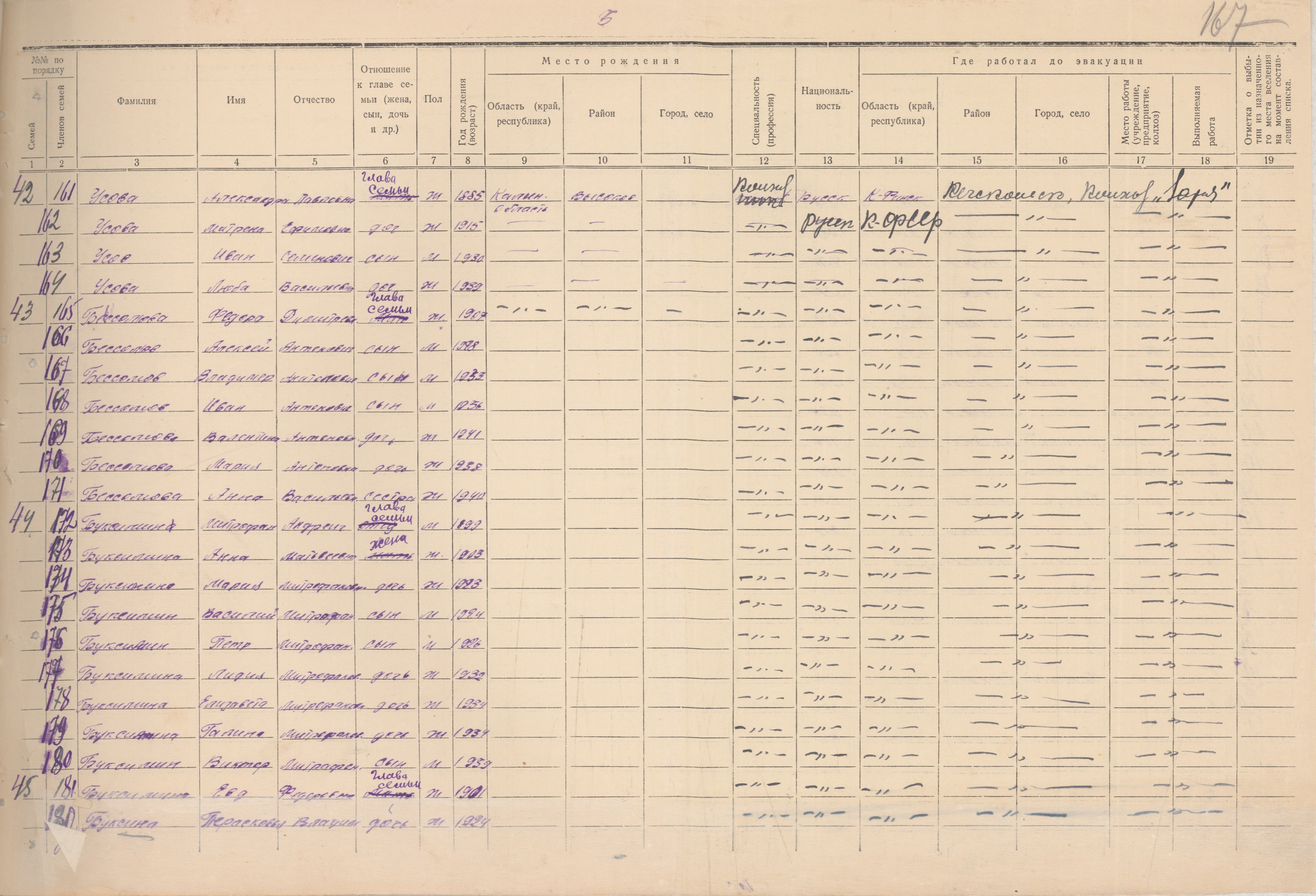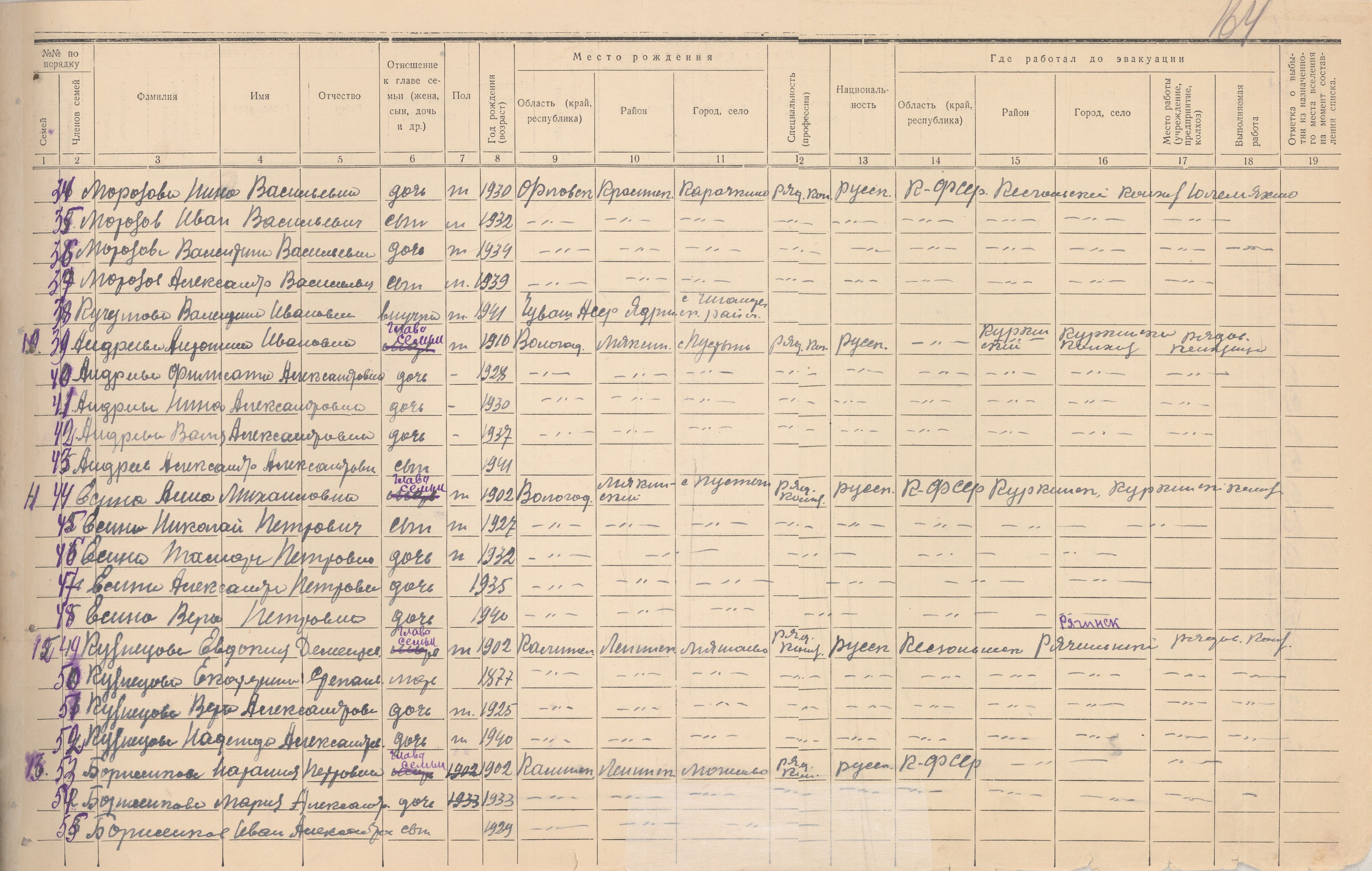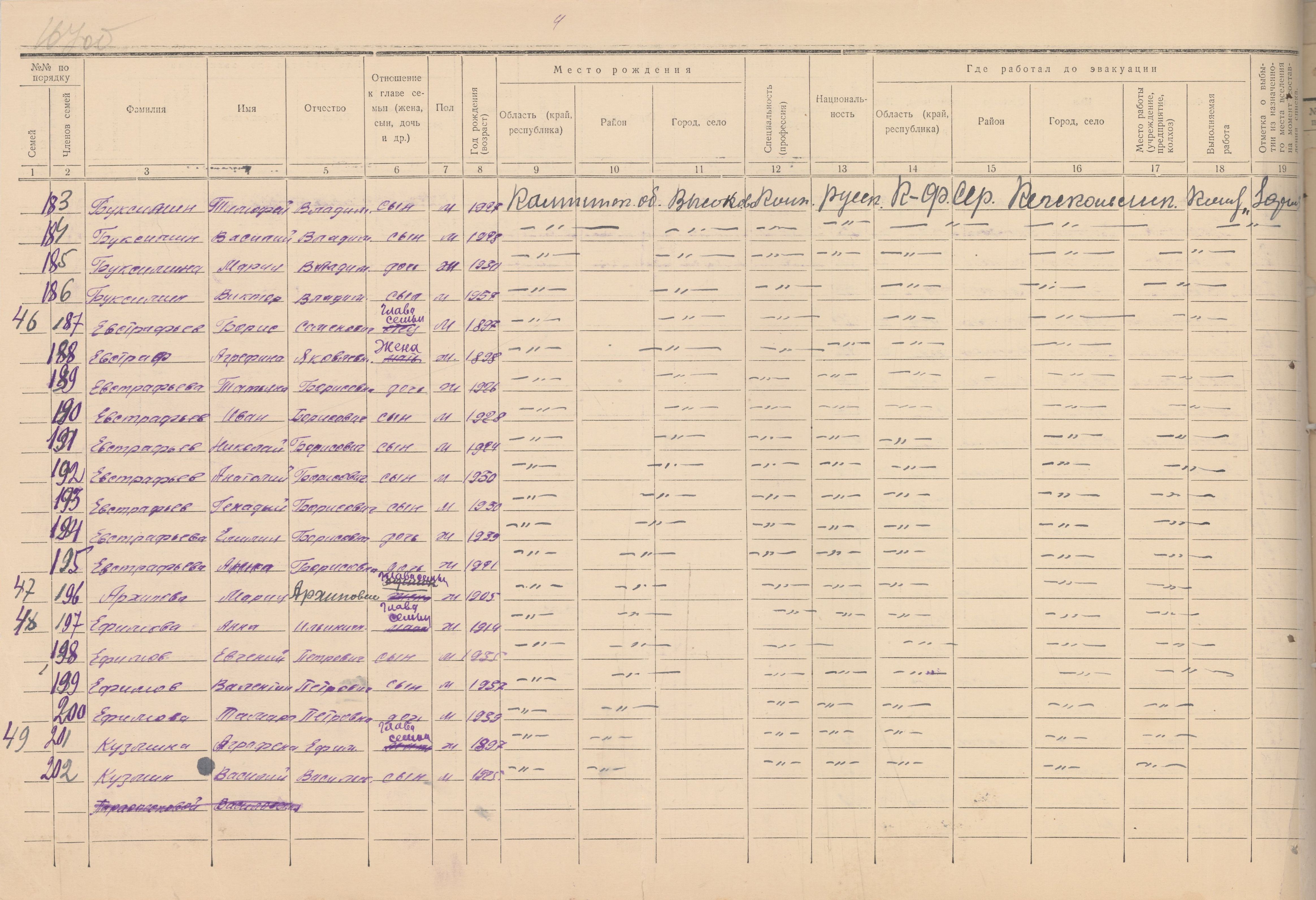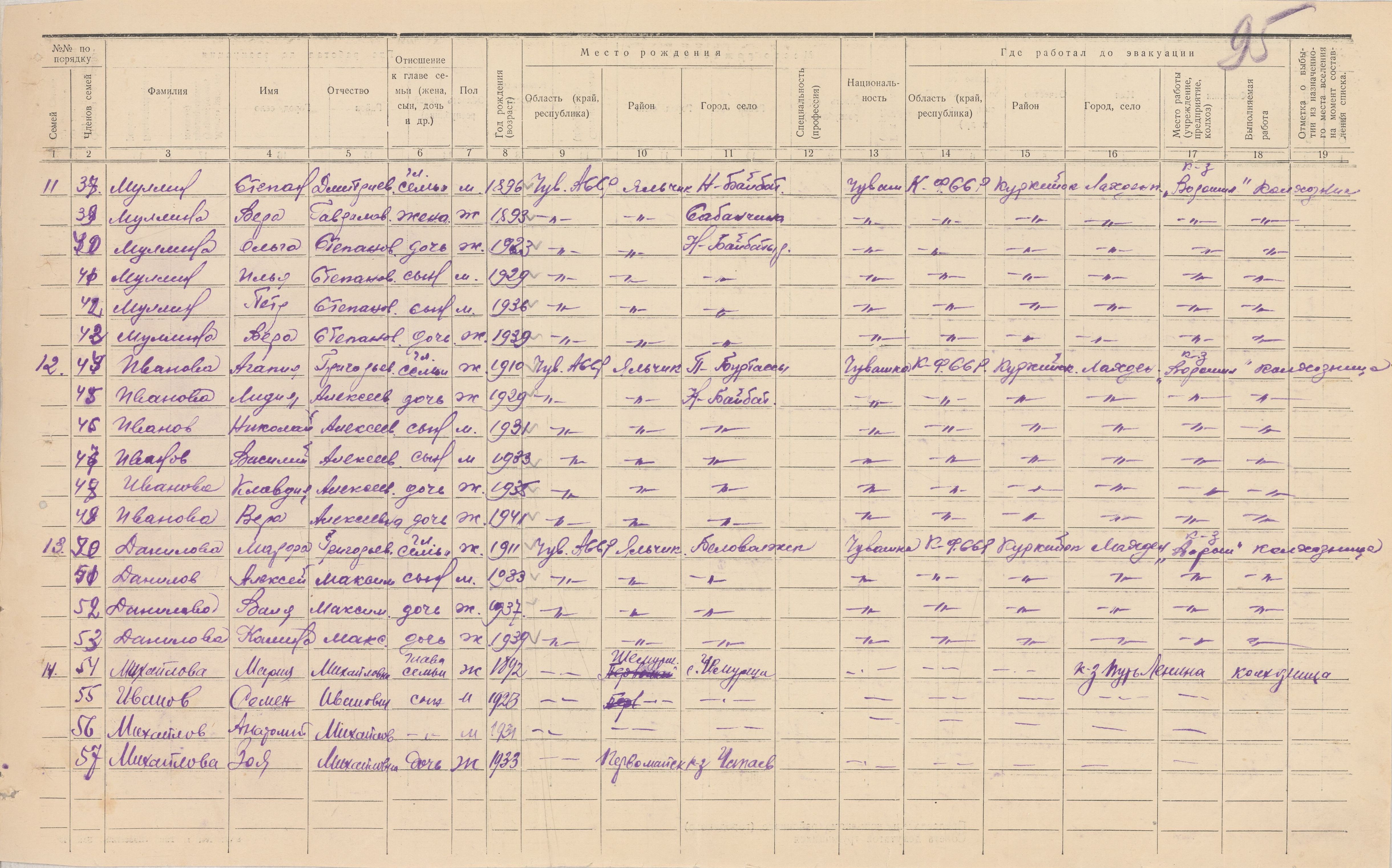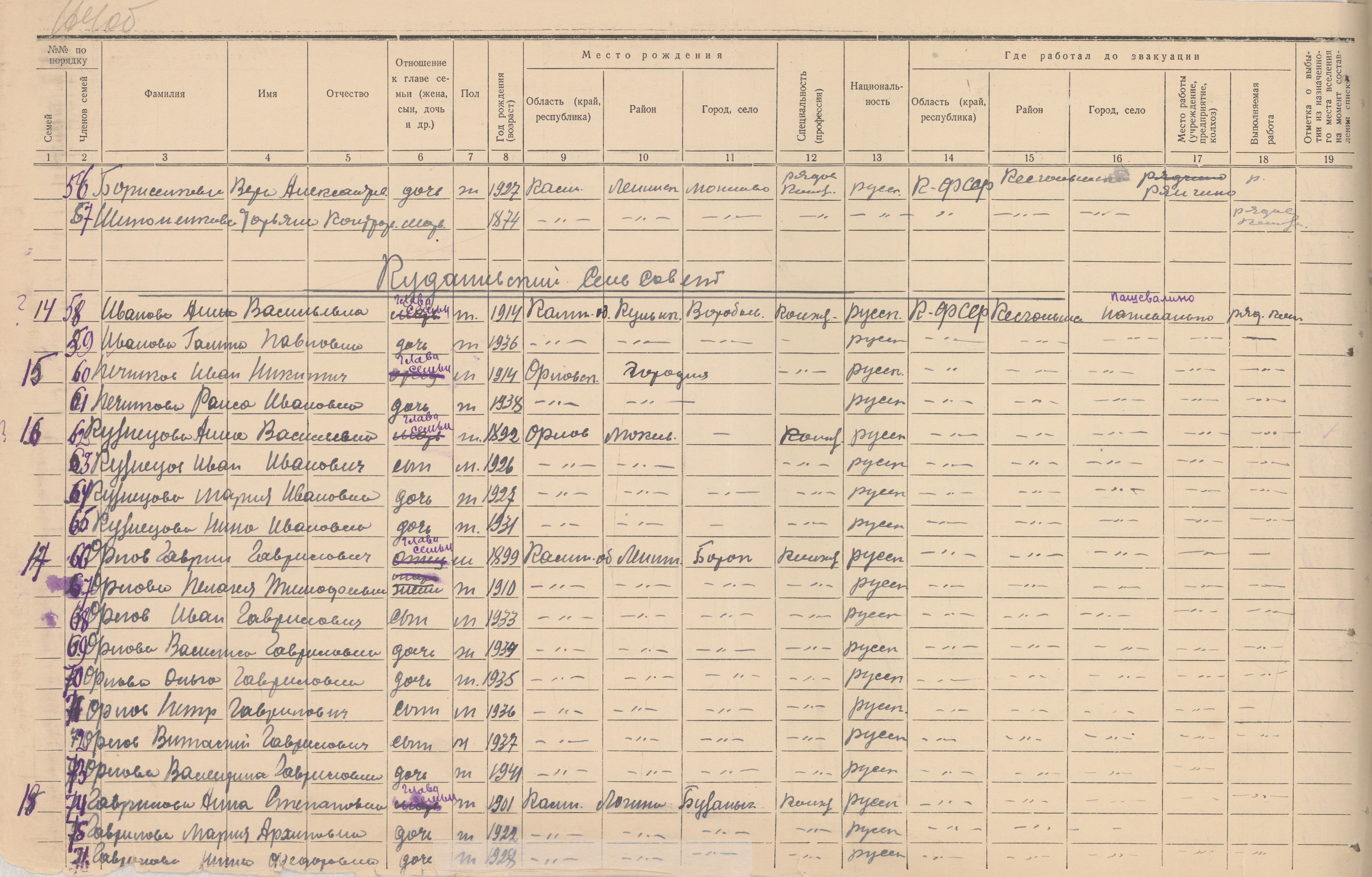 Список эвакуированных граждан в Ядринский район Чувашской АССР из Карело-Финской ССР.