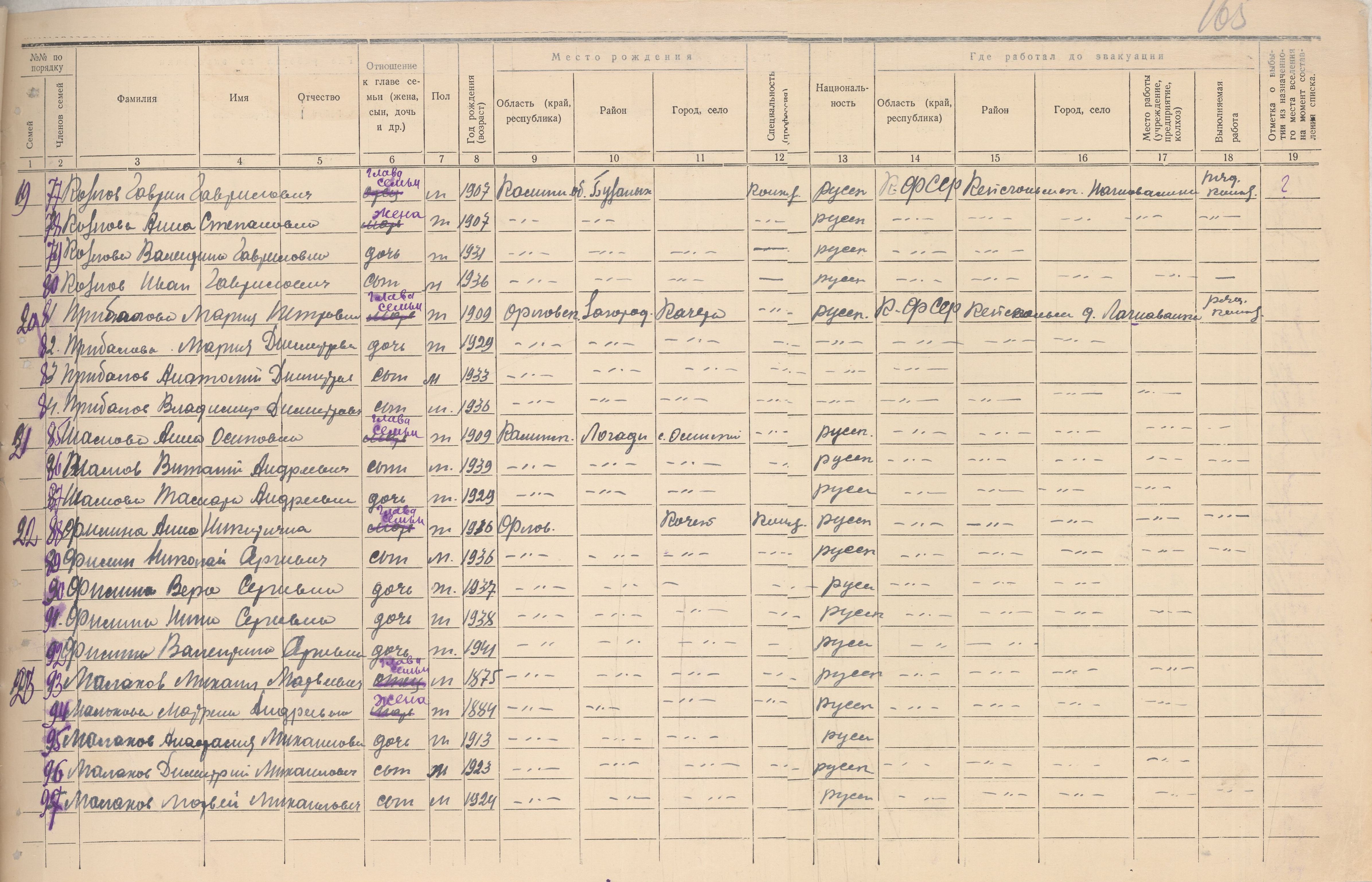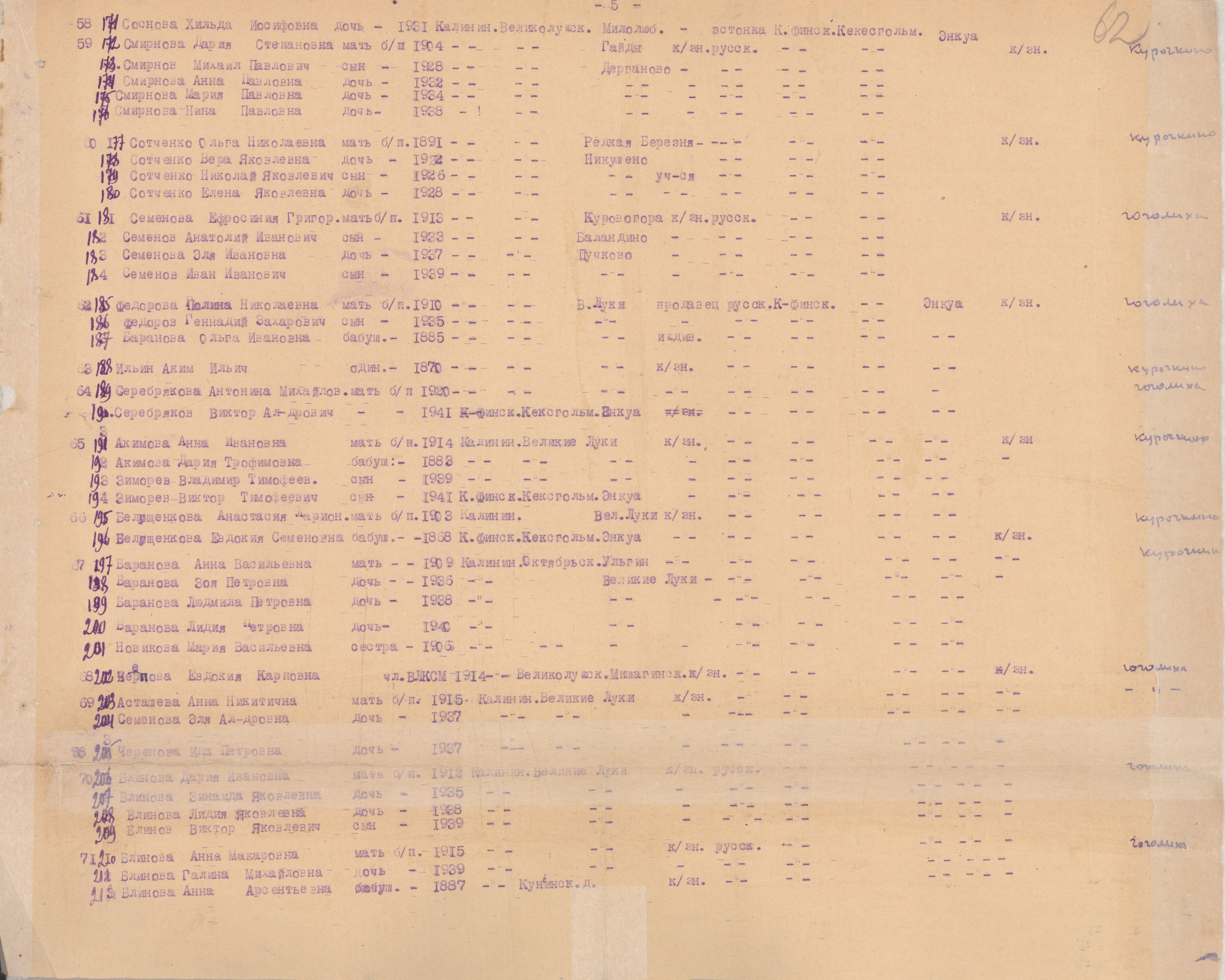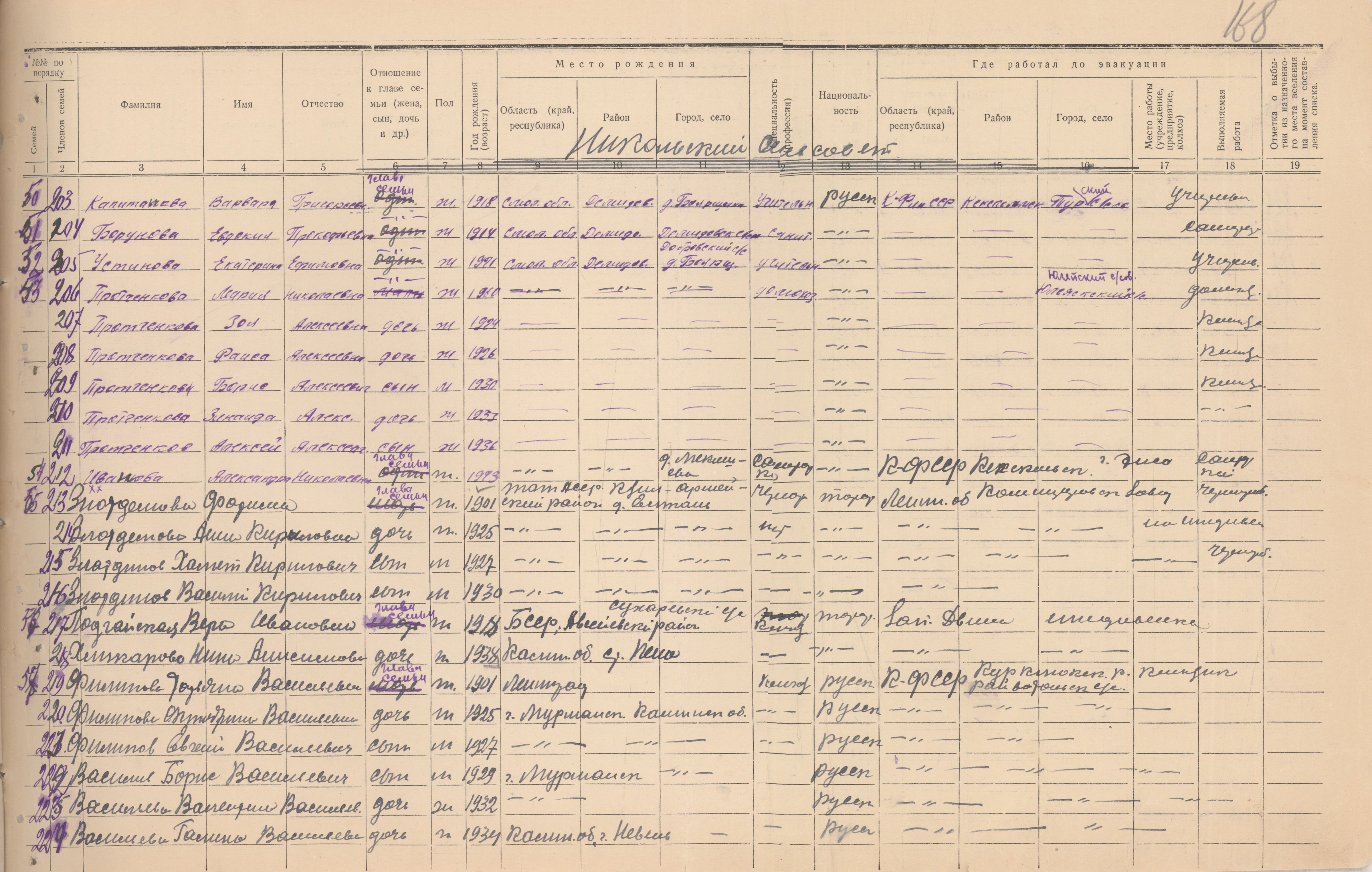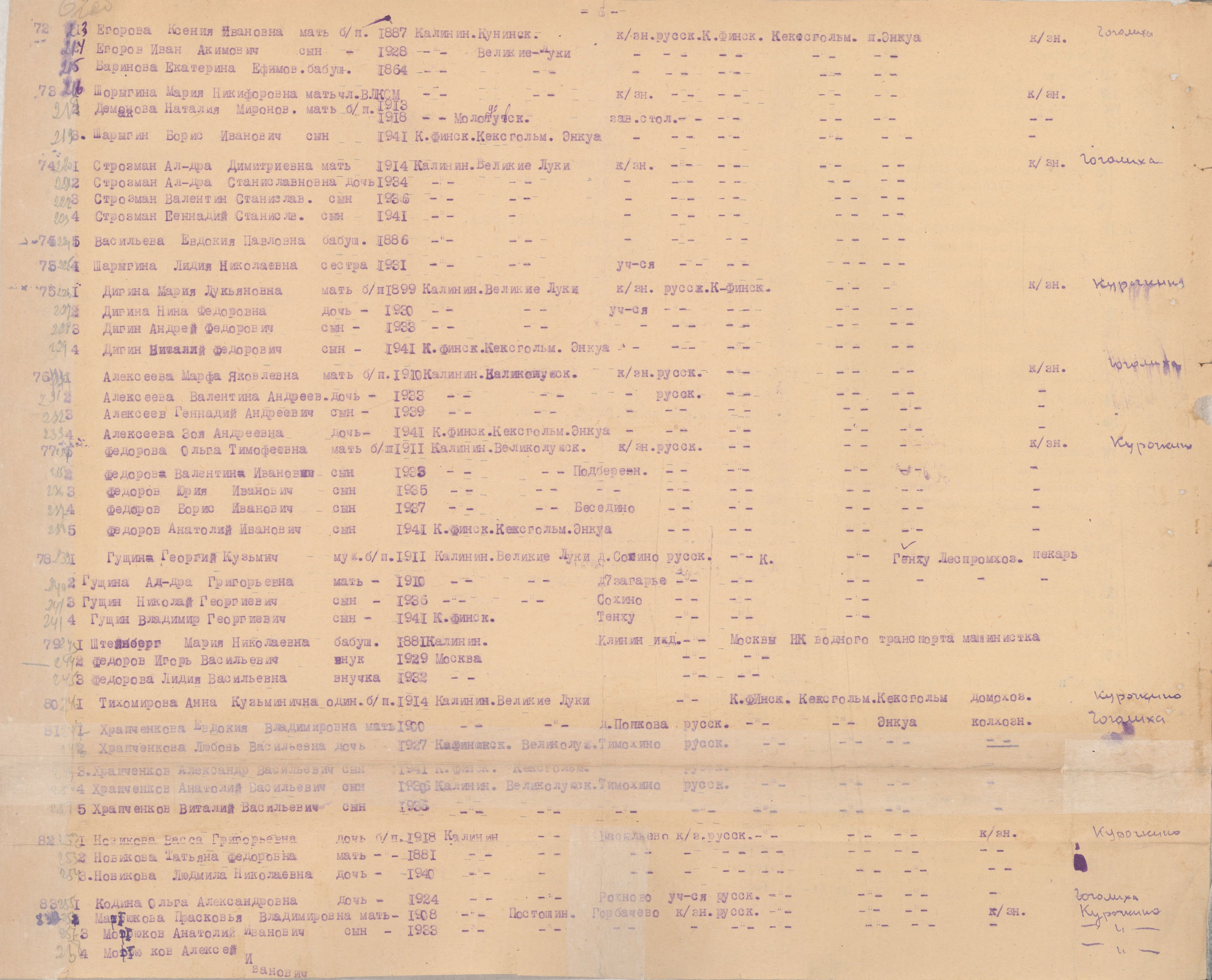 Список эвакуированных граждан, прибывших в Канашский район Чувашской АССР из Карело-Финской Республики.