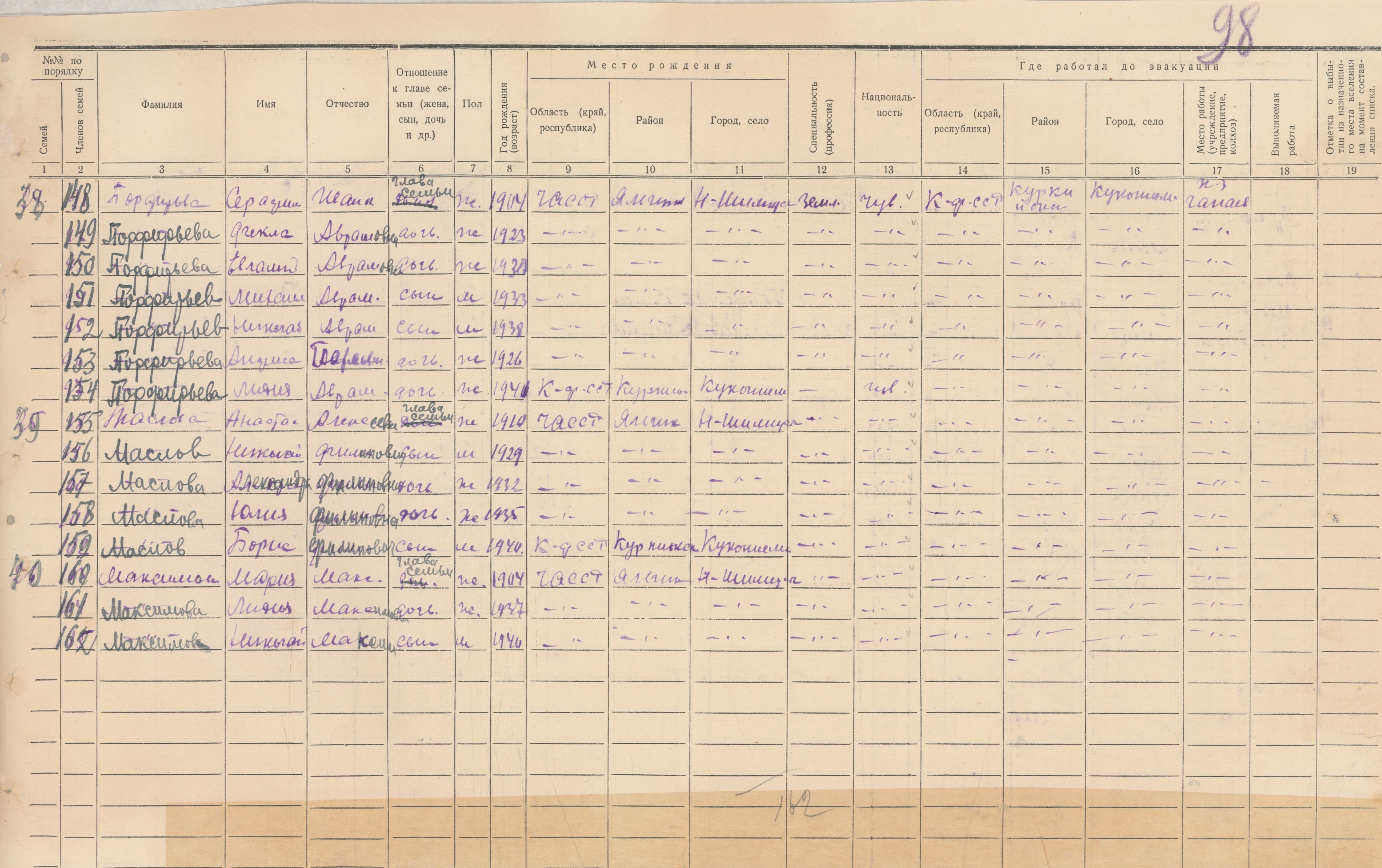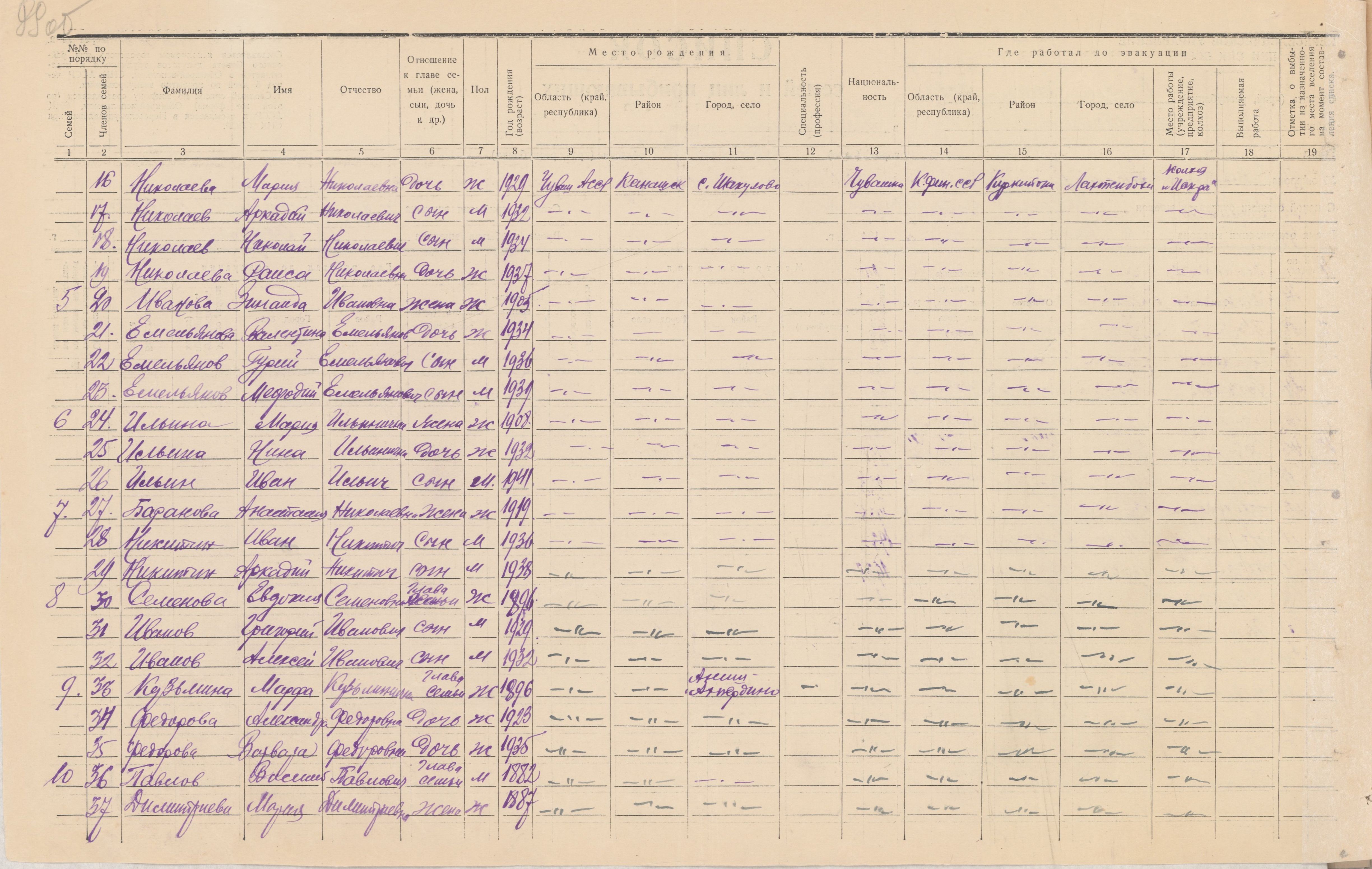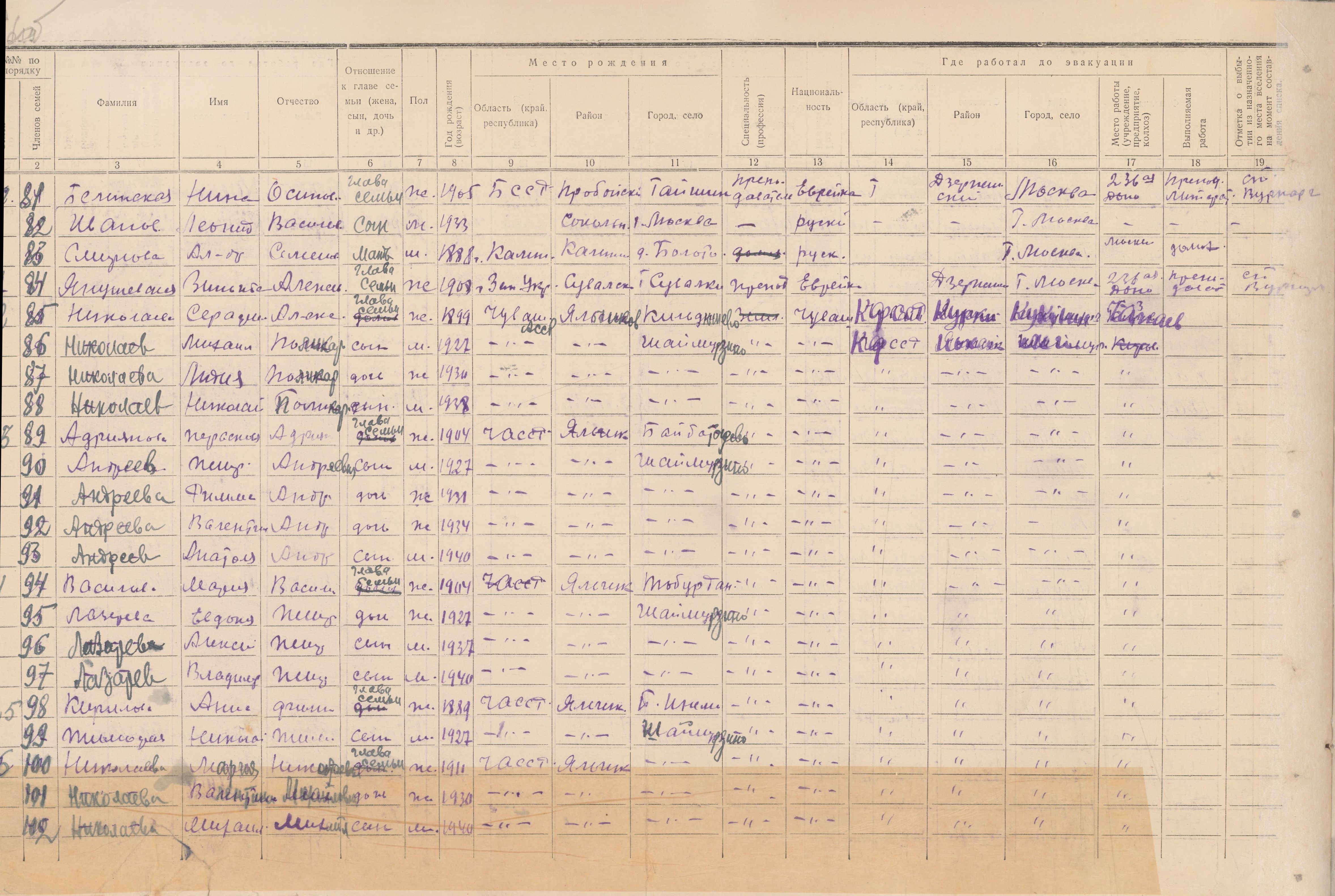 Список эвакуированных граждан, прибывших в Шихазанский район Чувашской АССР из Москвы.