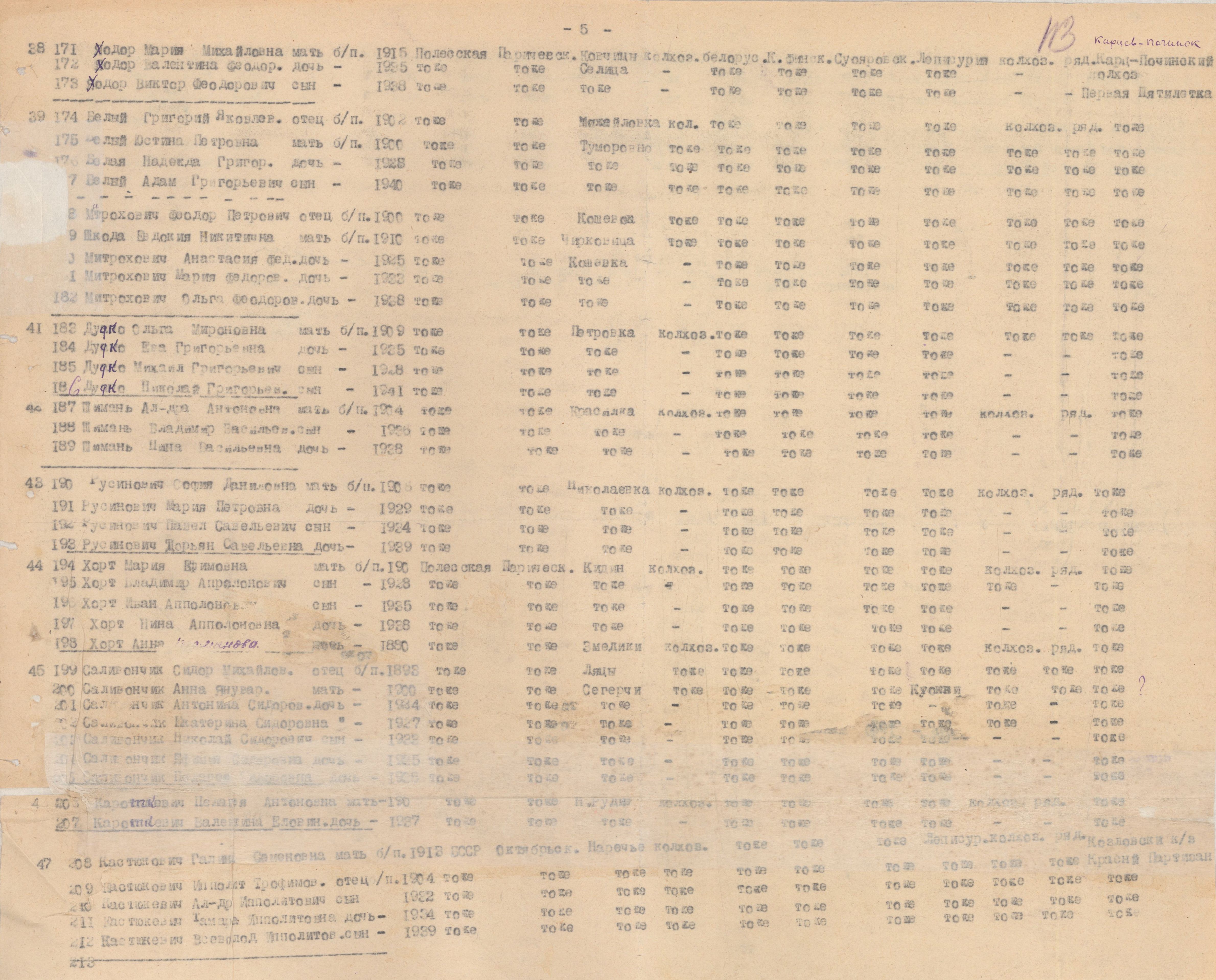 Список семей и лиц, прибывающих из Куркийоки Карело-Финской АССР в Яльчиковский район Чувашской АССР
