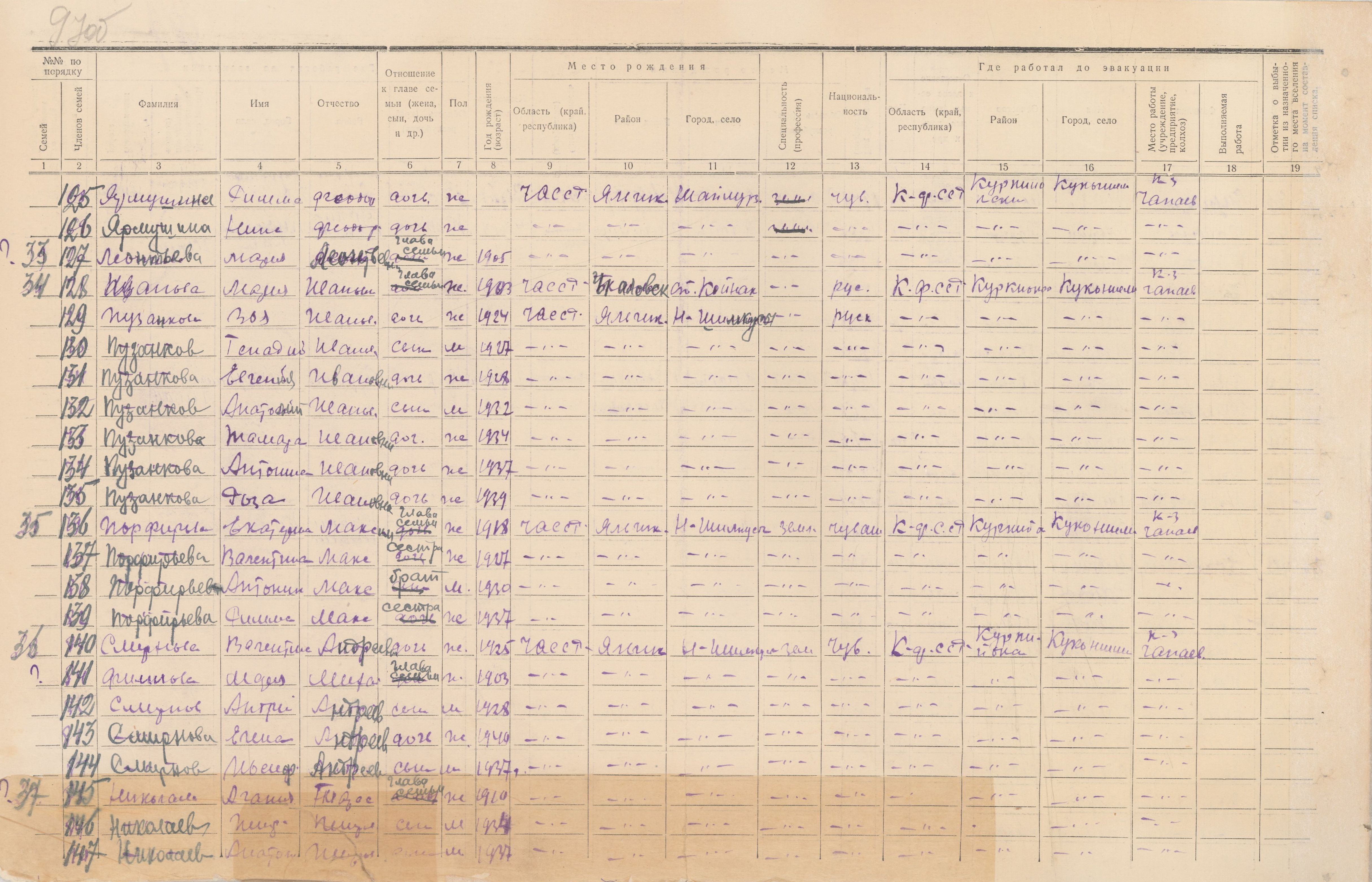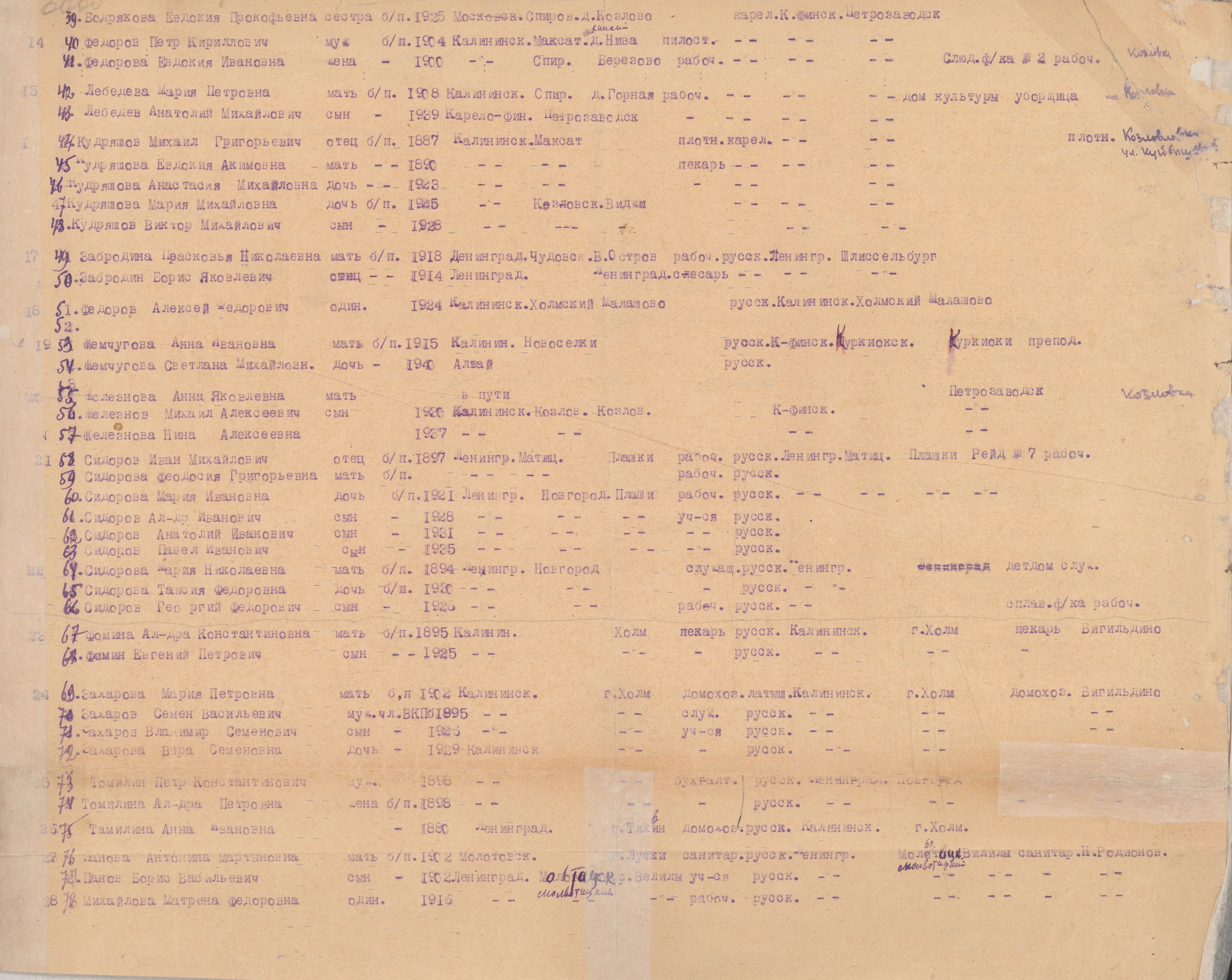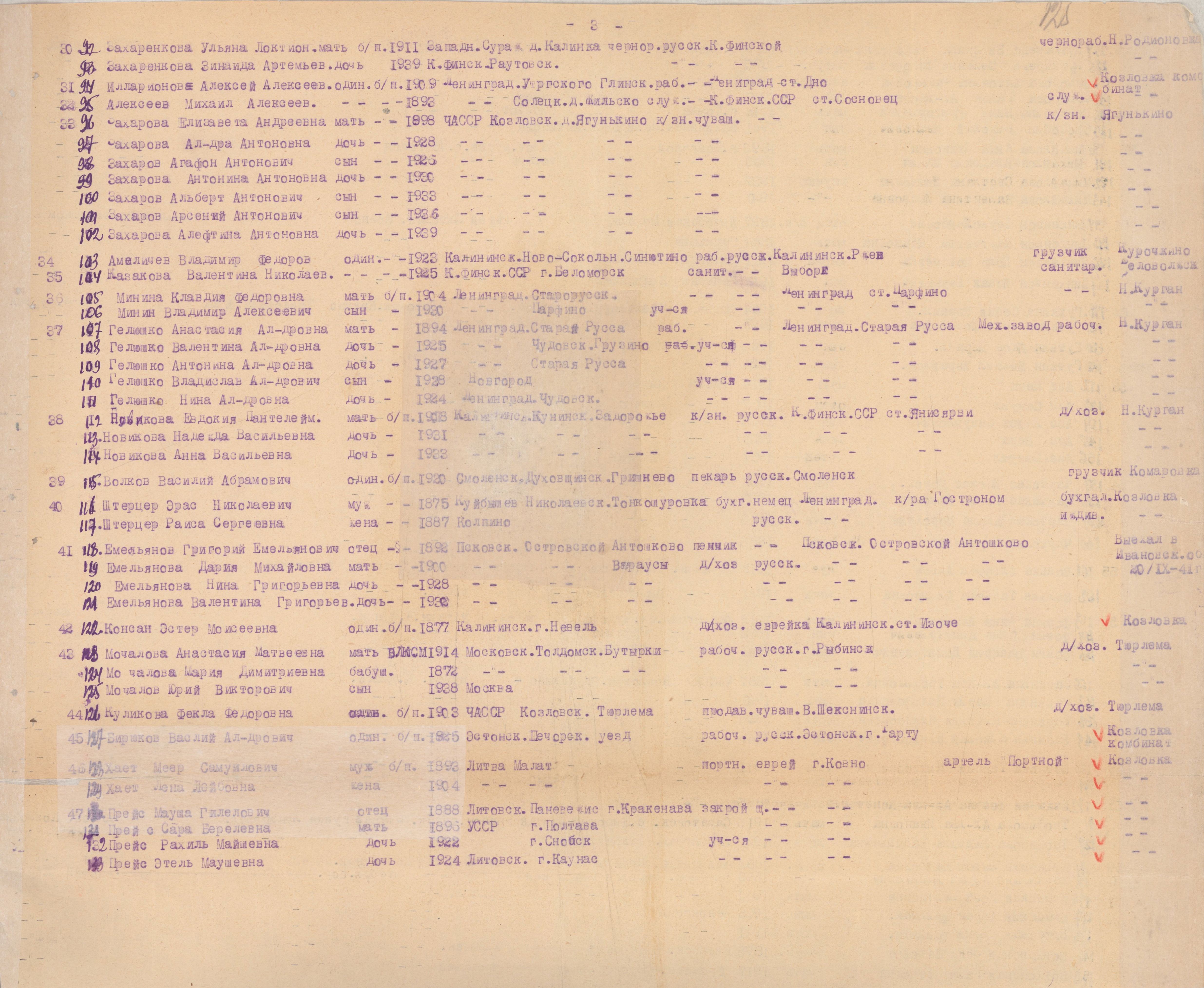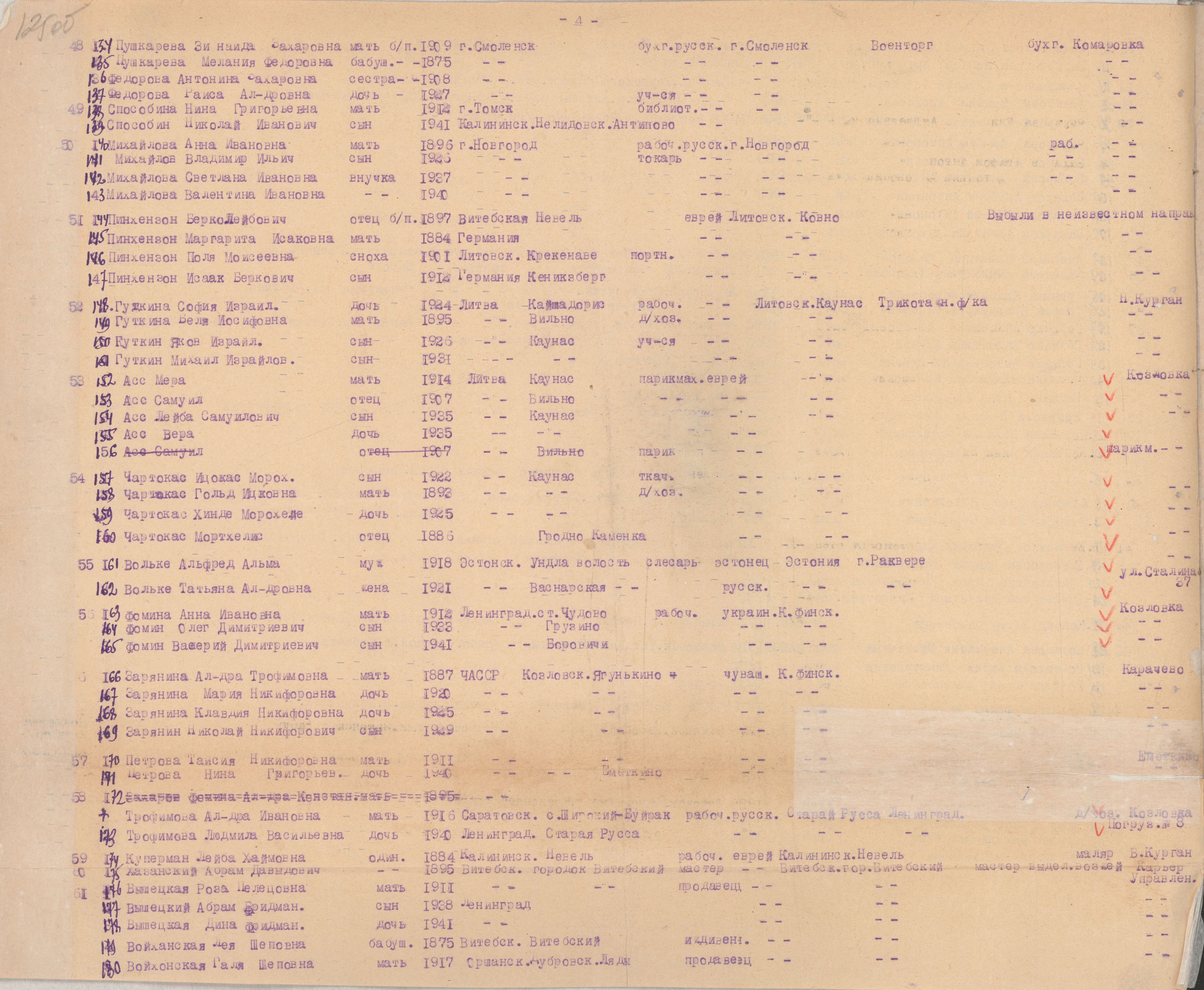 Список эвакуированных граждан, прибывших в Козловский район Чувашской АССР из Карело-Финской ССР на пароходе «Чайковский».