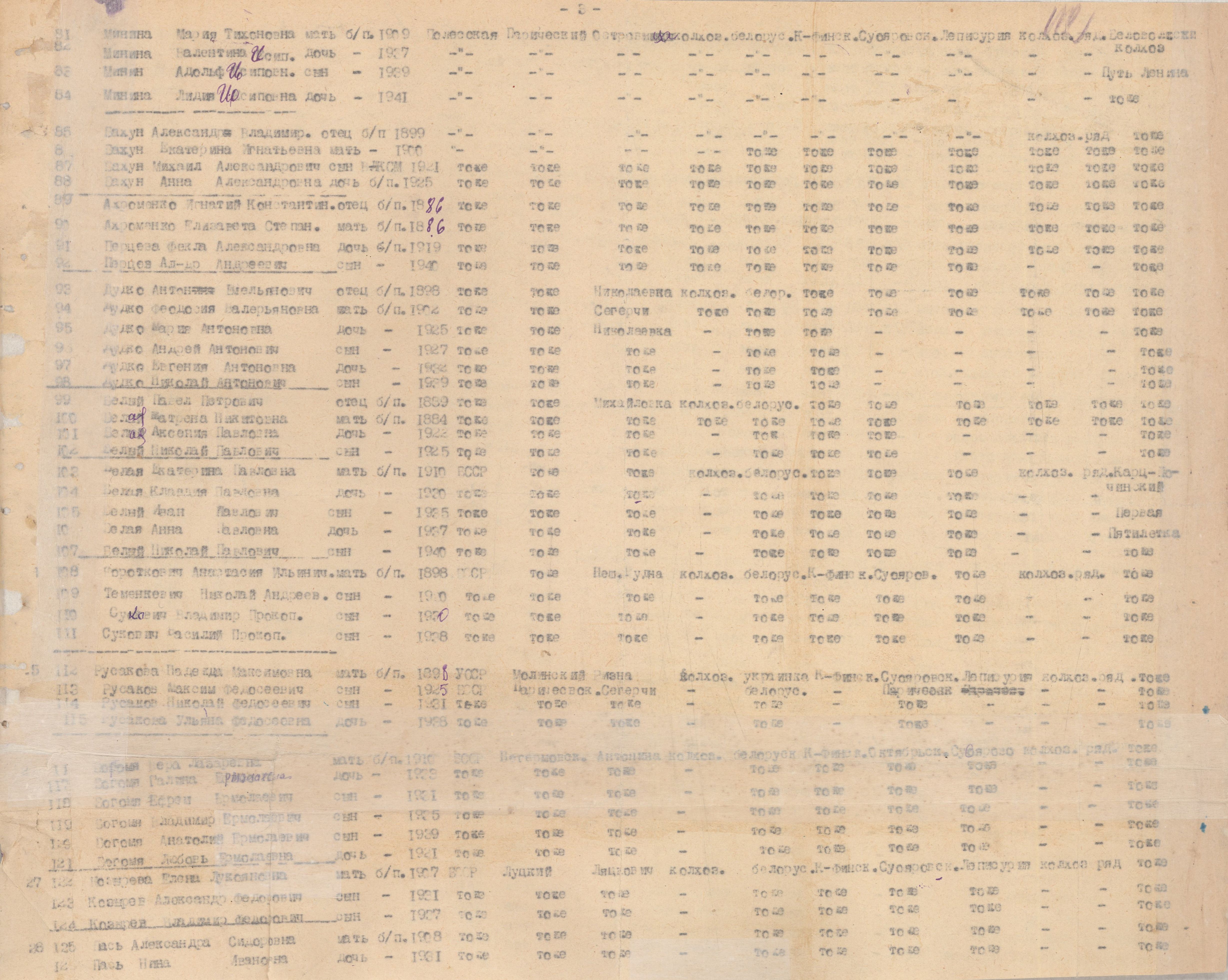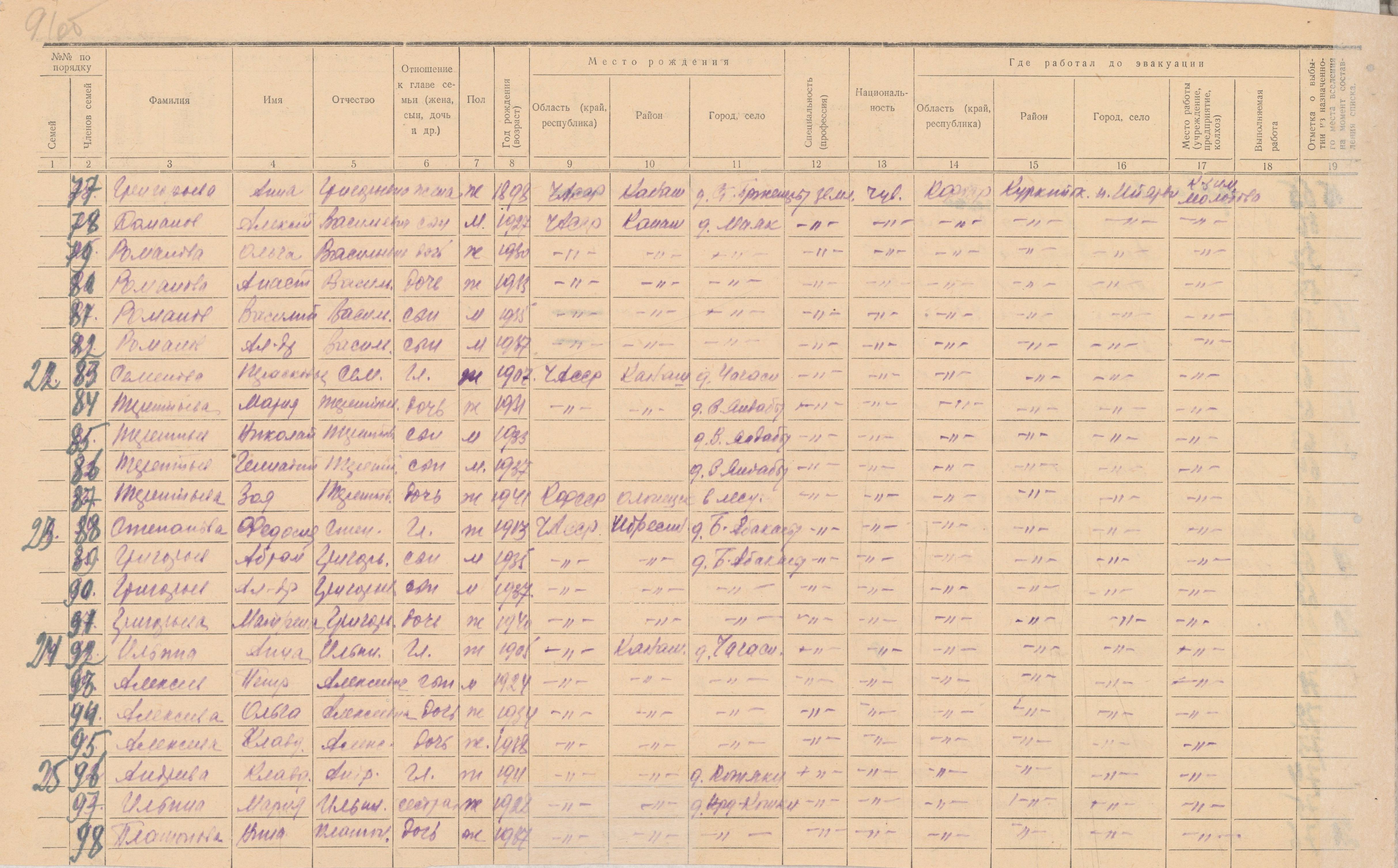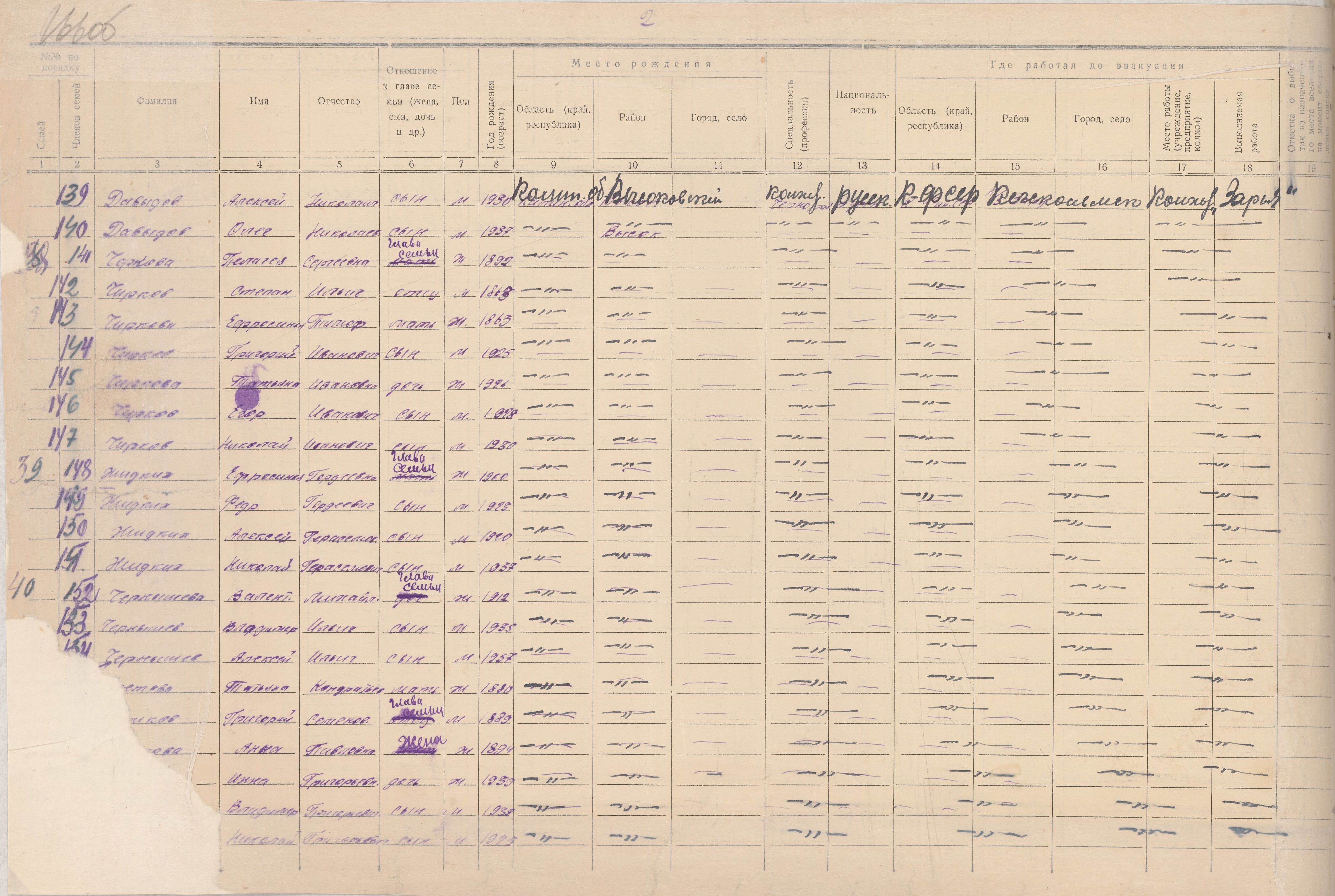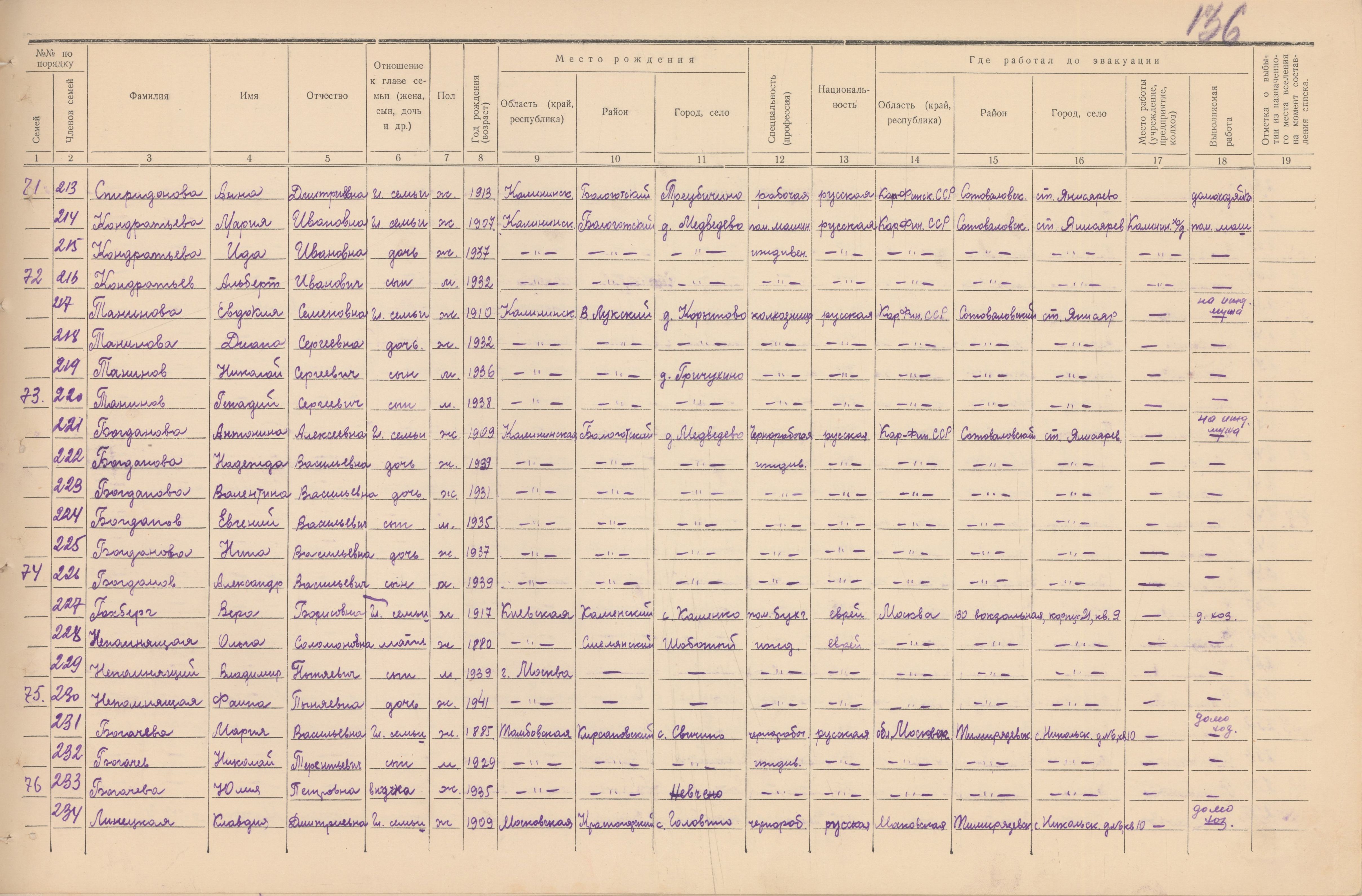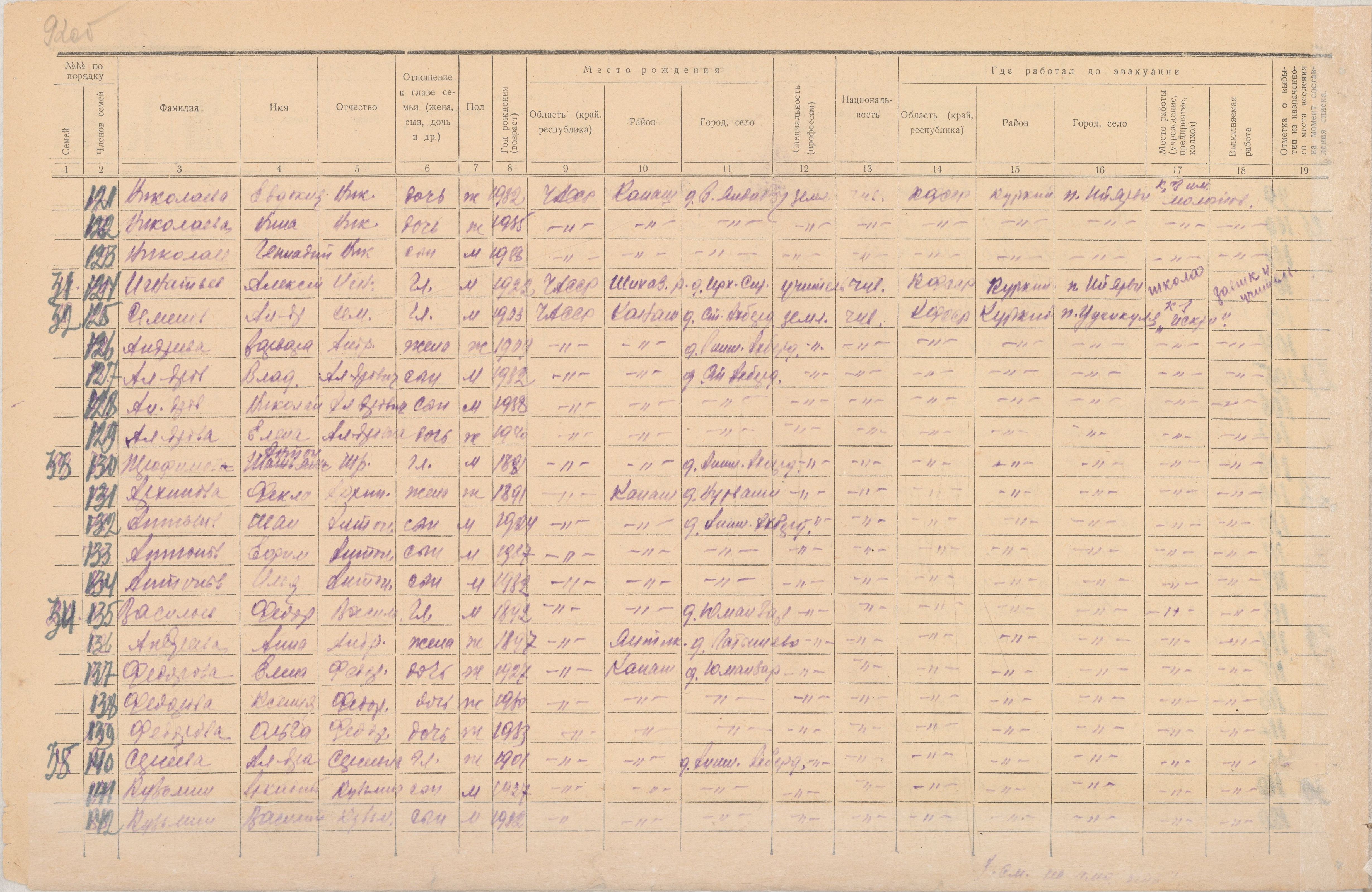 Список эвакуированных граждан, прибывших в Козловский район Чувашской АССР из Карело-Финской ССР на пароходе «Чайковский».