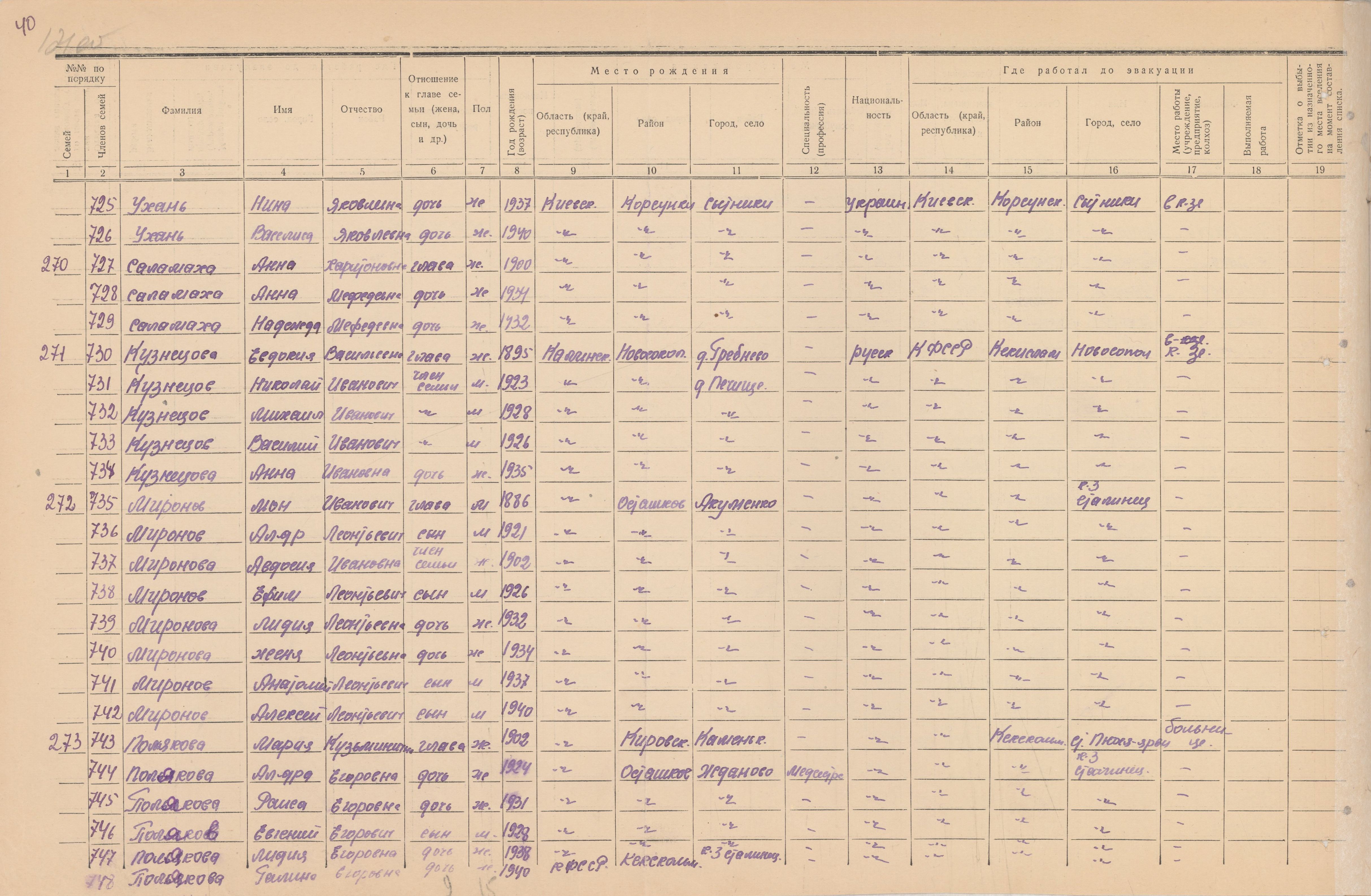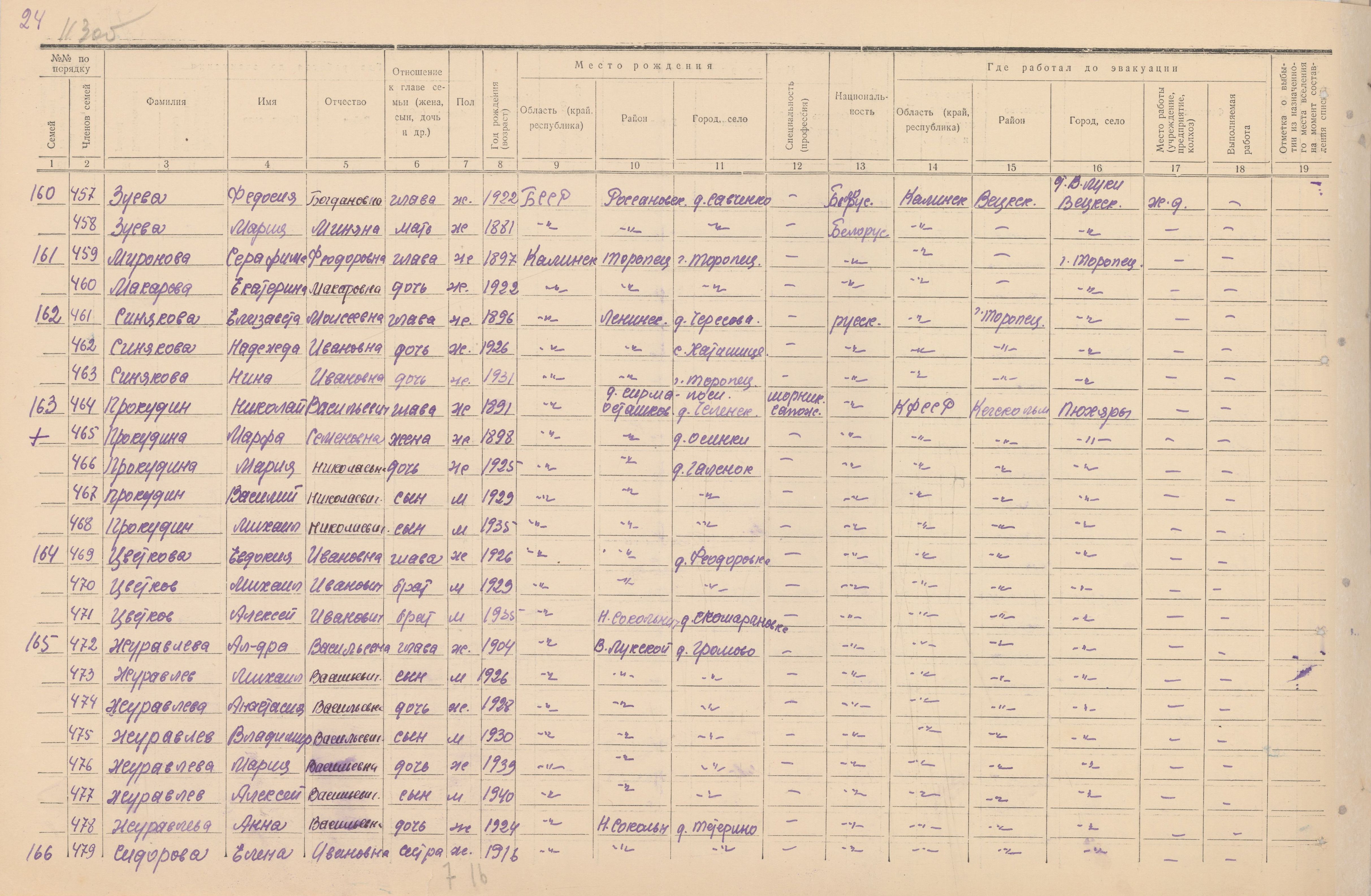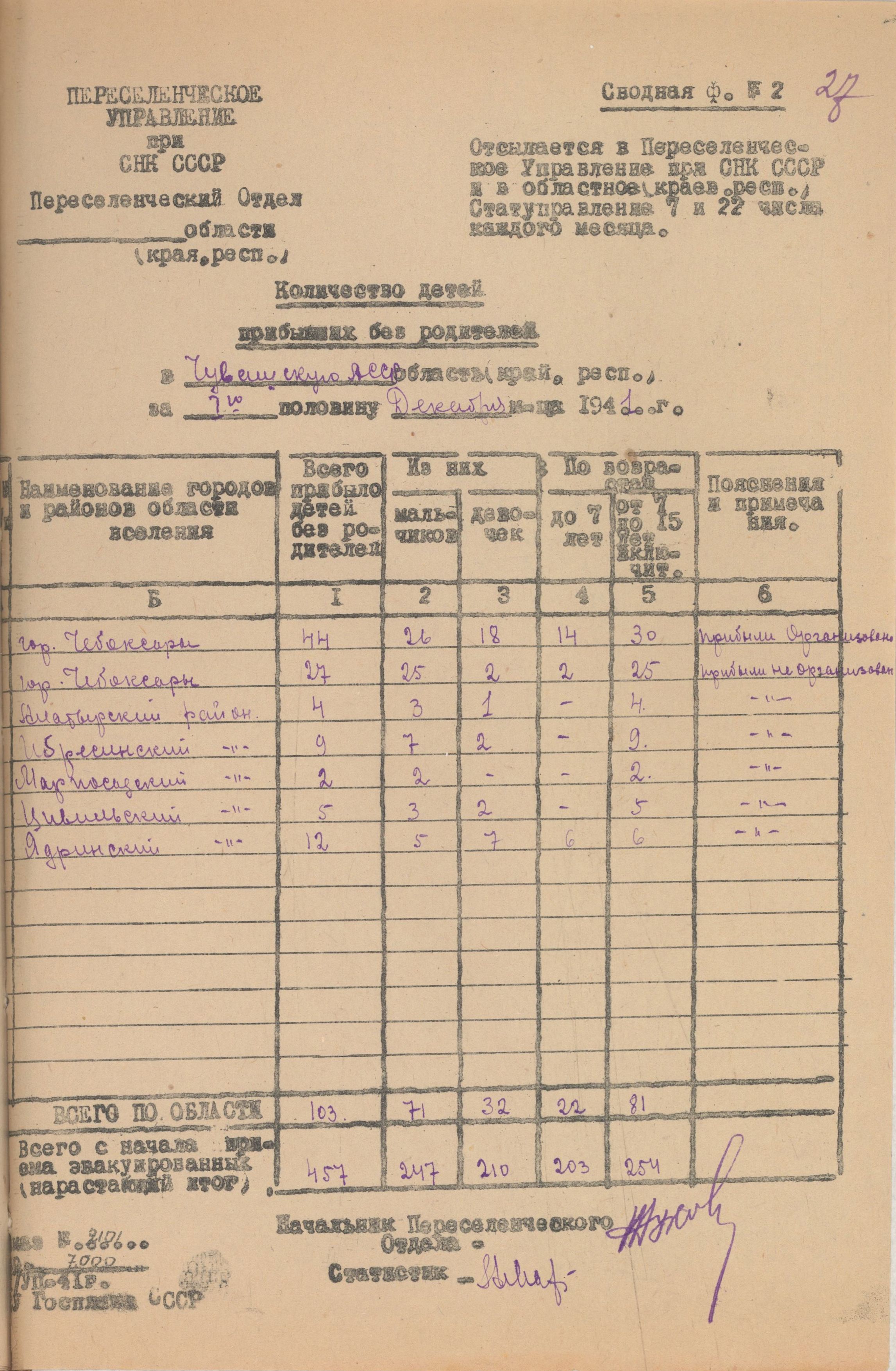 Сведения о количестве семей и лиц эвакуированных в Чувашскую АССР
