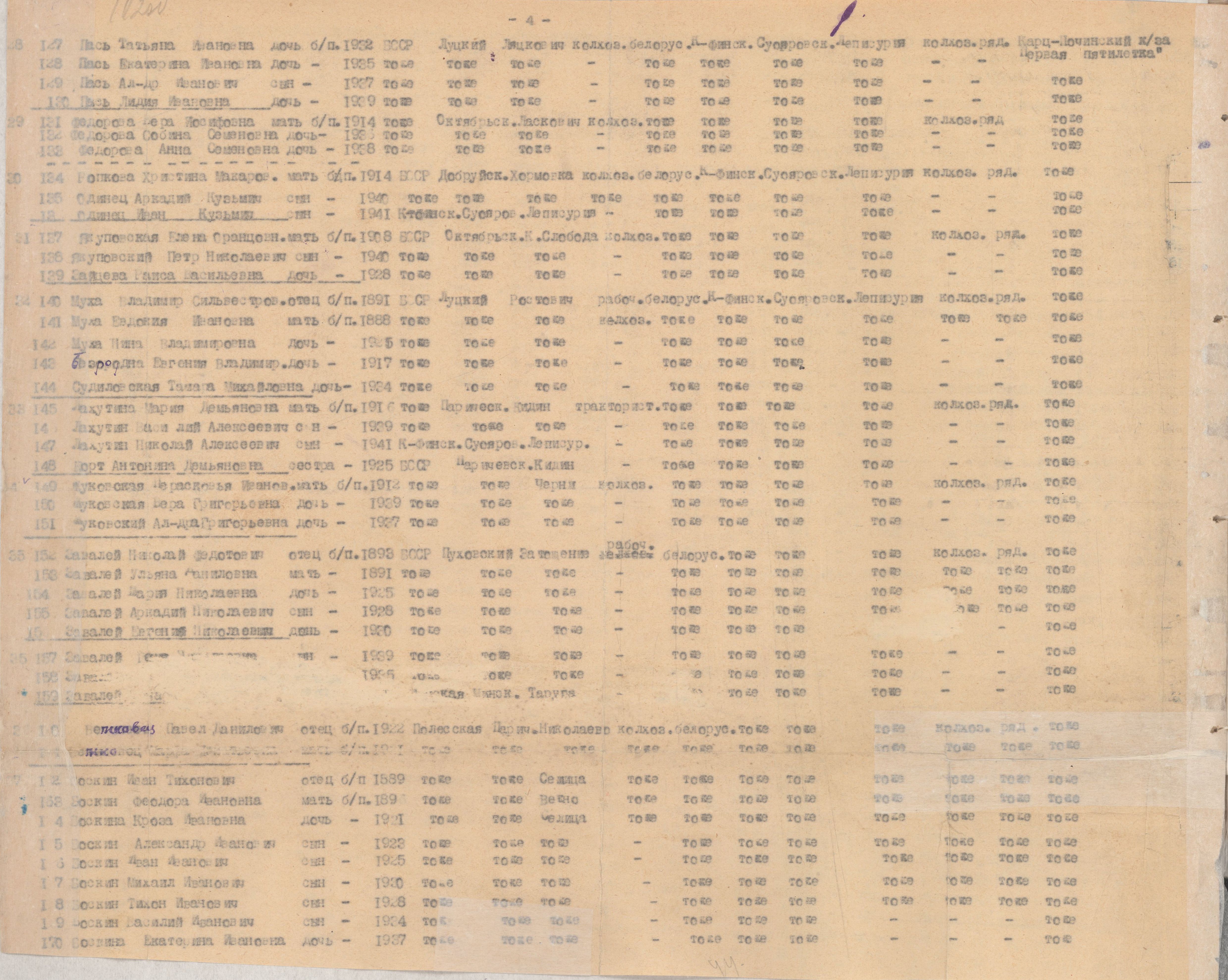 Список эвакуированных граждан, уроженцев Яльчикского района Чувашской АССР, из Карело-Финской ССР.