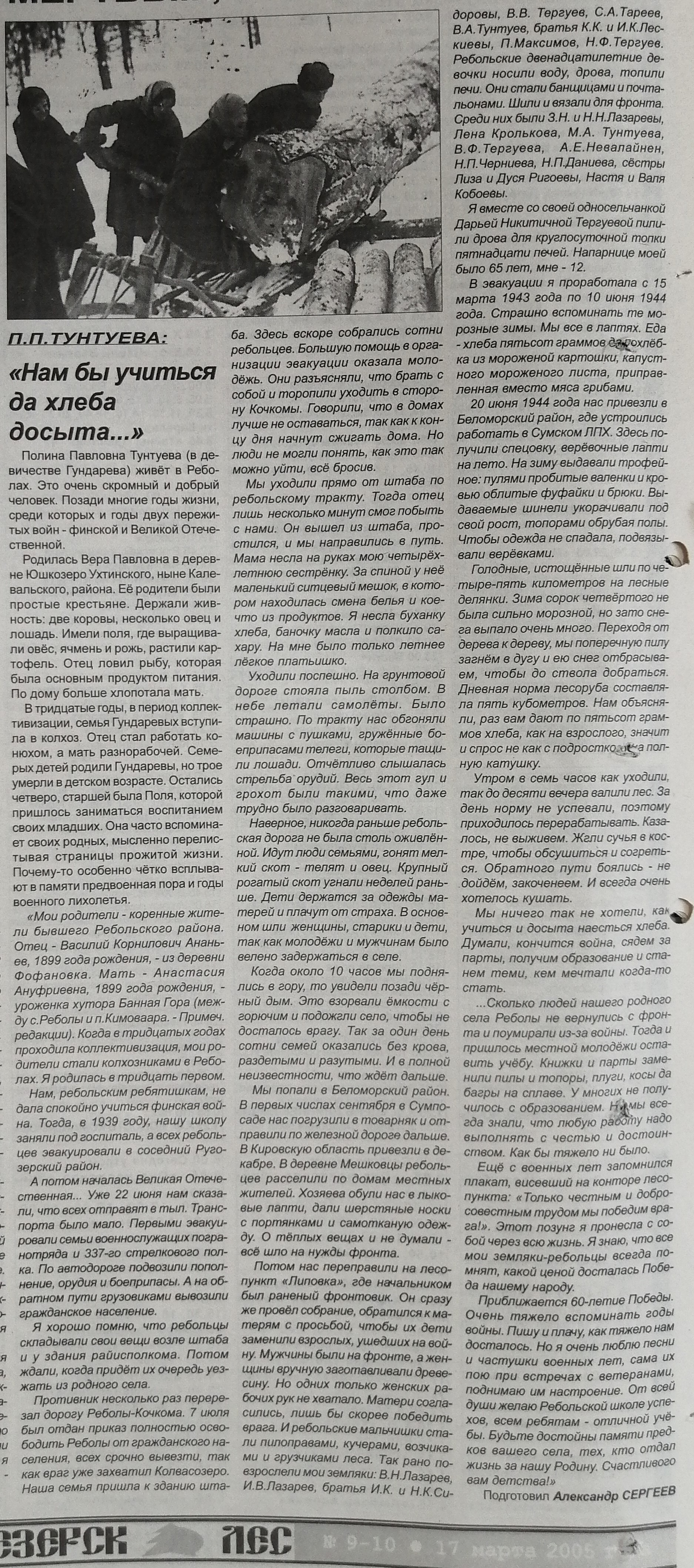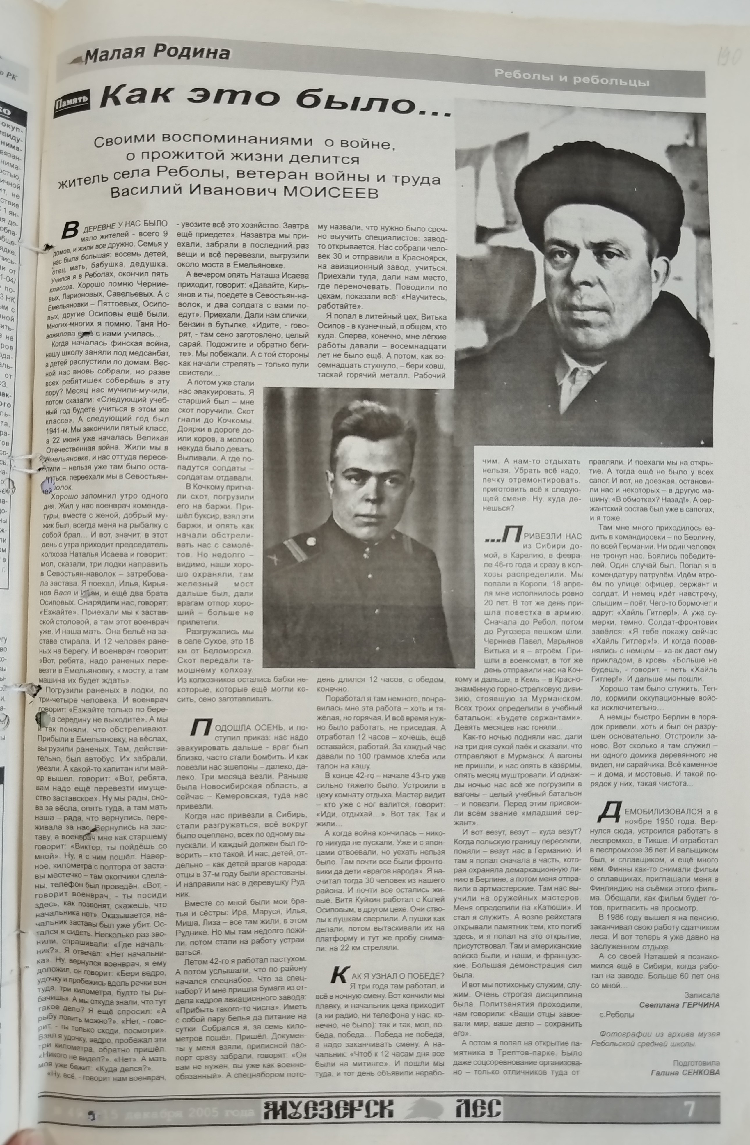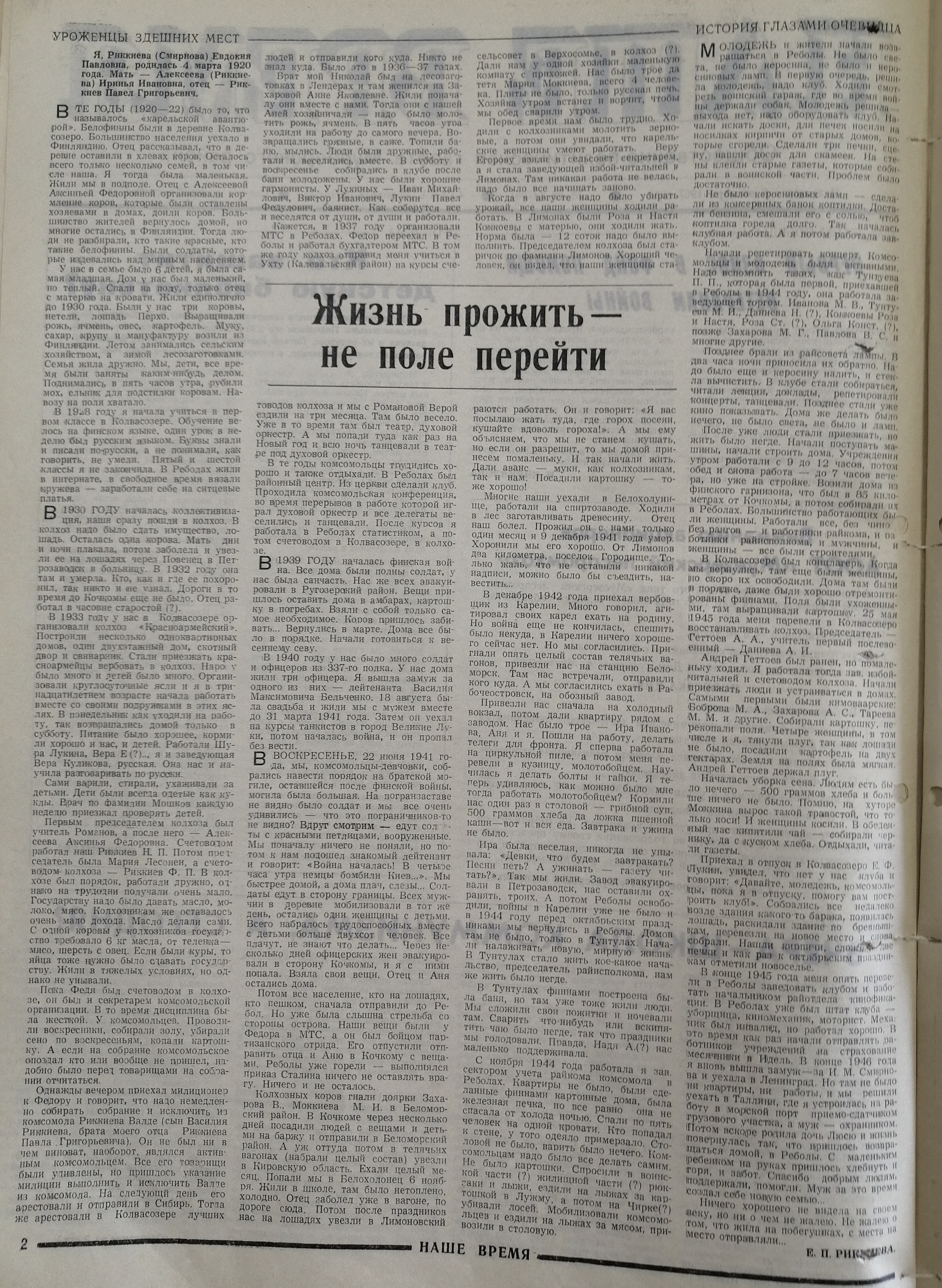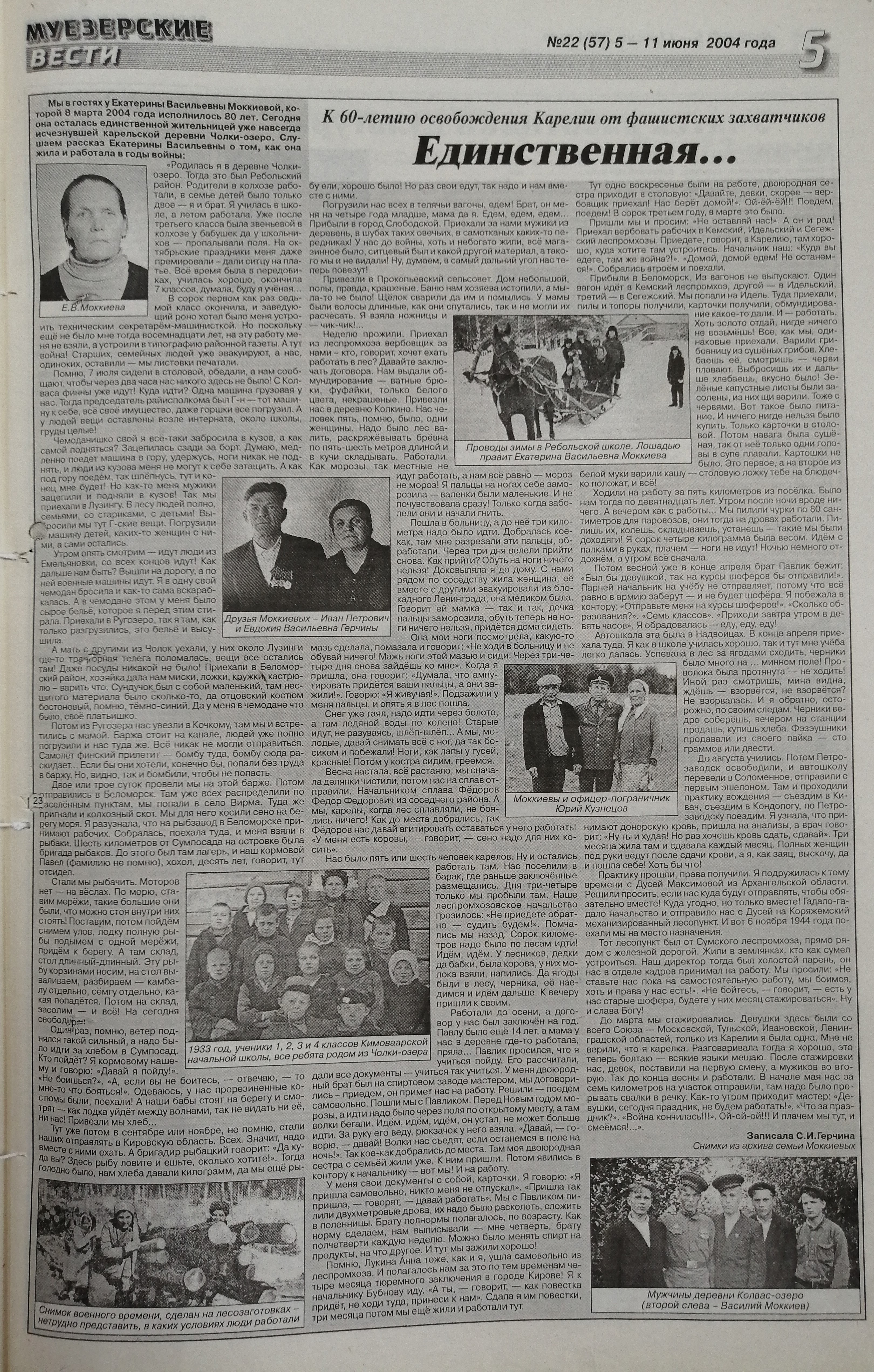 Материалы переданы Еленой Эйновной Климошевской (пгт Муезерский Республики Карелия), директором МКУ «Муезерский межмуниципальный районный архив».