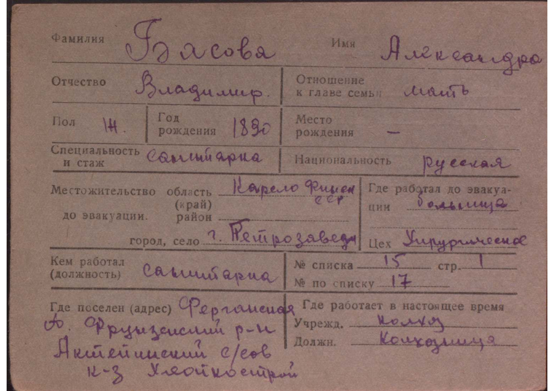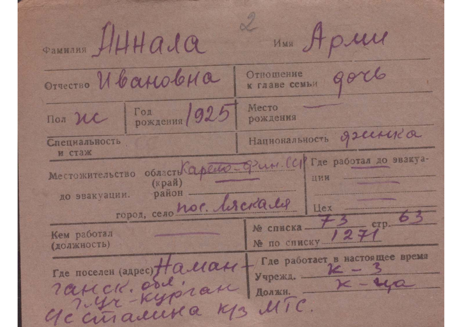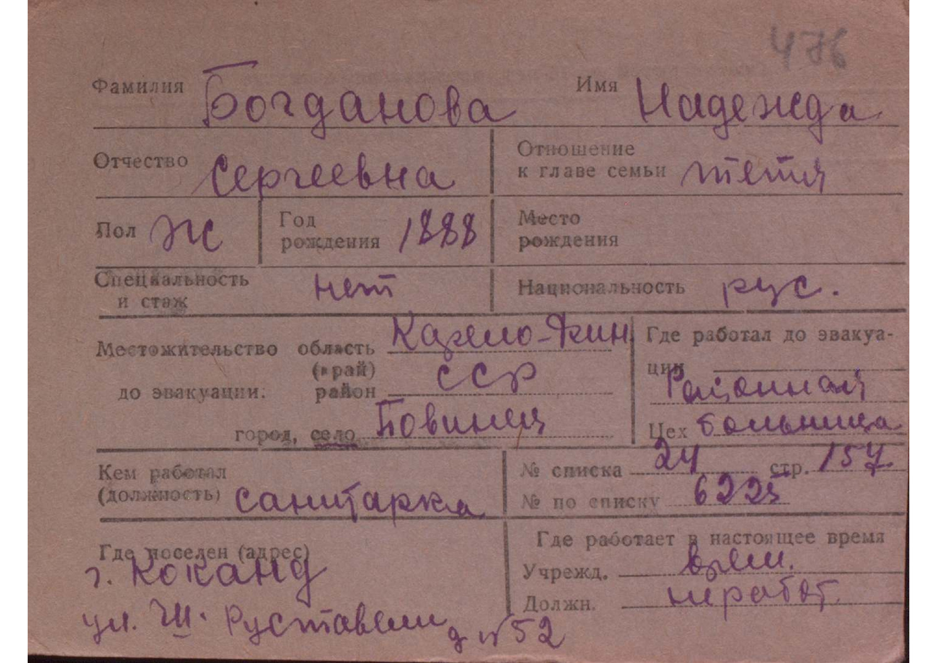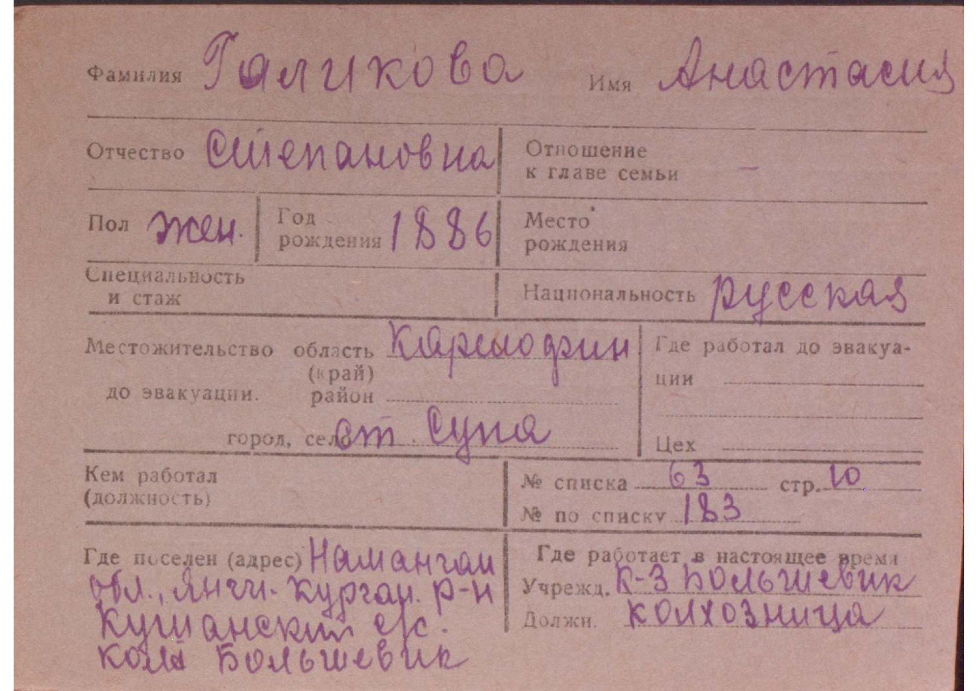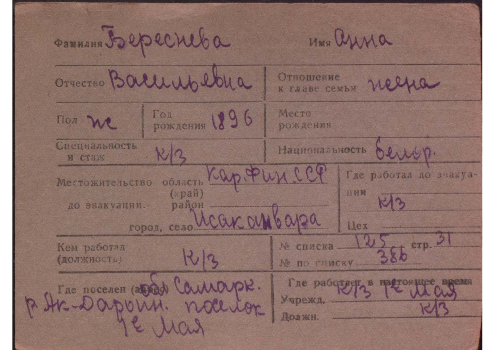 Карточки на эвакуированных из прифронтовой полосы граждан.