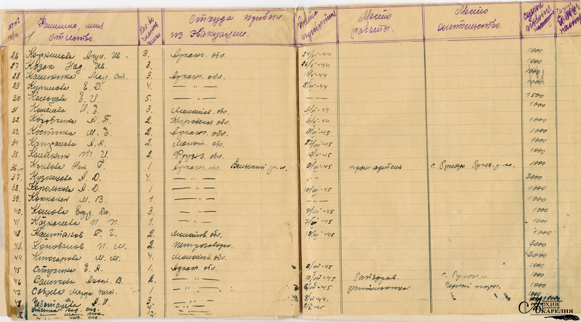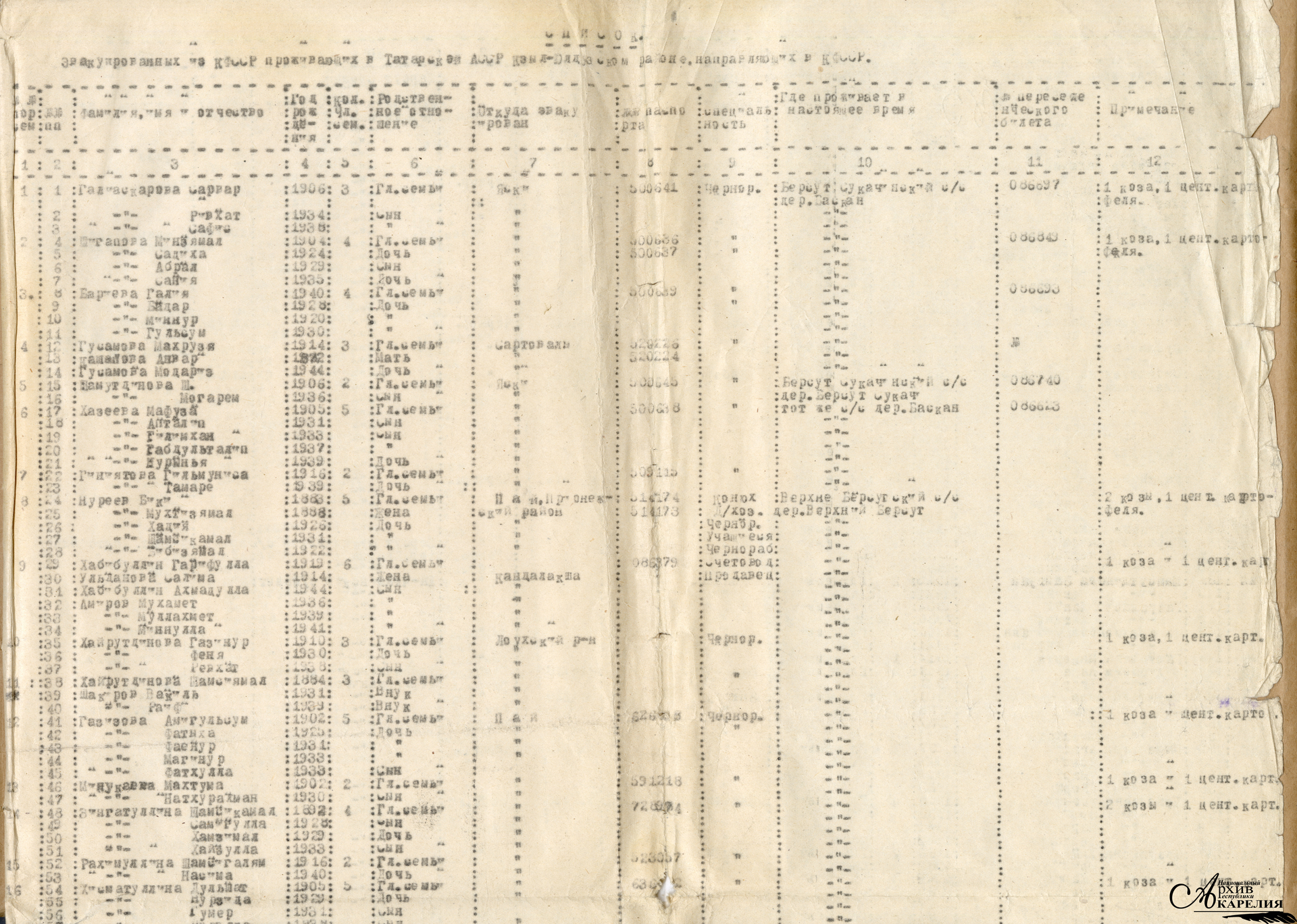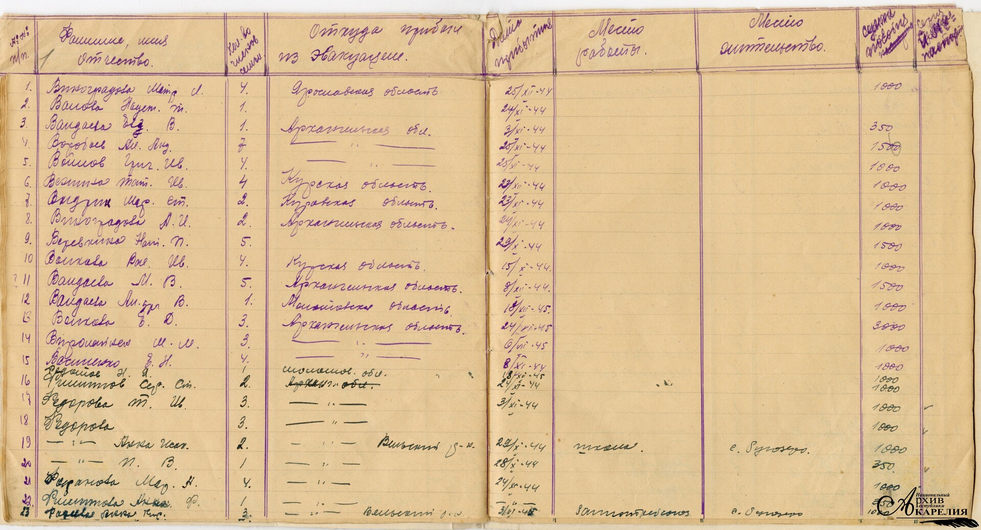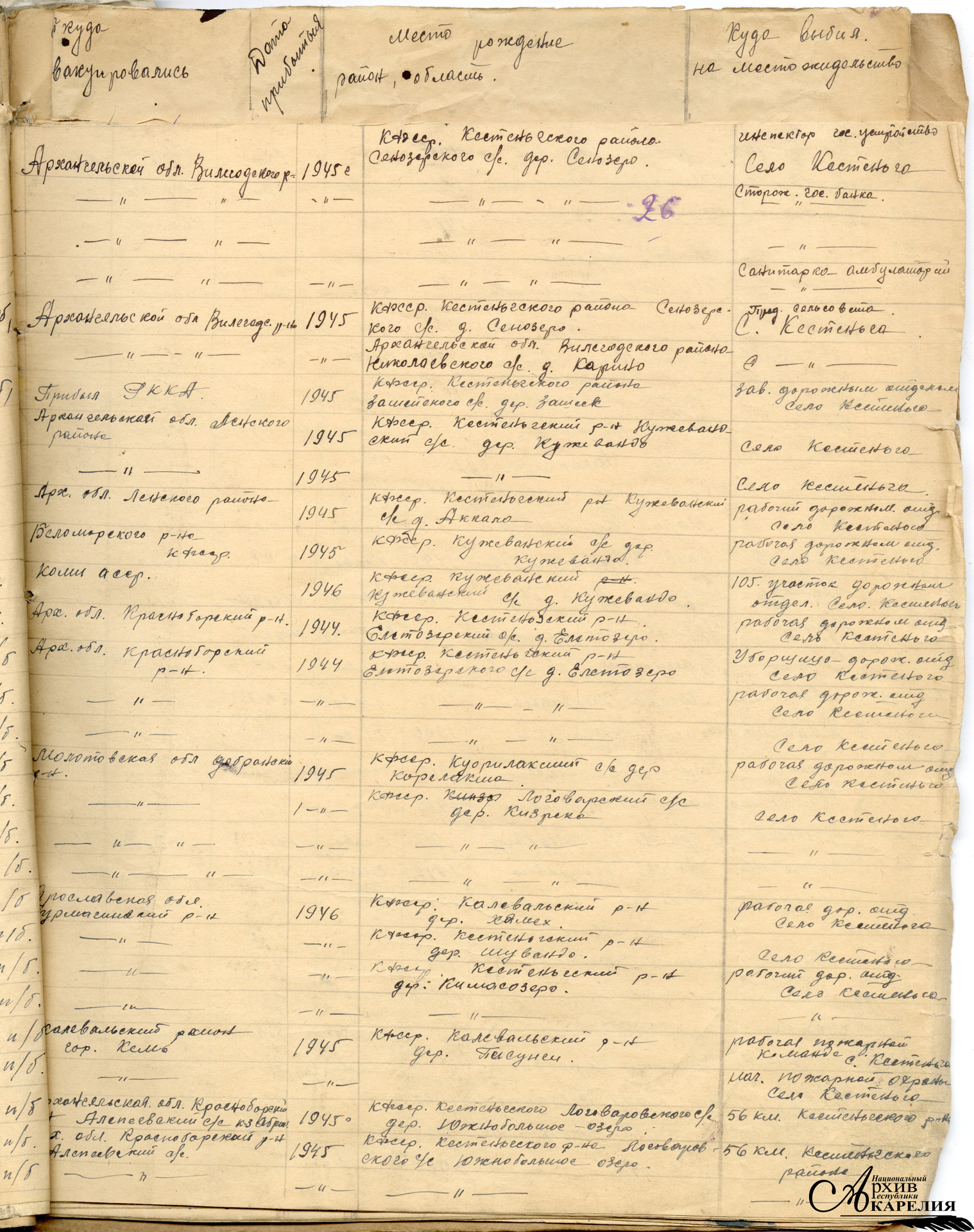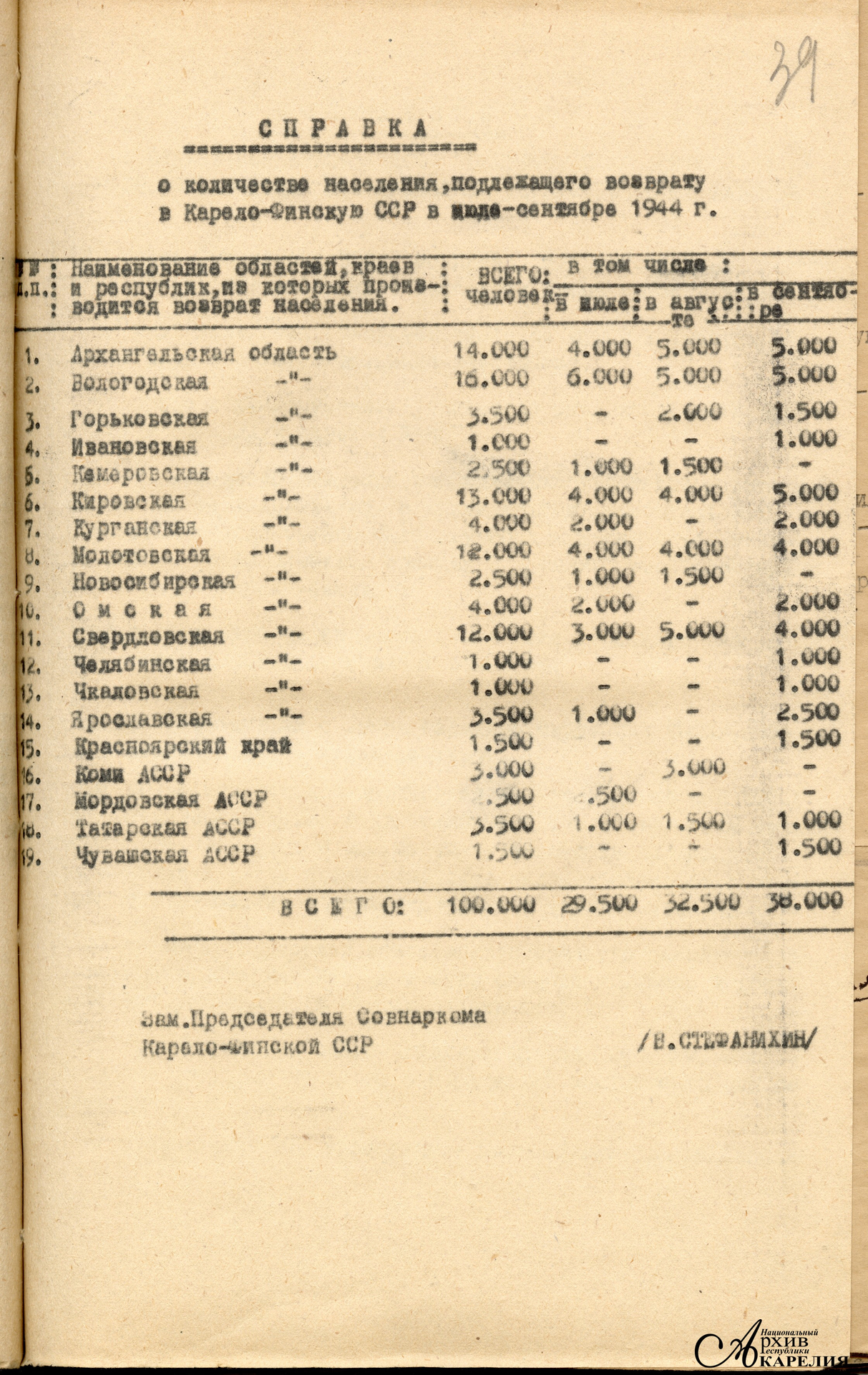 Список специалистов сельского хозяйства (агрономов, механиков, ветврачей), эвакуированных из КФССР и проживающих в Ярославской области, составленный уполномоченным СНК КФССР по Ярославской области Вайноненом для подготовки возвращения в КФССР.