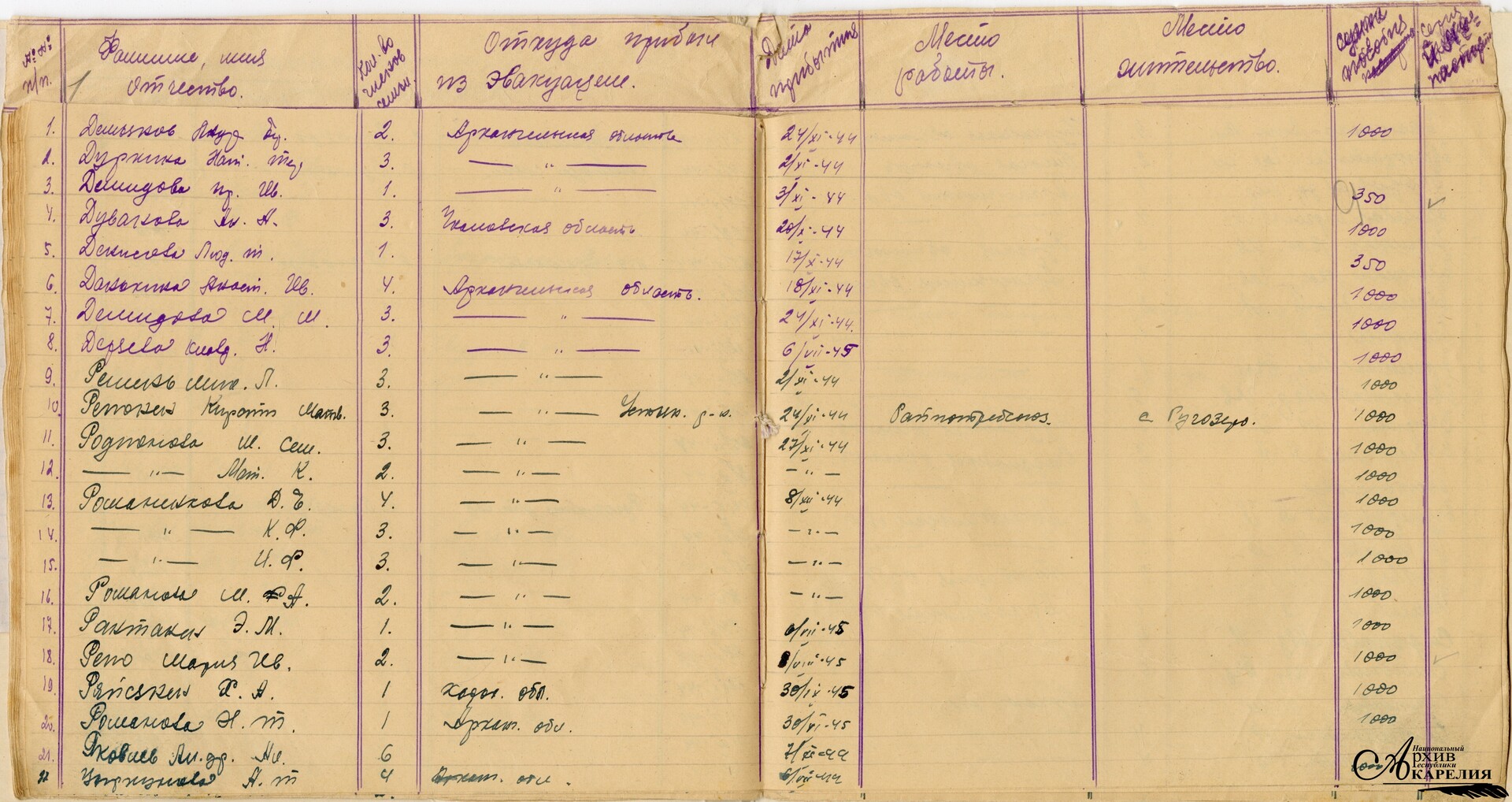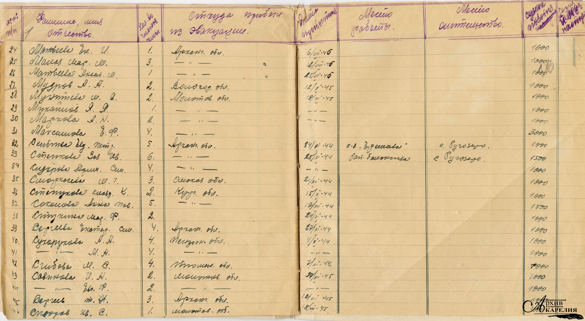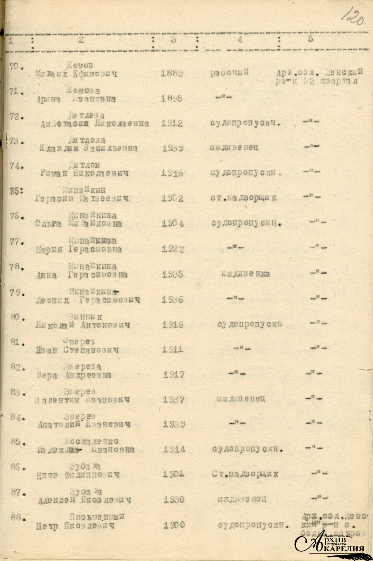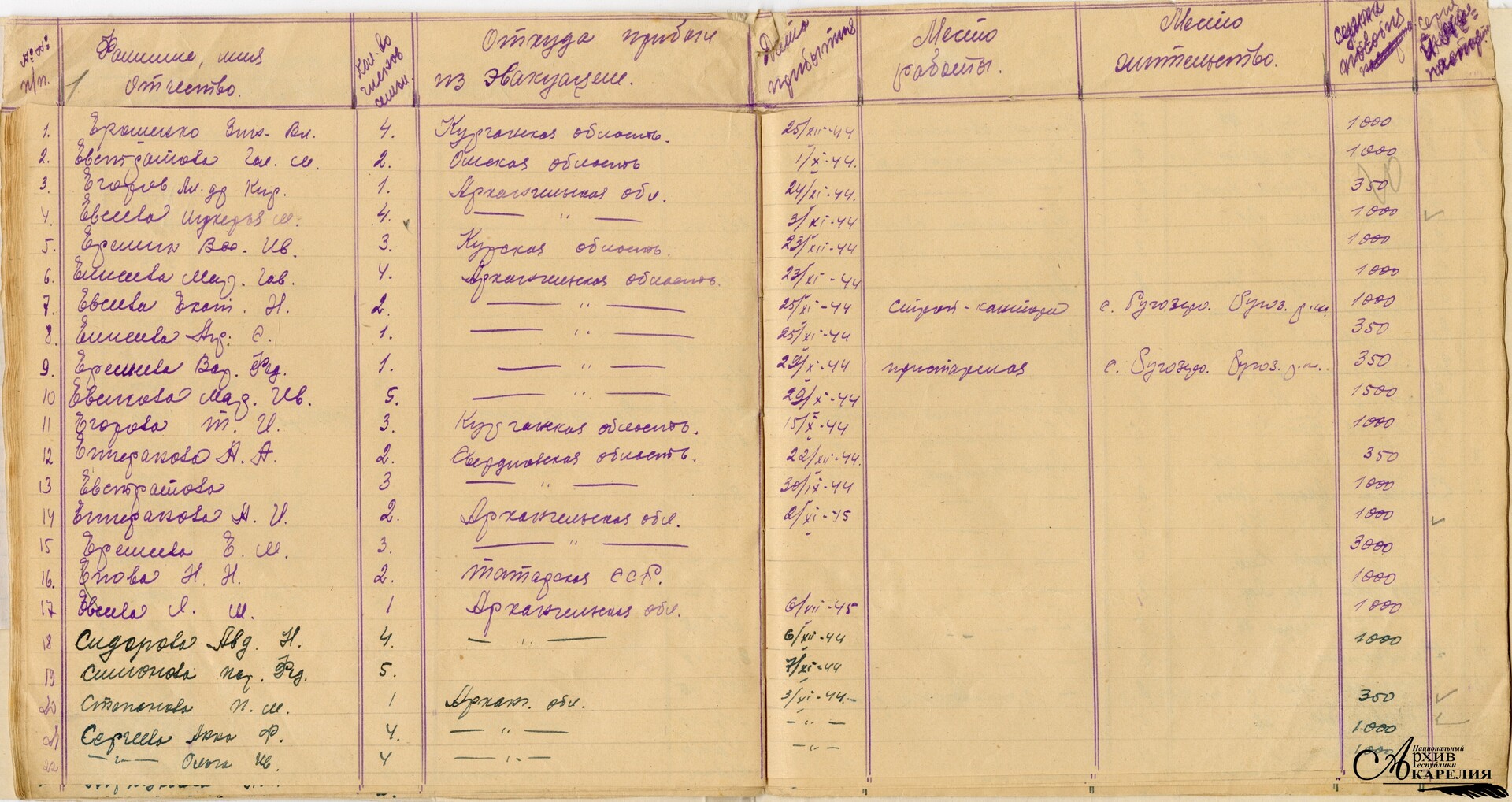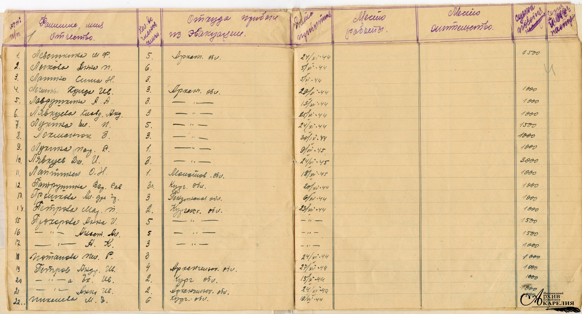 Список специалистов сельского хозяйства (агрономов, механиков, ветврачей), эвакуированных из КФССР и проживающих в Ярославской области, составленный уполномоченным СНК КФССР по Ярославской области Вайноненом для подготовки возвращения в КФССР.
