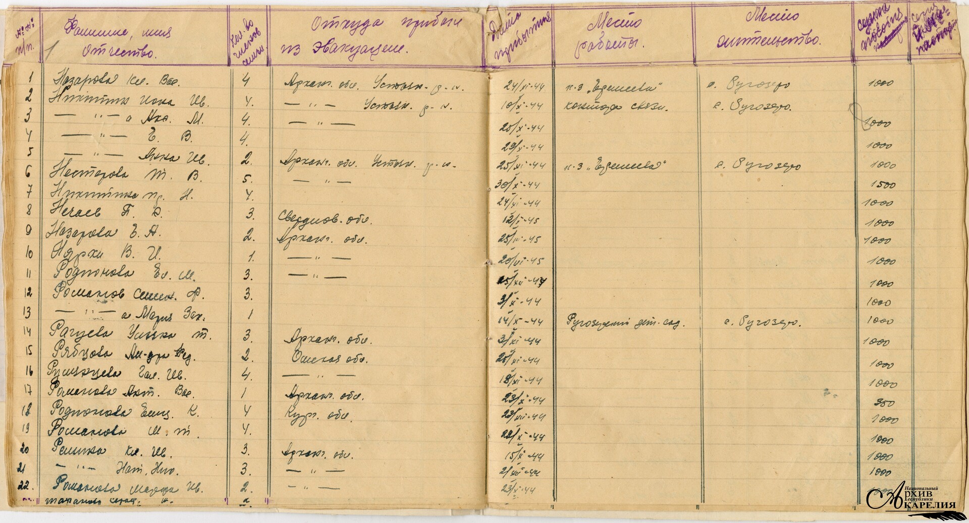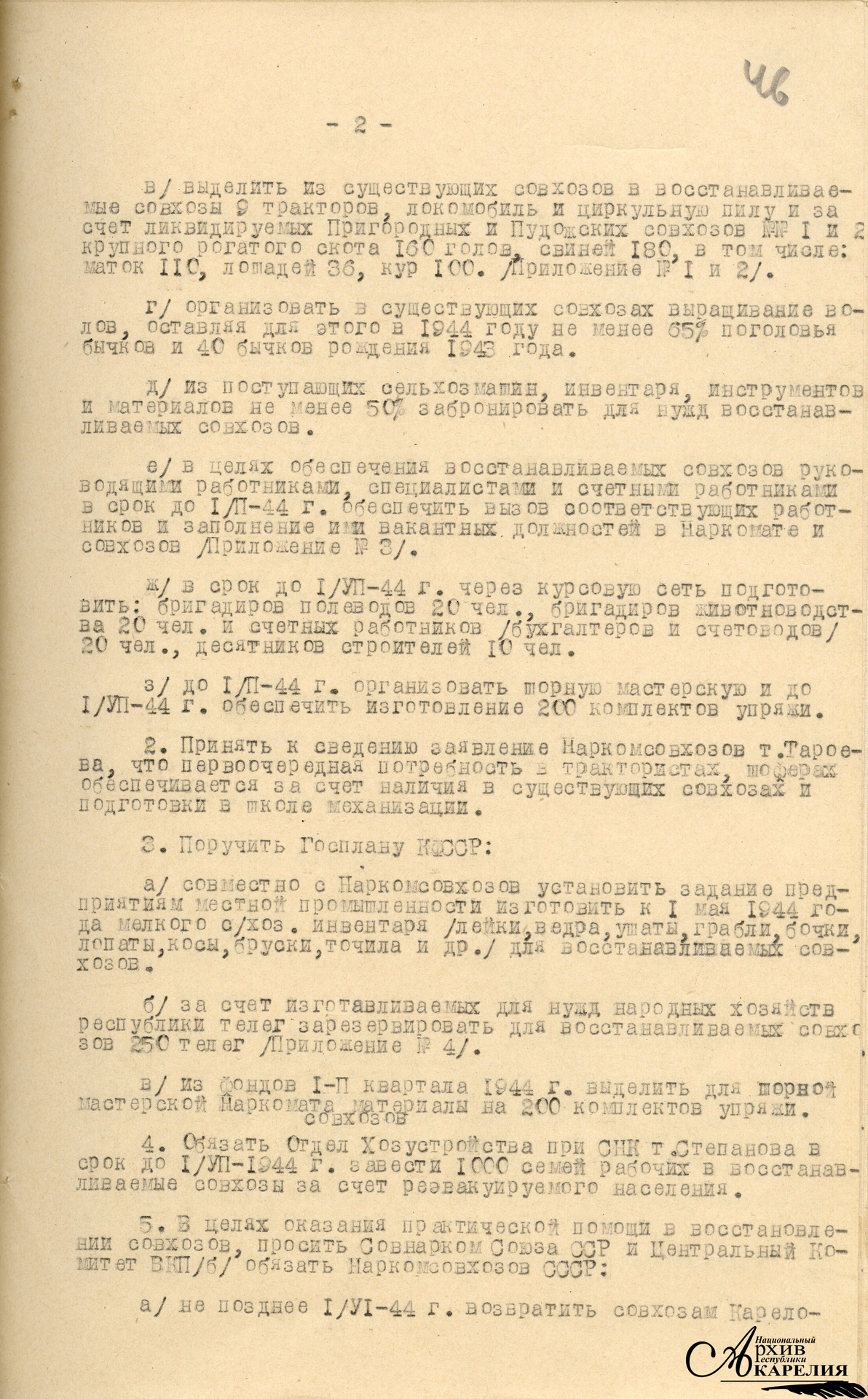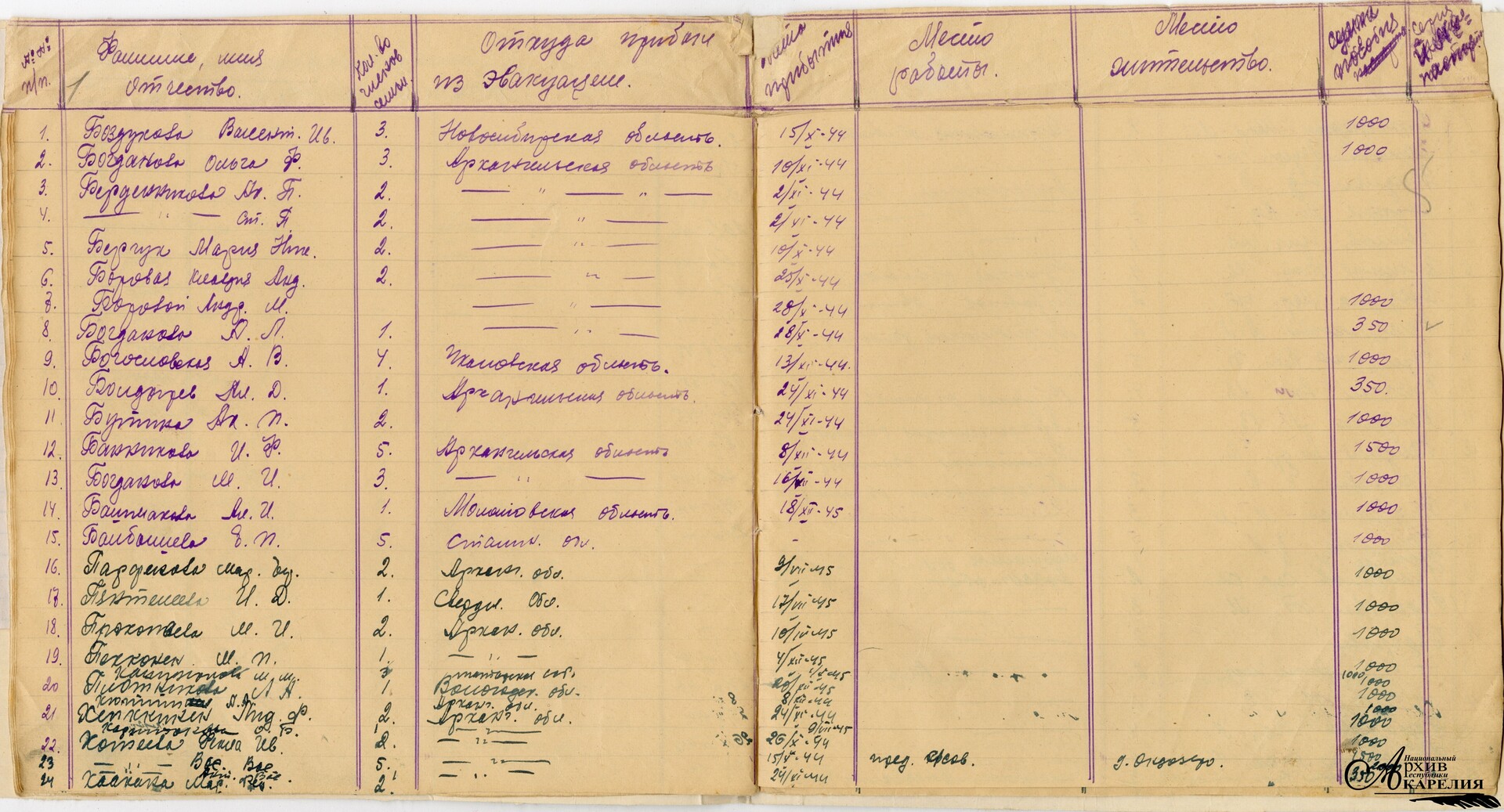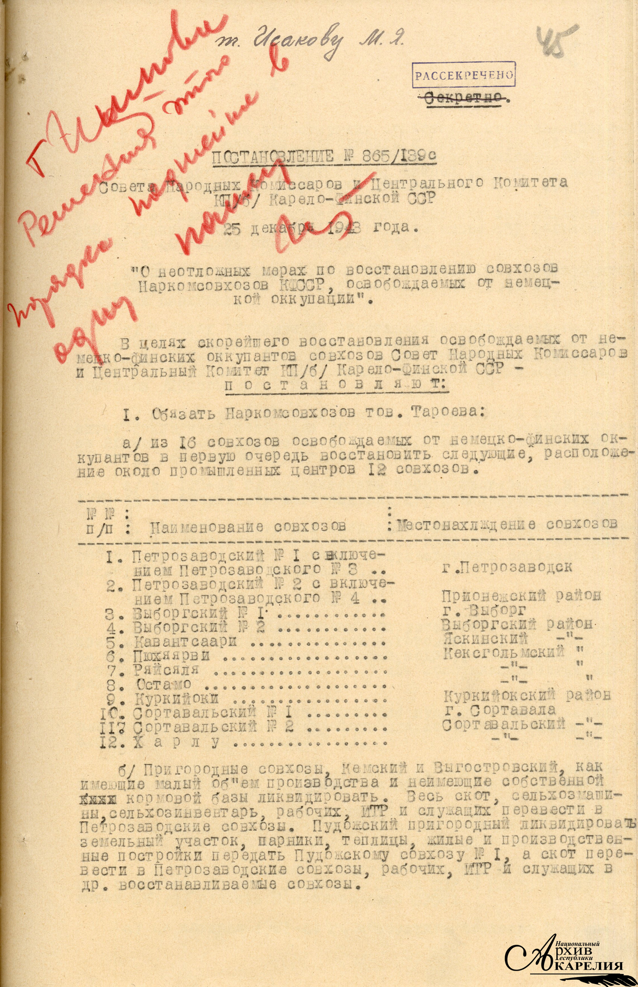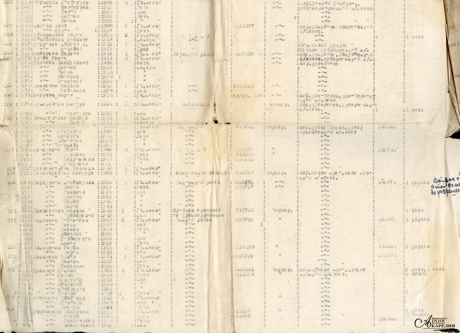 Список специалистов сельского хозяйства (агрономов, механиков, ветврачей), эвакуированных из КФССР и проживающих в Ярославской области, составленный уполномоченным СНК КФССР по Ярославской области Вайноненом для подготовки возвращения в КФССР.