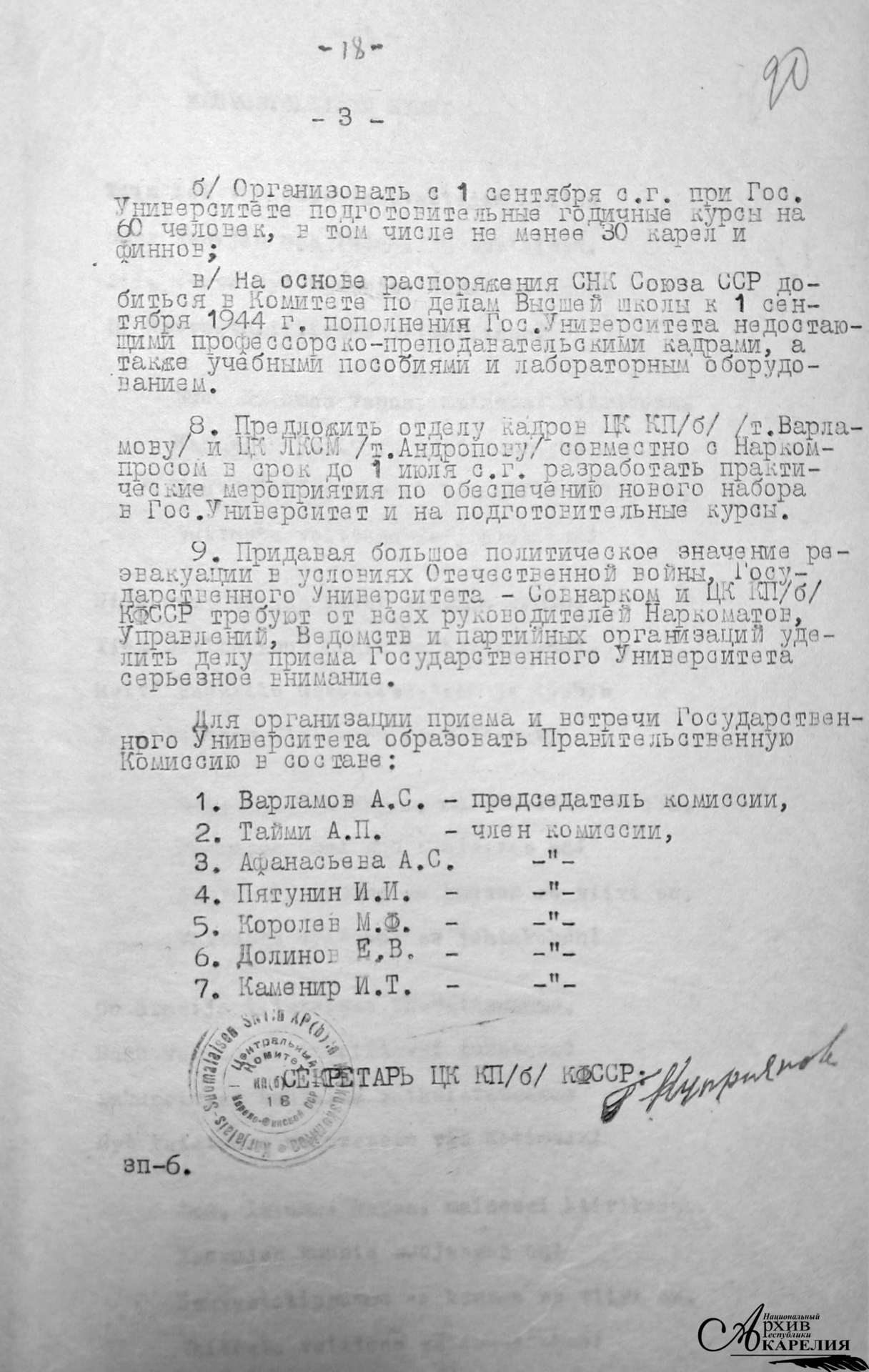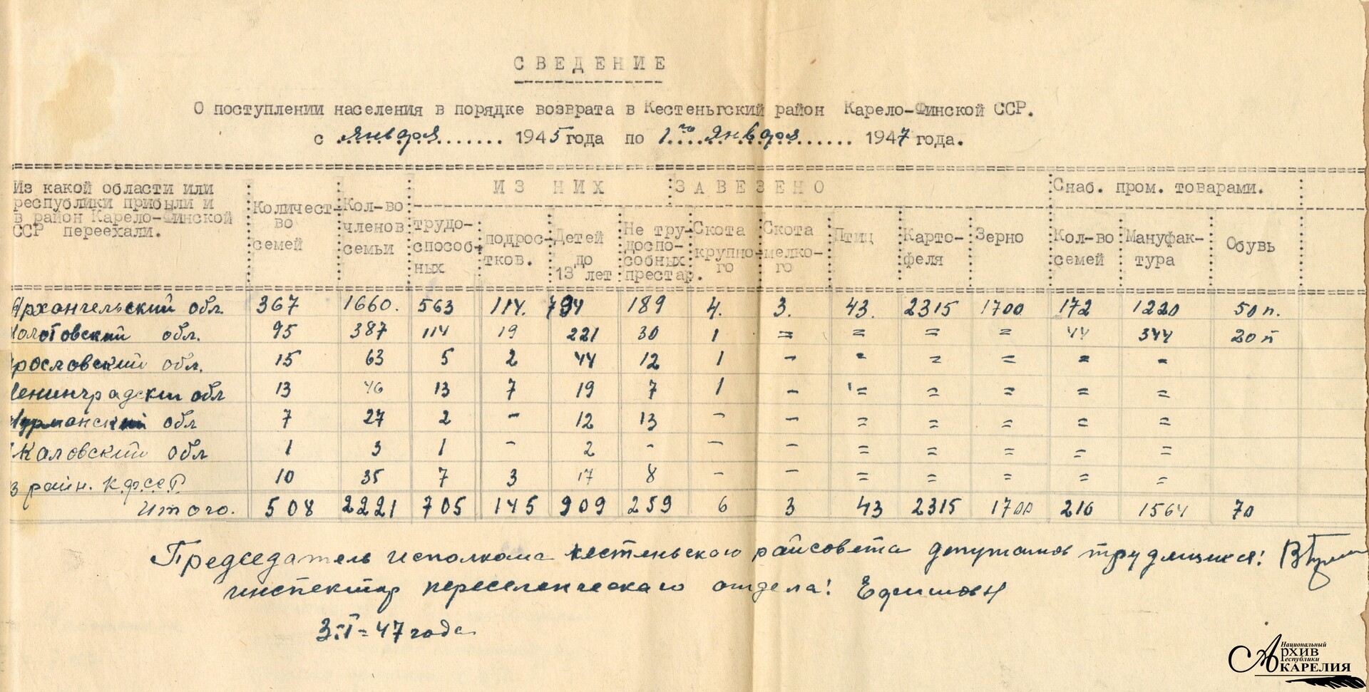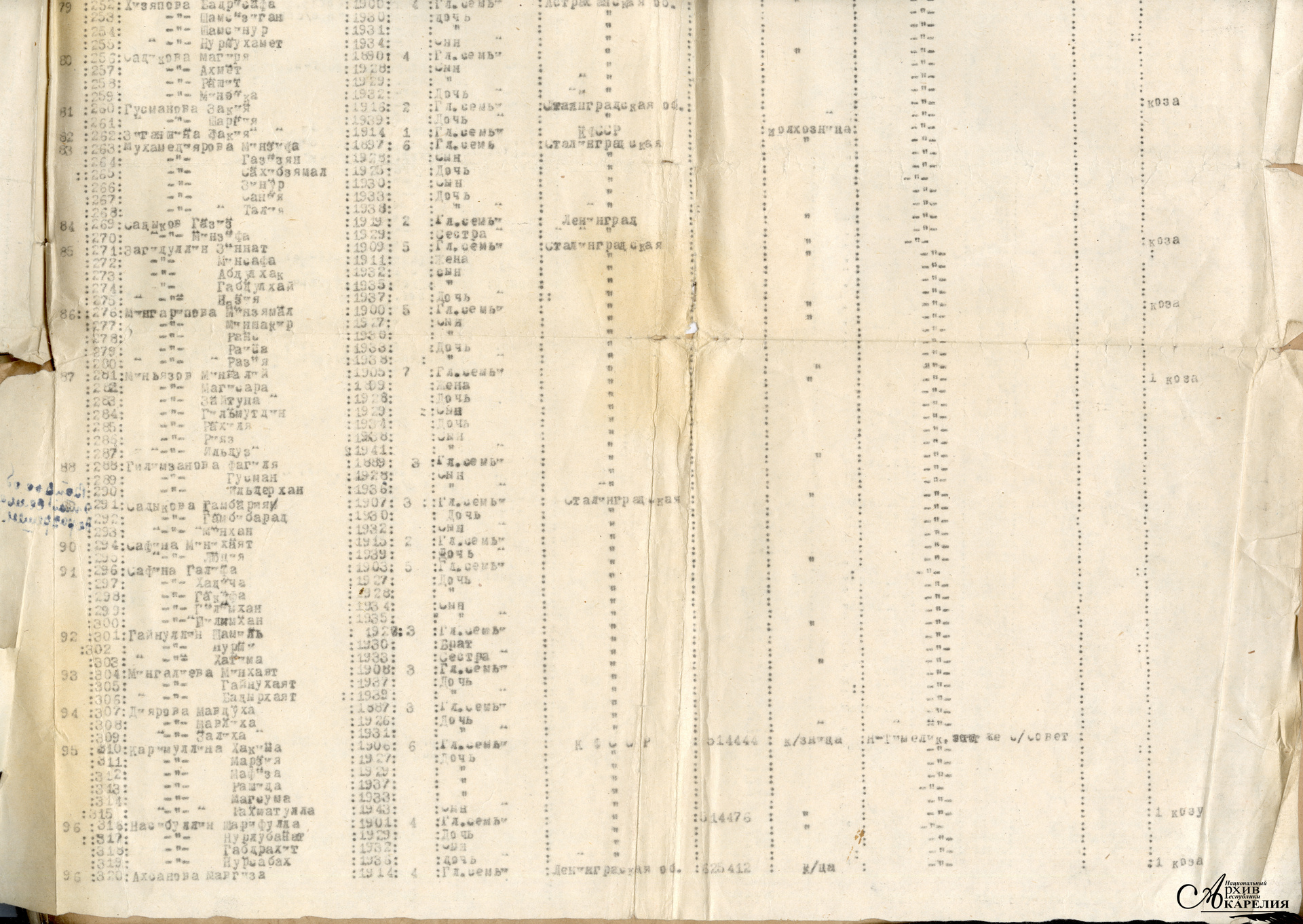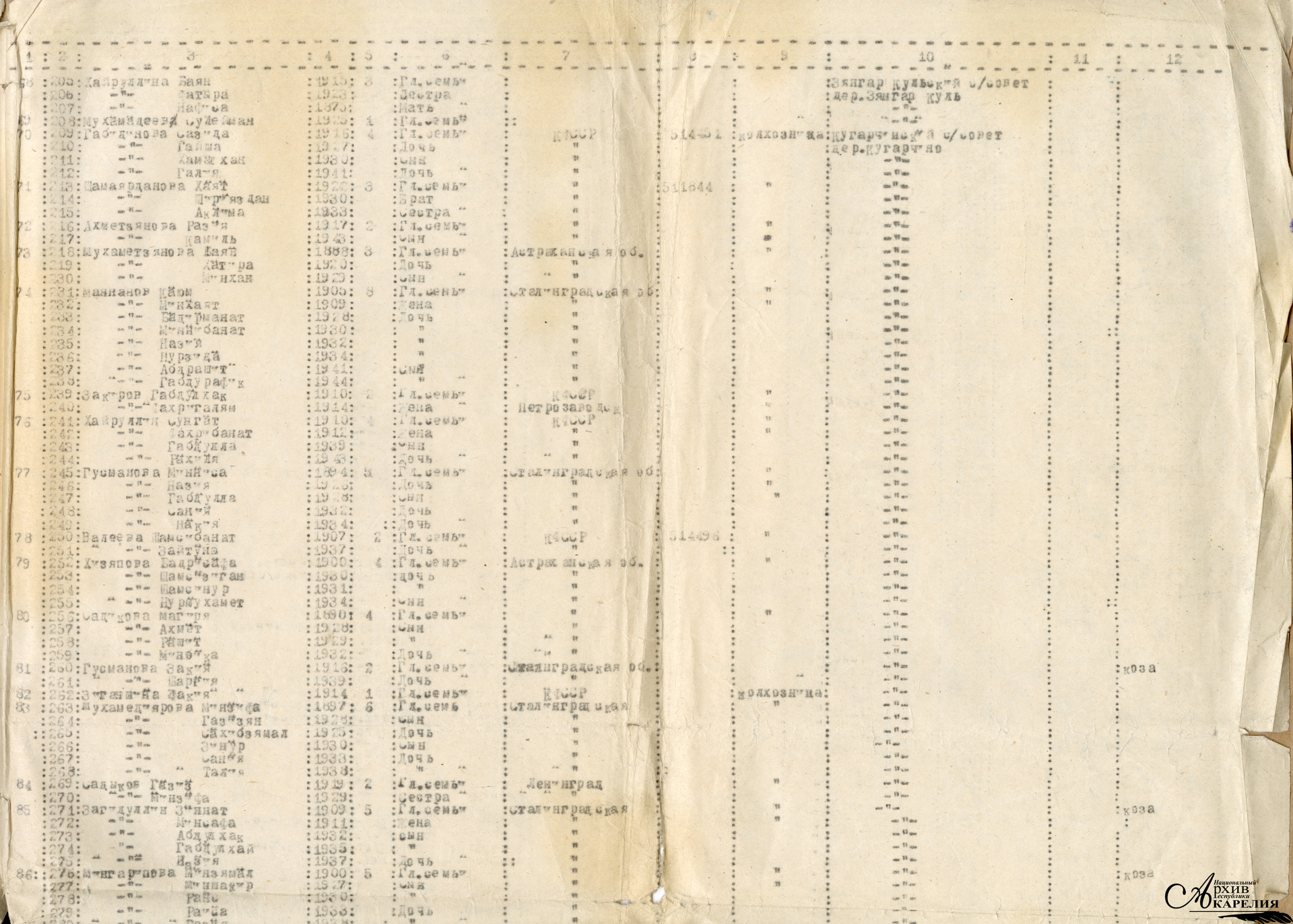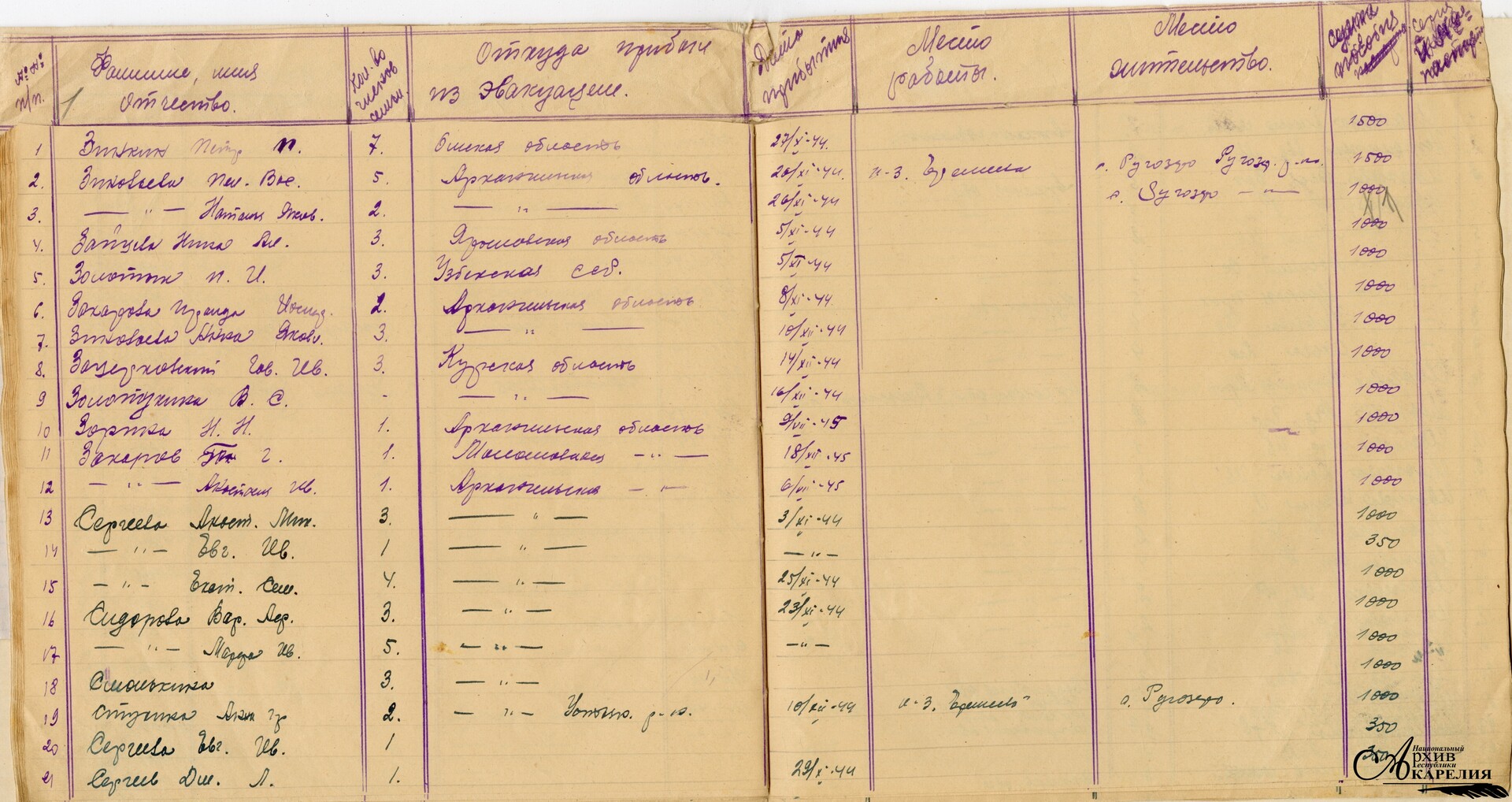 Список специалистов сельского хозяйства (агрономов, механиков, ветврачей), эвакуированных из КФССР и проживающих в Ярославской области, составленный уполномоченным СНК КФССР по Ярославской области Вайноненом для подготовки возвращения в КФССР.