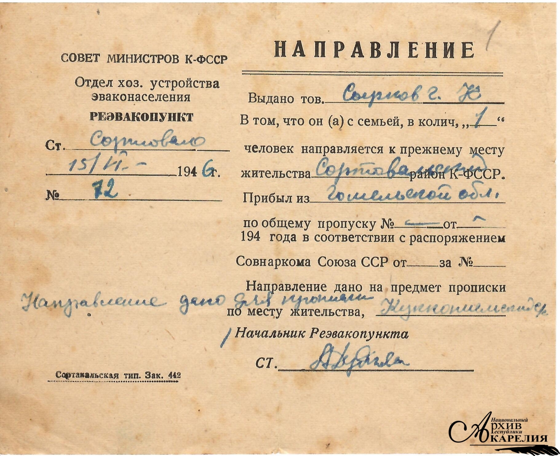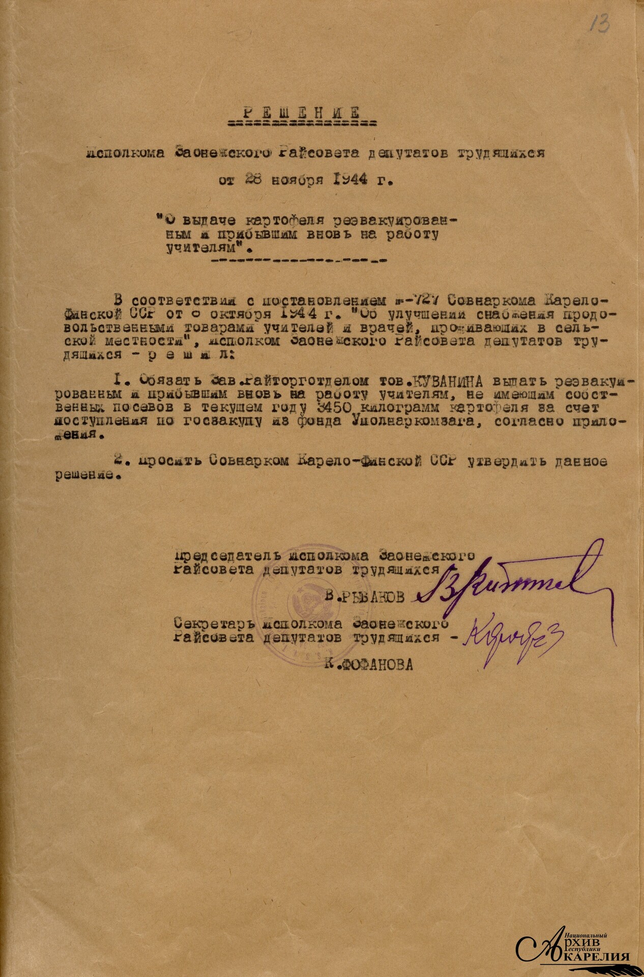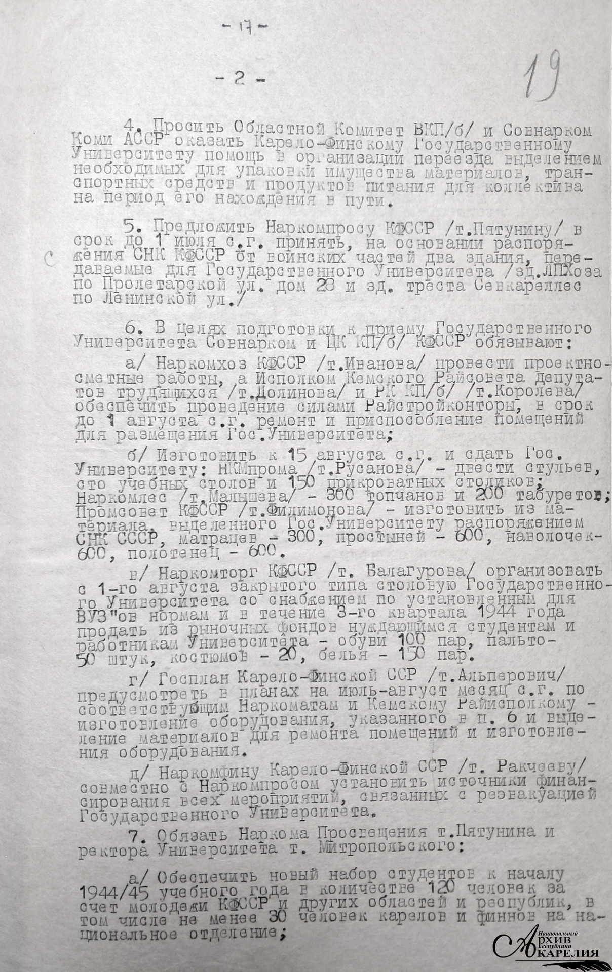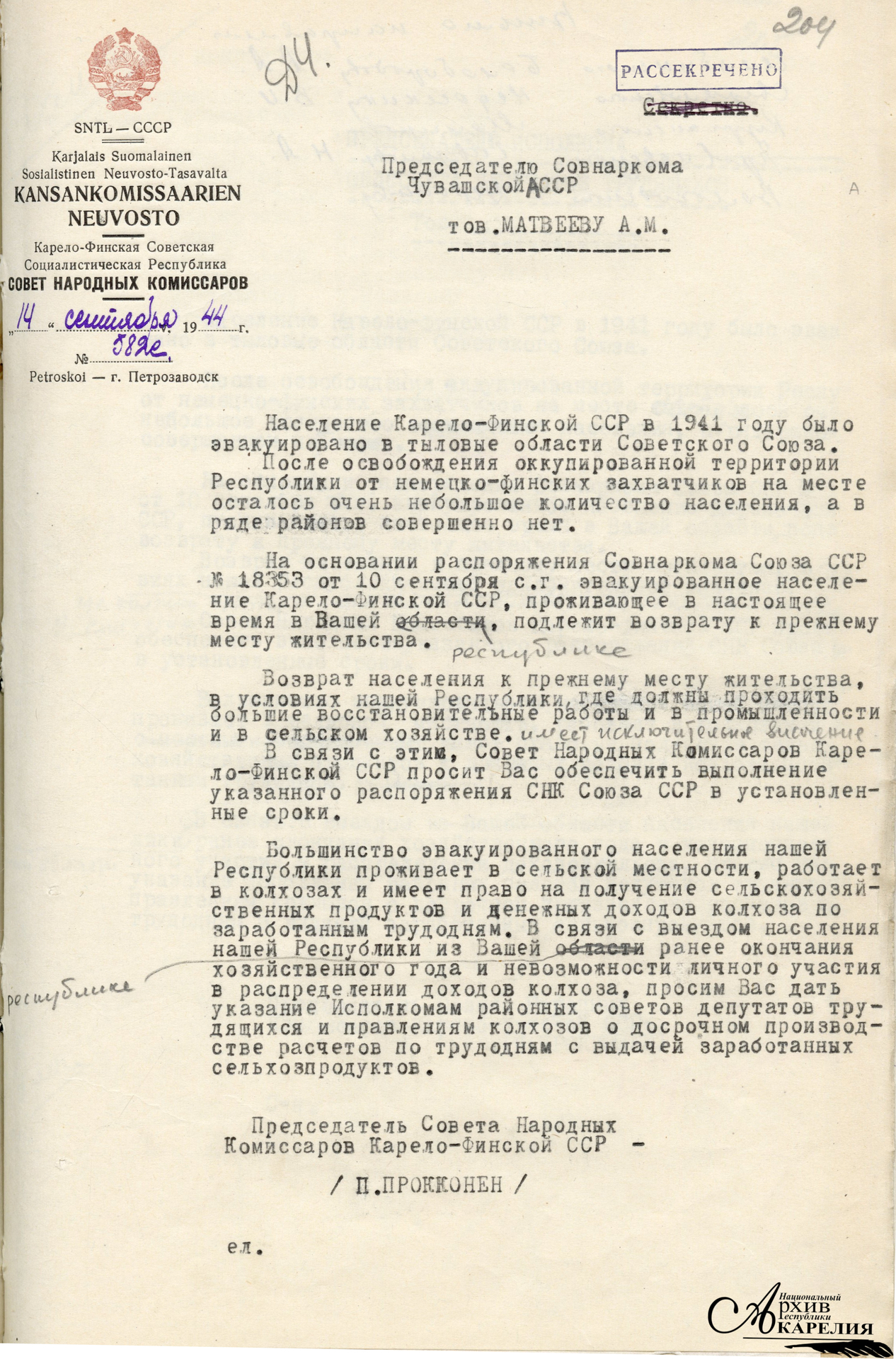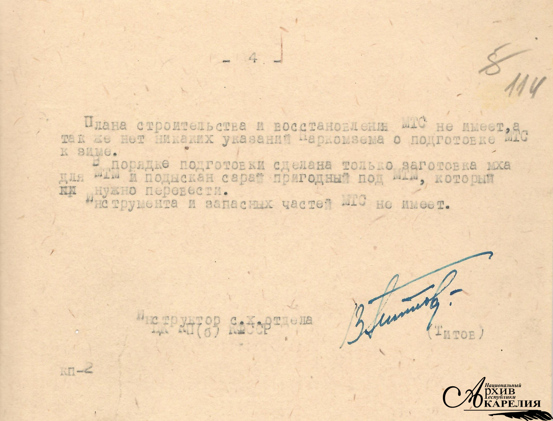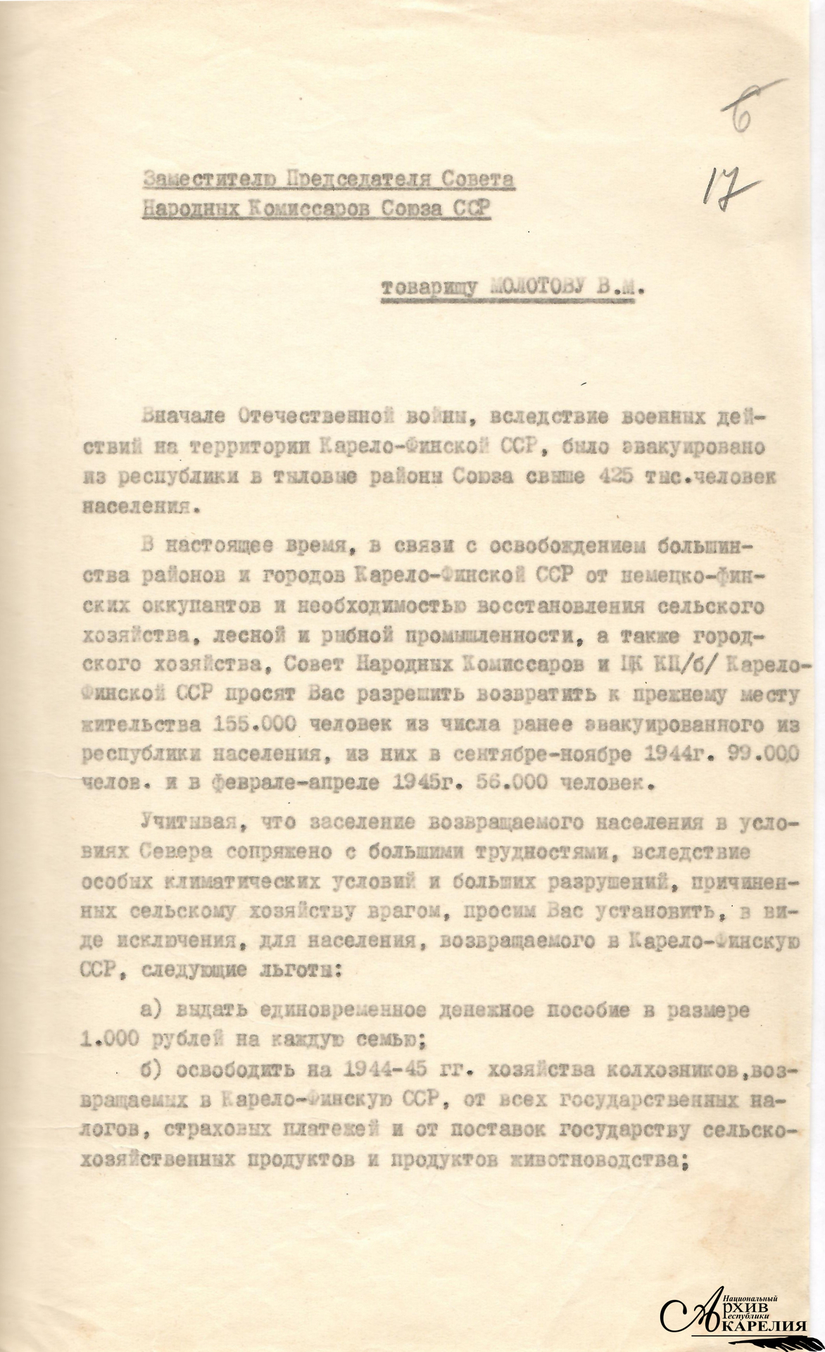 Список специалистов сельского хозяйства (агрономов, механиков, ветврачей), эвакуированных из КФССР и проживающих в Ярославской области, составленный уполномоченным СНК КФССР по Ярославской области Вайноненом для подготовки возвращения в КФССР.