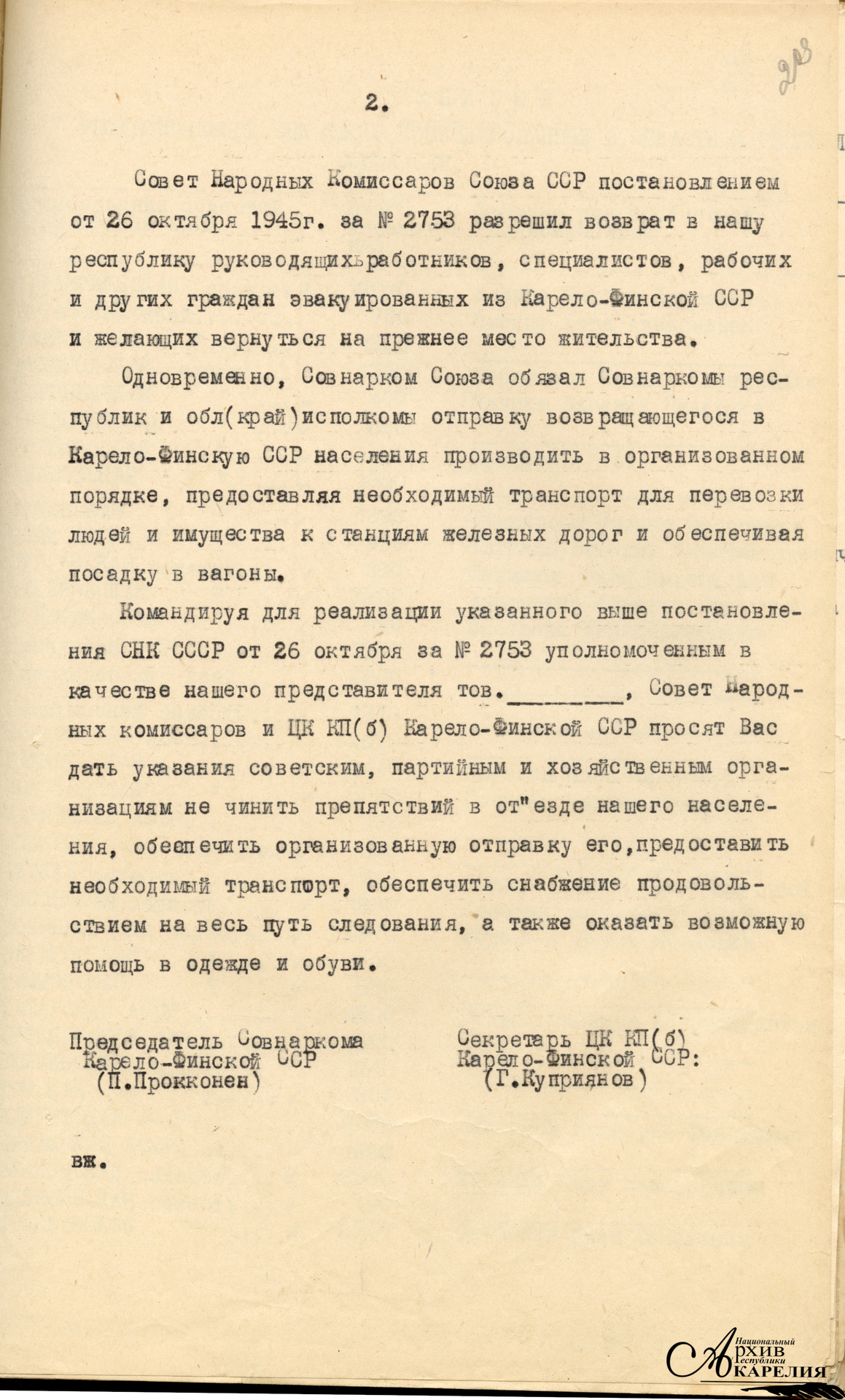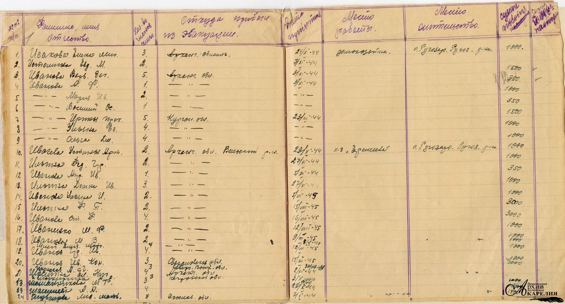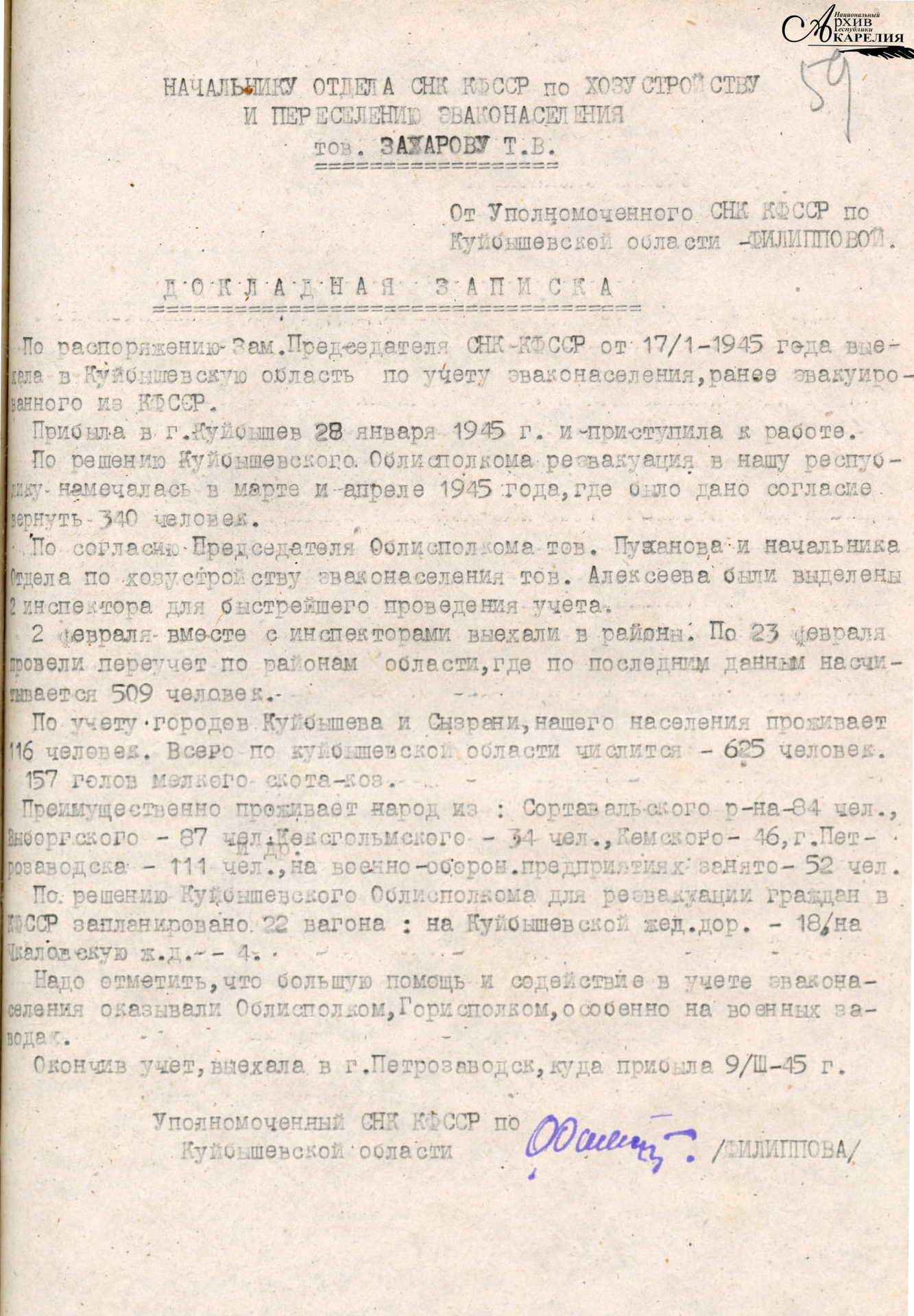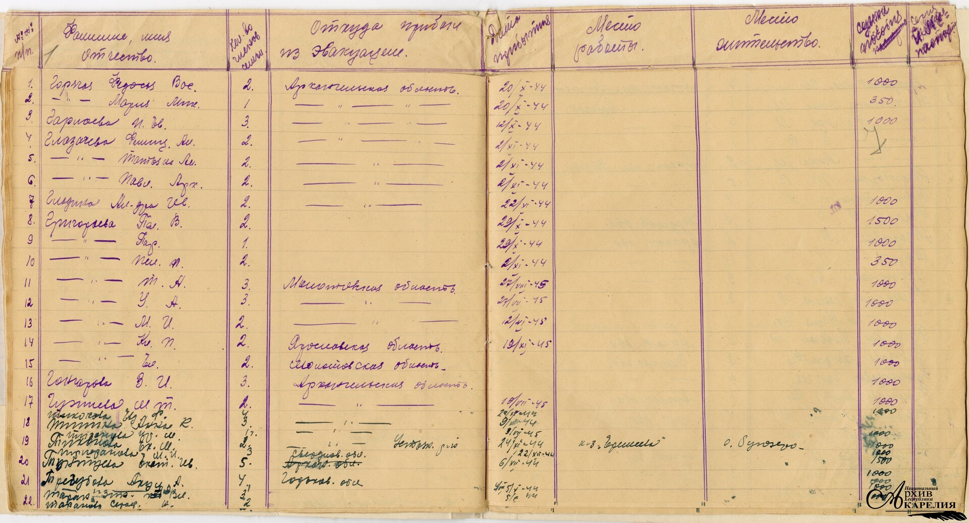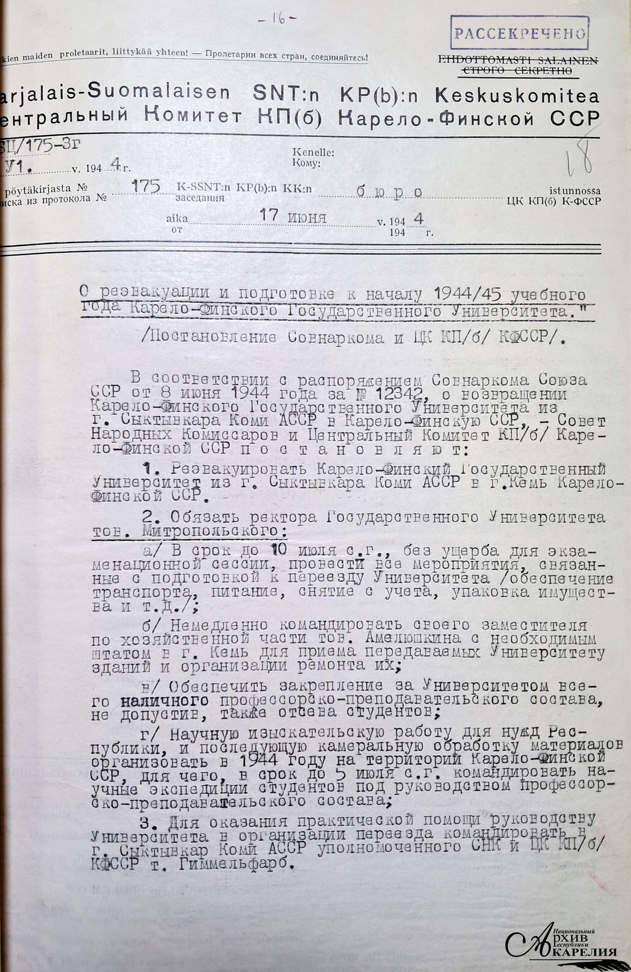 Список специалистов сельского хозяйства (агрономов, механиков, ветврачей), эвакуированных из КФССР и проживающих в Ярославской области, составленный уполномоченным СНК КФССР по Ярославской области Вайноненом для подготовки возвращения в КФССР.
