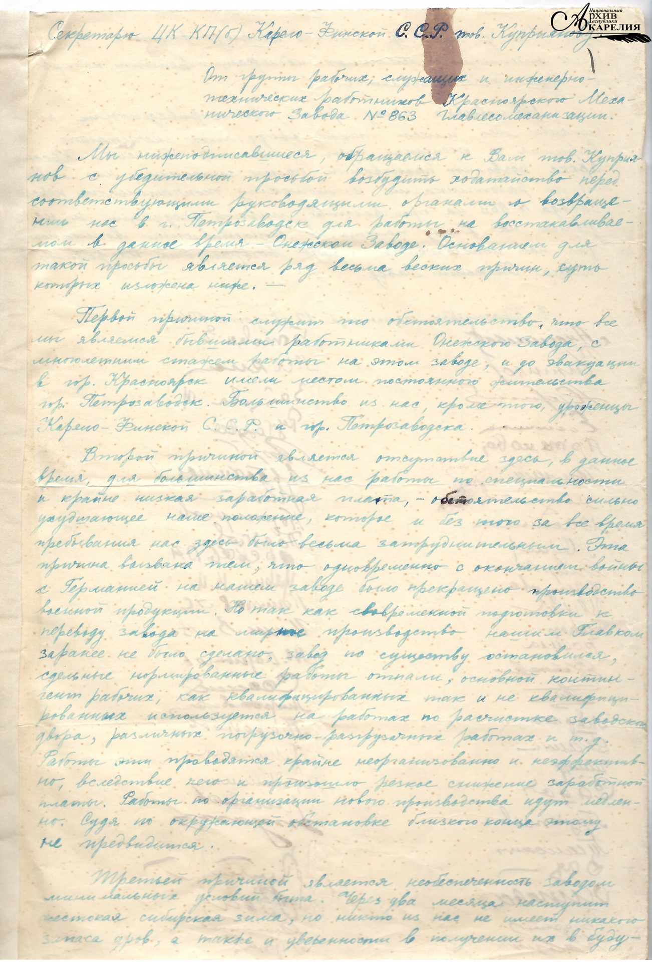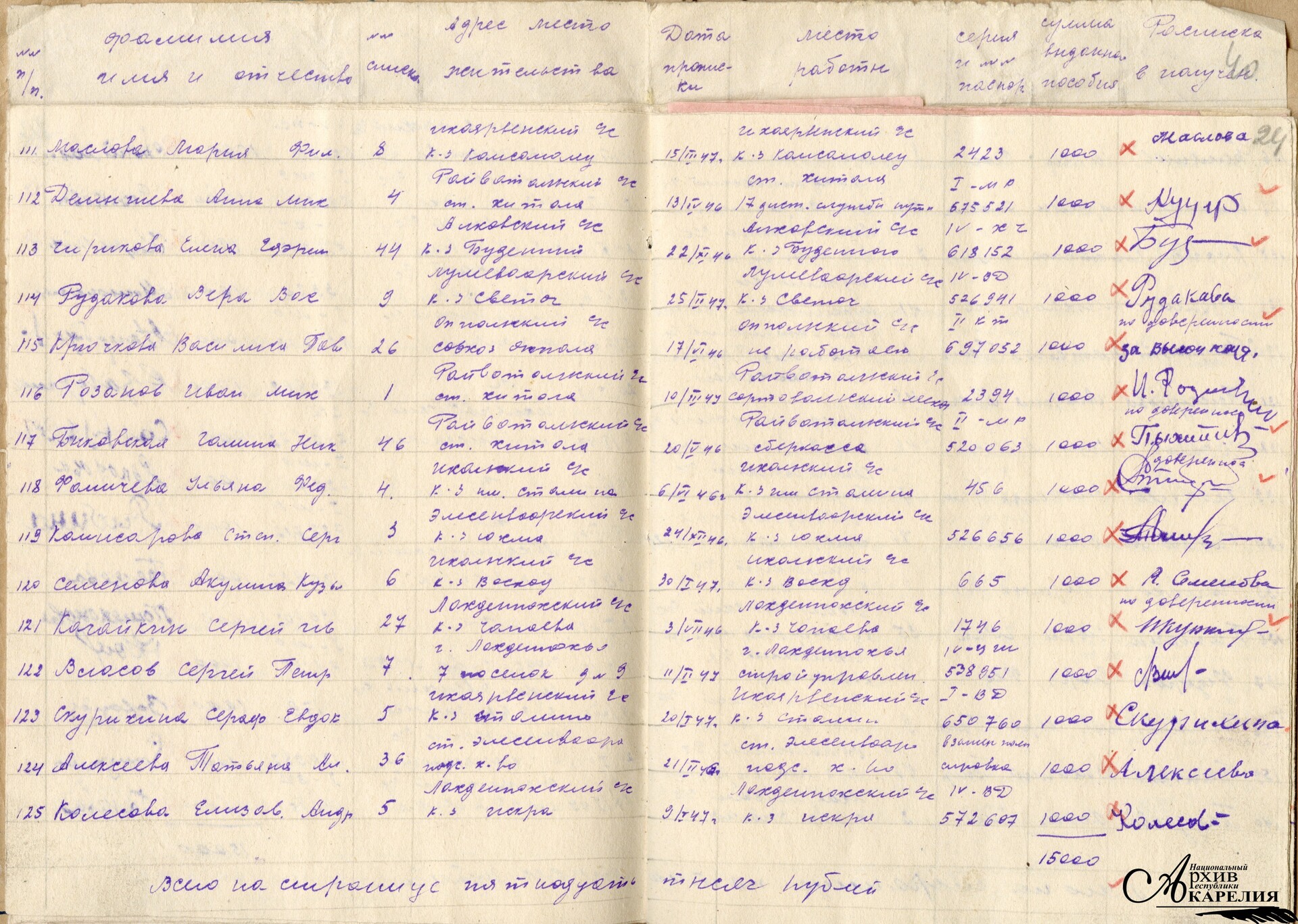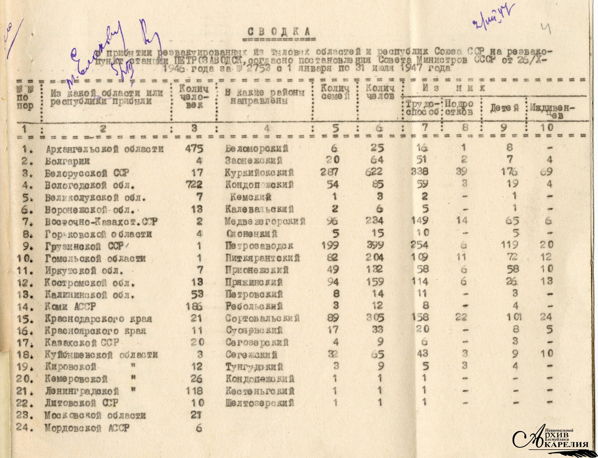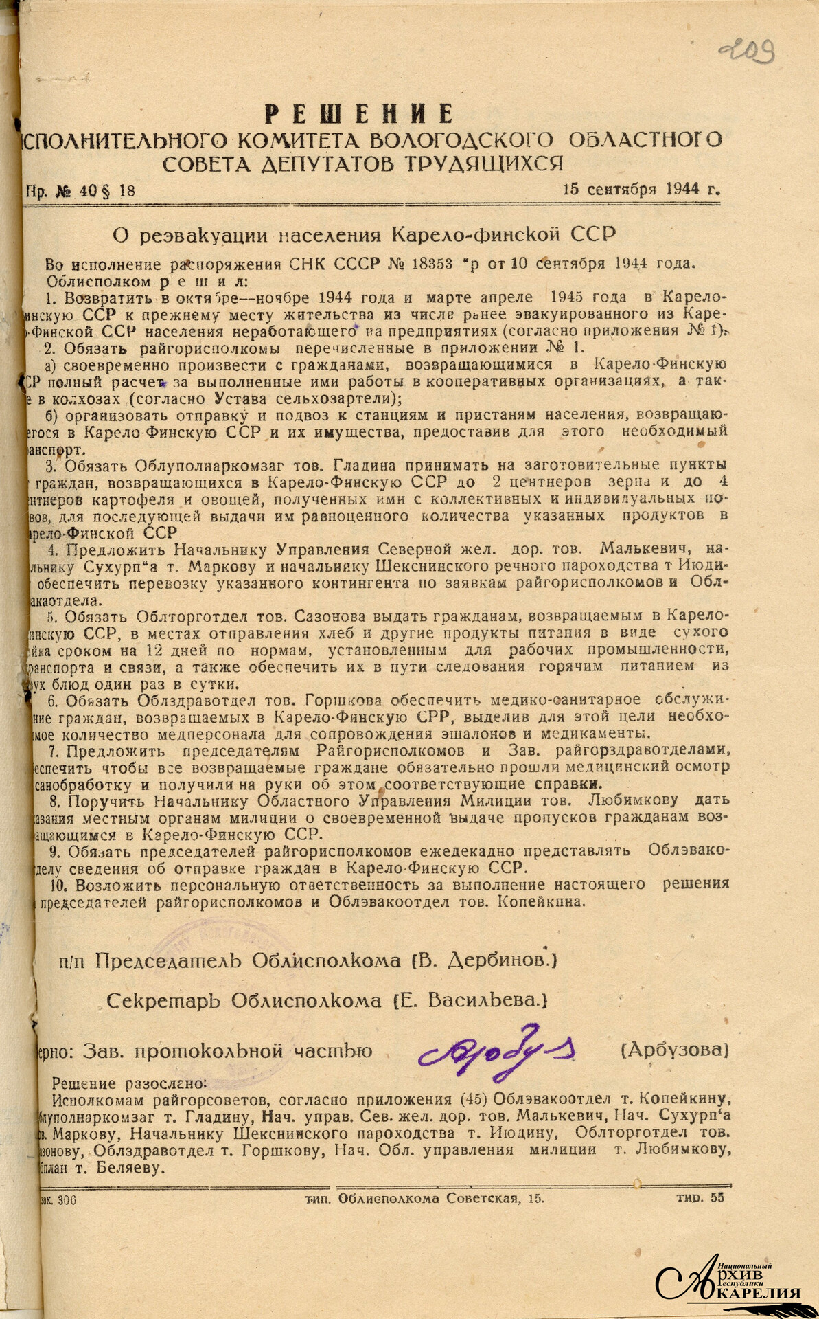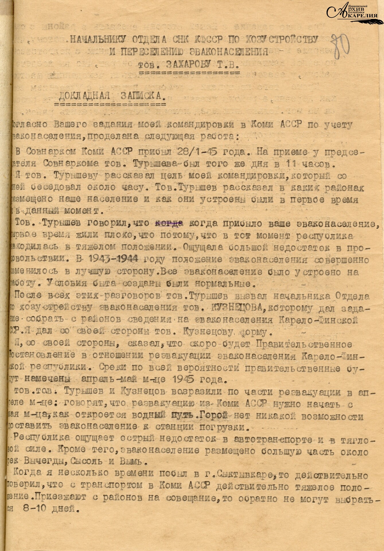 Список специалистов сельского хозяйства (агрономов, механиков, ветврачей), эвакуированных из КФССР и проживающих в Ярославской области, составленный уполномоченным СНК КФССР по Ярославской области Вайноненом для подготовки возвращения в КФССР.