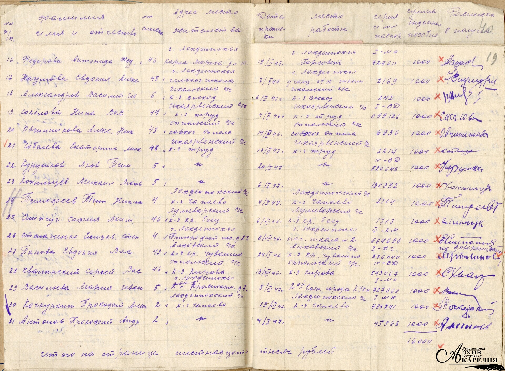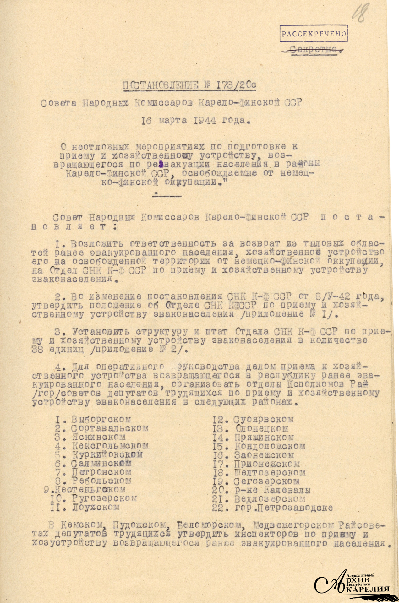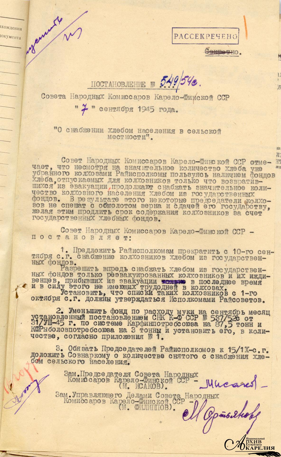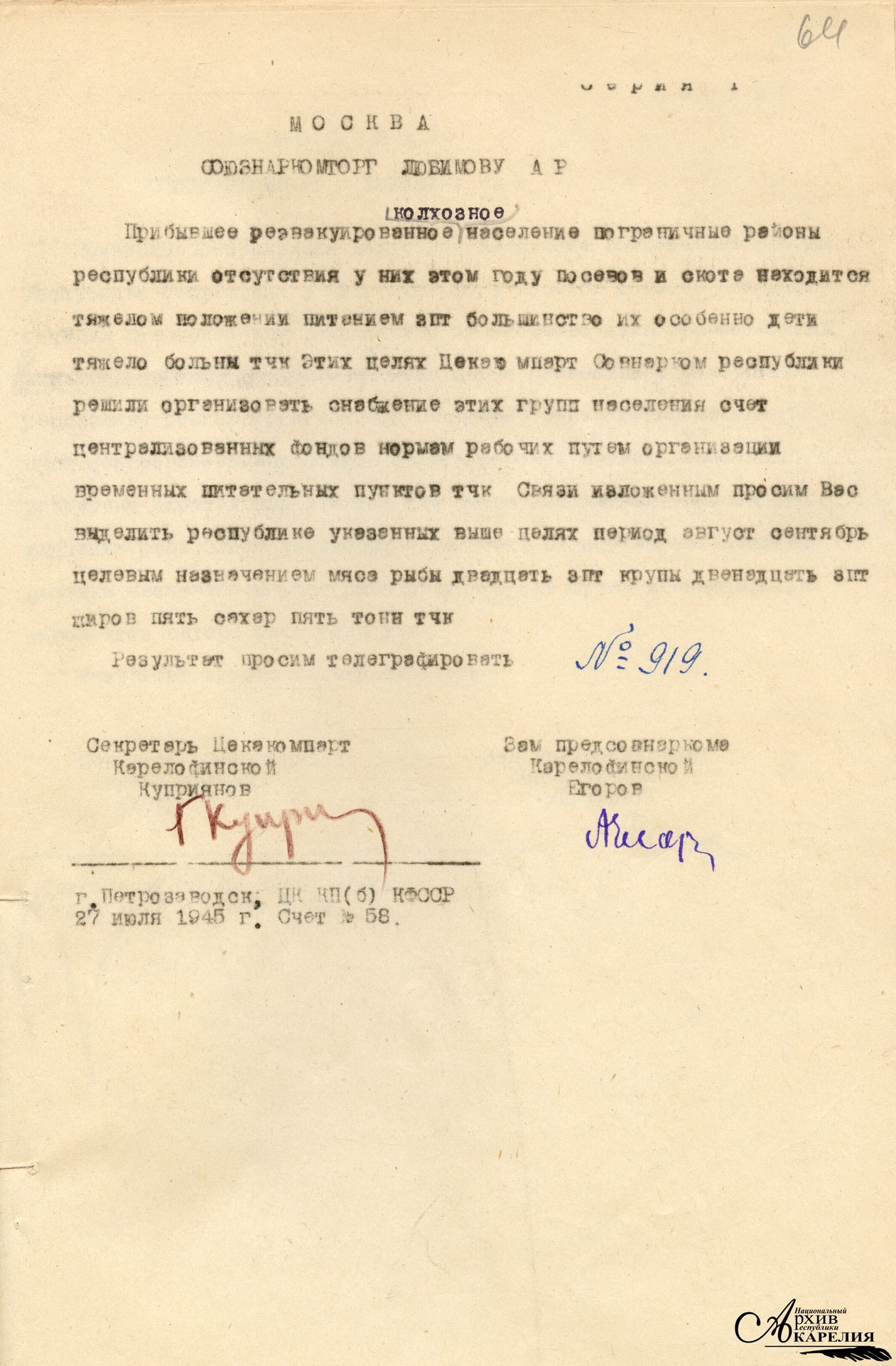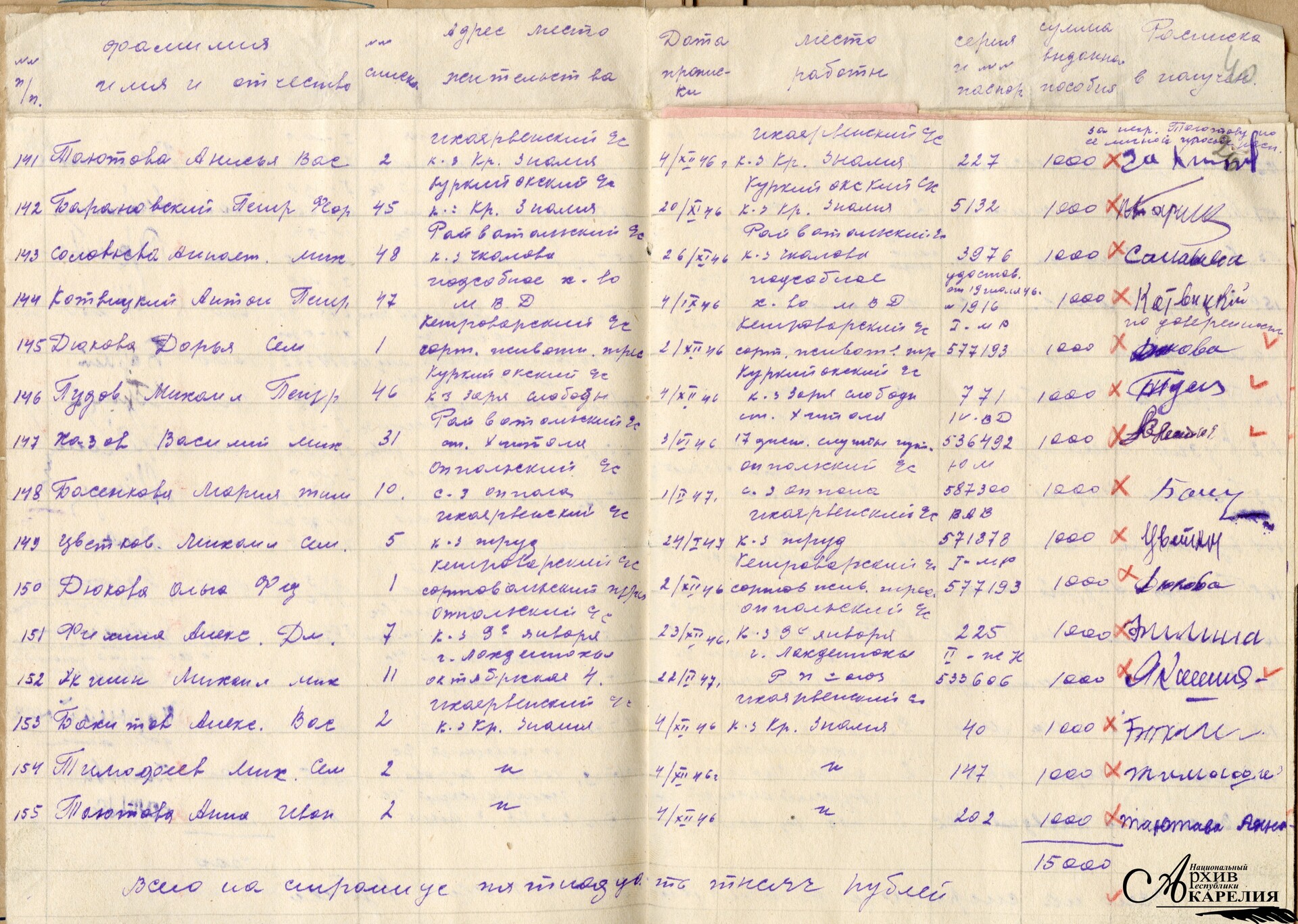 Список специалистов сельского хозяйства (агрономов, механиков, ветврачей), эвакуированных из КФССР и проживающих в Ярославской области, составленный уполномоченным СНК КФССР по Ярославской области Вайноненом для подготовки возвращения в КФССР.