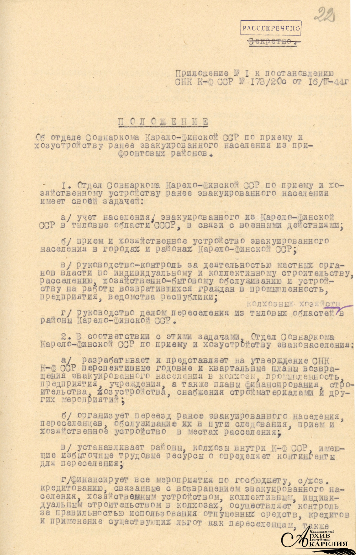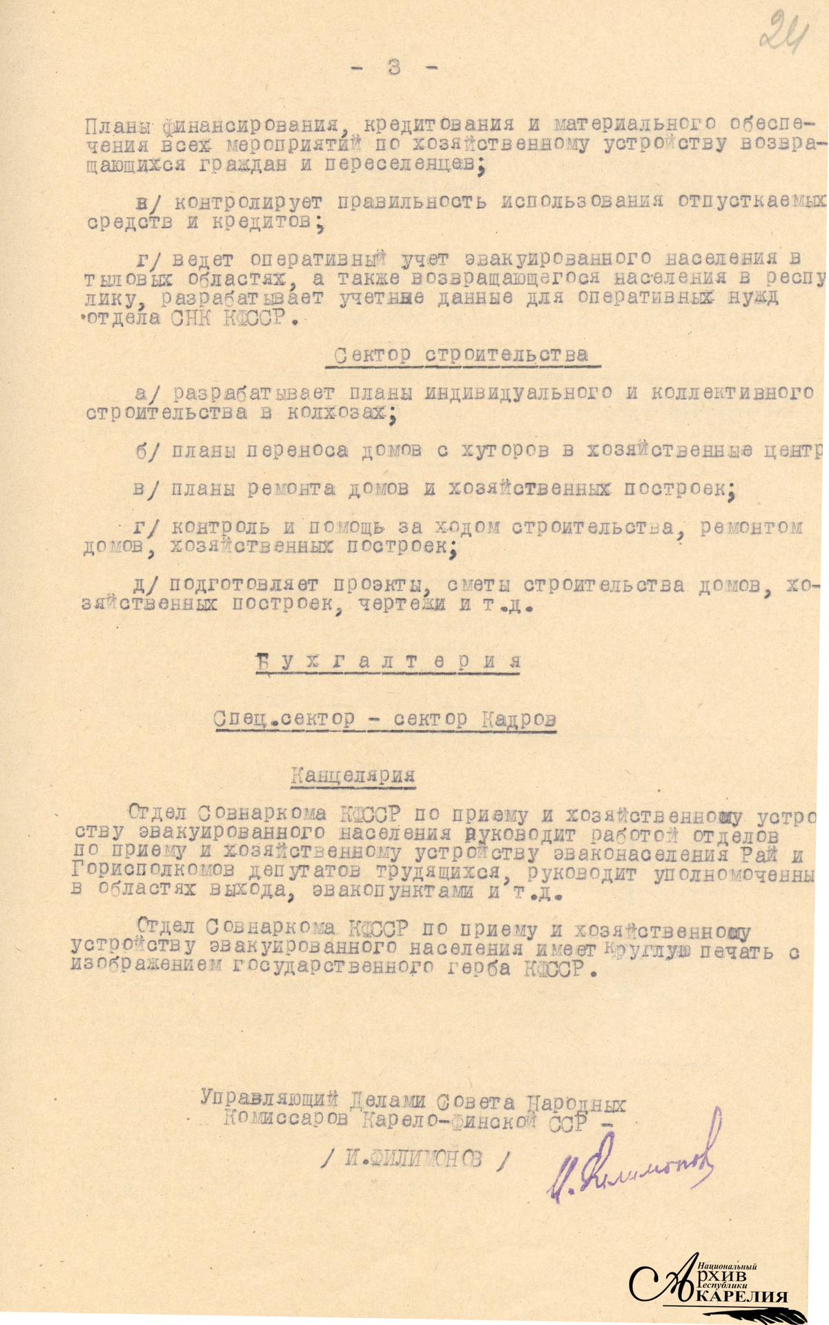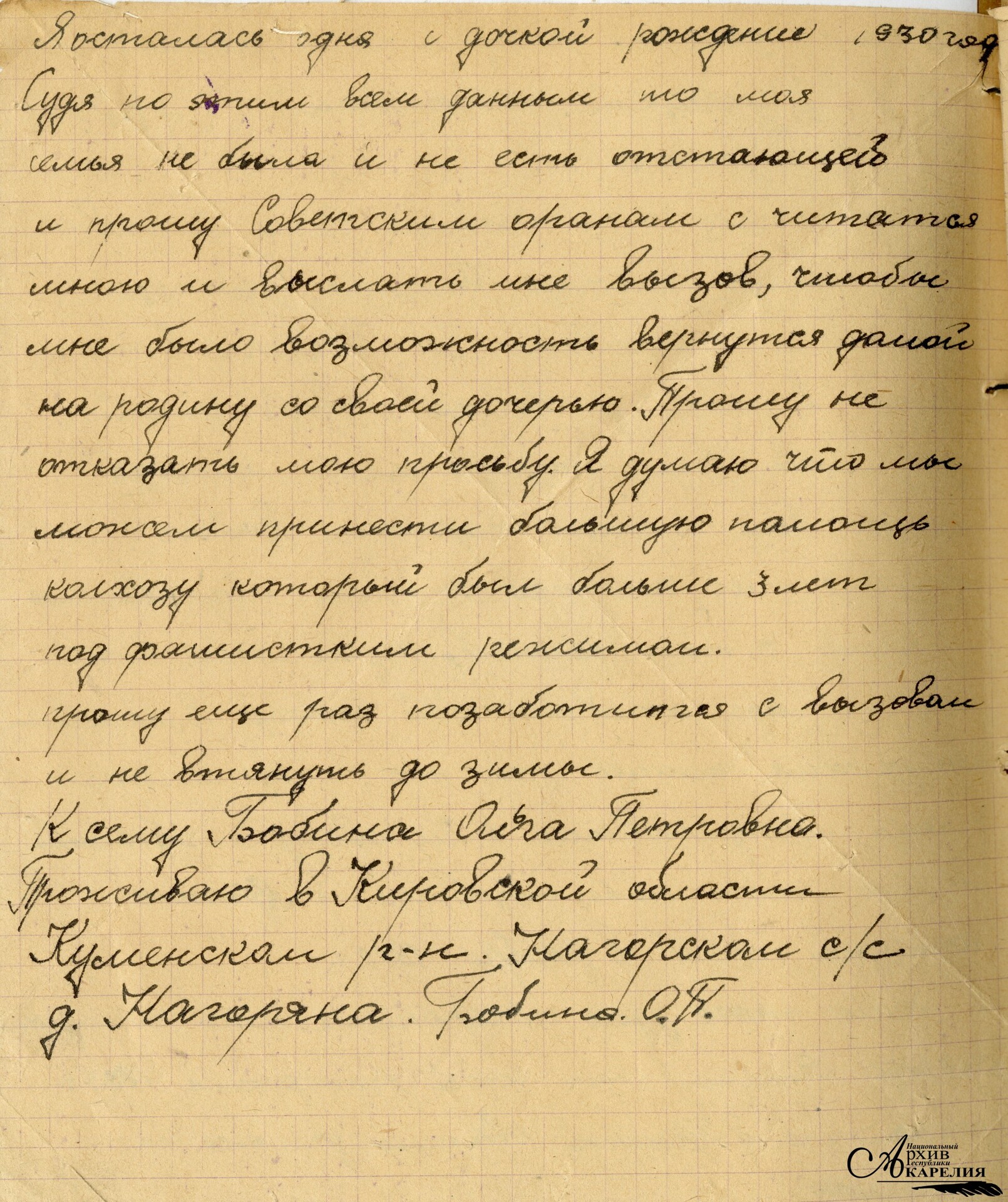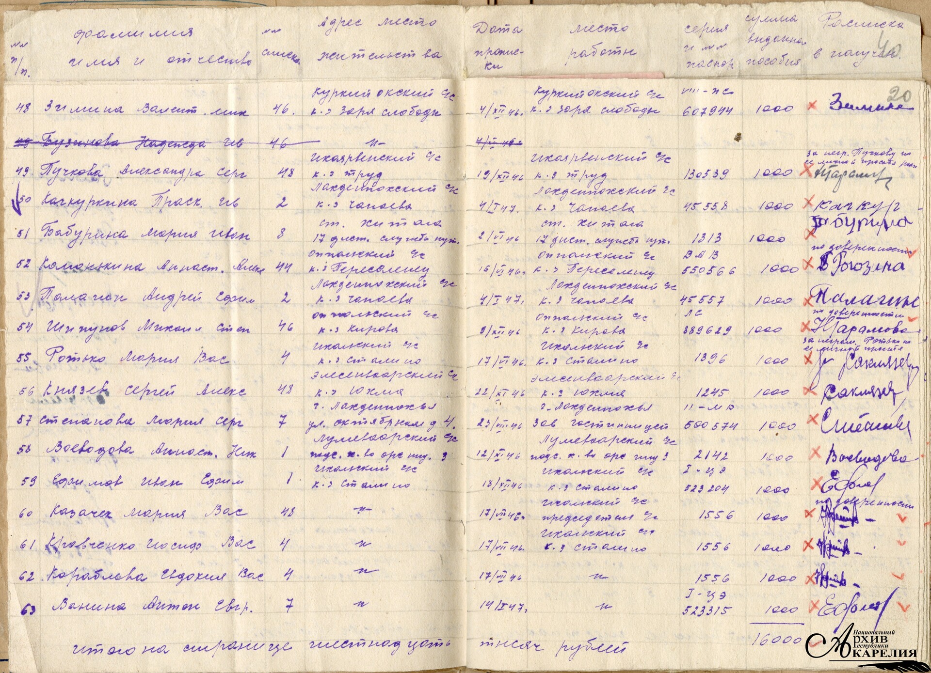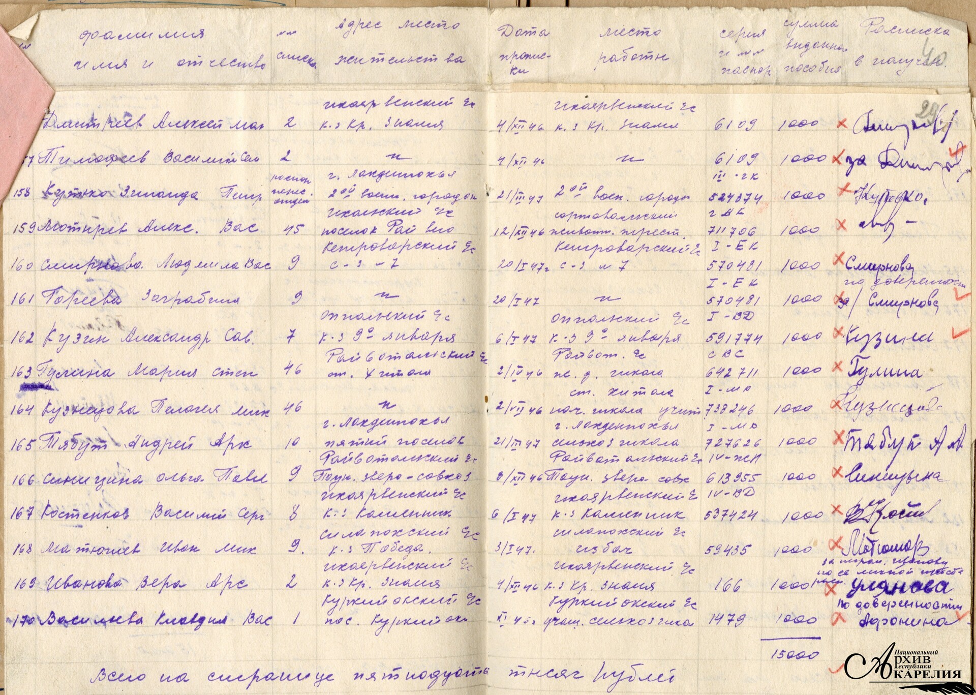 Список специалистов сельского хозяйства (агрономов, механиков, ветврачей), эвакуированных из КФССР и проживающих в Ярославской области, составленный уполномоченным СНК КФССР по Ярославской области Вайноненом для подготовки возвращения в КФССР.