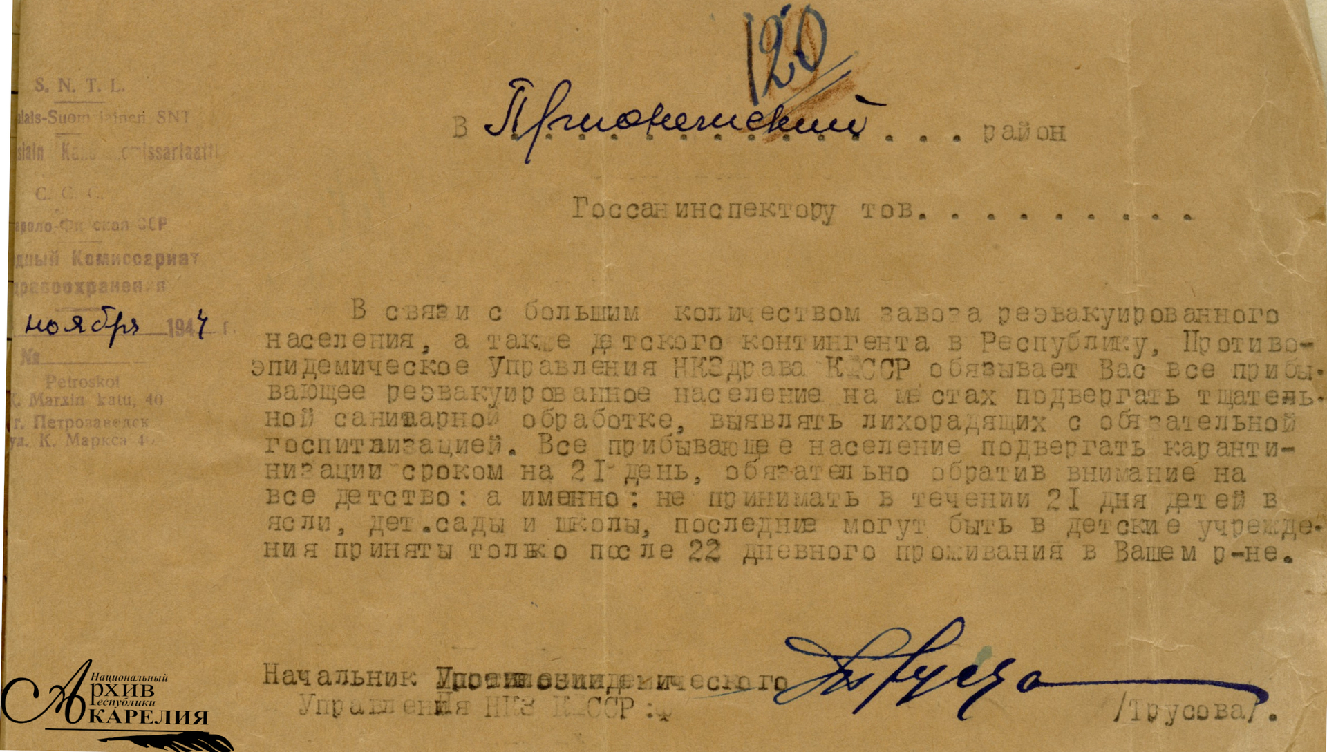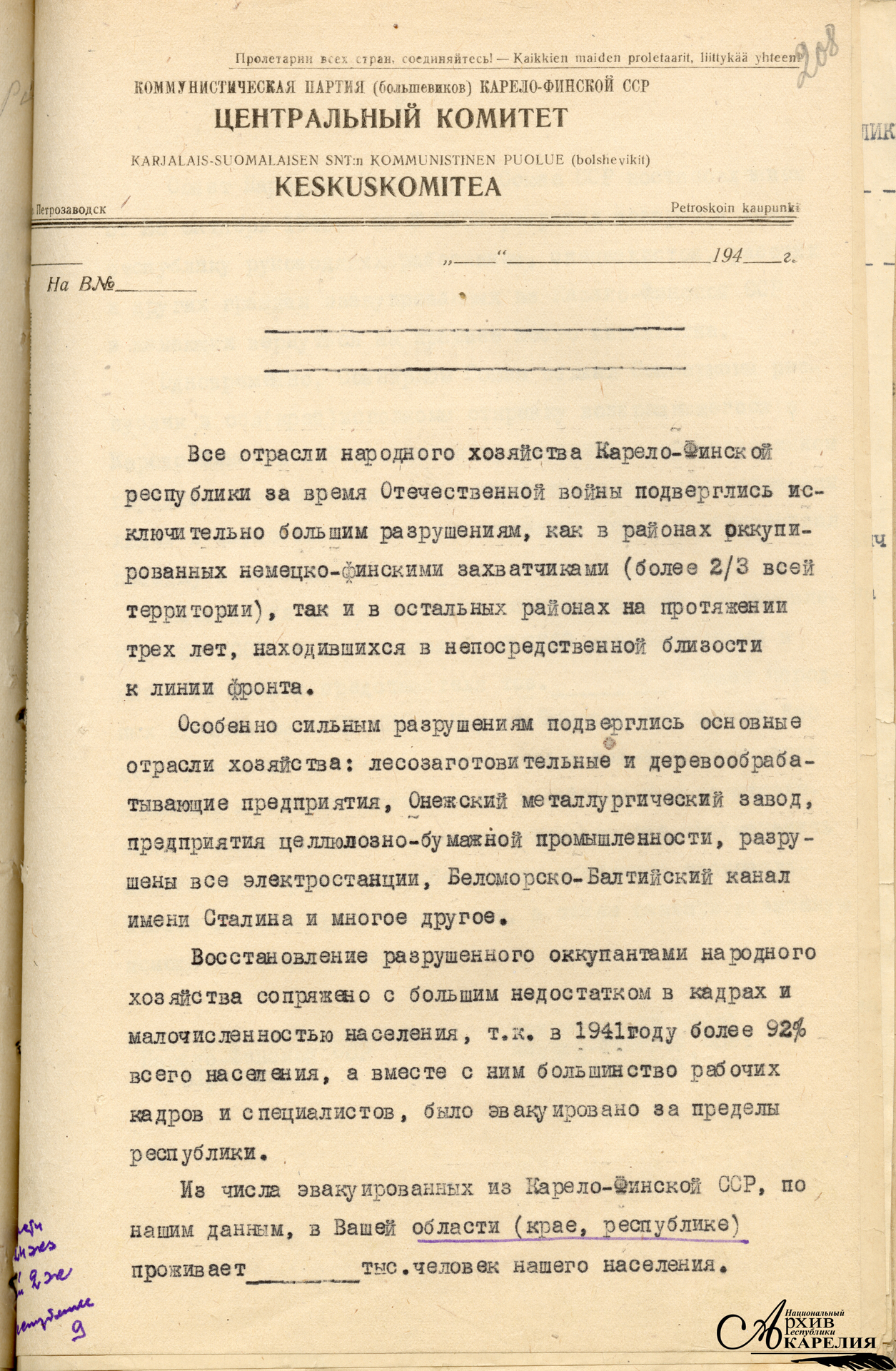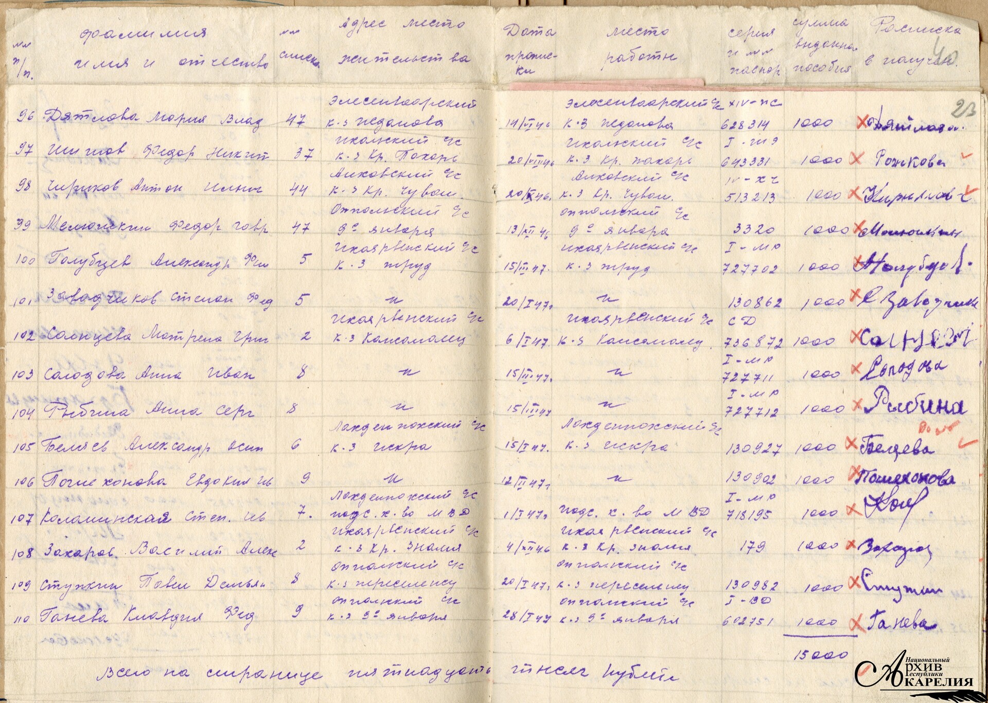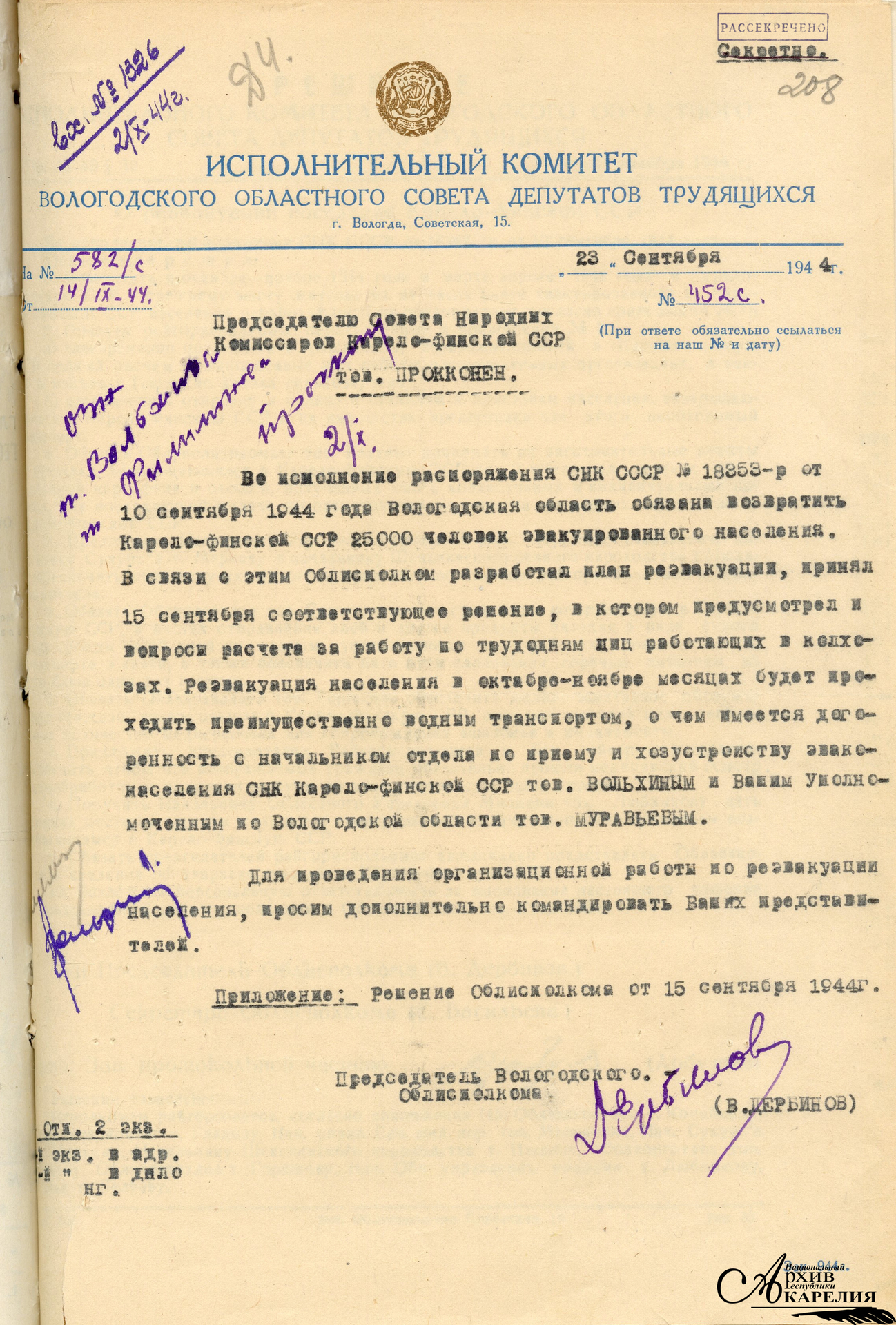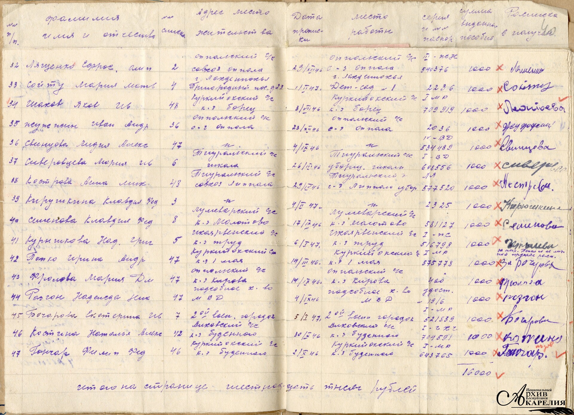 Список специалистов сельского хозяйства (агрономов, механиков, ветврачей), эвакуированных из КФССР и проживающих в Ярославской области, составленный уполномоченным СНК КФССР по Ярославской области Вайноненом для подготовки возвращения в КФССР.