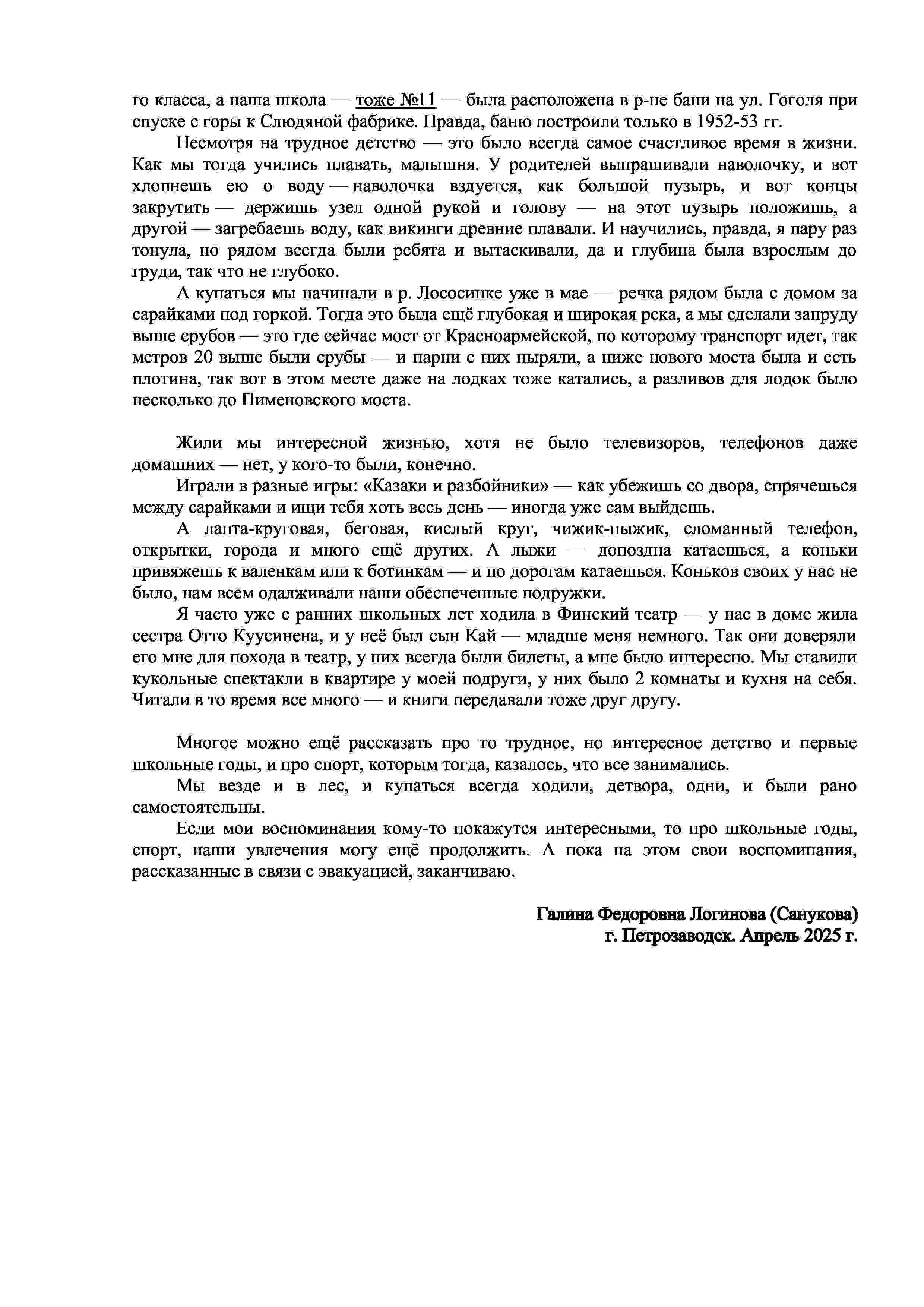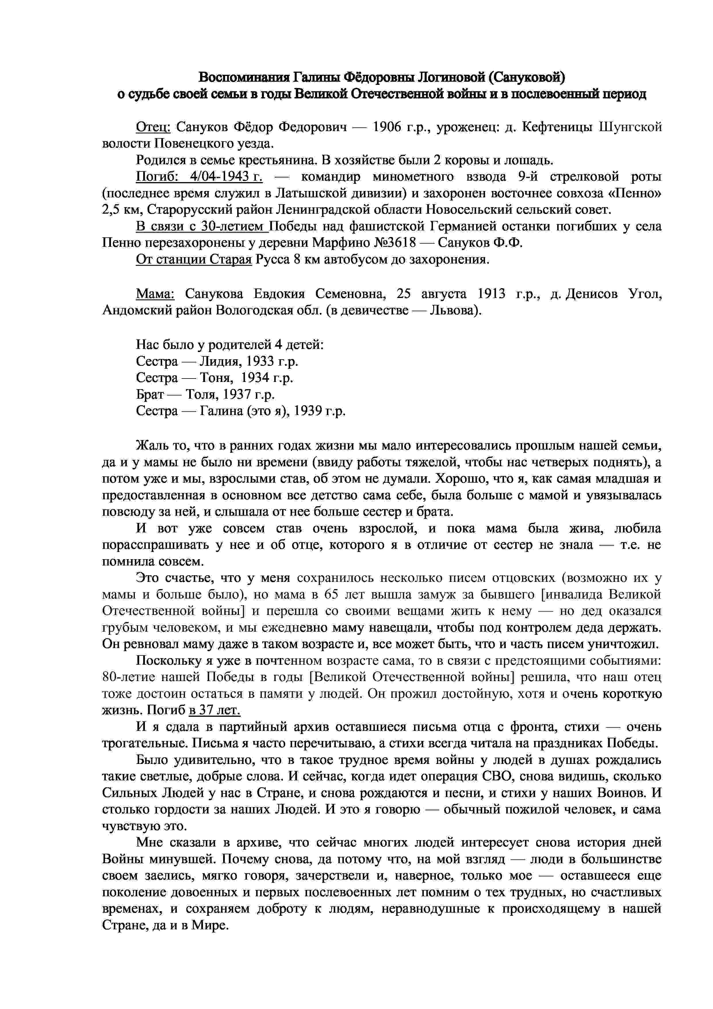 Материалы переданы Галиной Фёдоровной Логиновой (Сануковой) (г. Петрозаводск, Республика Карелия).
