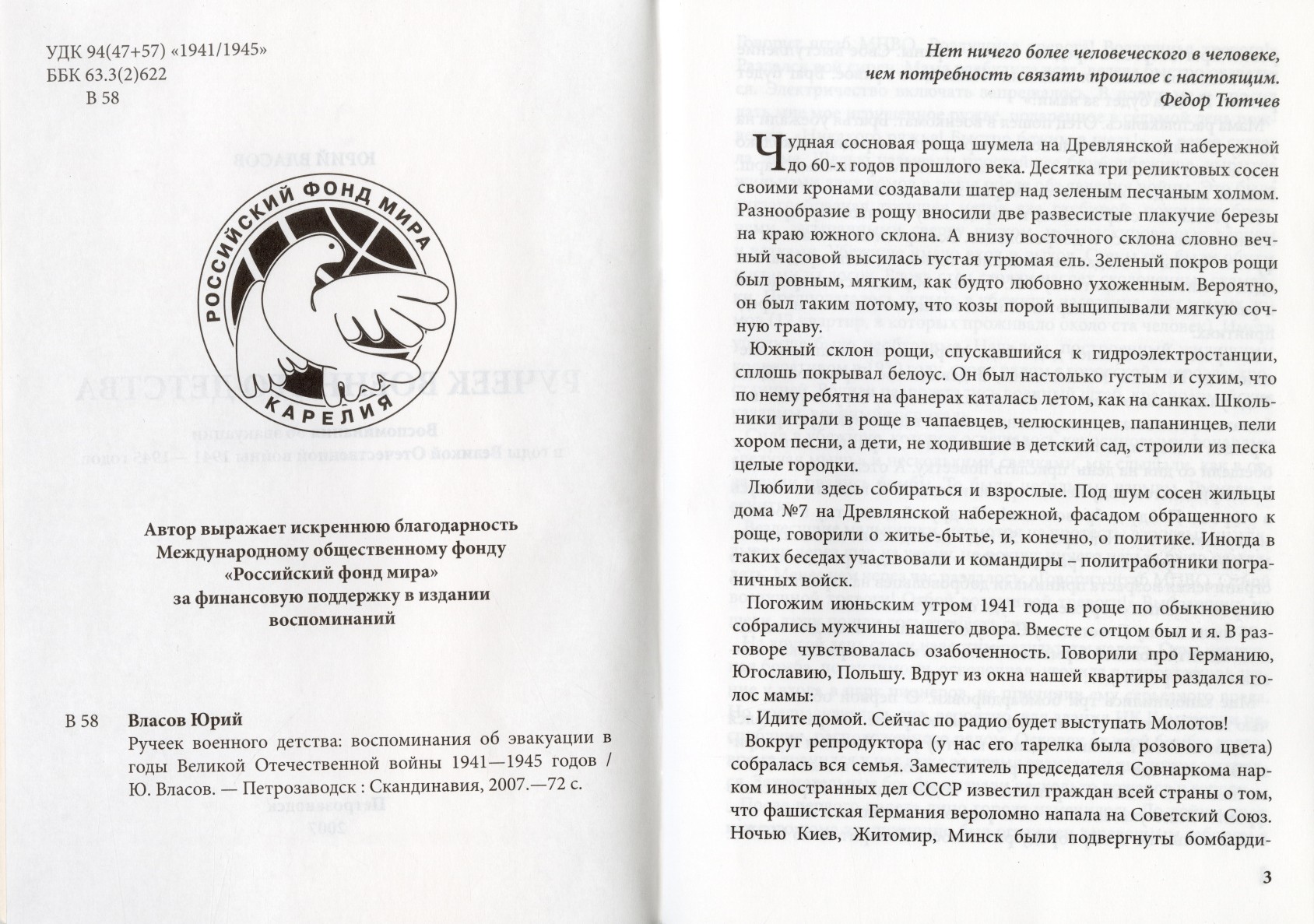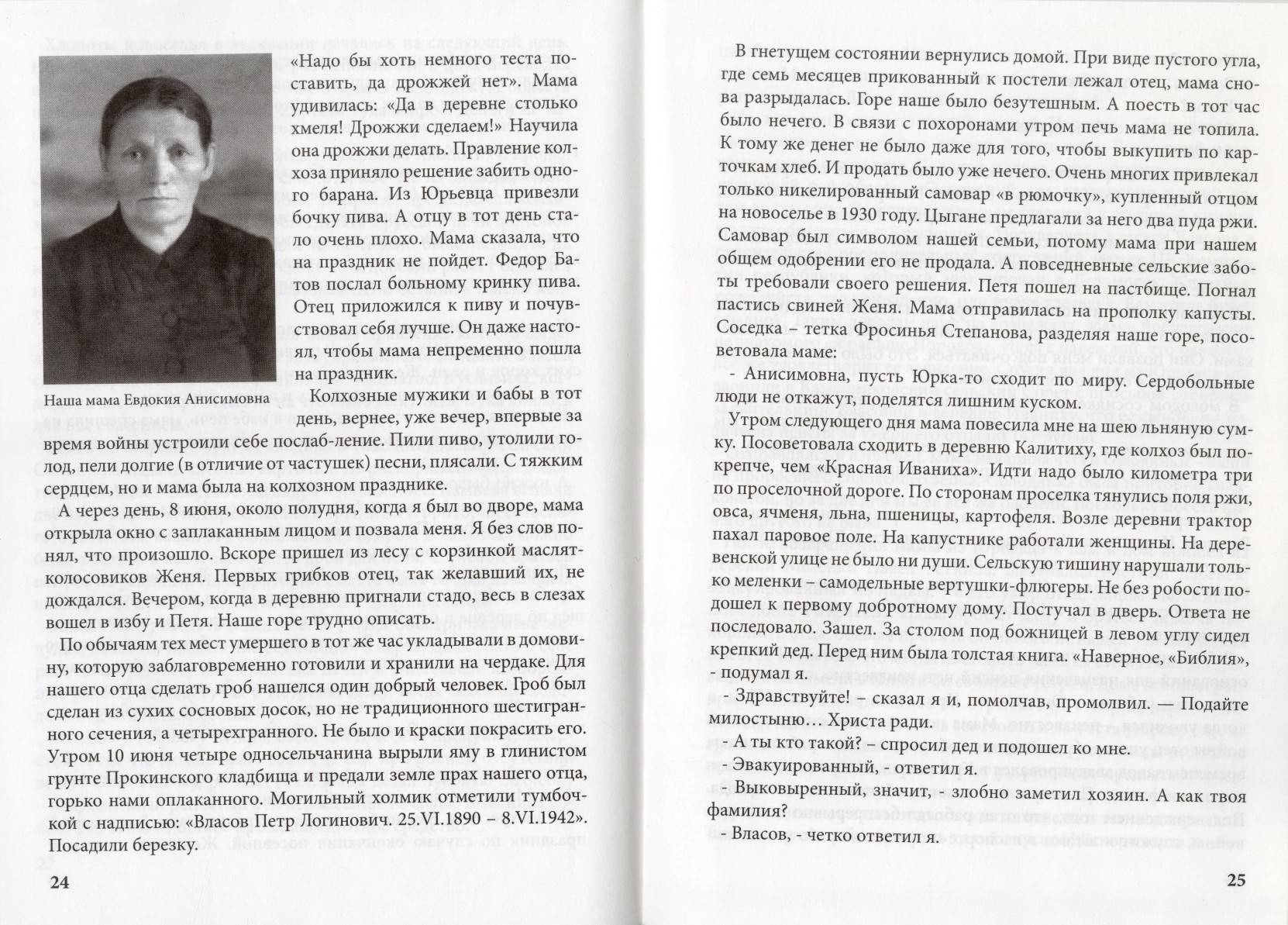 До Великой Отечественной войны семья Власовых проживала в г. Петрозаводске, где и родился в 1934 г. автор воспоминаний Юрий Петрович Власов. В 1941—1945 гг. находились в эвакуации в Вологодской и Ивановской областях. Осенью 1945 г. часть членов семьи вернулась в Карелию. Ю.П. Власов окончил дорожно-механический техникум, а также Ленинградскую высшую партийную школу. Работал на Суоярвском автотранспортном предприятии, в г. Суоярви заместителем редактора районной газеты, в п. Муезерский редактором районной газеты, в райкомах ВЛКСМ и КПСС. В 1985 г. назначен начальником Архивного управления при Совете министров КАССР, с 1990 г. — заместителем председателя и председателем правления Карельского республиканского отделения Российского фонда мира. Вел большую работу по увековечиванию памяти воинов Великой Отечественной войны.